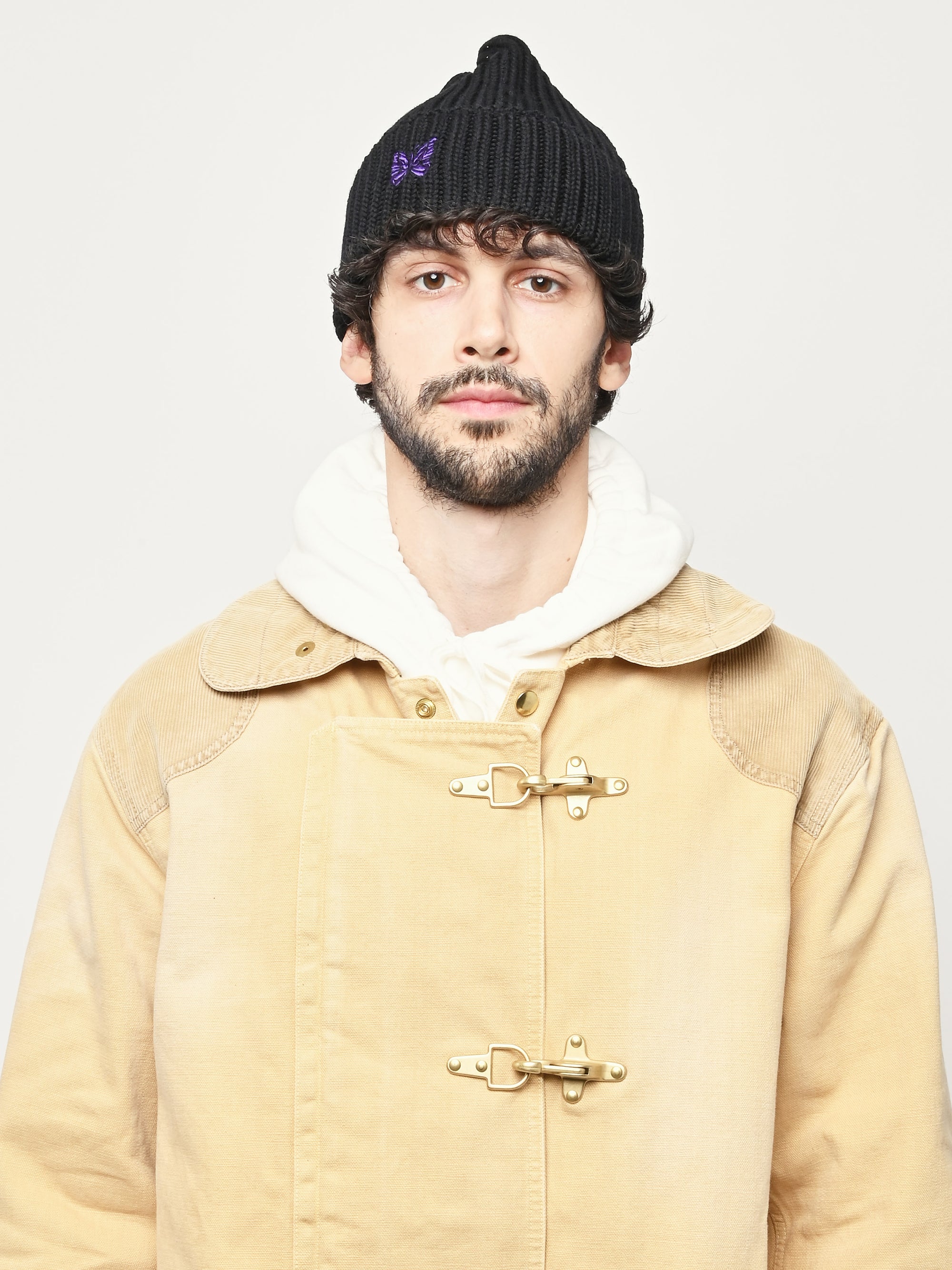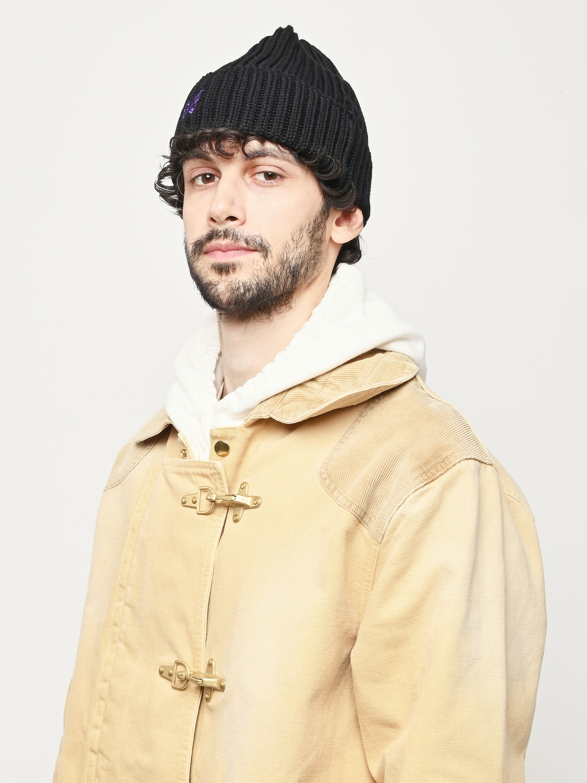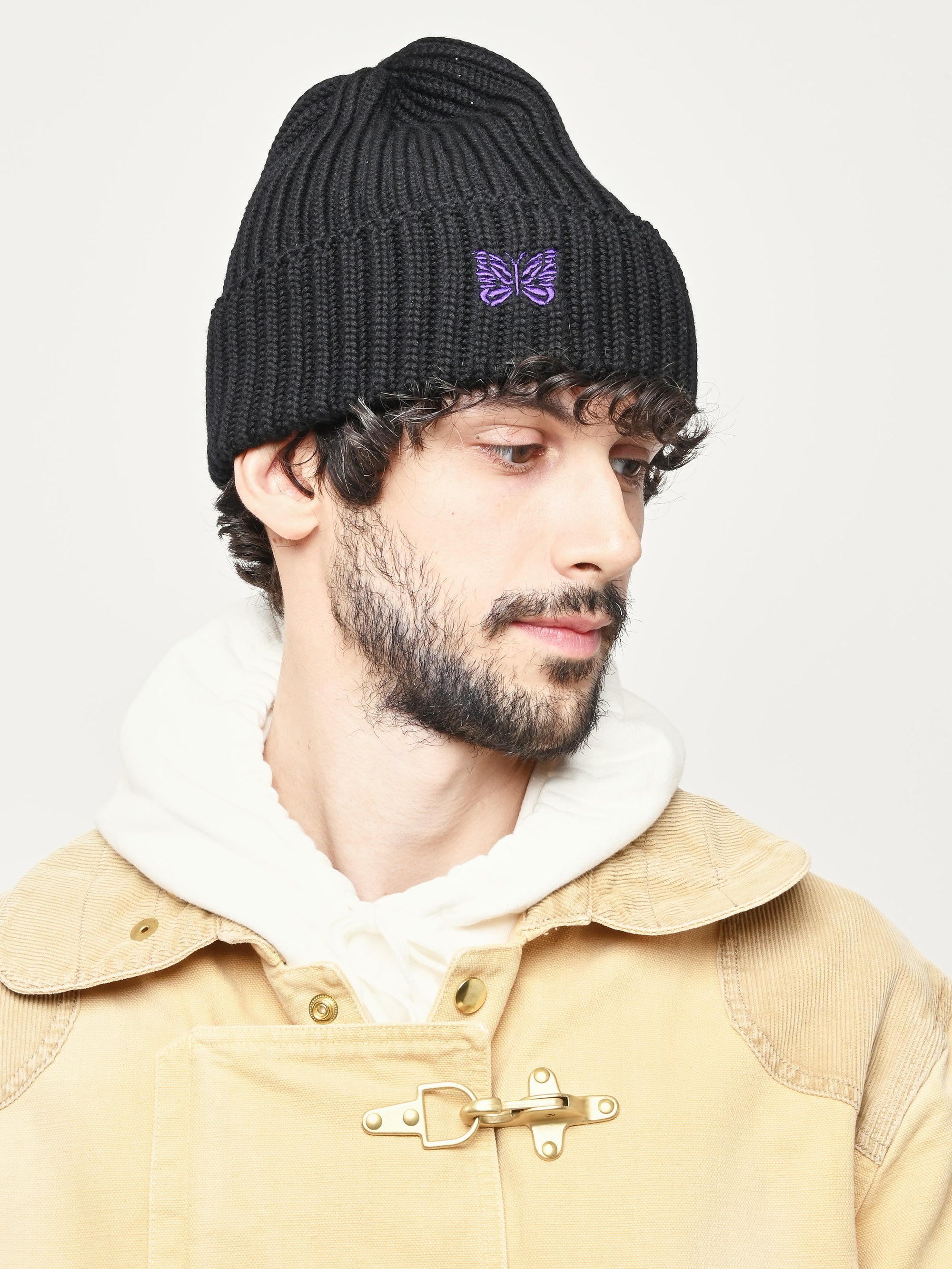A cold-weather staple, the Needles Watch Cap in Merino wool combines warmth, softness, and understated style. Ribbed knit with a fold-over cuff for a classic look.