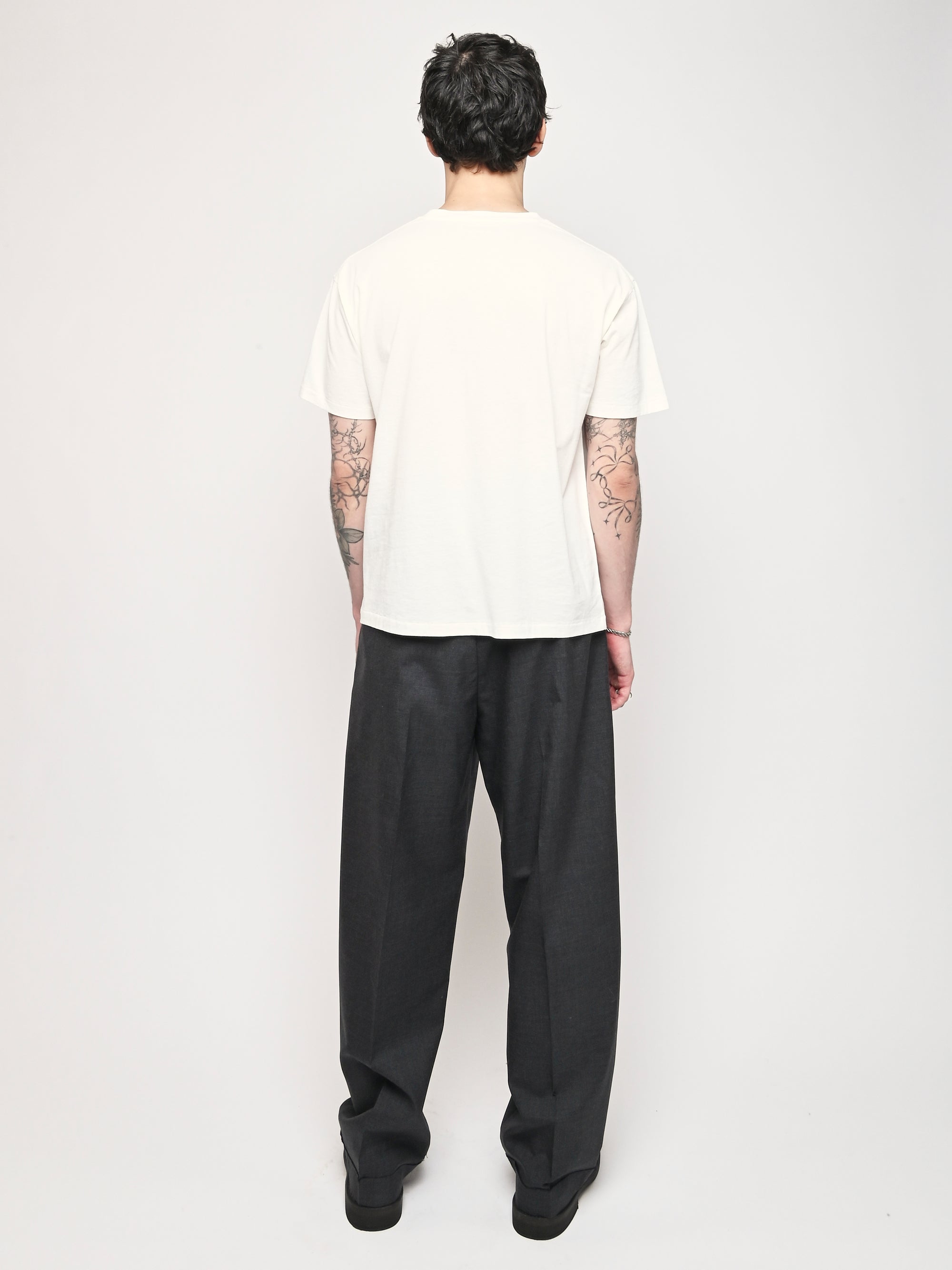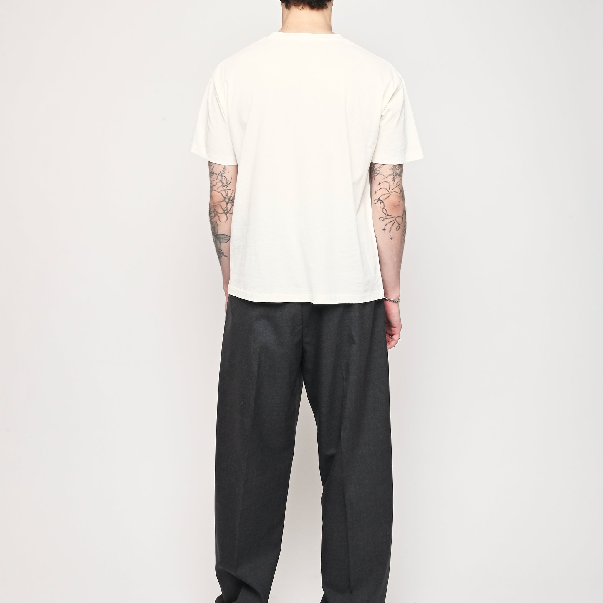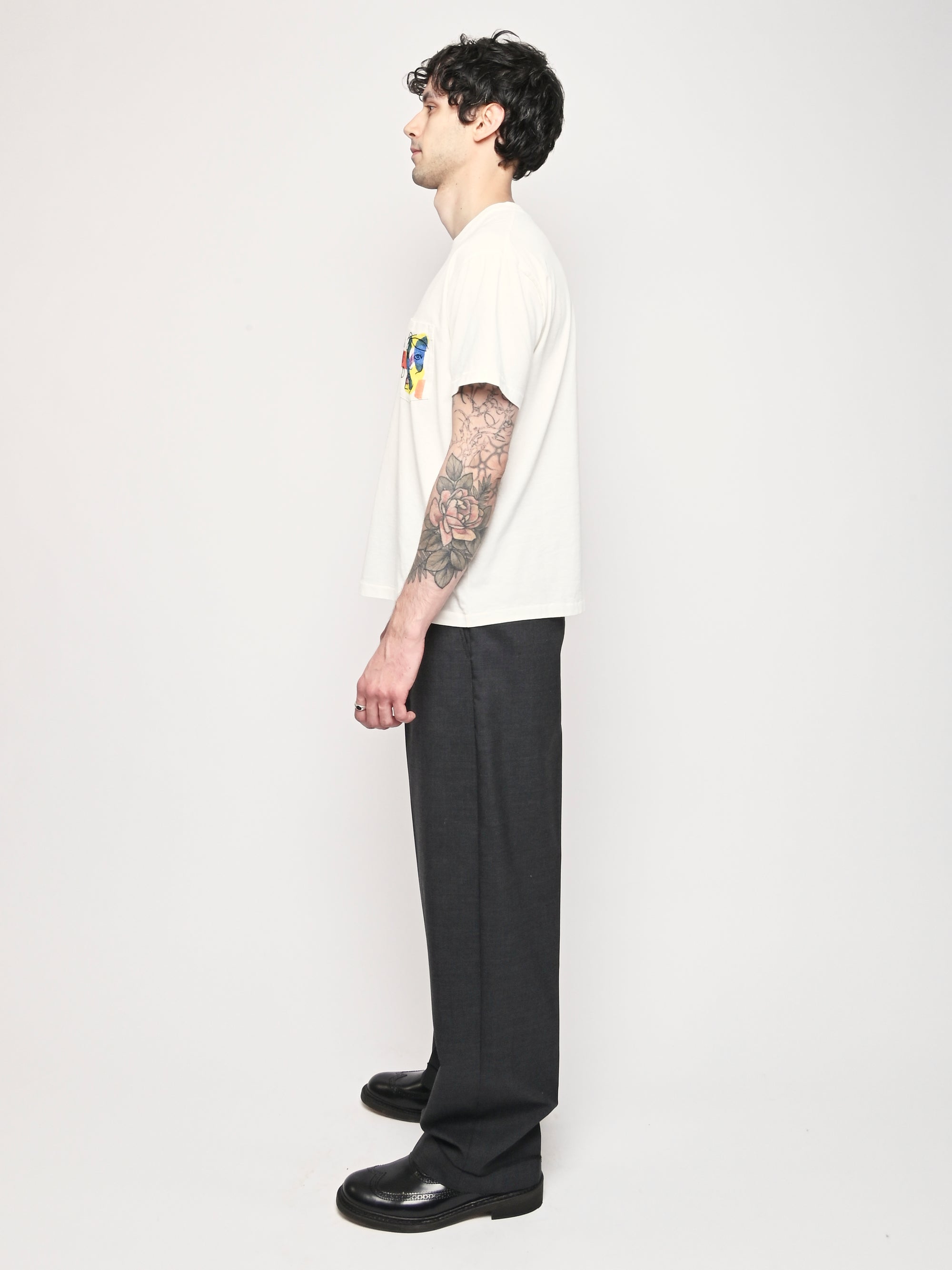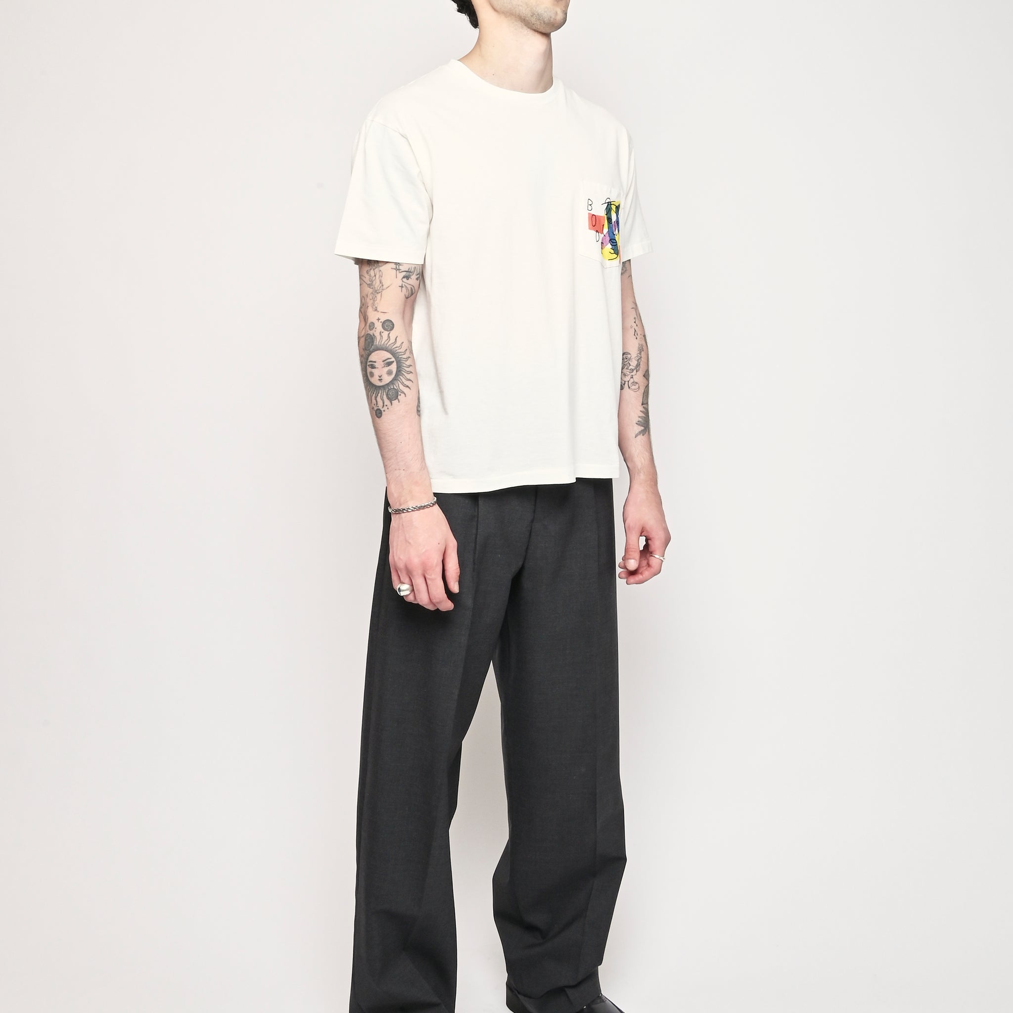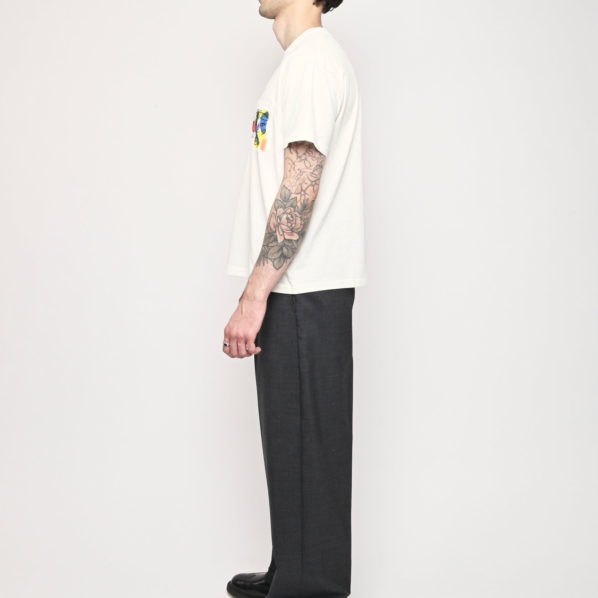 Moose Charlap and his writing partner, Eddie Lawrence, shared an eye for Modernist art—Lawrence had studied painting under Fernand Léger after the war, and both men filled their homes with art purchased from young artists in Paris. This Bode pocket tee, with its abstract colorblocking and illustrated face, is an homage to their art collections.