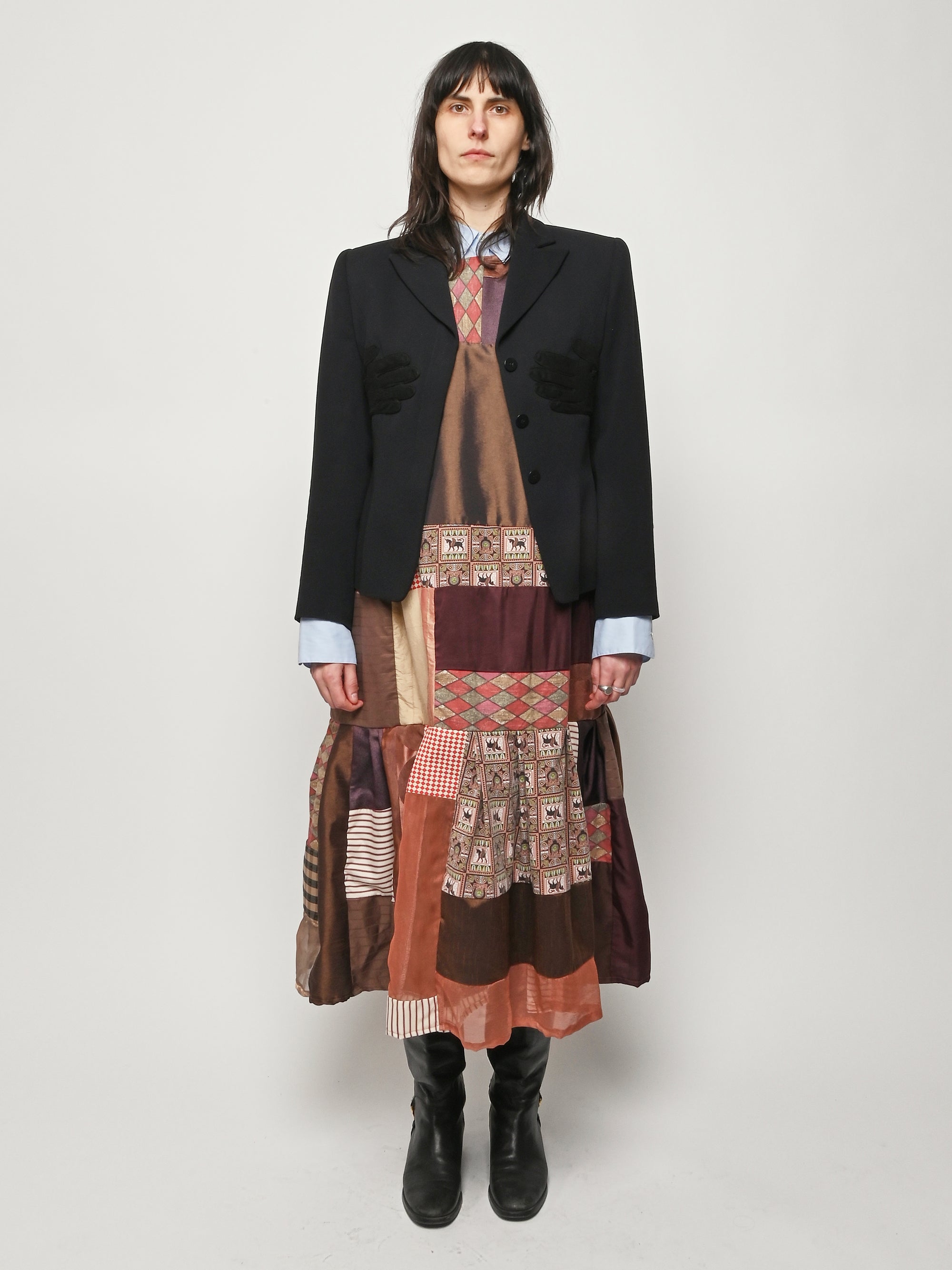 Black re-worked, blazer with tonal black gloves detail at the bust. By local artist/designer, Laurs Kemp.