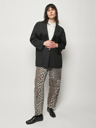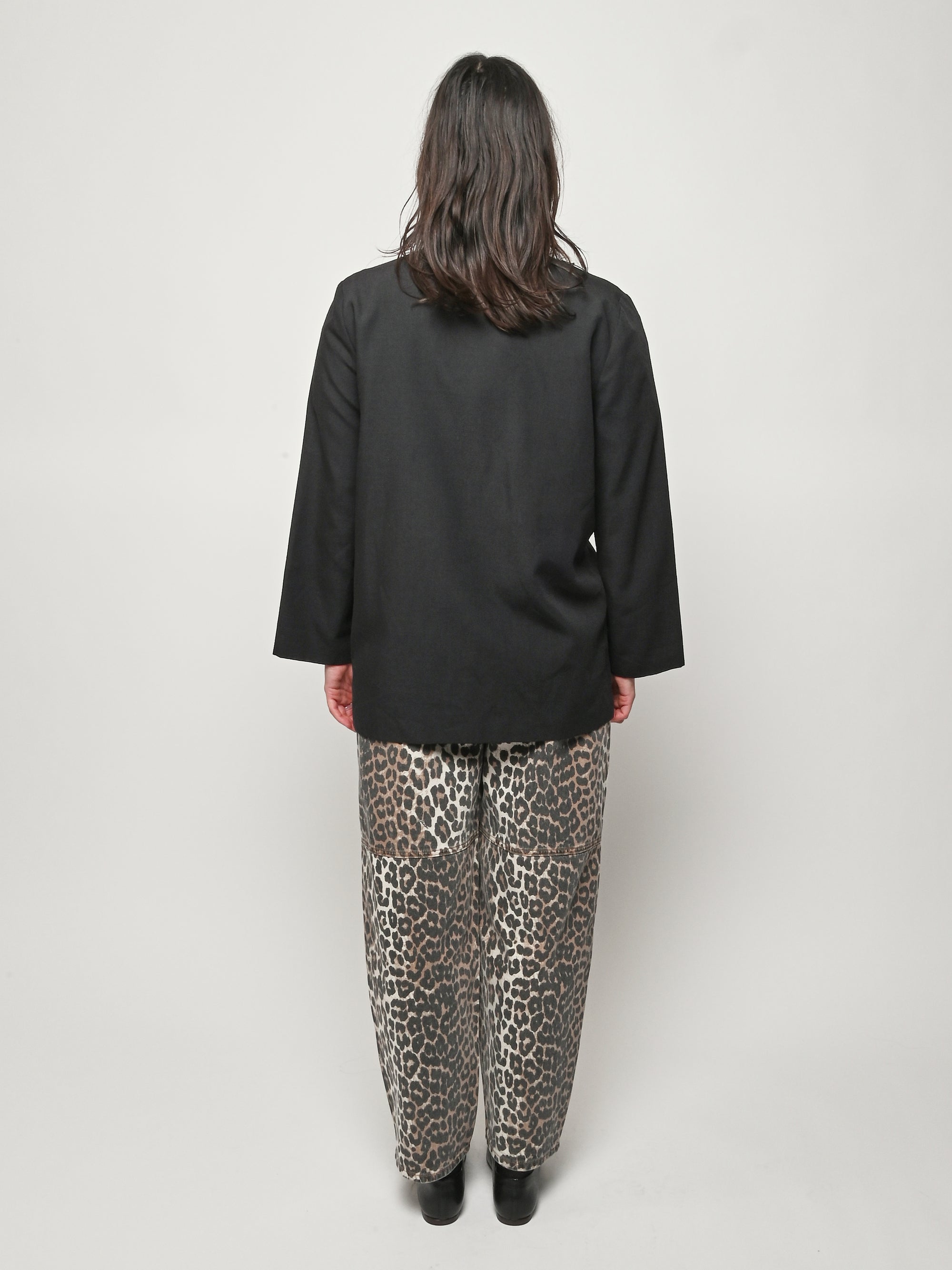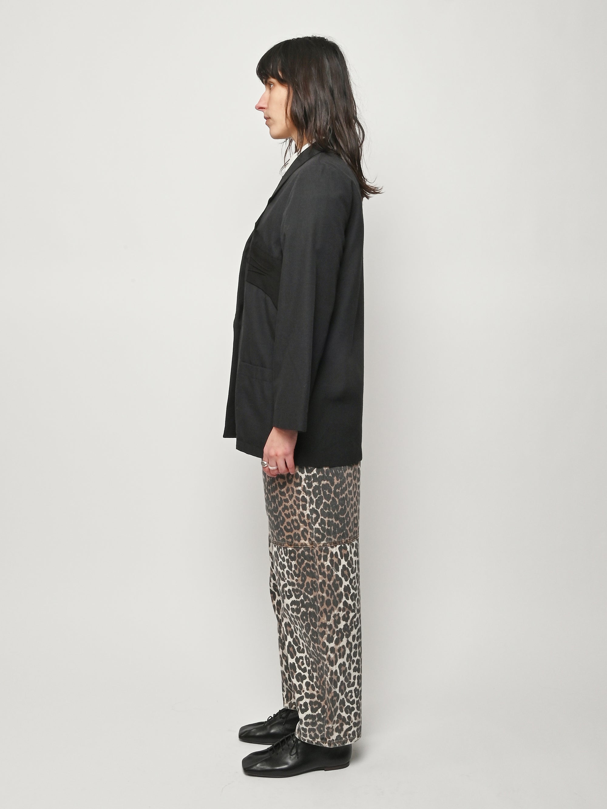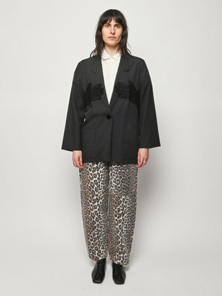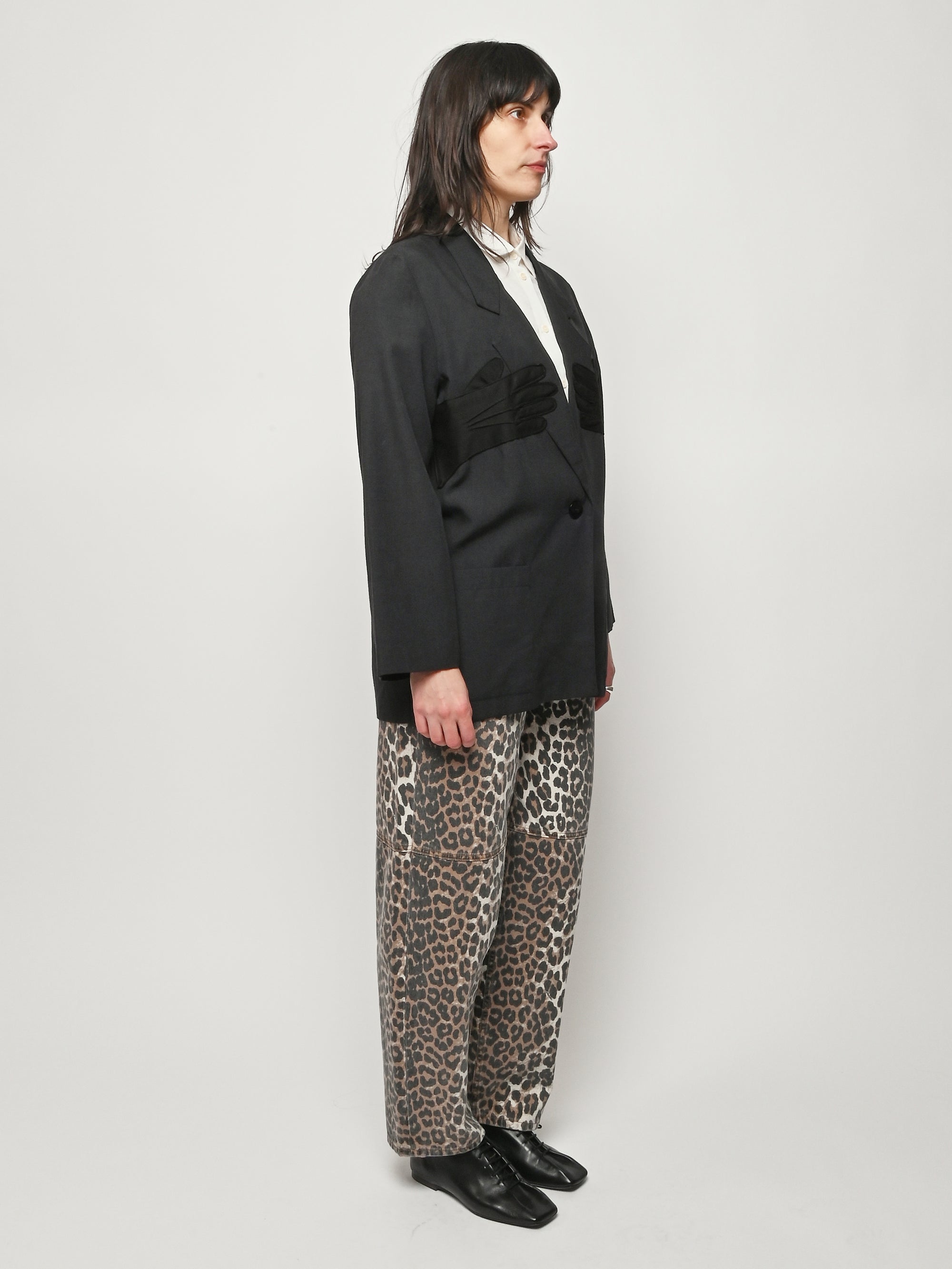 Black re-worked, un-structured blazer with tonal black gloves detail at the bust. By local artist/designer, Laurs Kemp.