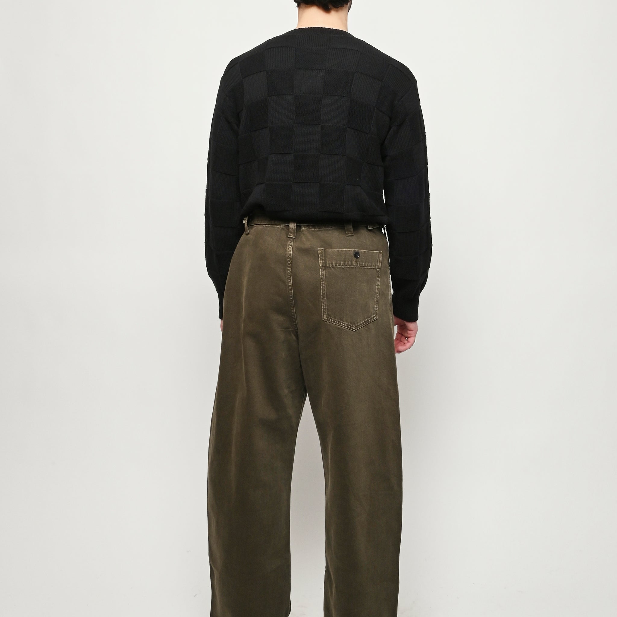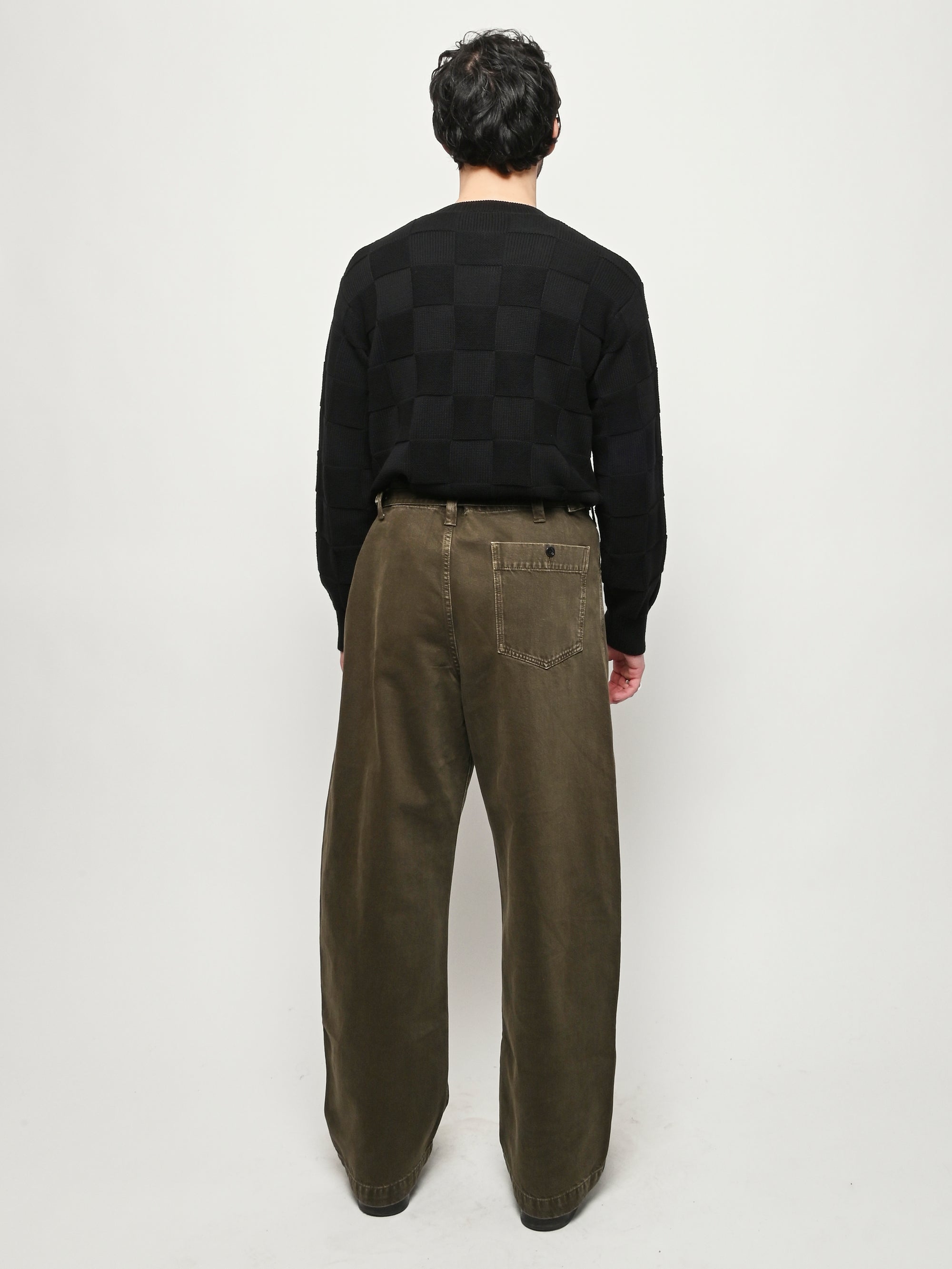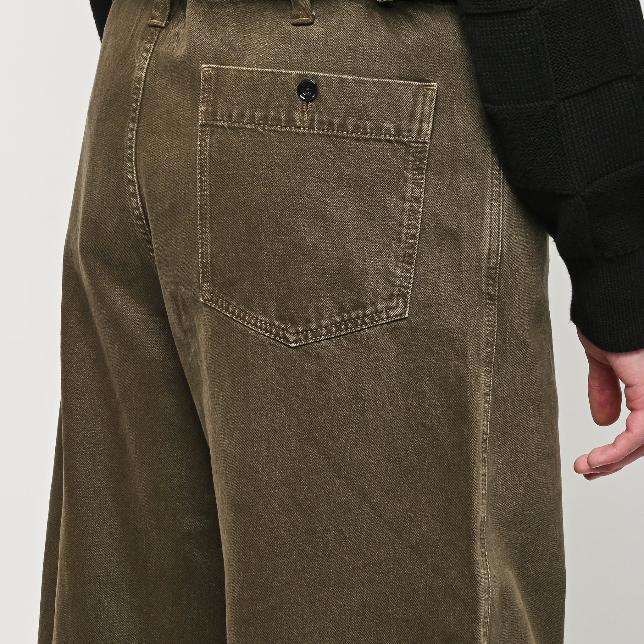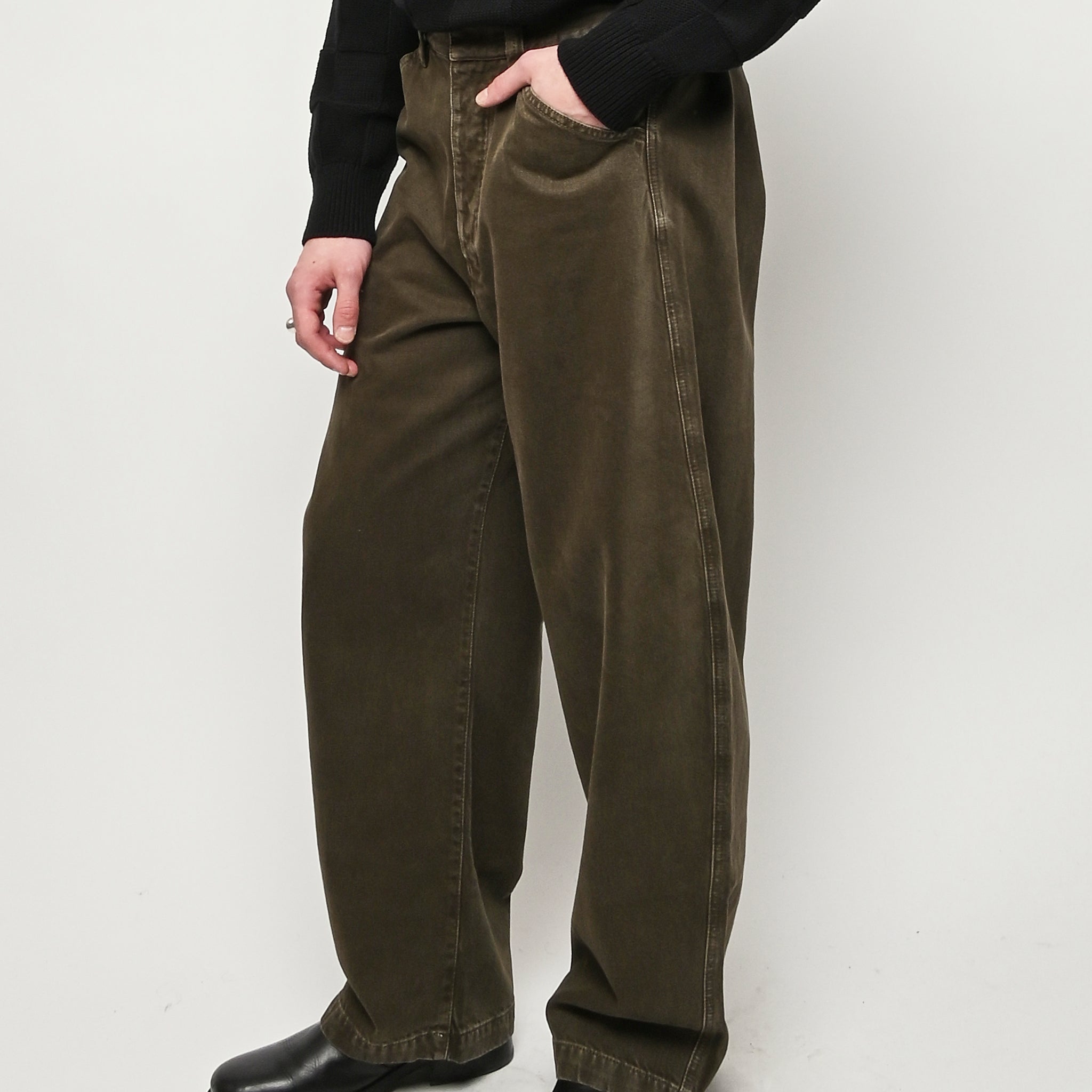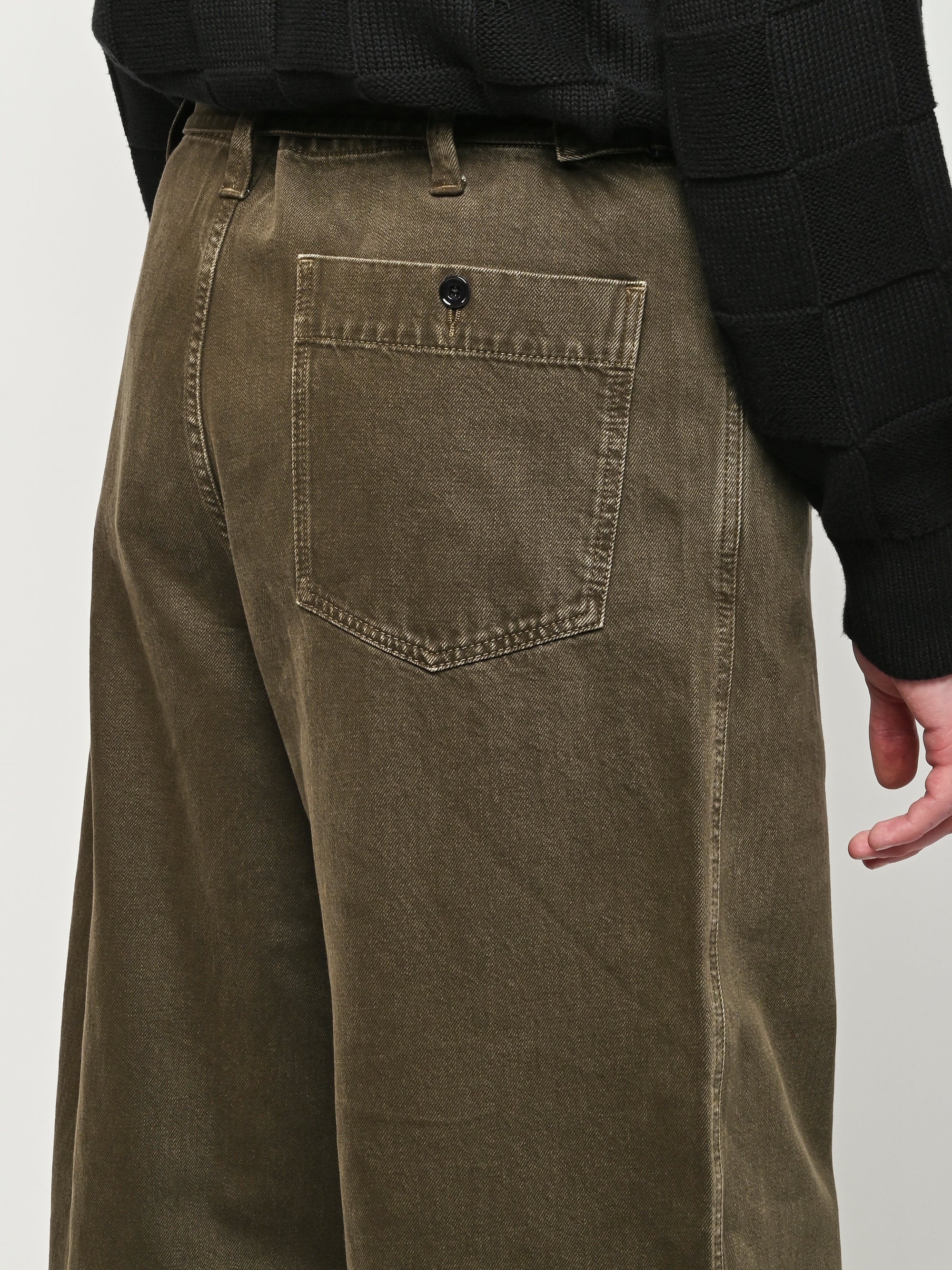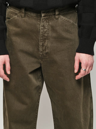 Oversized workwear pants by Lemaire that have been garment dyed to give them a snowy patina.