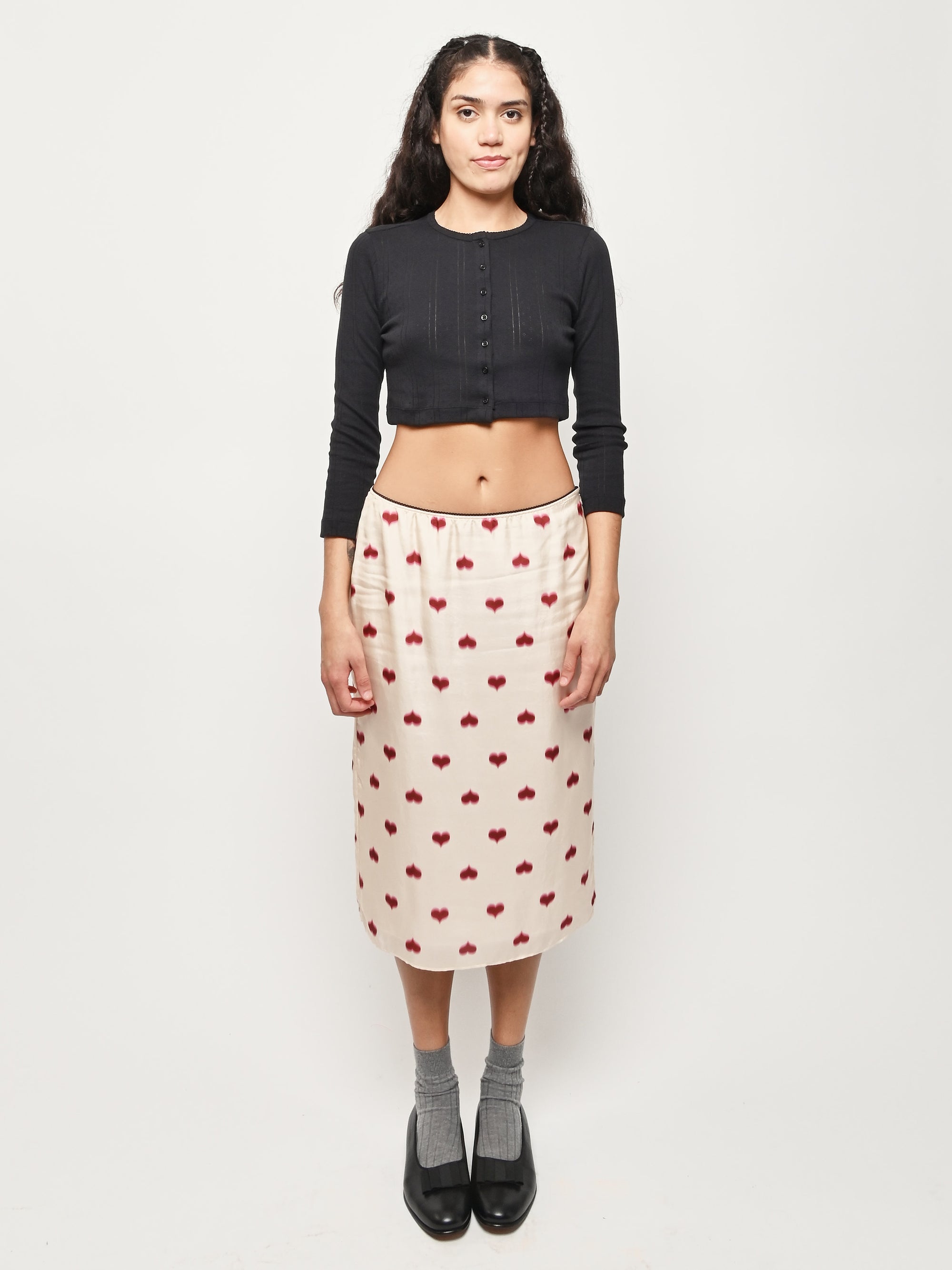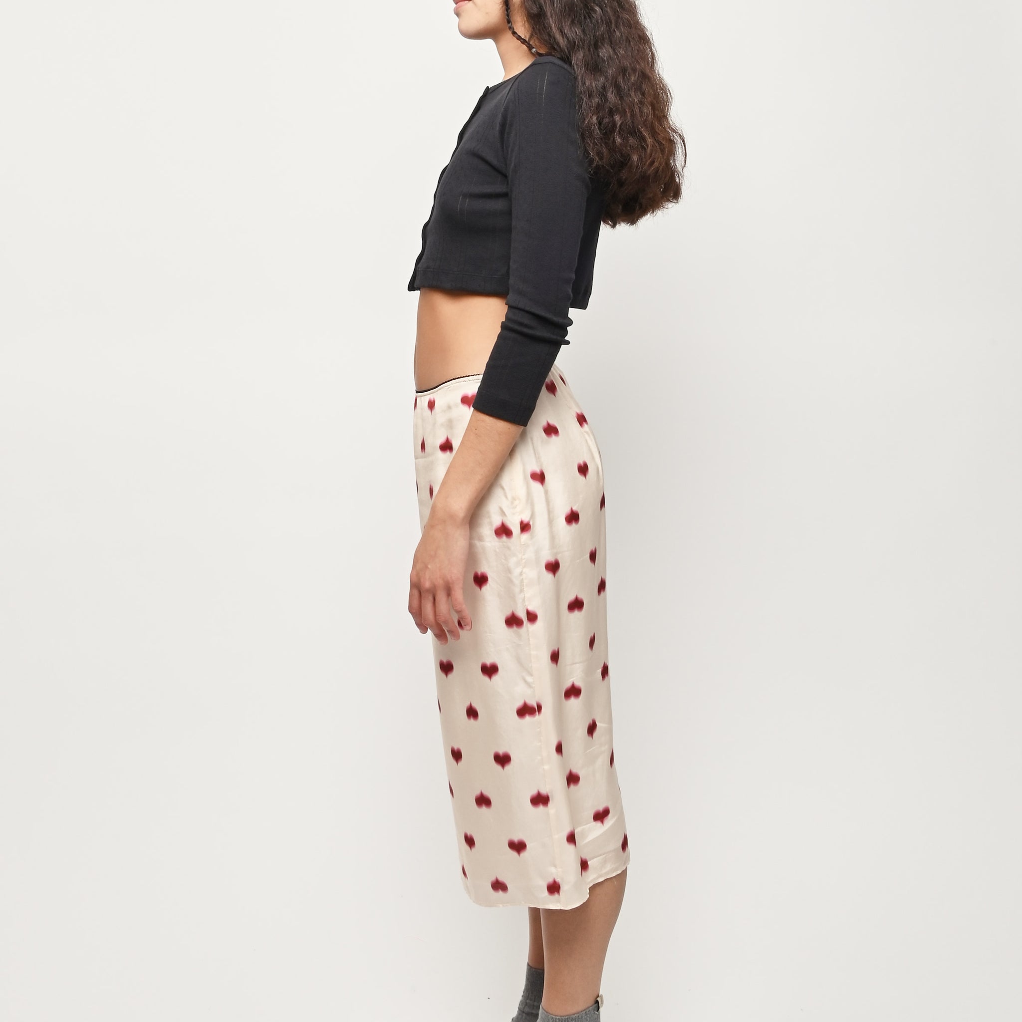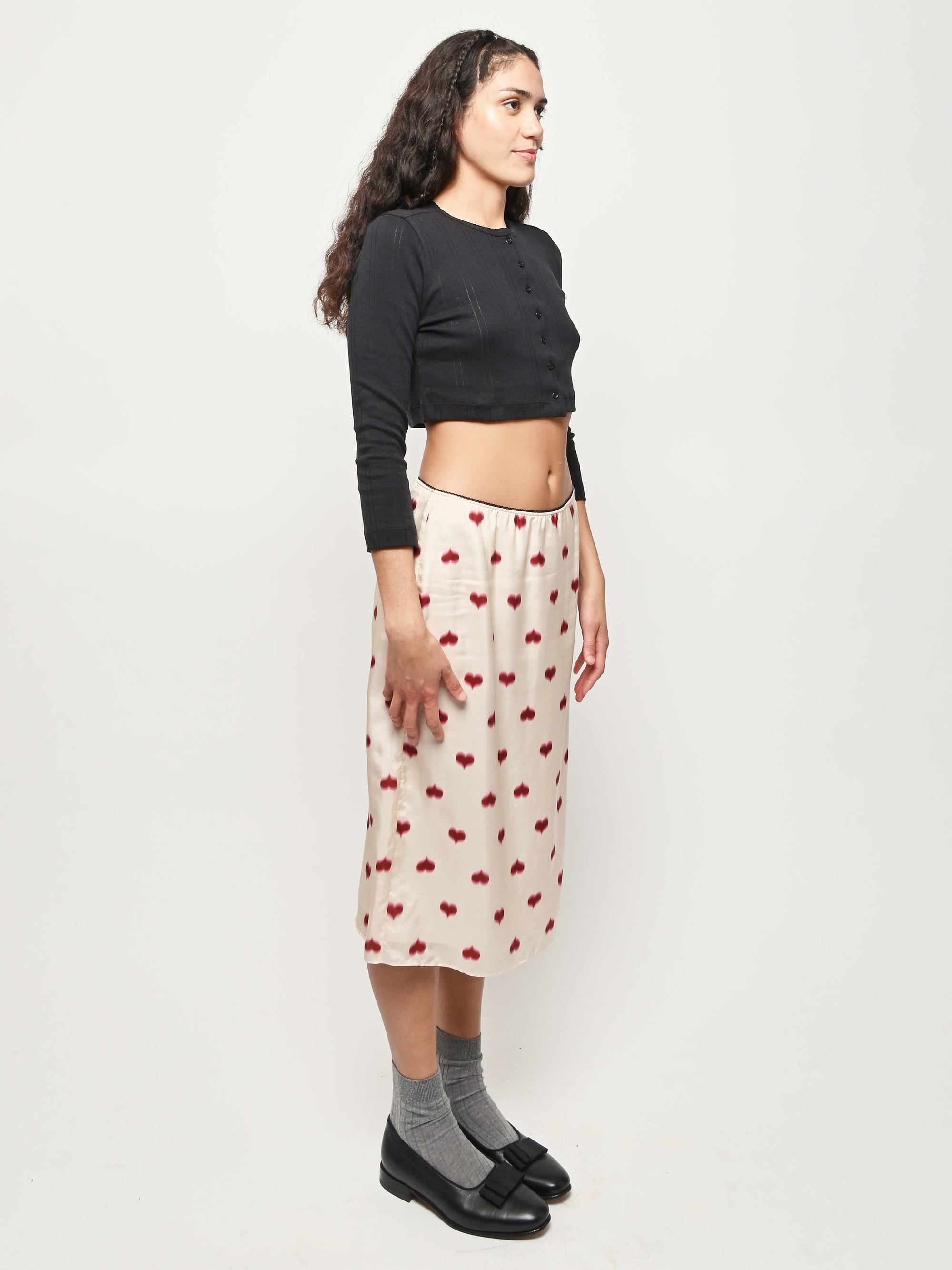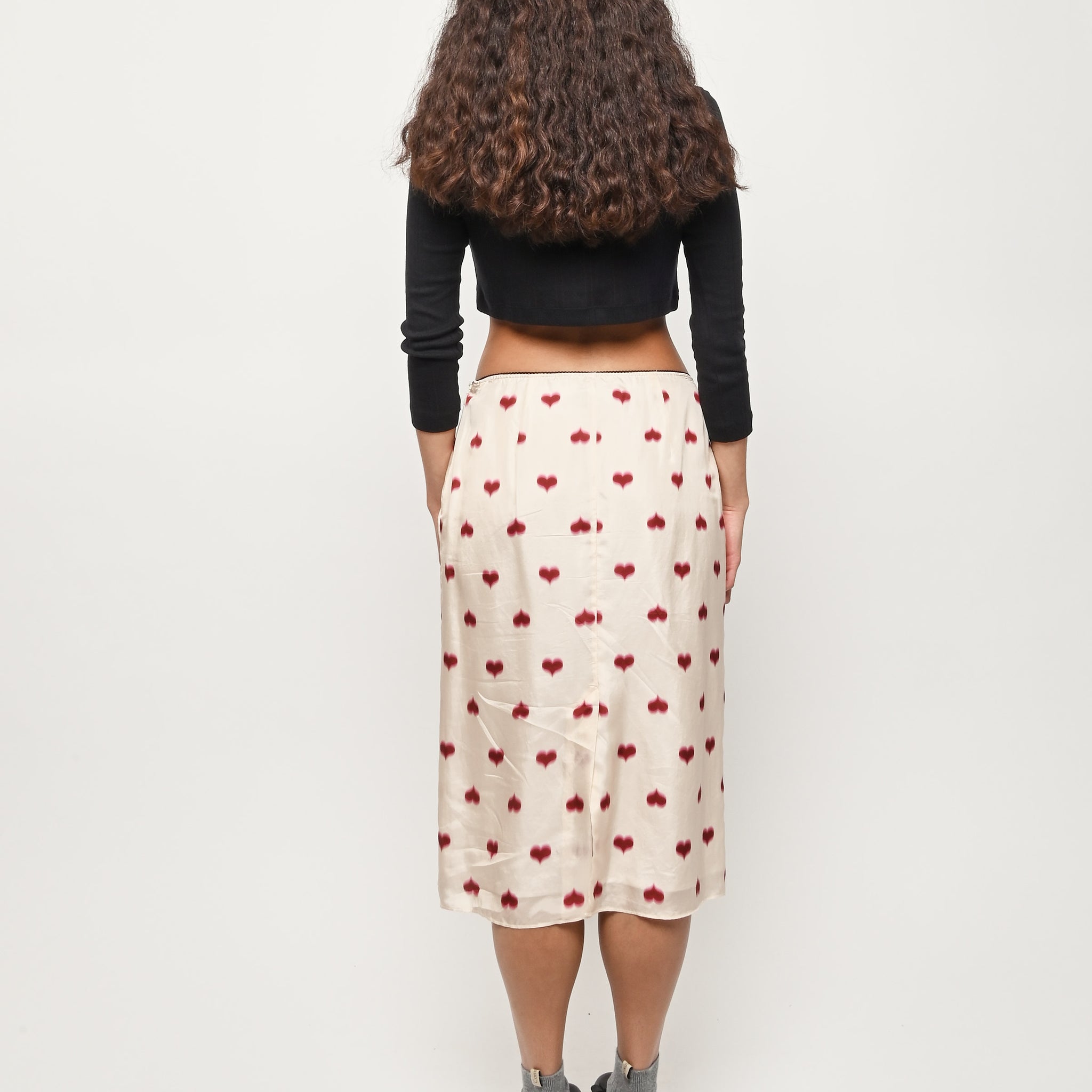 High-waisted, pull-on pencil skirt by Rachel Comey, in a playful printed silk. Features a contrast stitch at the waist and back vent for ease of movement.