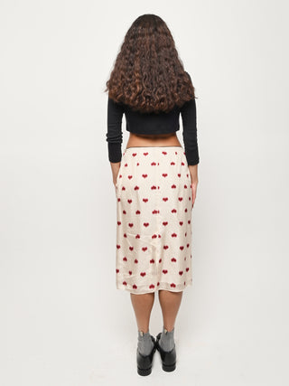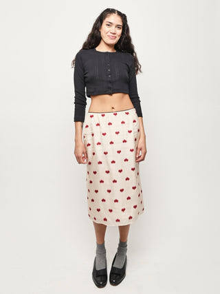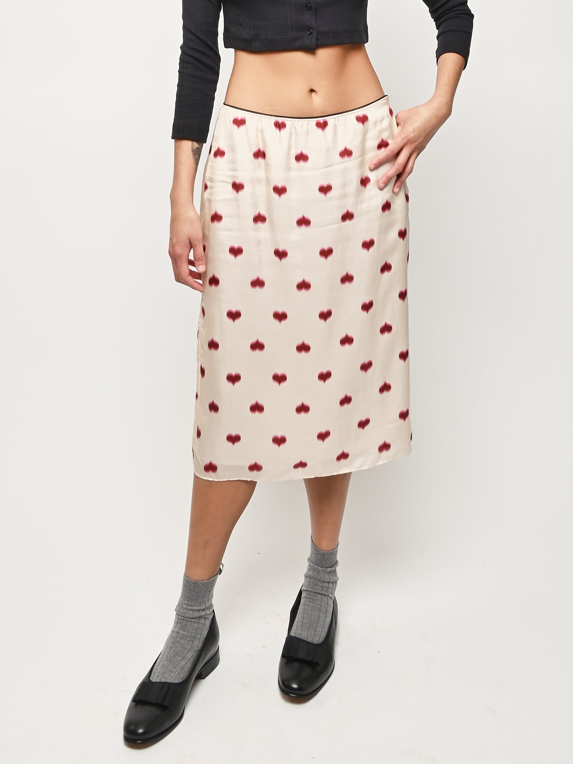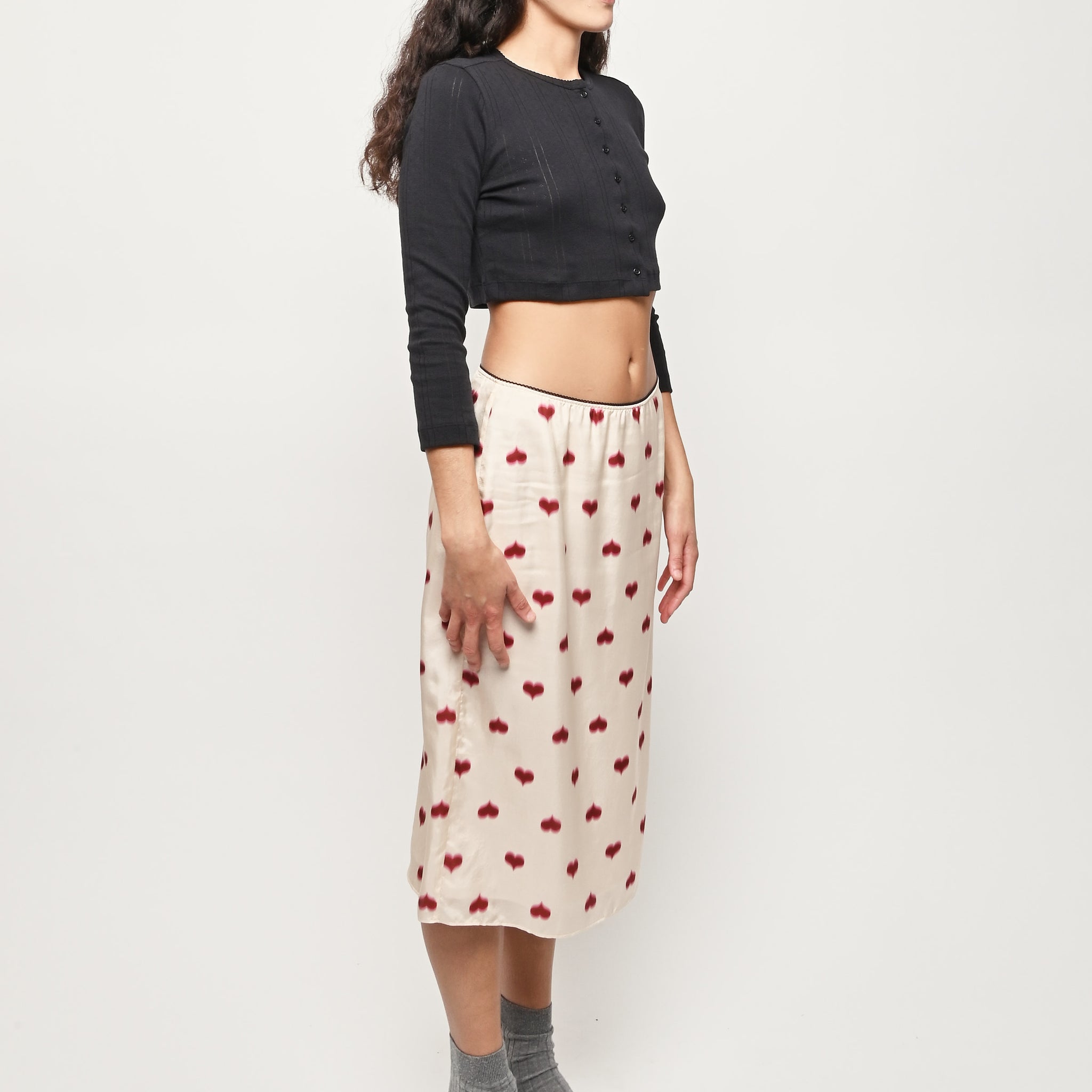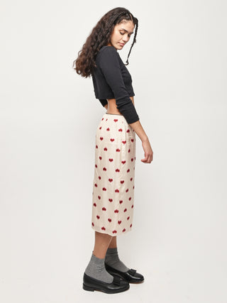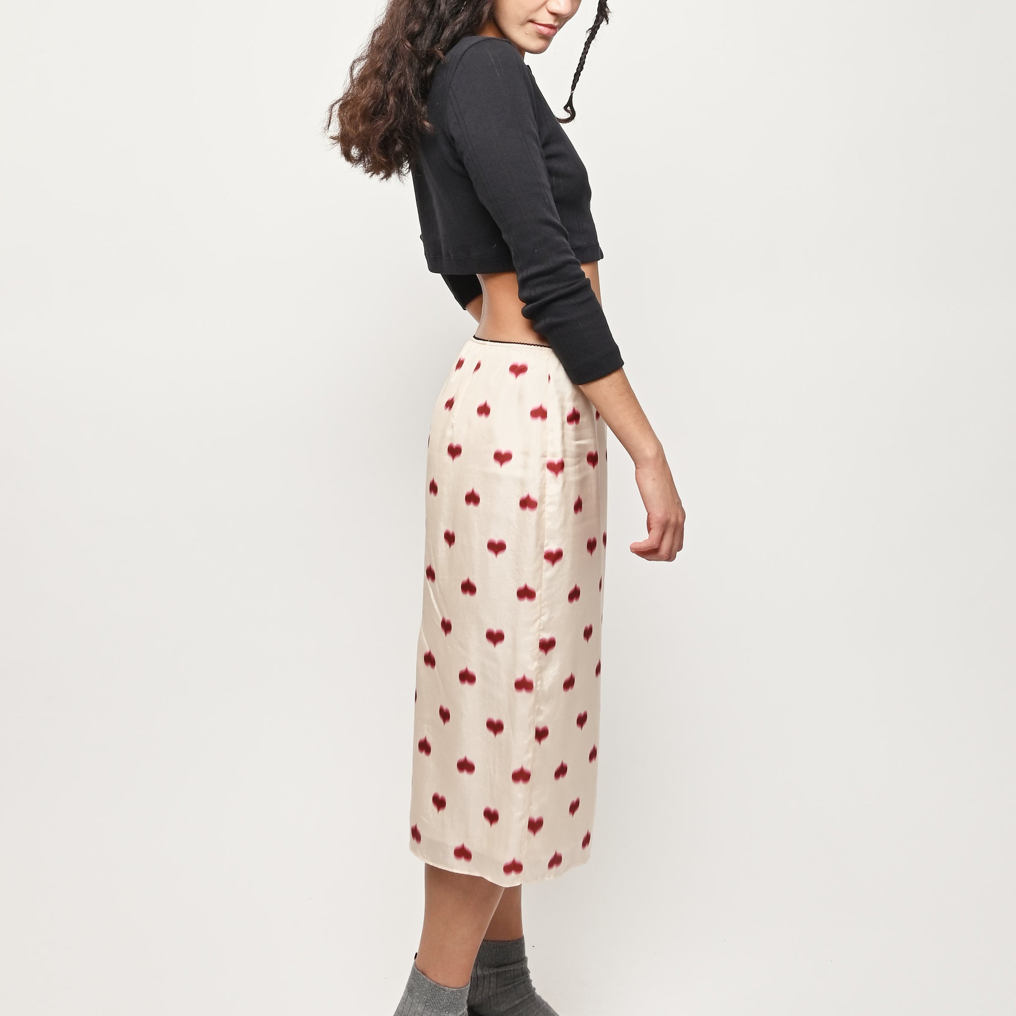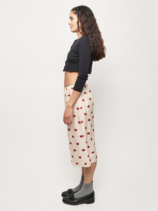 High-waisted, pull-on pencil skirt by Rachel Comey, in a playful printed silk. Features a contrast stitch at the waist and back vent for ease of movement.