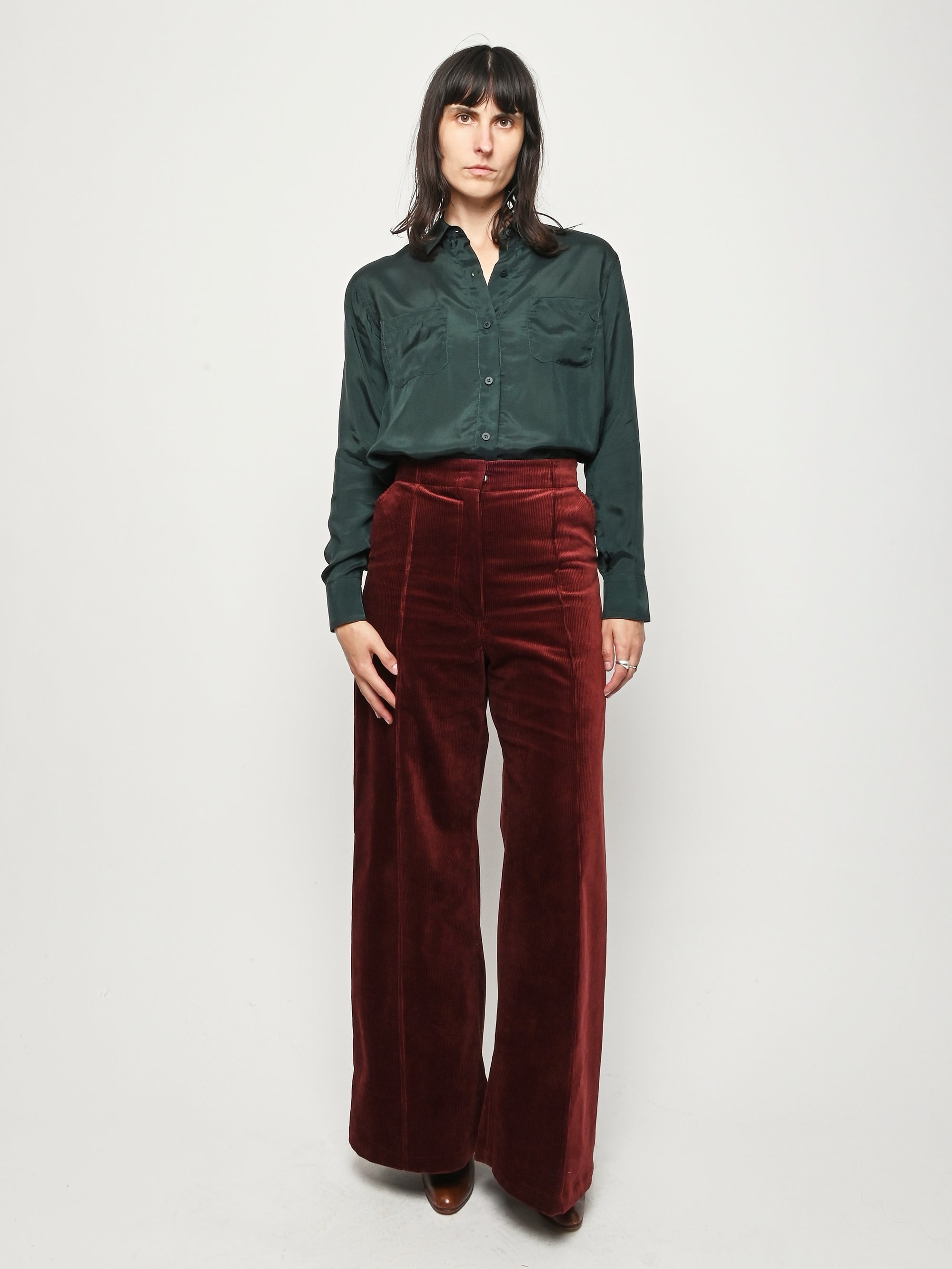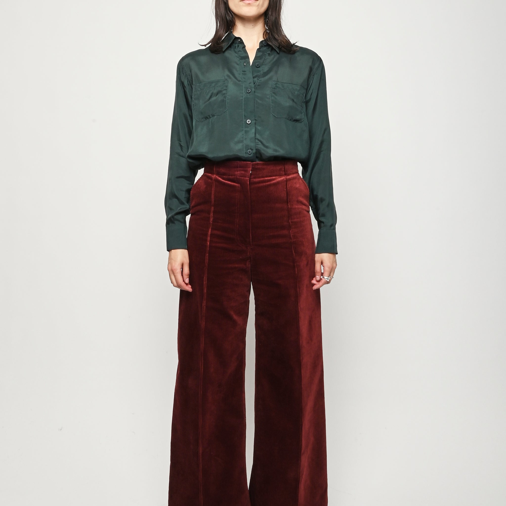 Tailored wide-leg pants with a subtly flaired hem, cut from luxe stretch corduroy.