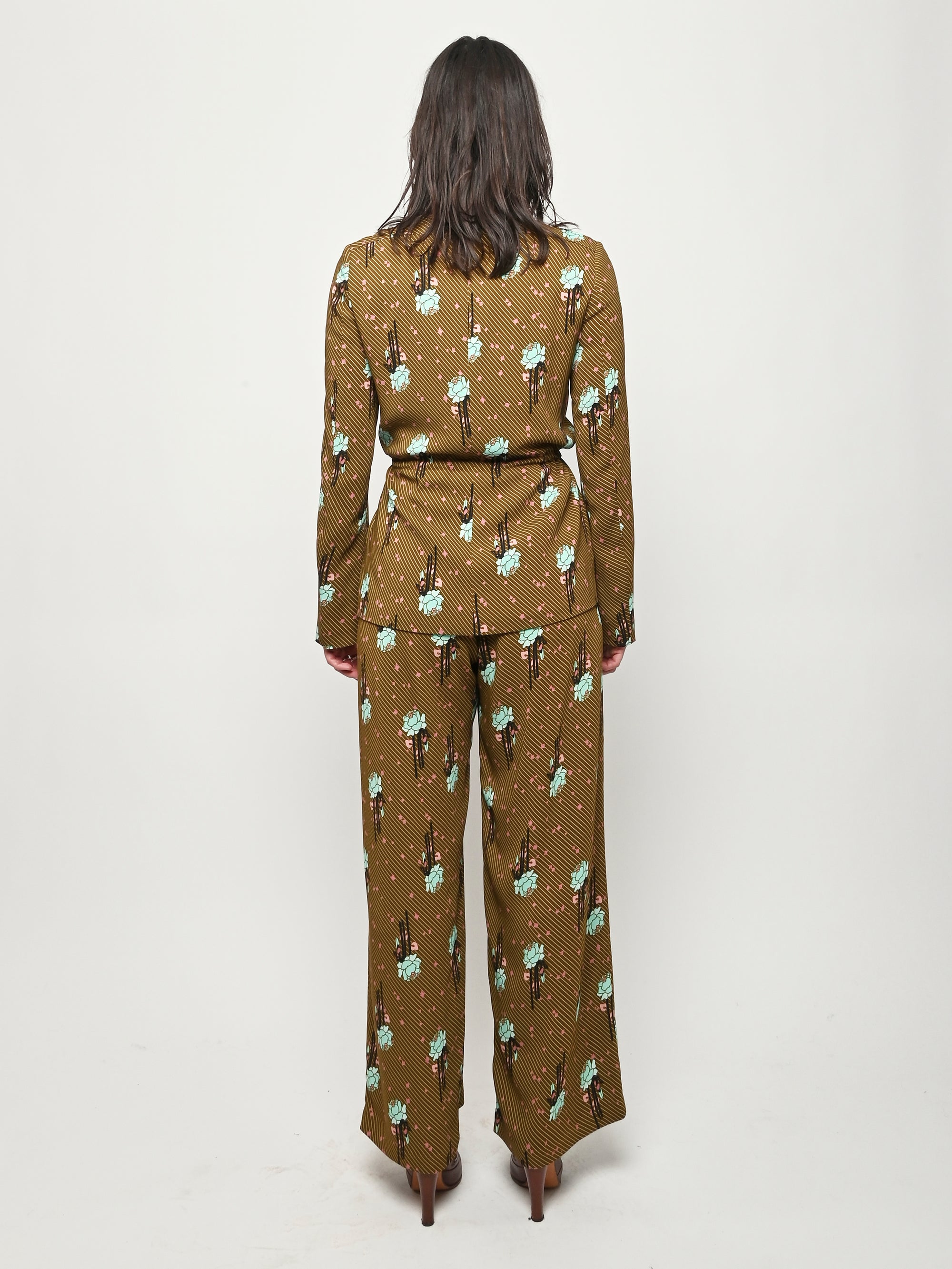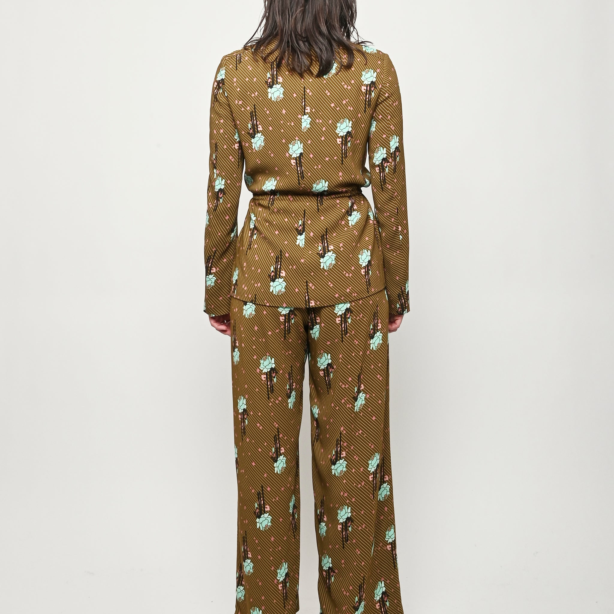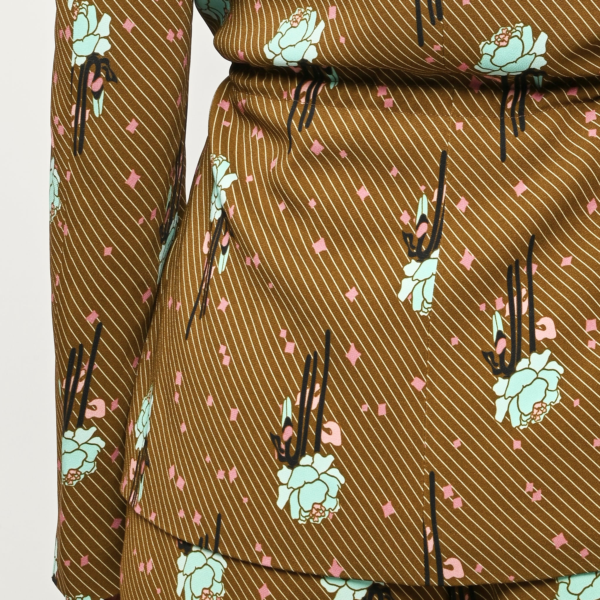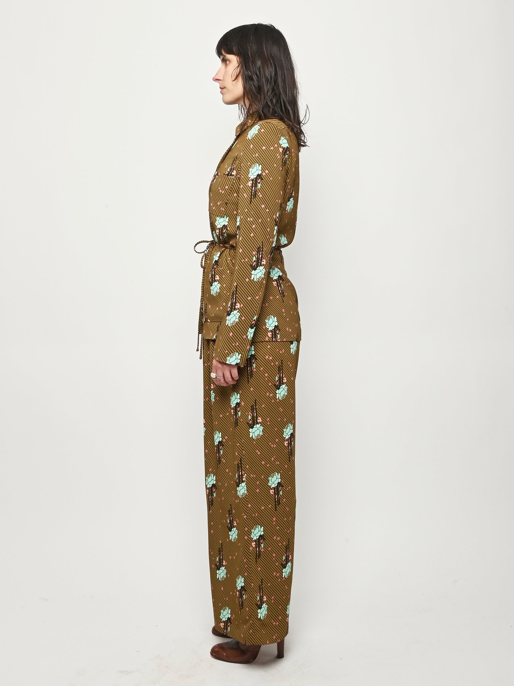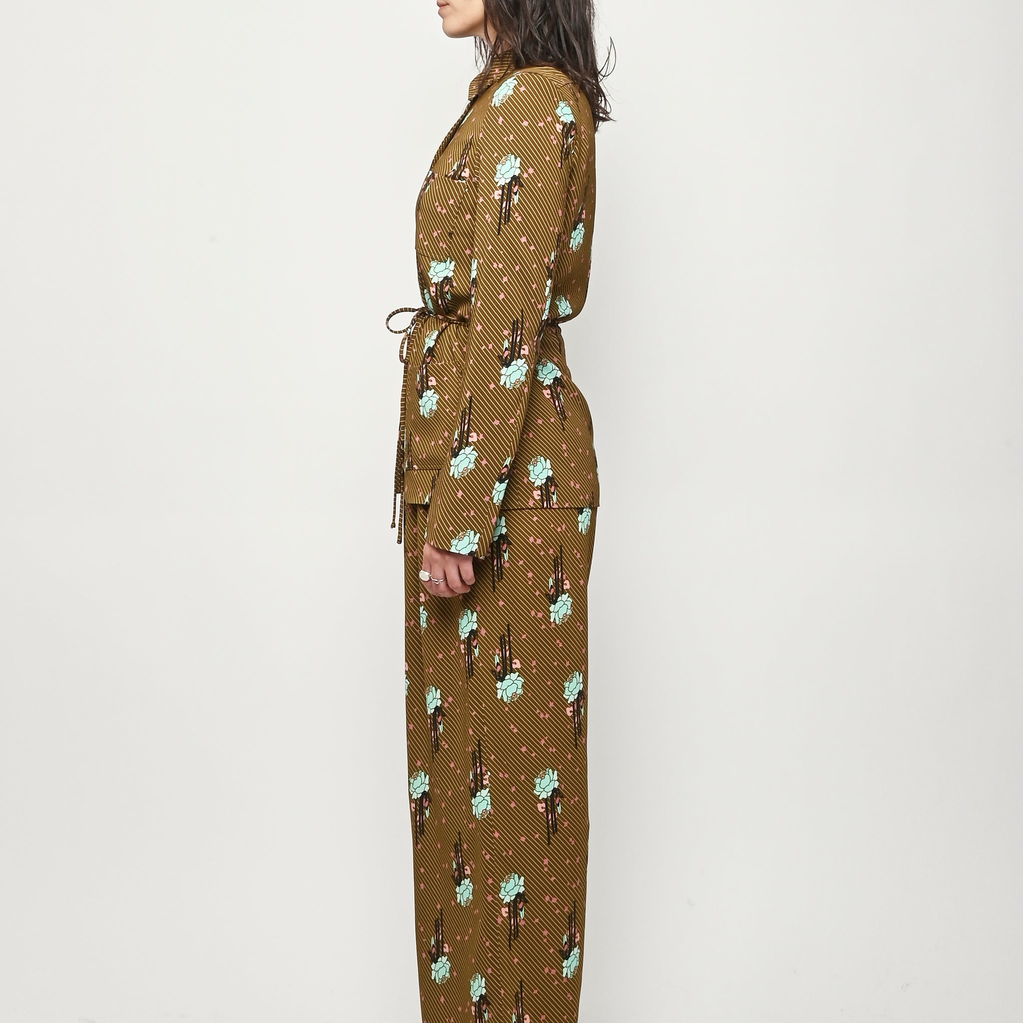 The Bronze Ana Jacket by Rachel Comey is a slightly fitted, buttoning top, which can be worn alone as a blouse, or as a light outer layer. It features a tie at the waist, and patch pockets on the hips and chest.