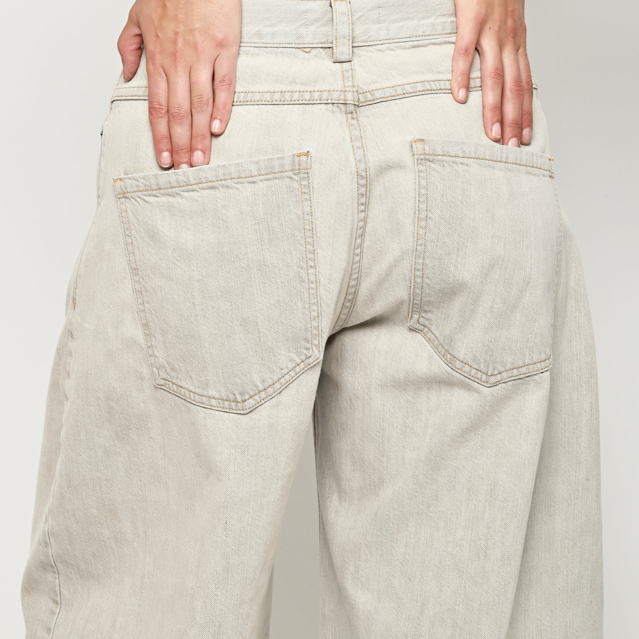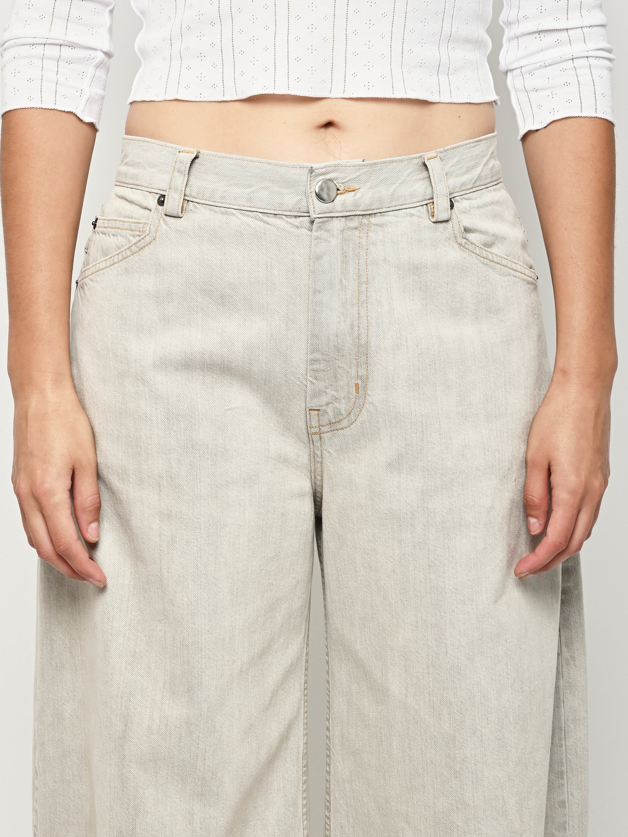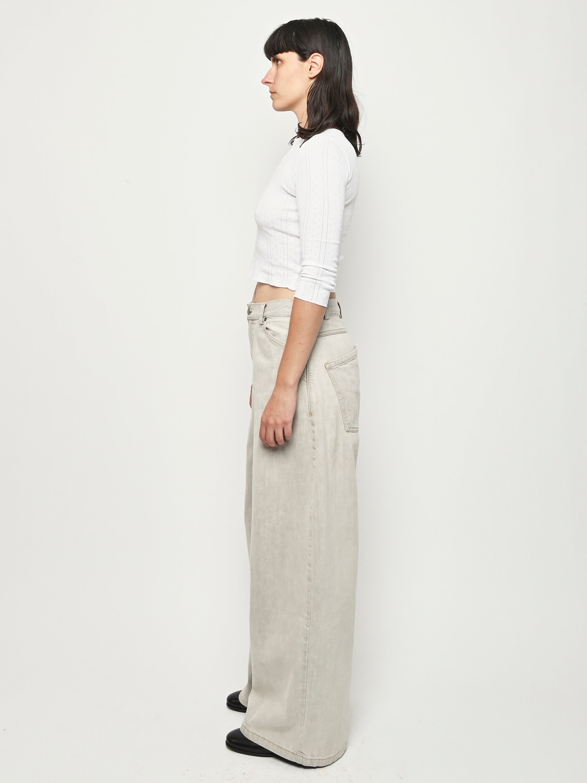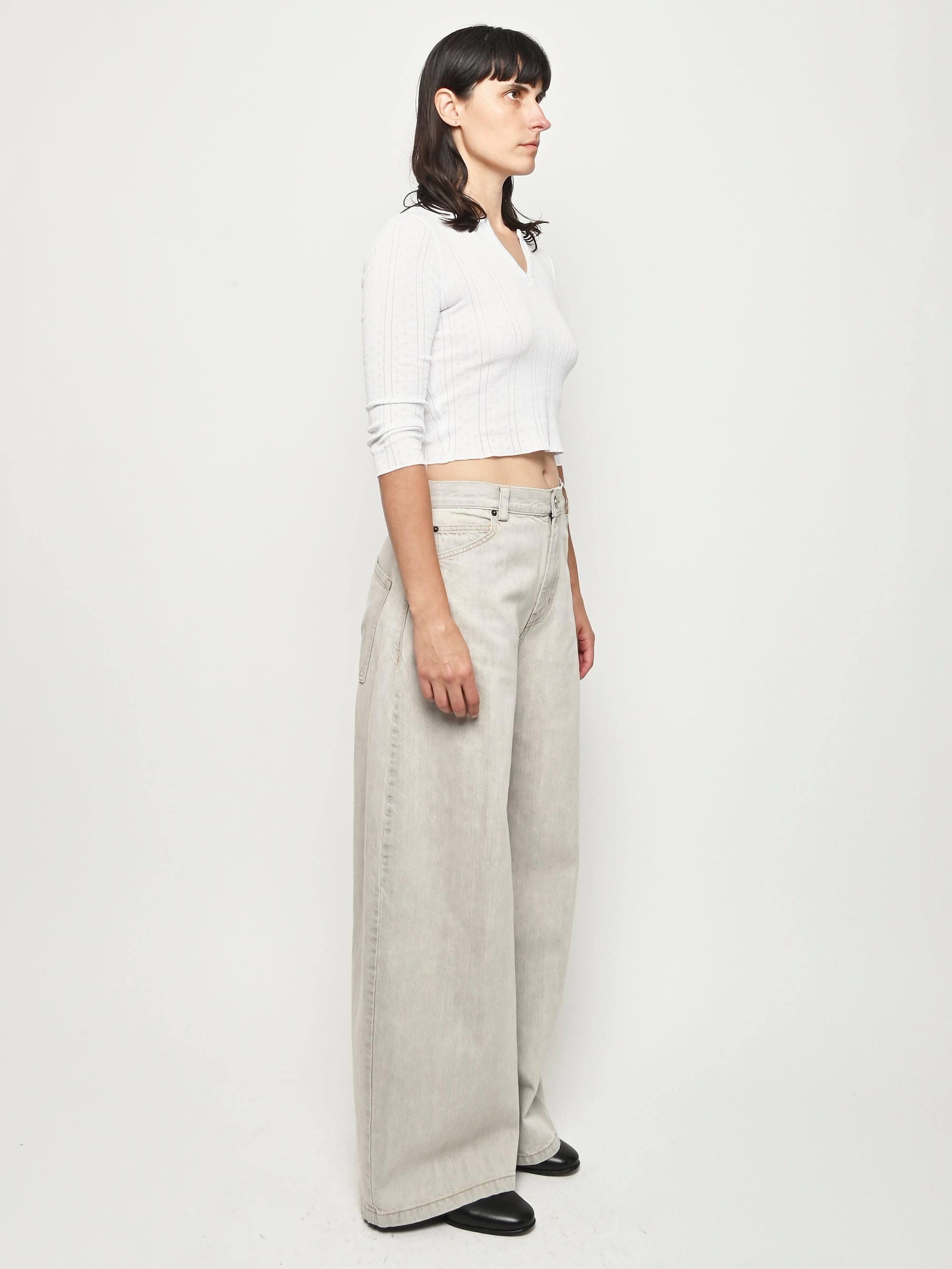 Oversized wide-leg jeans in Washed Salinas Denim by Rachel Comey, with five-pocket styling. Features a zipper and button fly closure. Made in Los Angeles using premium Japanese denim.