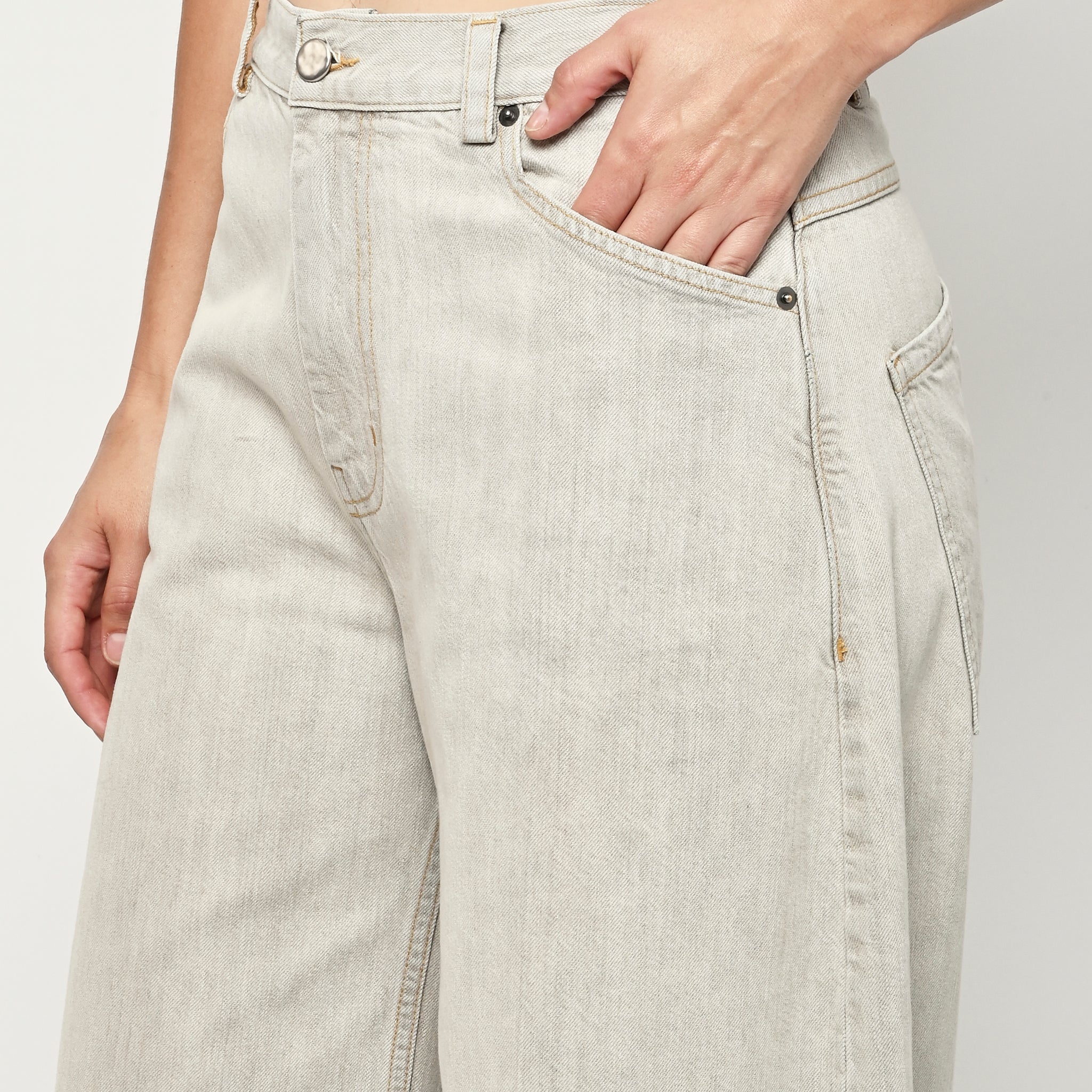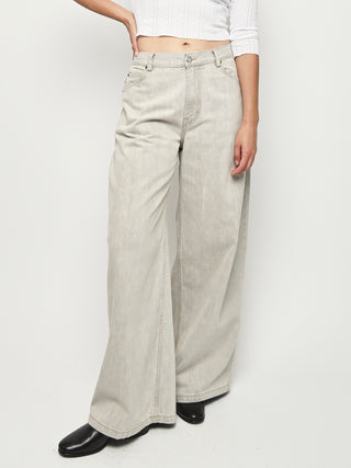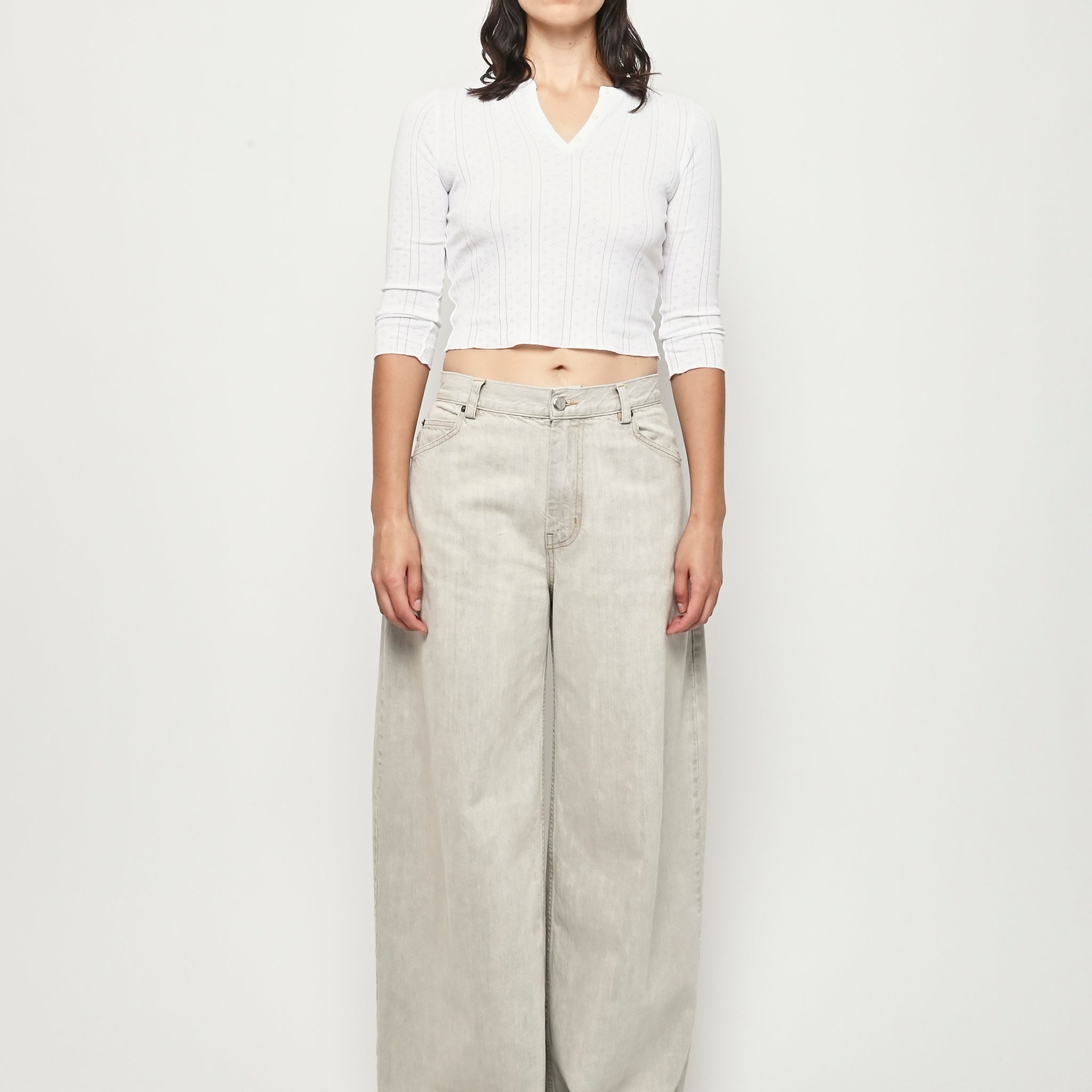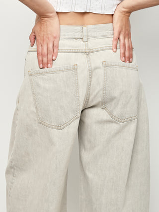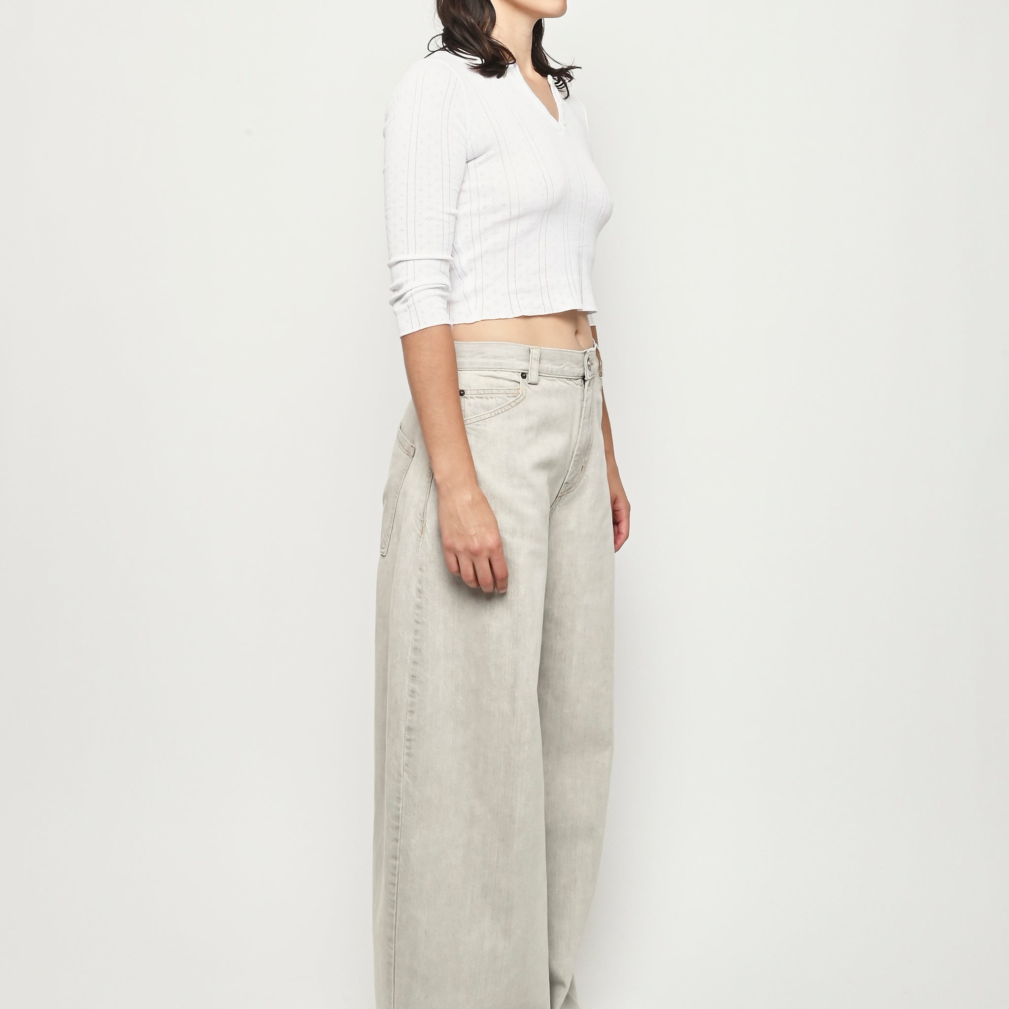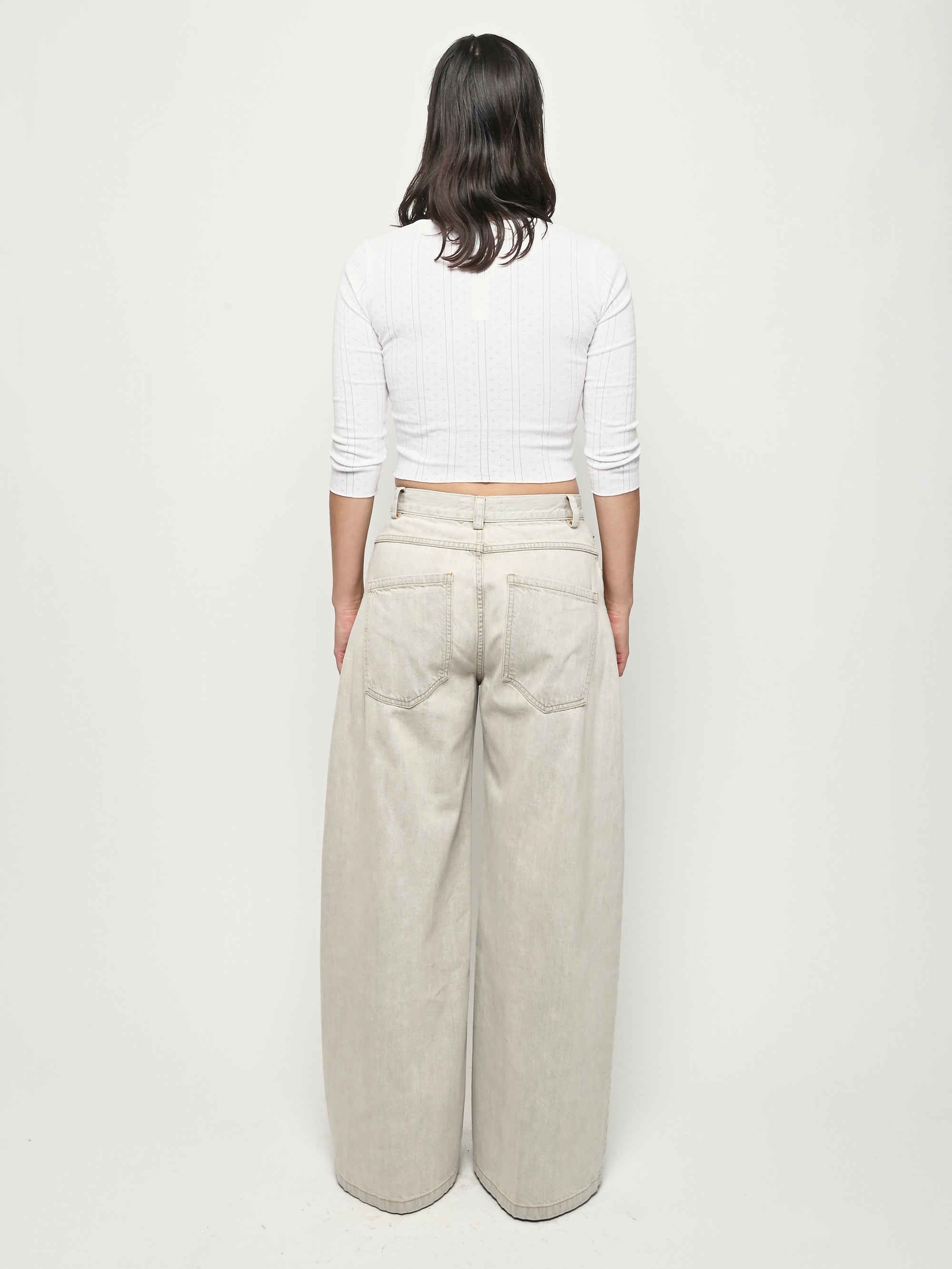 Oversized wide-leg jeans in Washed Salinas Denim by Rachel Comey, with five-pocket styling. Features a zipper and button fly closure. Made in Los Angeles using premium Japanese denim.