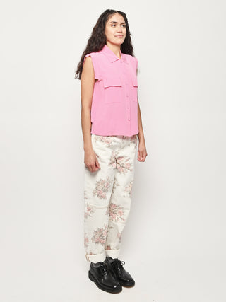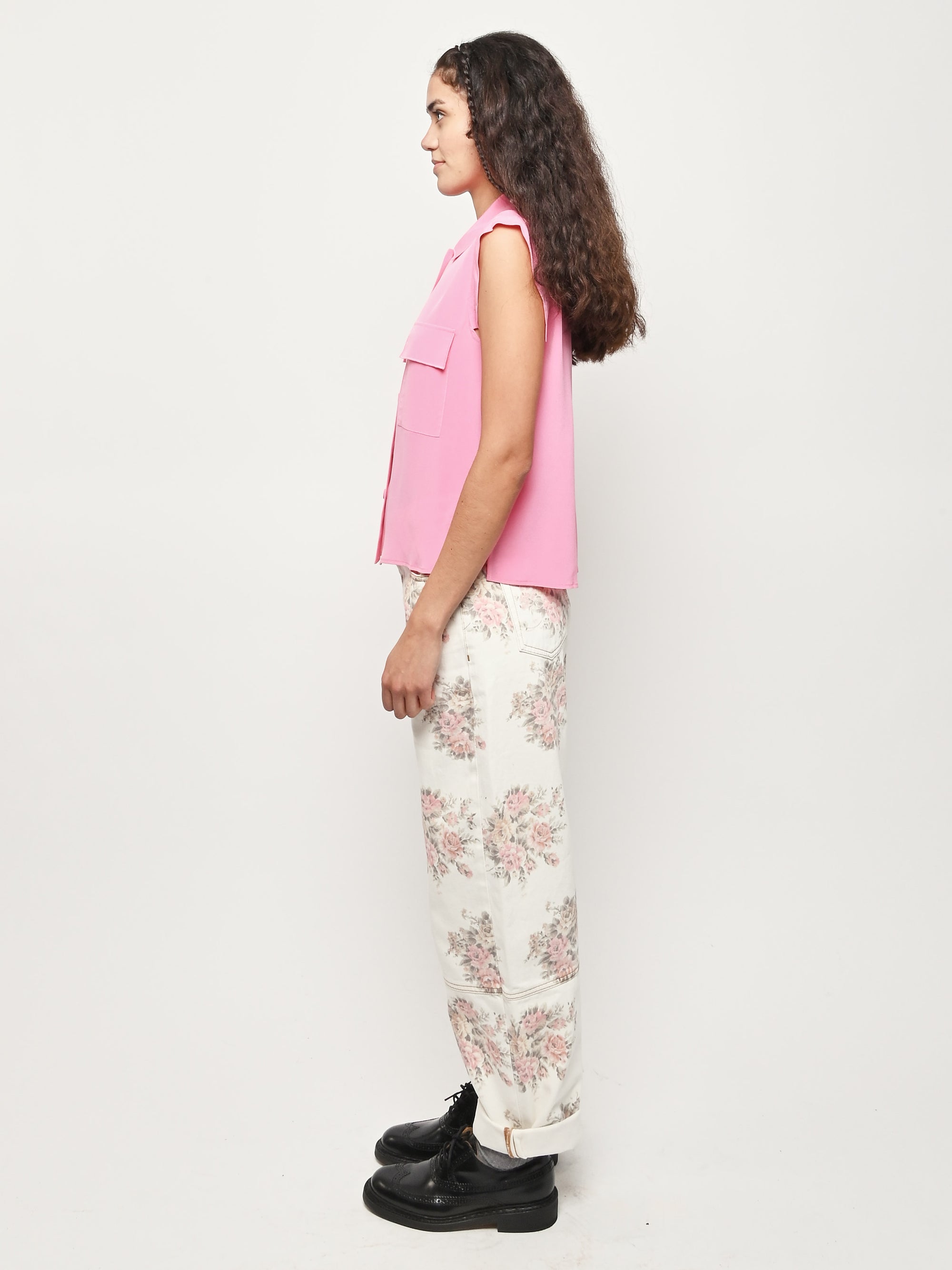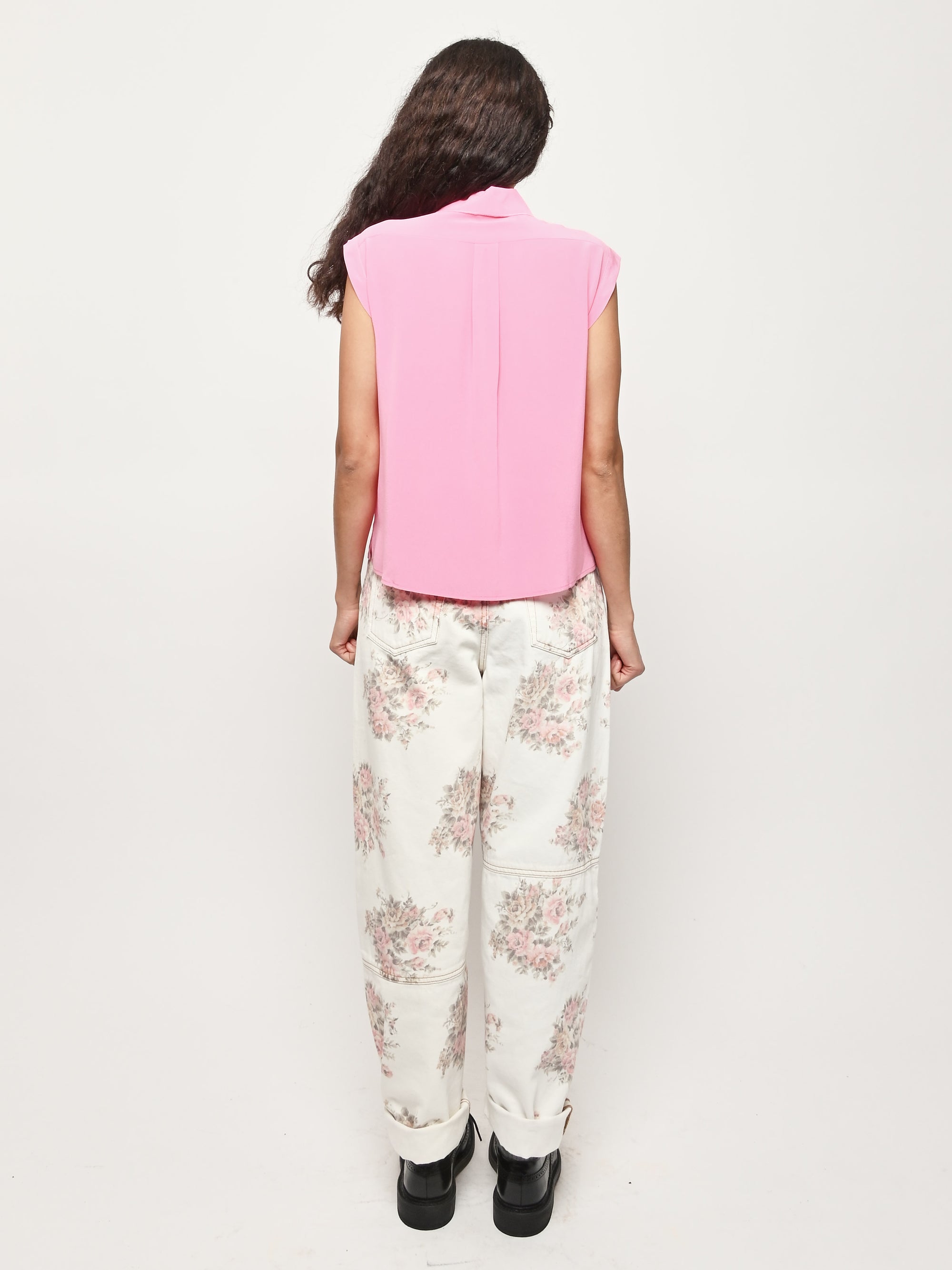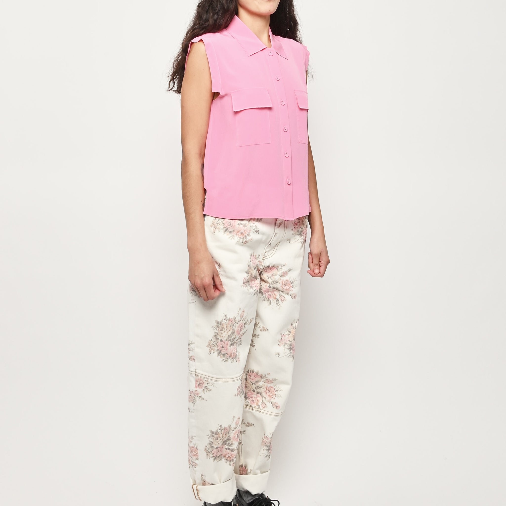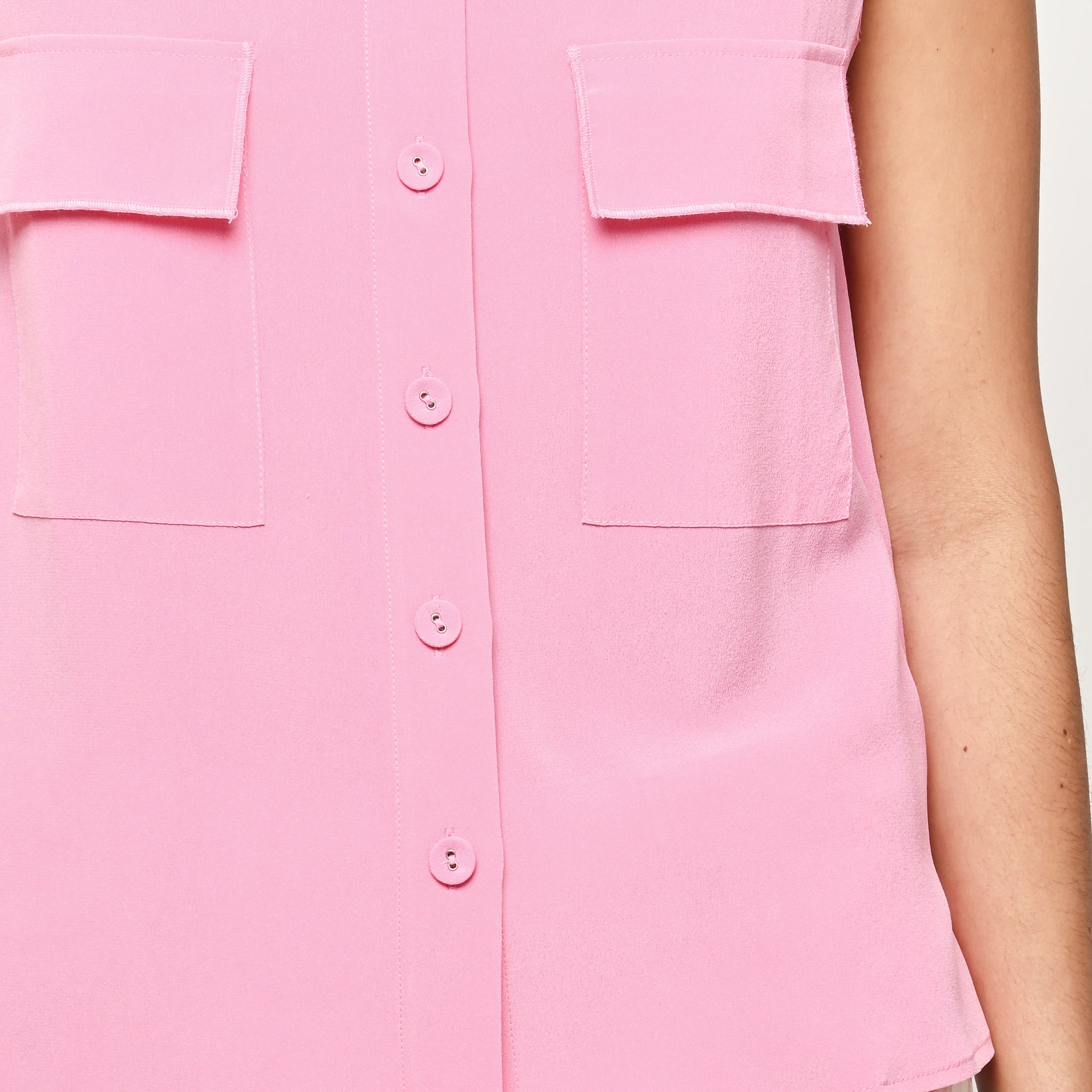 Open-sleeved button-up top by Rachel Comey cut from pink sandwashed silk. Features a classic collar and two front patch pockets.