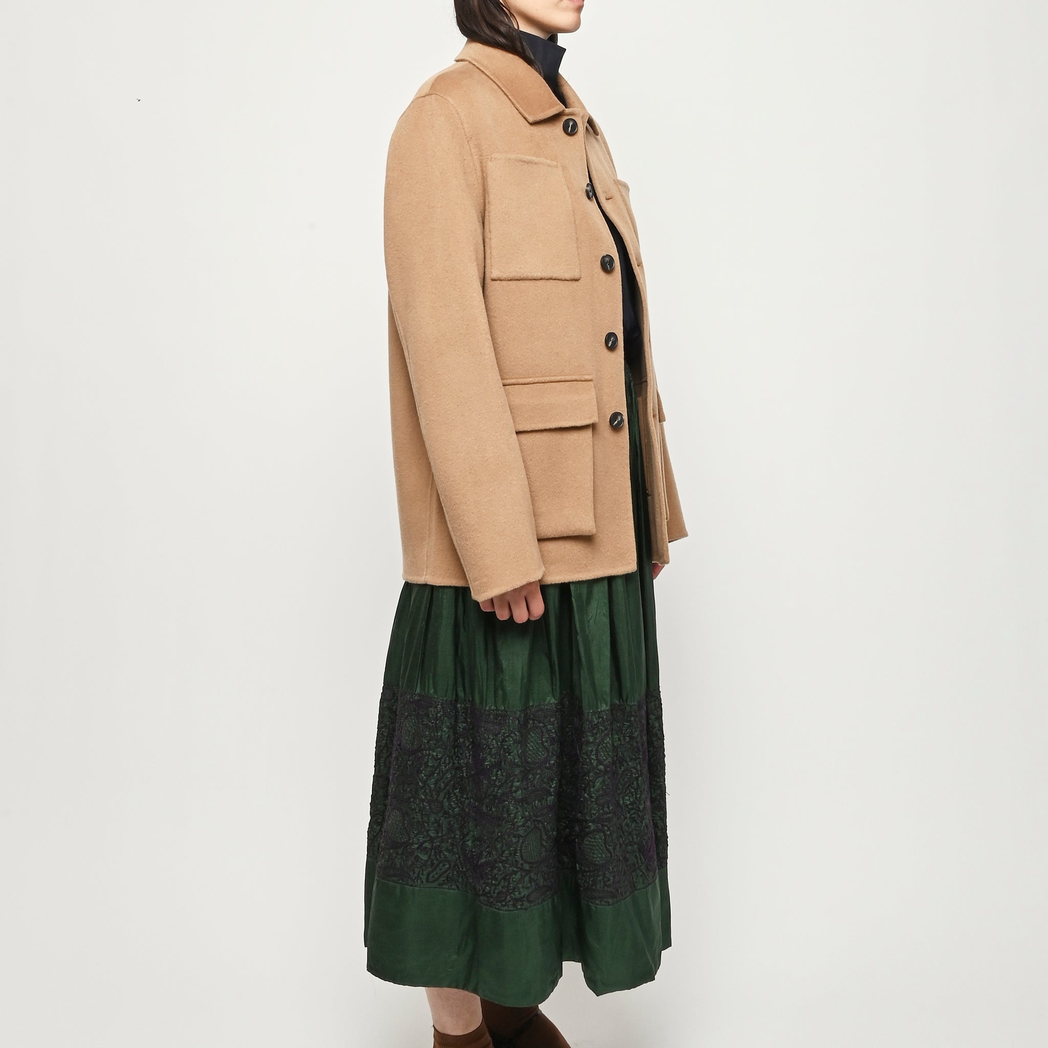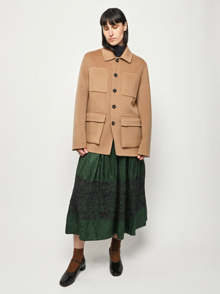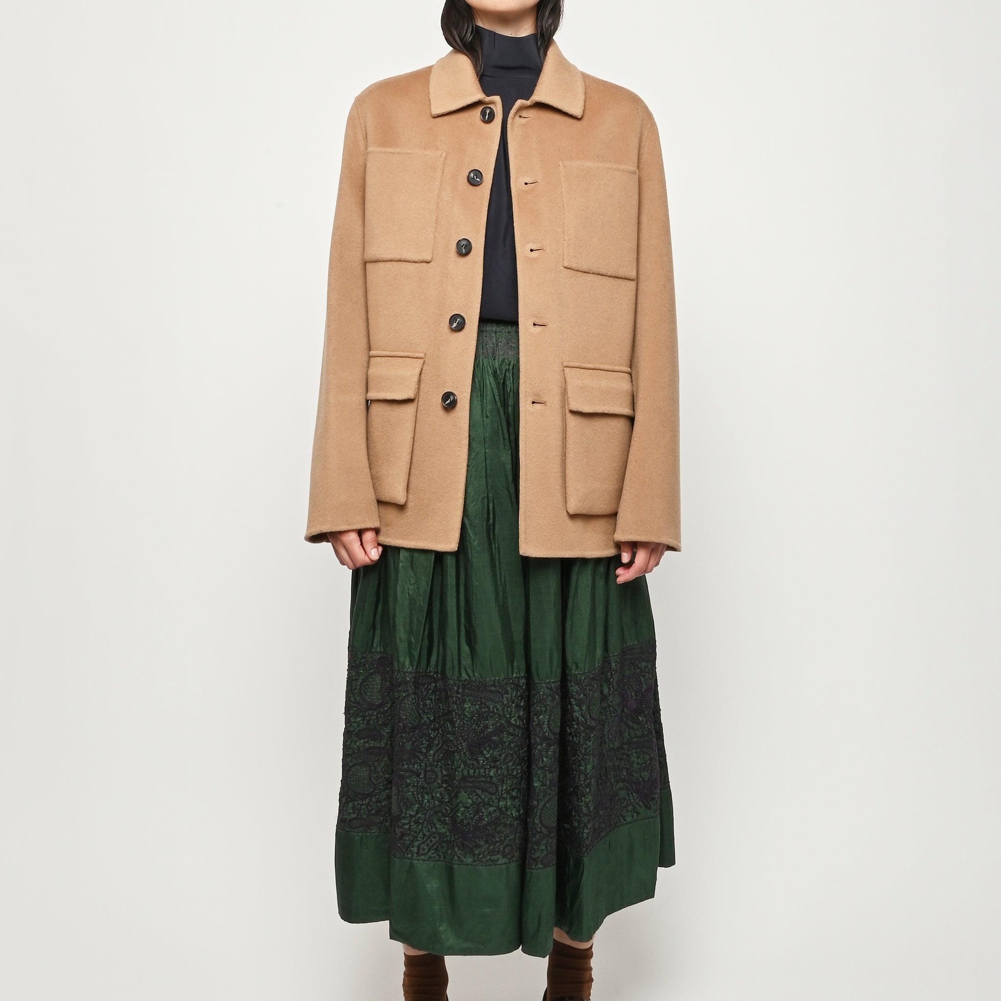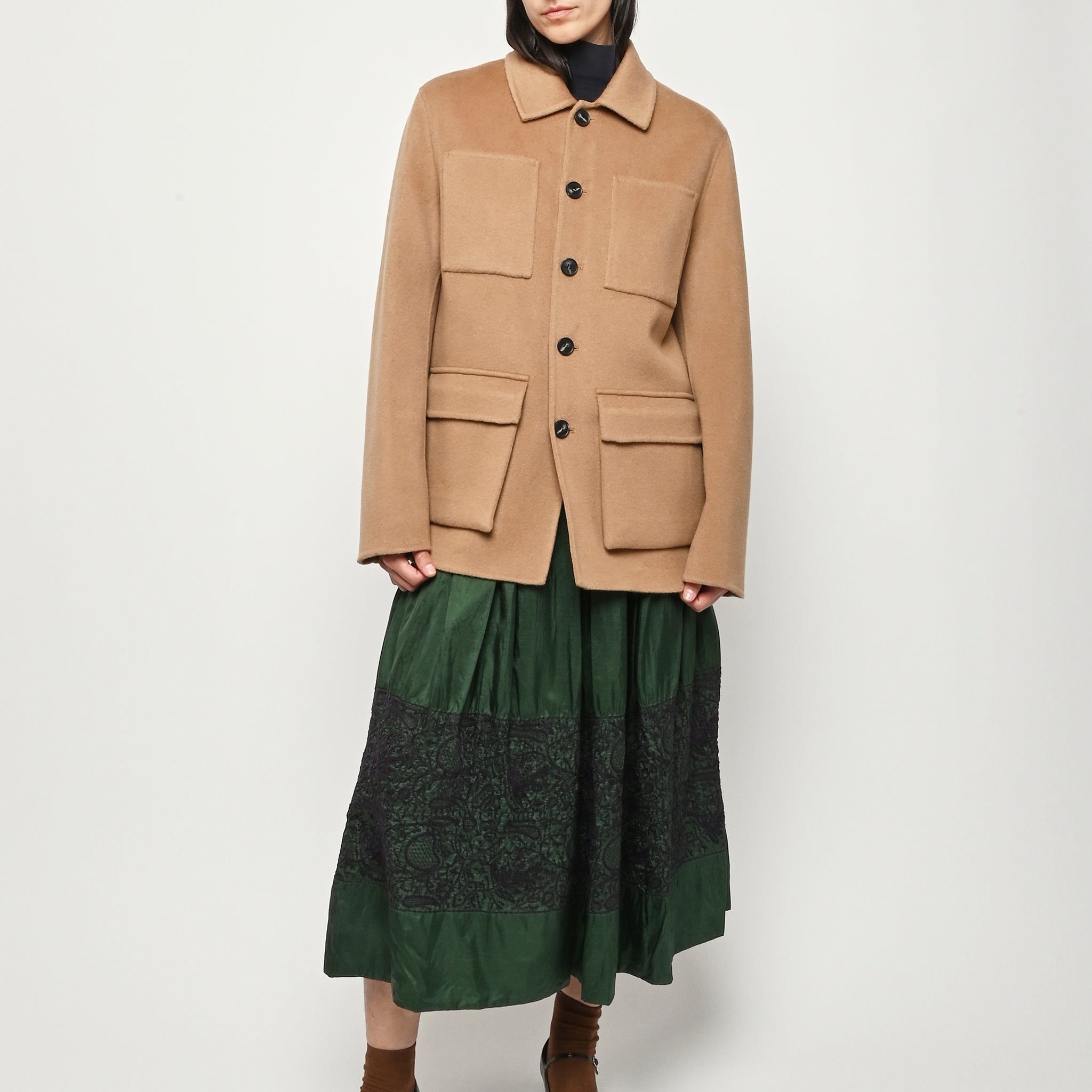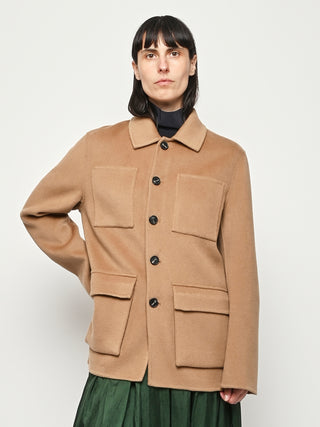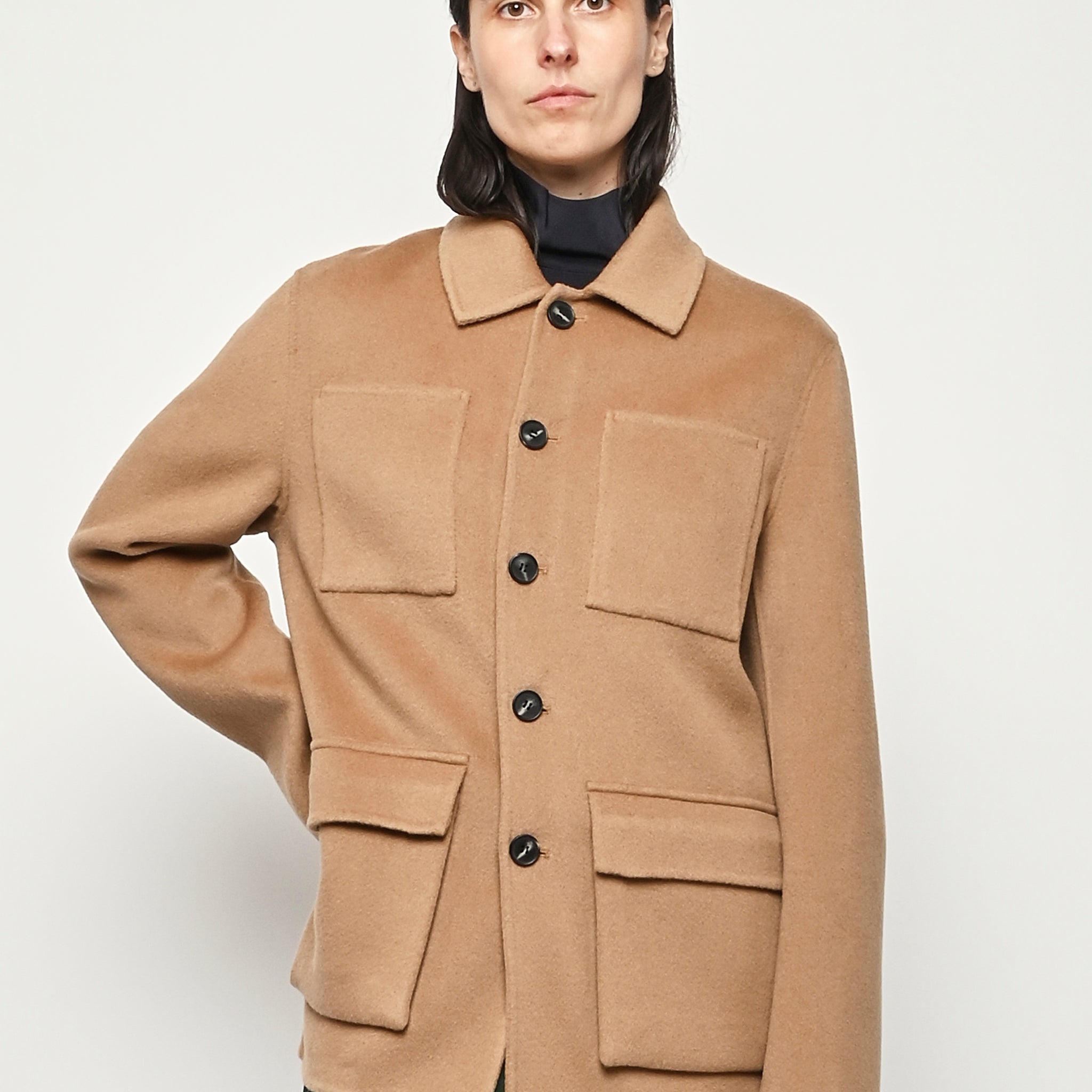 Woven jacket with pockets and buttons in a wool and cashmere blend.