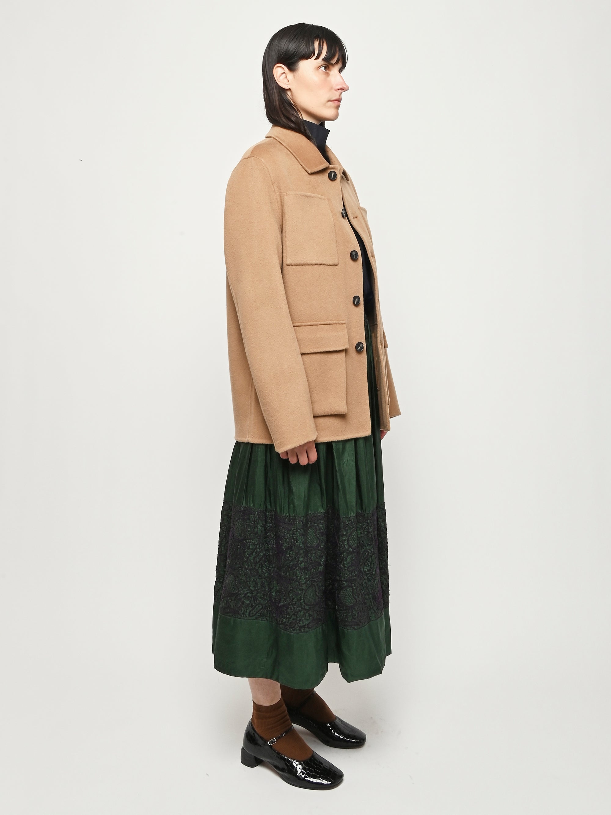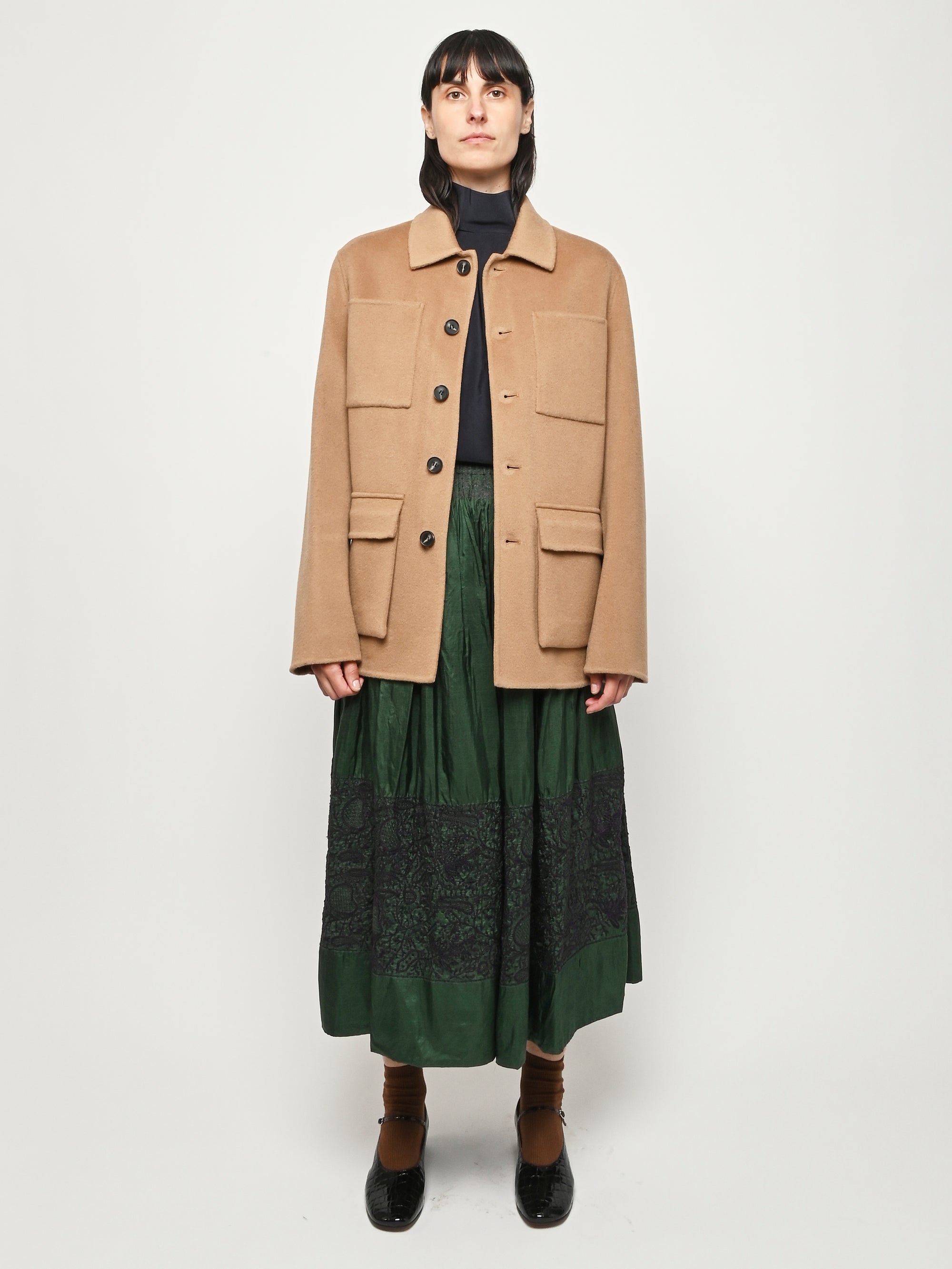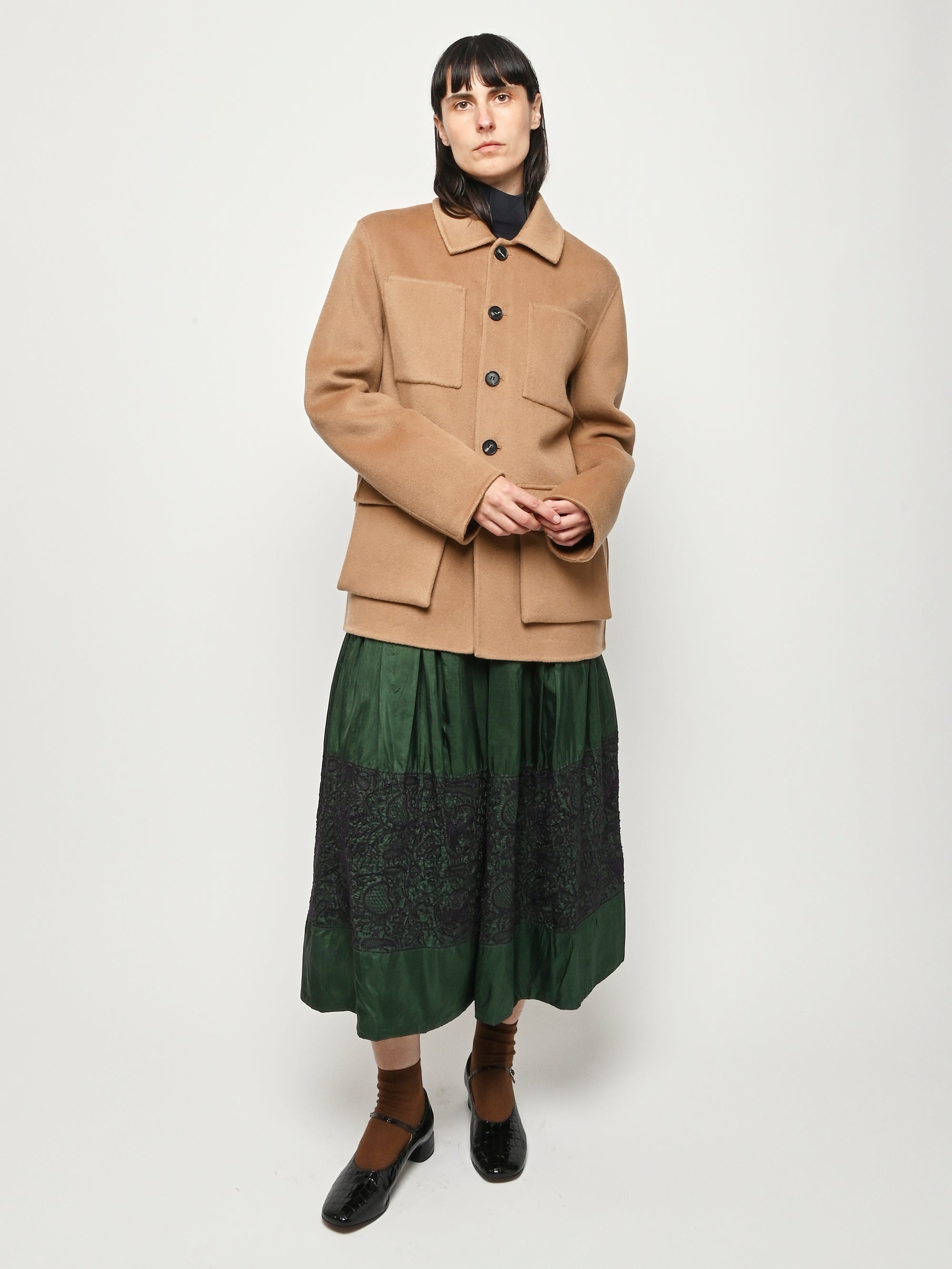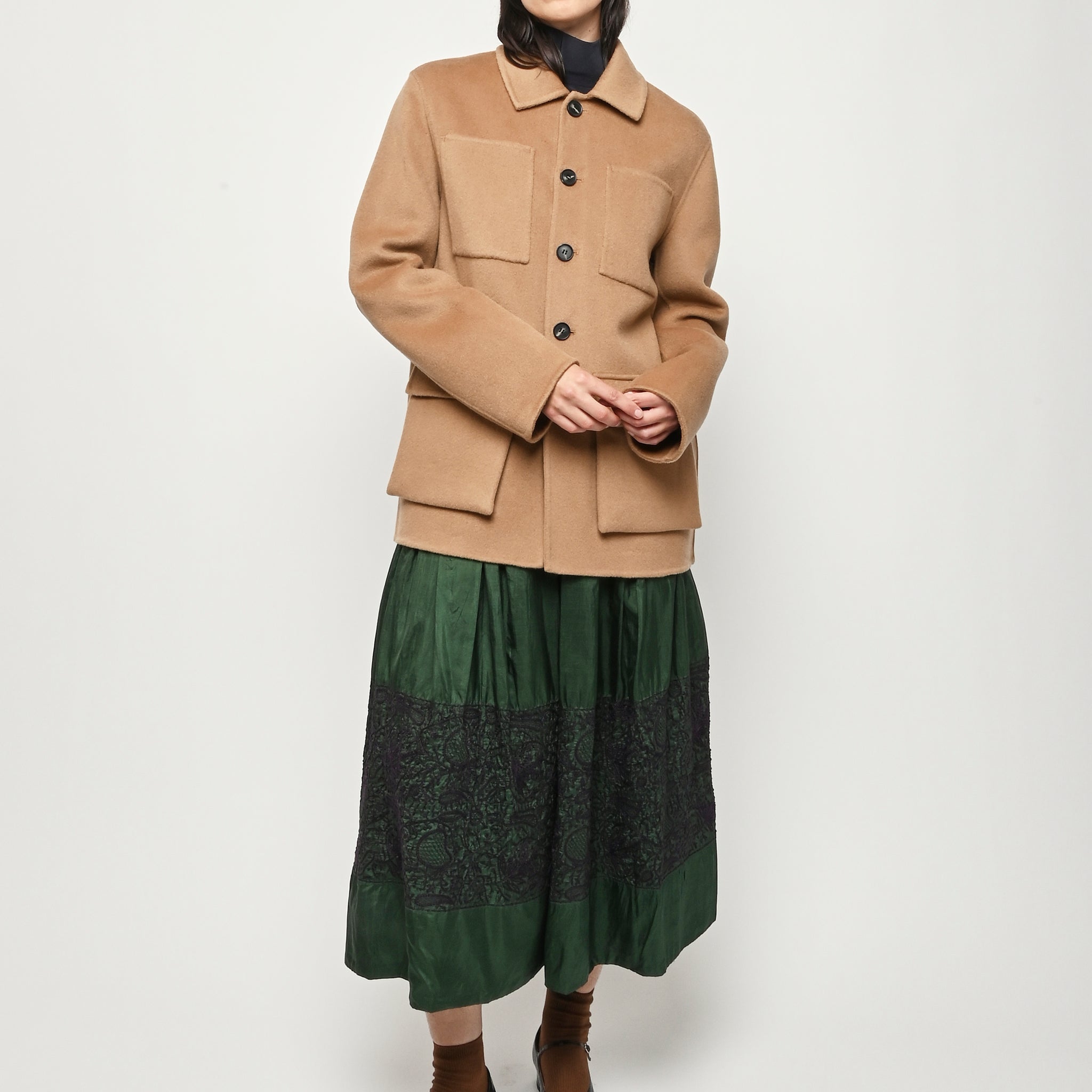 Woven jacket with pockets and buttons in a wool and cashmere blend.