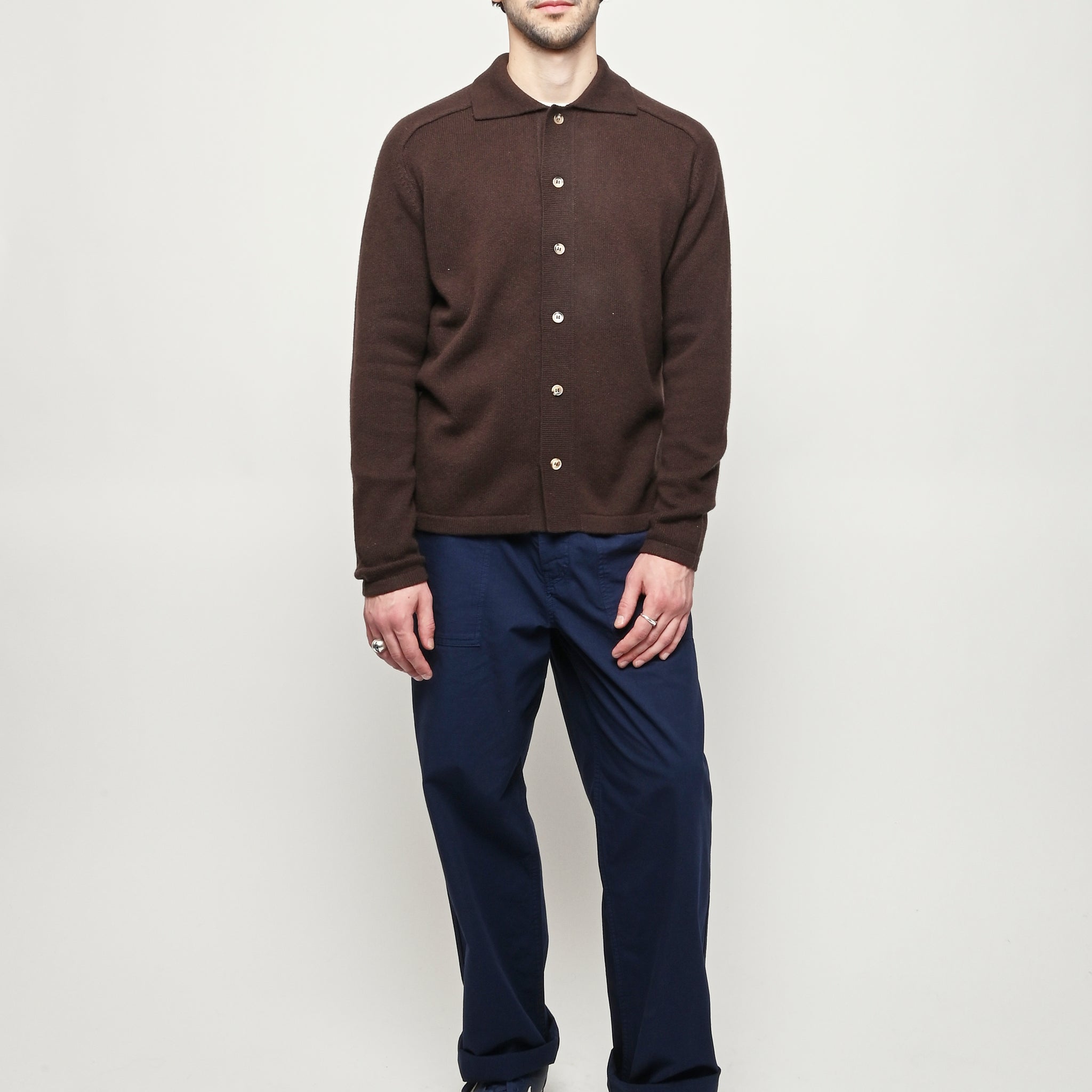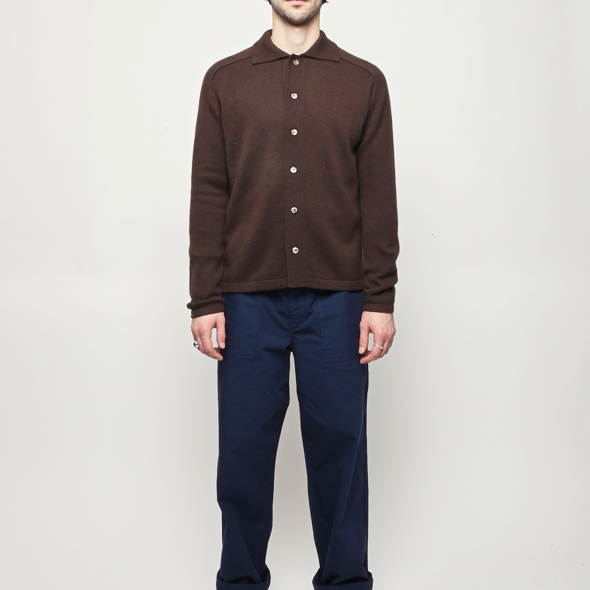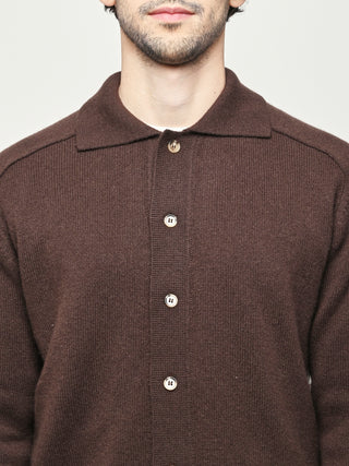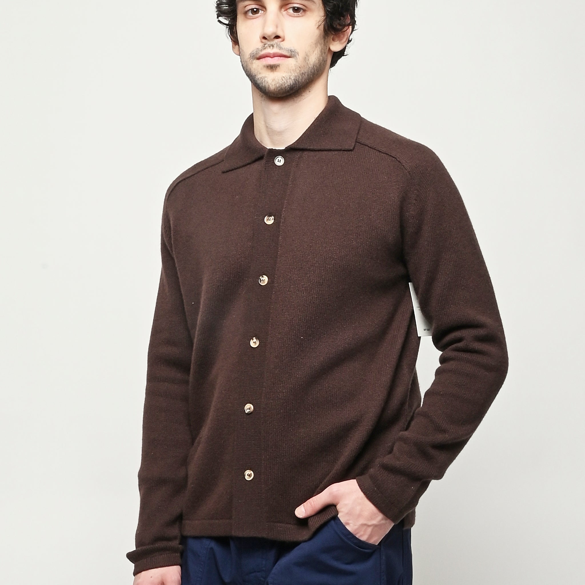 Men's plain knit shirt by Soft Goat in 100% cashmere, with front button closure.