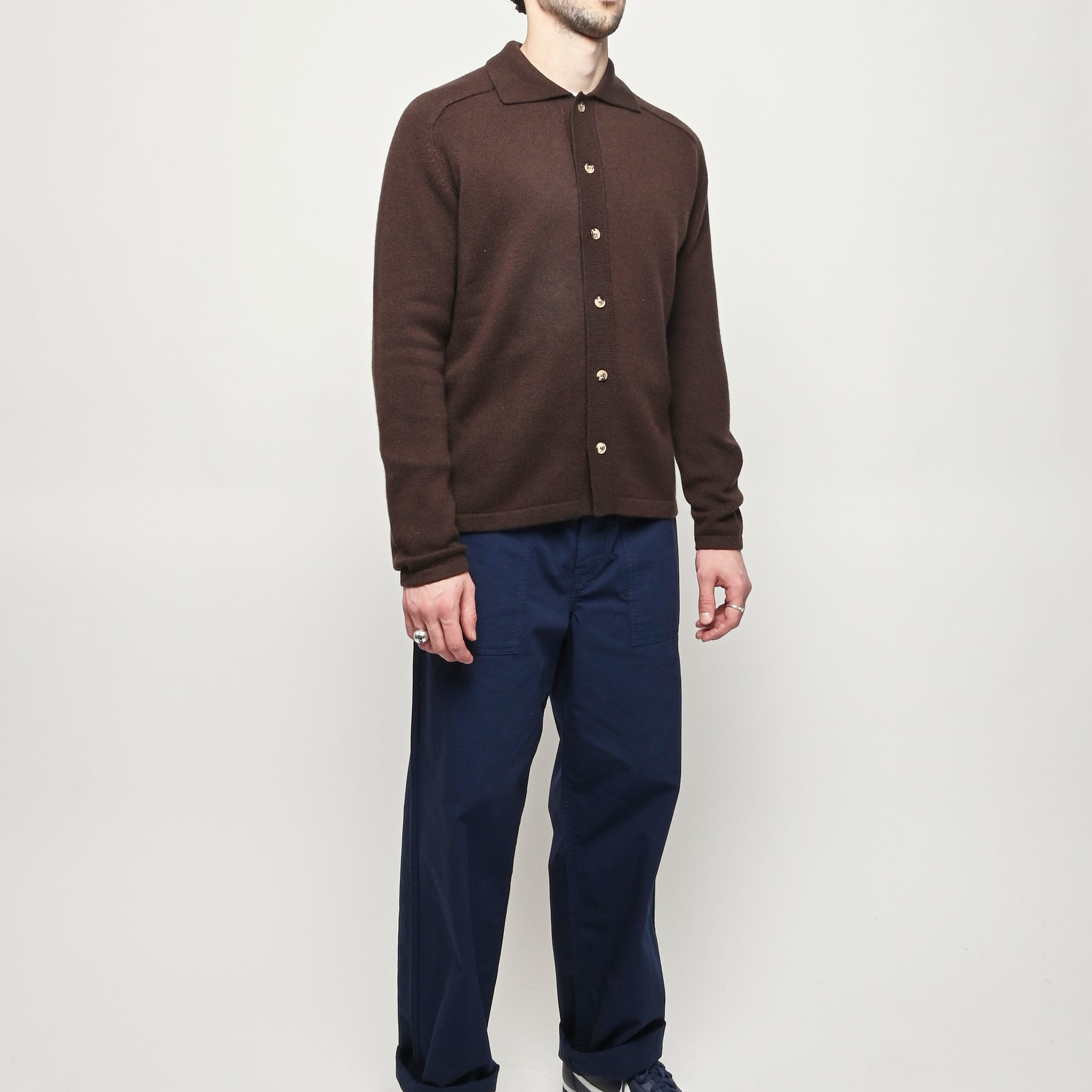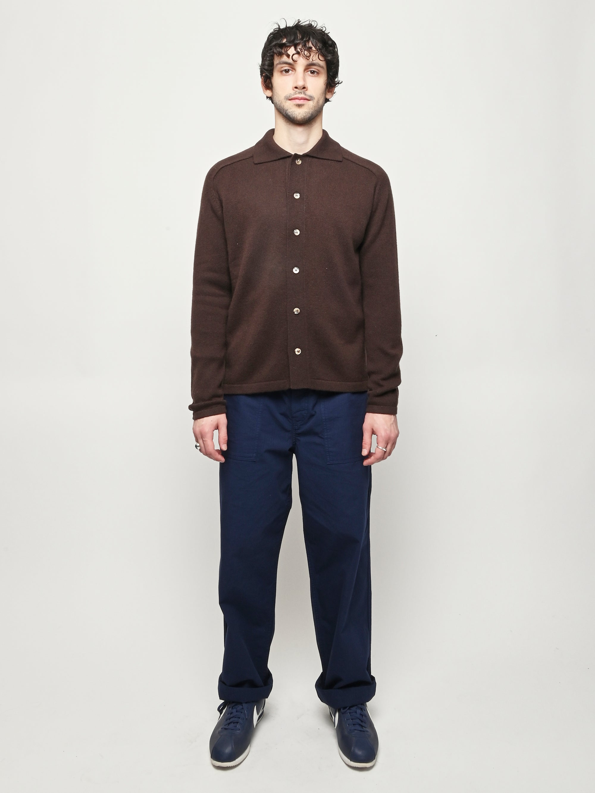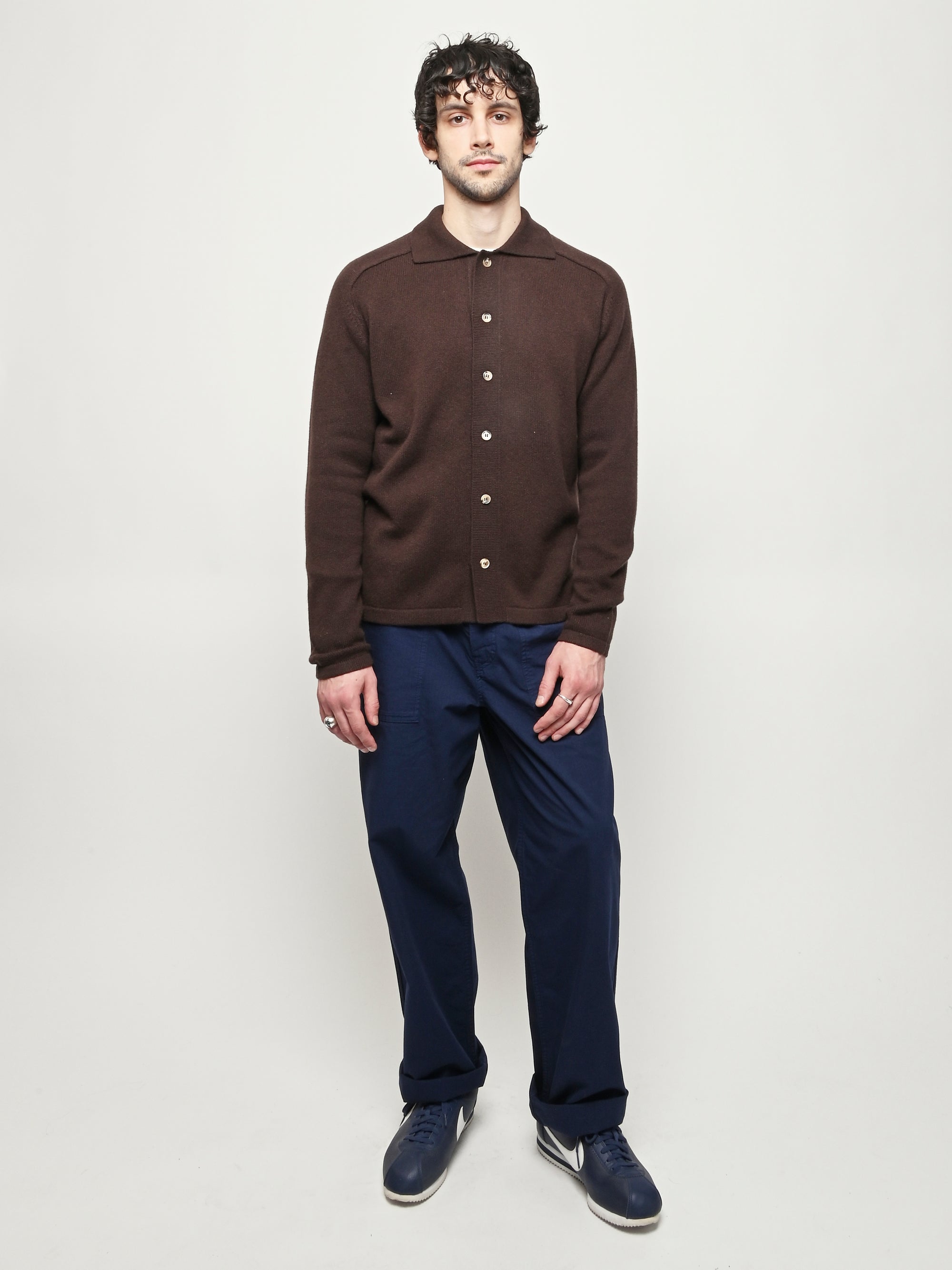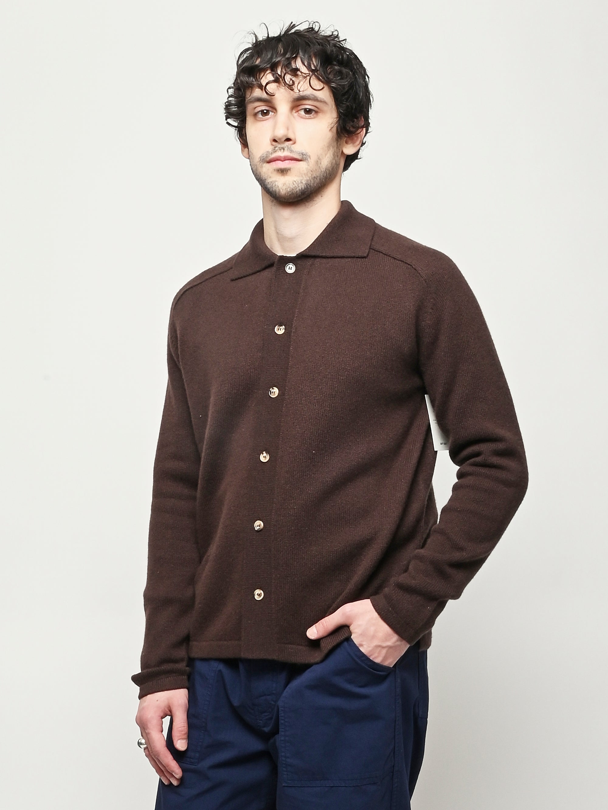 Men's plain knit shirt by Soft Goat in 100% cashmere, with front button closure.