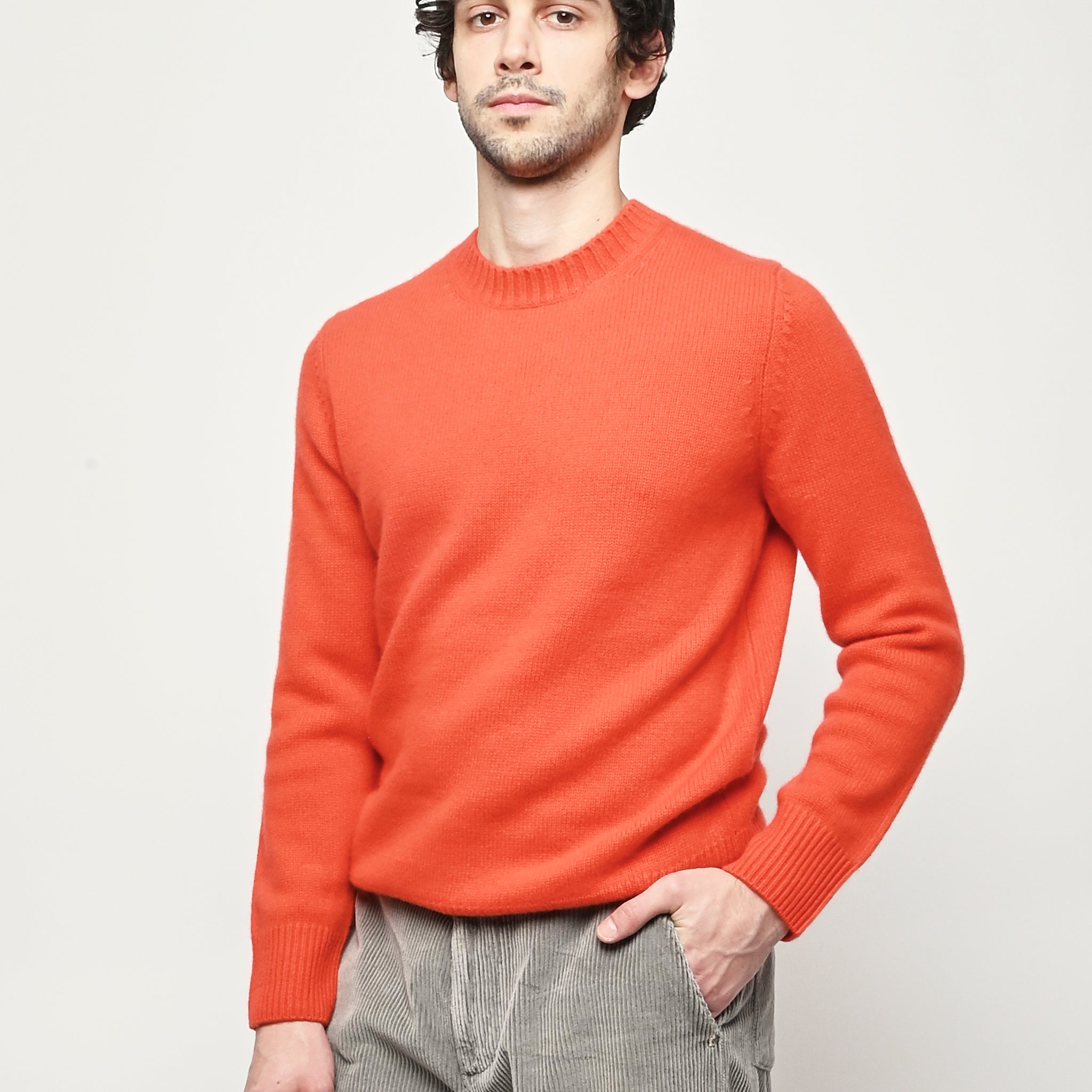 Men's chunky crewneck sweater in 100% Cashmere by Soft Goat.