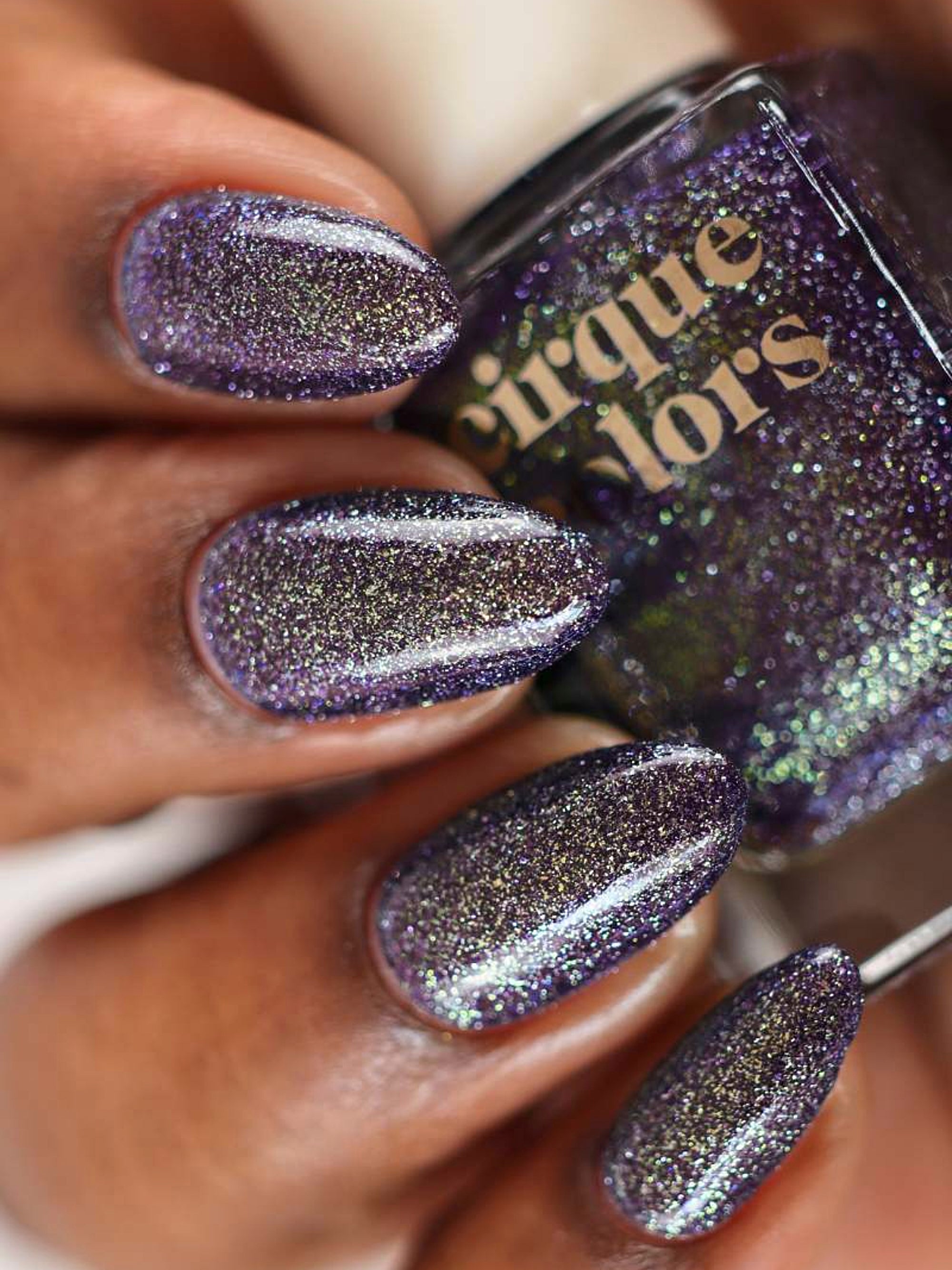 Belladonna is a deep violet nail polish with gold to green to blue color shifting shimmer and dazzling reflective sparks. Cirque Colors Spotlight Shimmers™ combine glimmering shimmer pigments and flash reflective glitters which illuminate your nails with direct lighting.