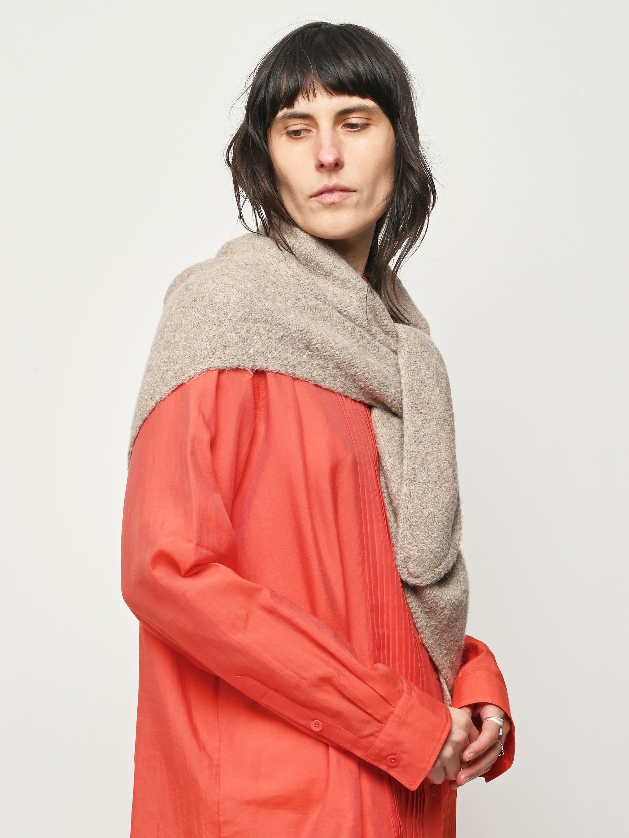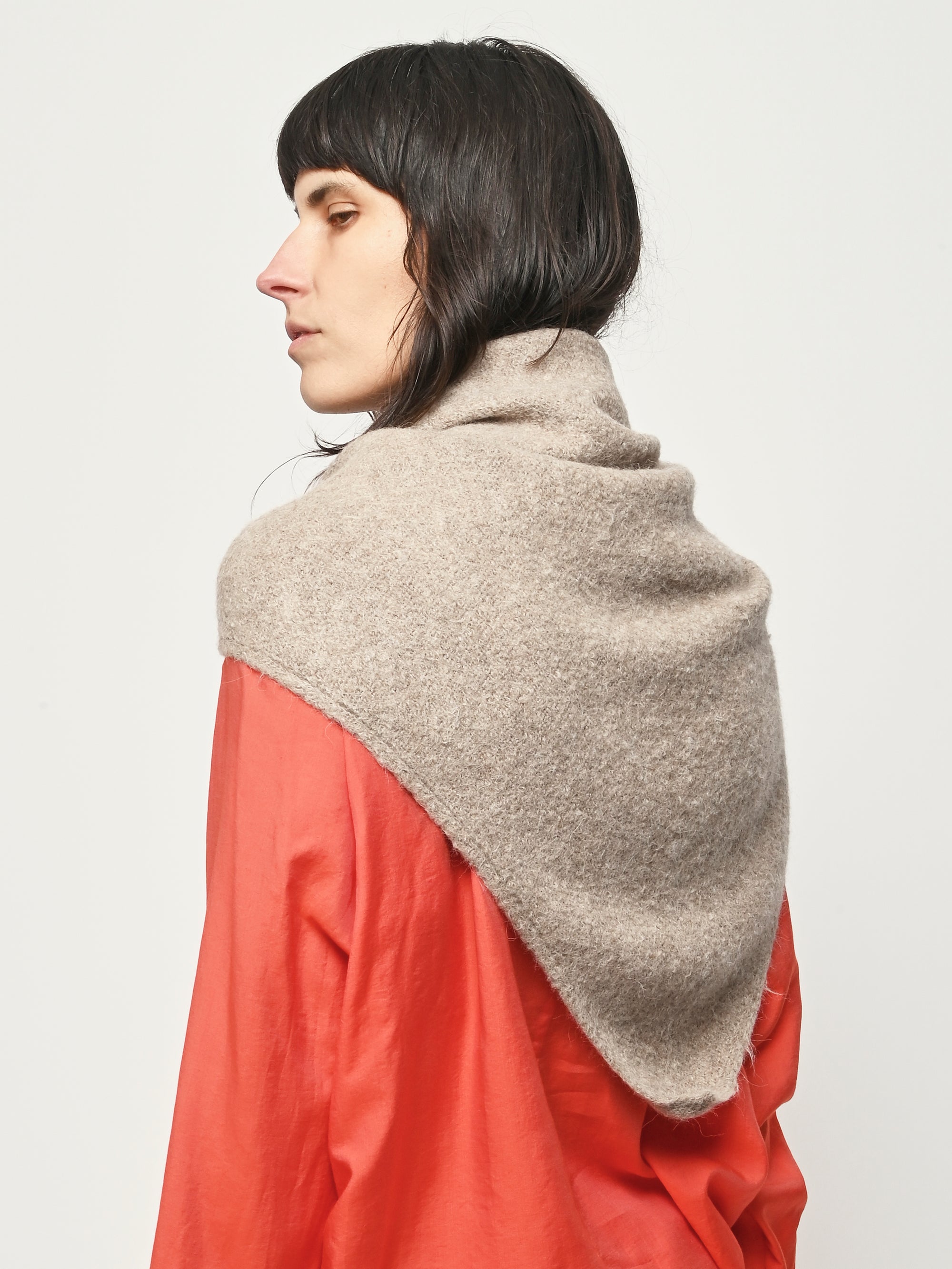 Bundle up in comfort with the felted shawl. A versatile large triangle shawl to wrap around your shoulders, over the head, or looped around your neck for a scarf. The perfect outer layer to add some extra warmth and style to any look.
