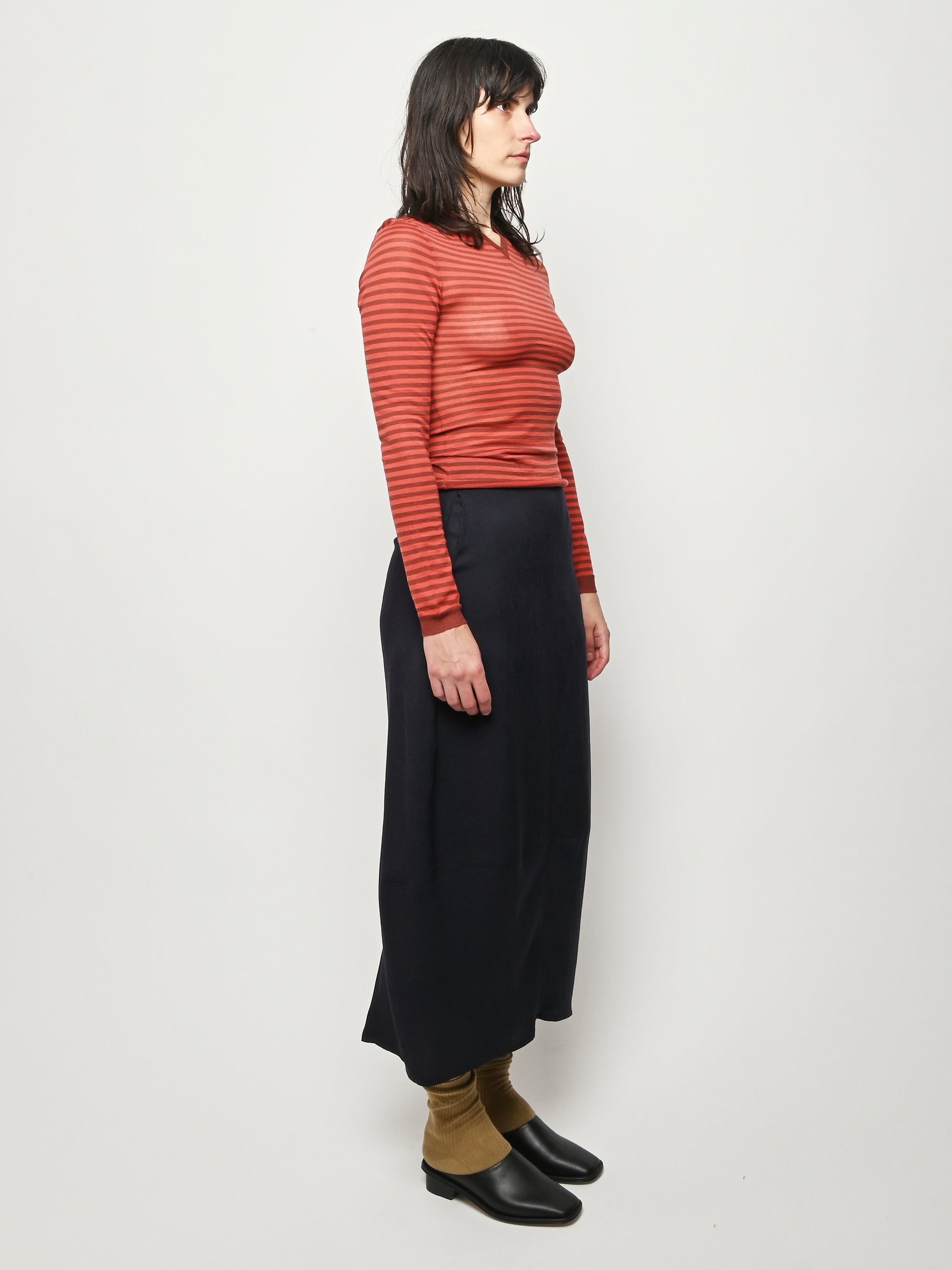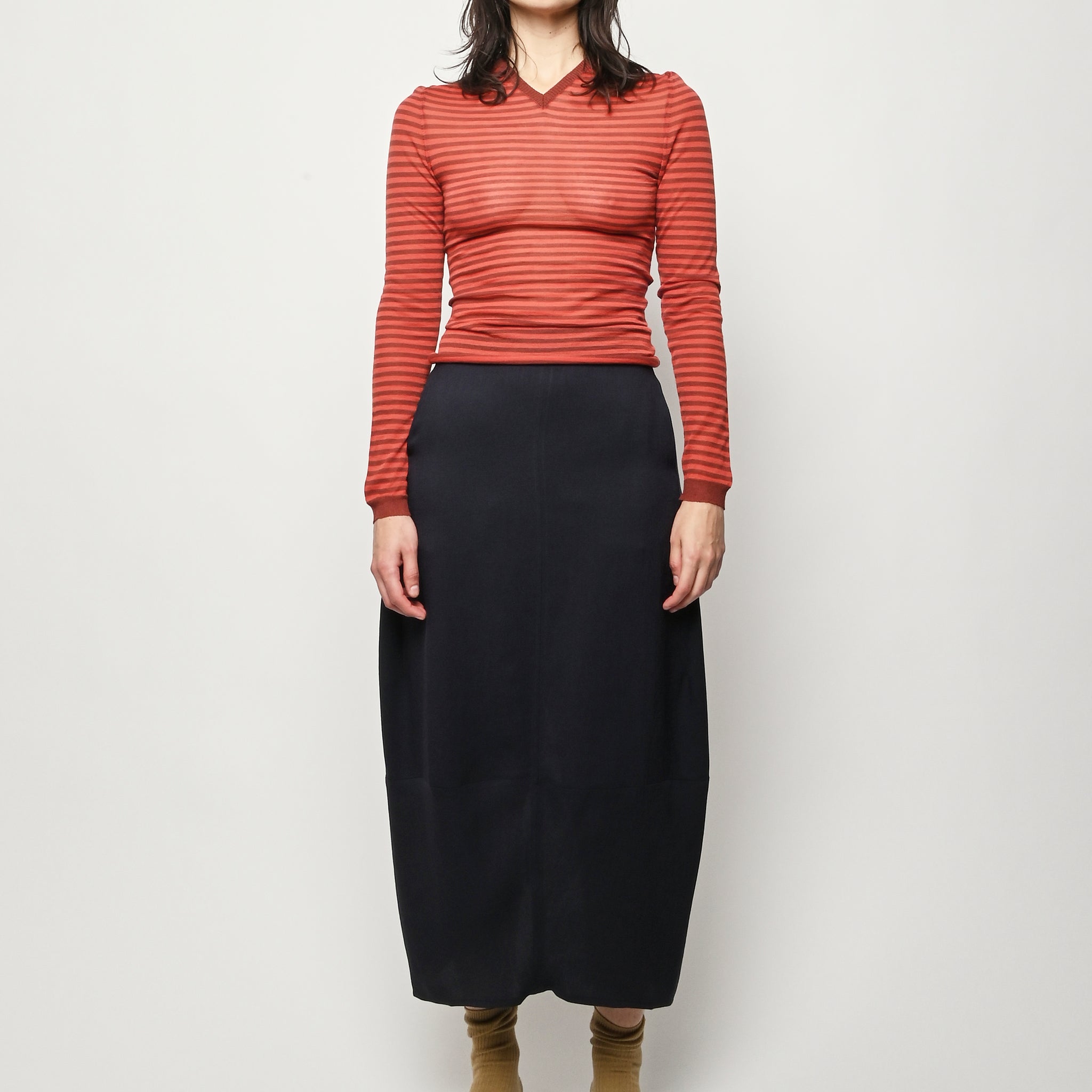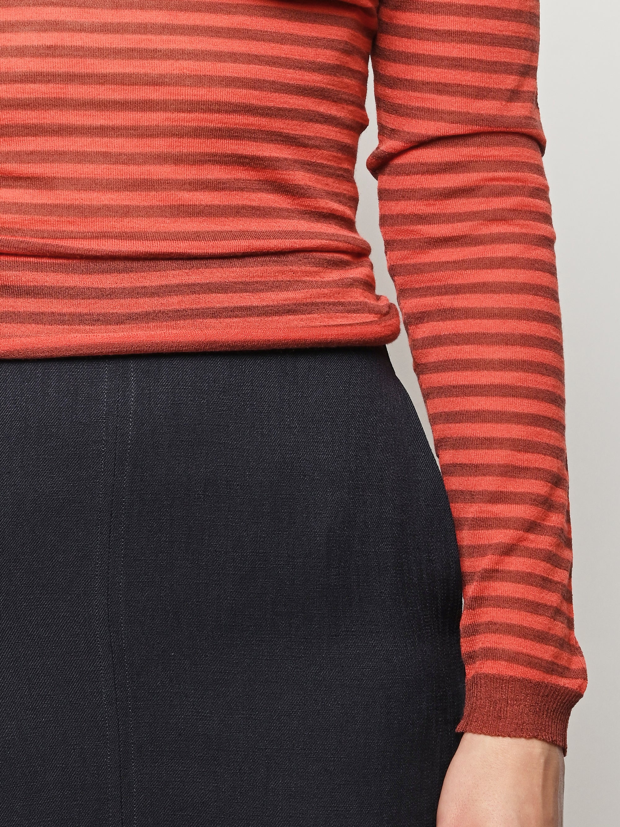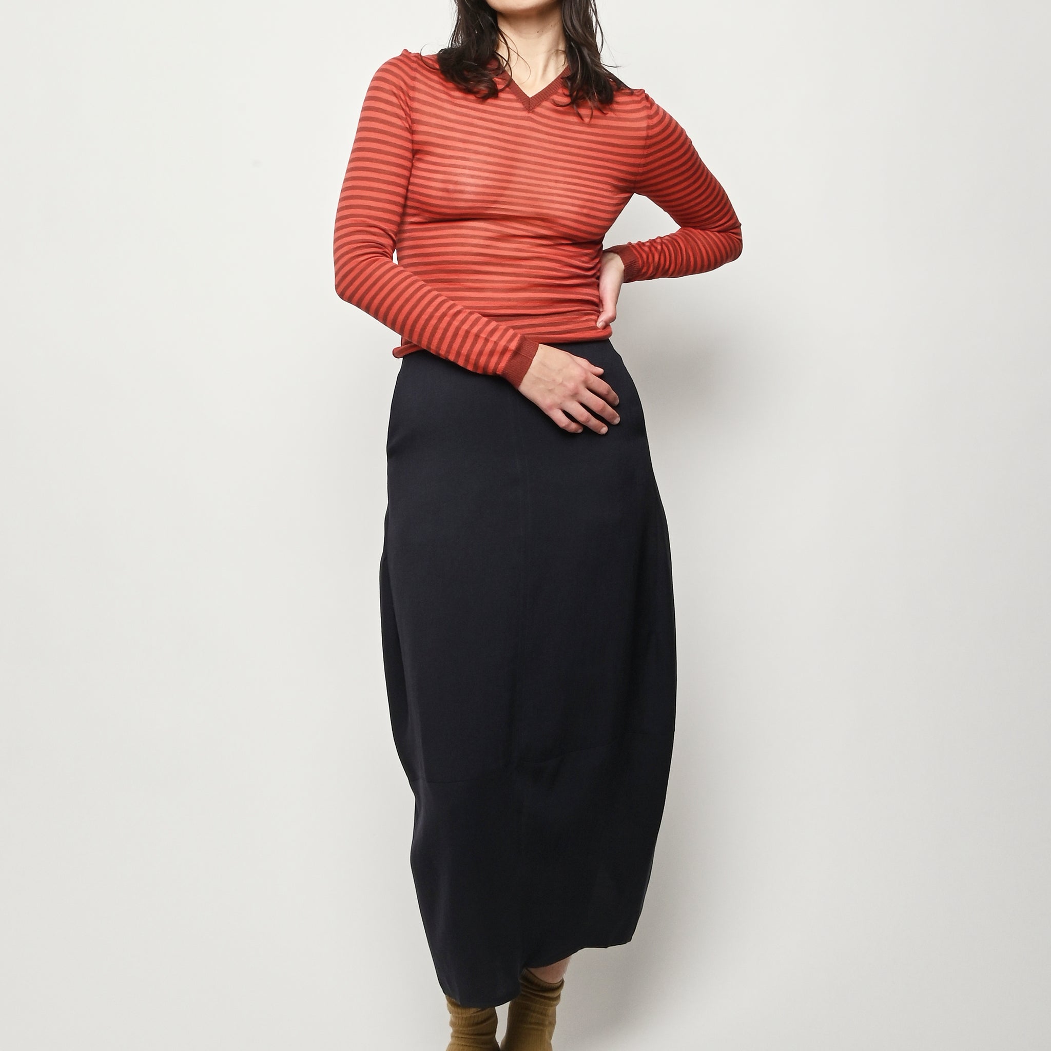 Fitted striped V-neck, slightly sheer sweater by Paloma Wool. Made from a fine, warm, and soft yarn.
