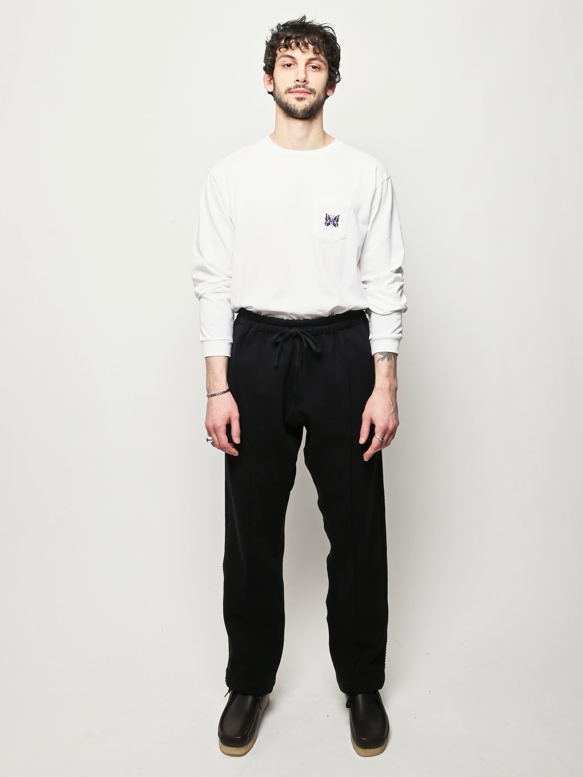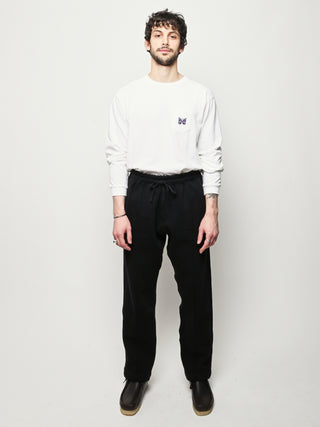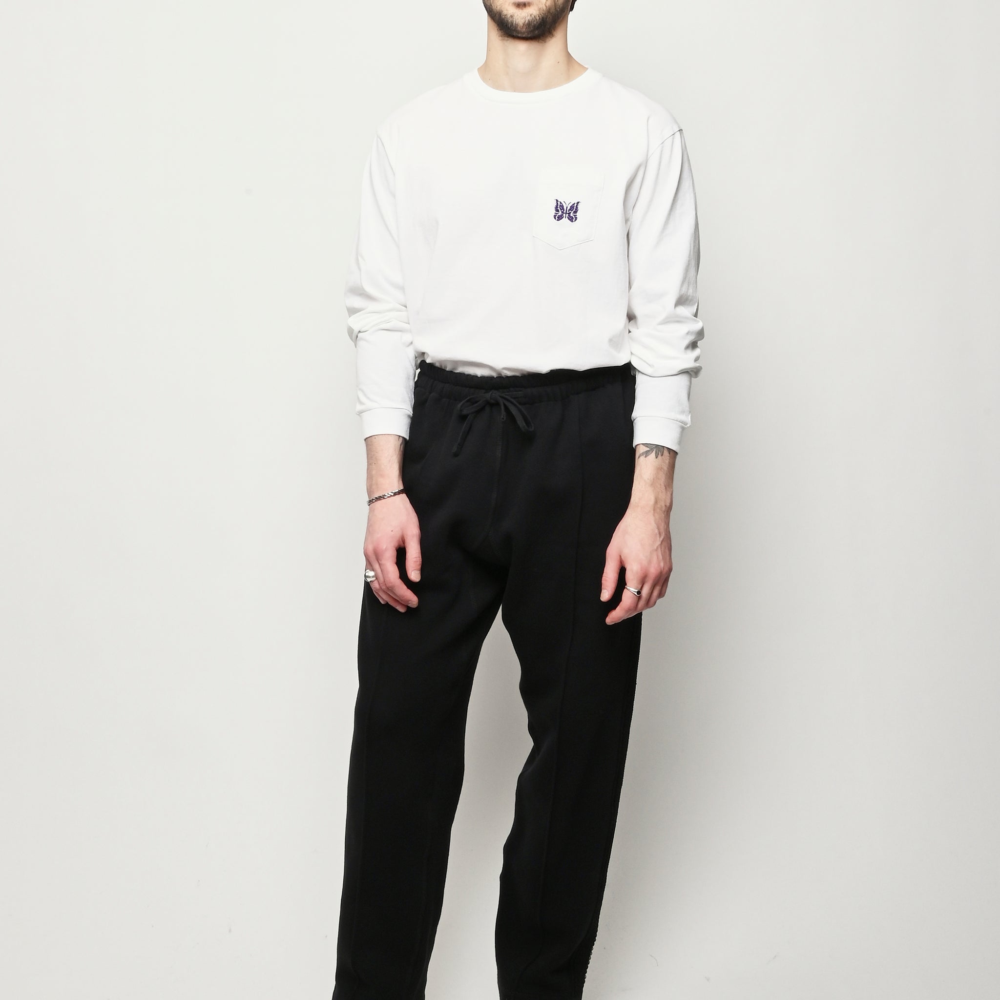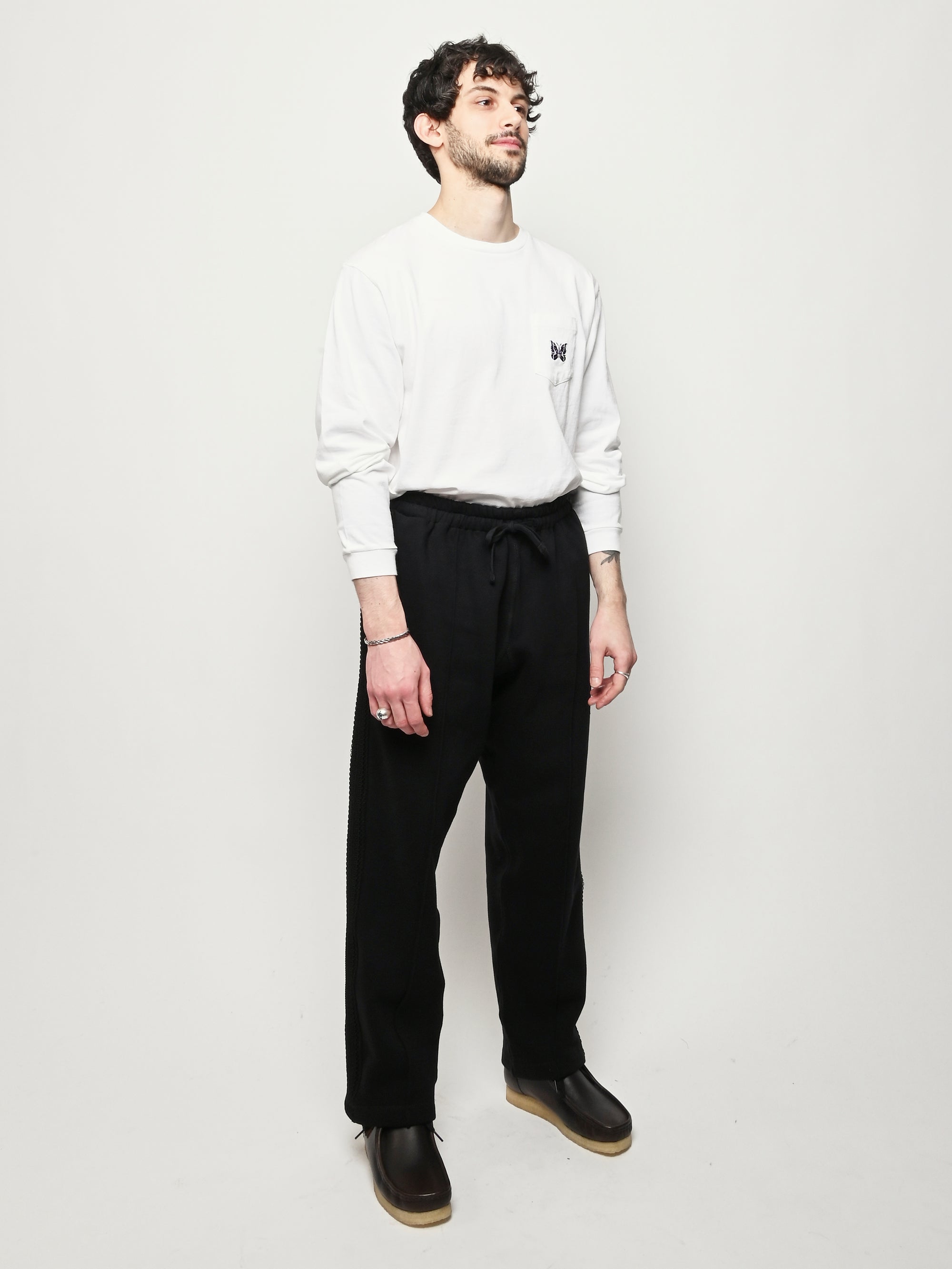 S.K. Manor Hill elastic waist pant w/ string tie, two side seam pockets, single right back patch pocket, pintuck stitch down center front of legs, w/ natural trim running on the outer seam.