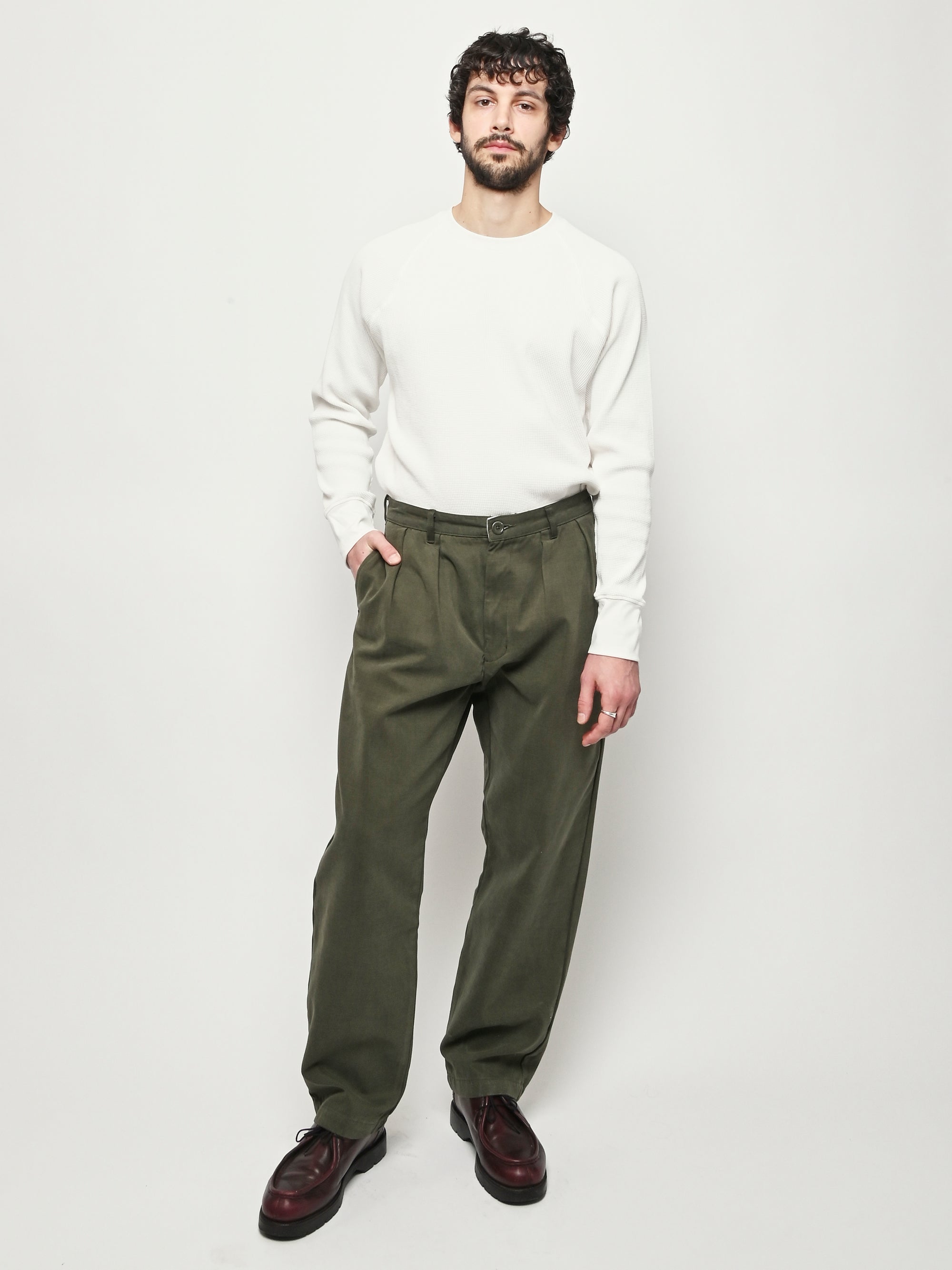 Moleskin Part Timer Pant in Moss green, by Service Works.