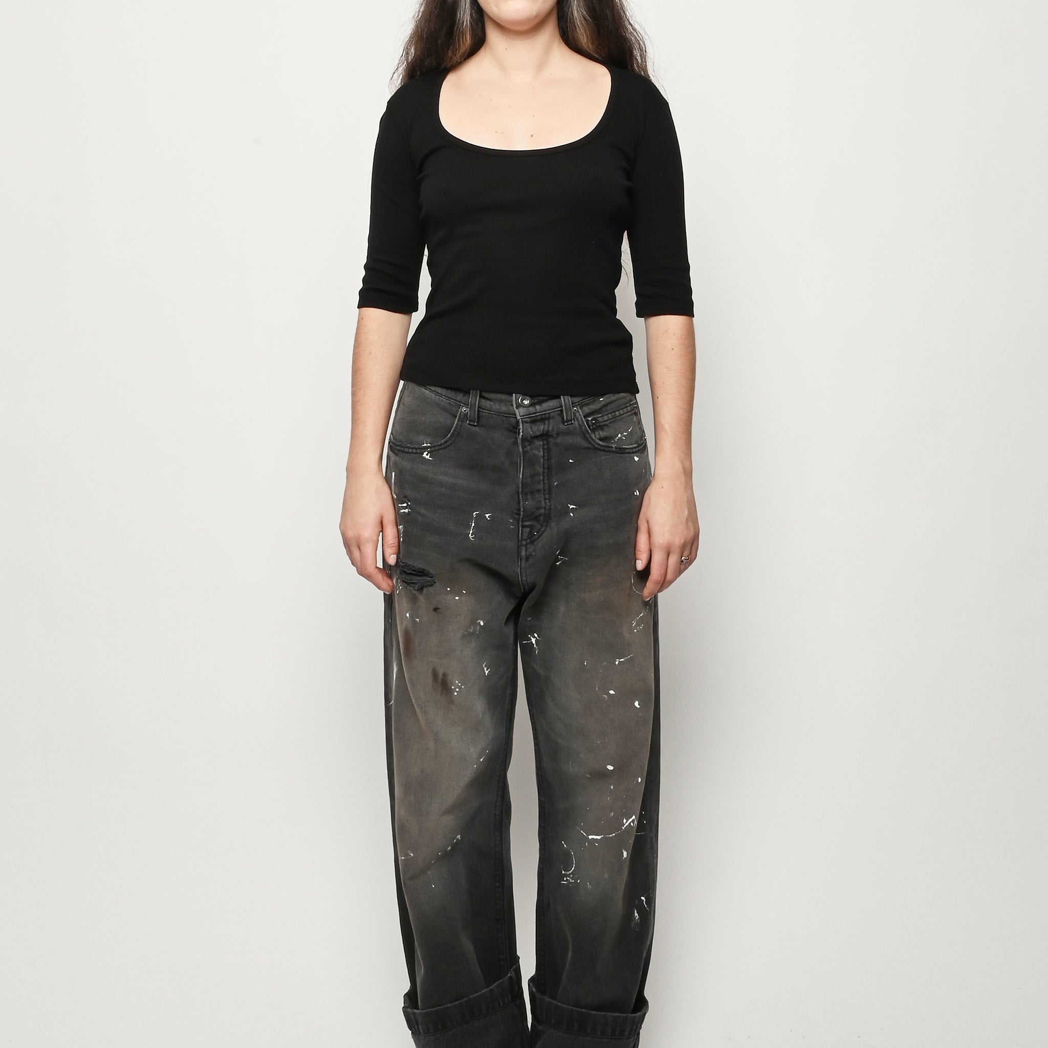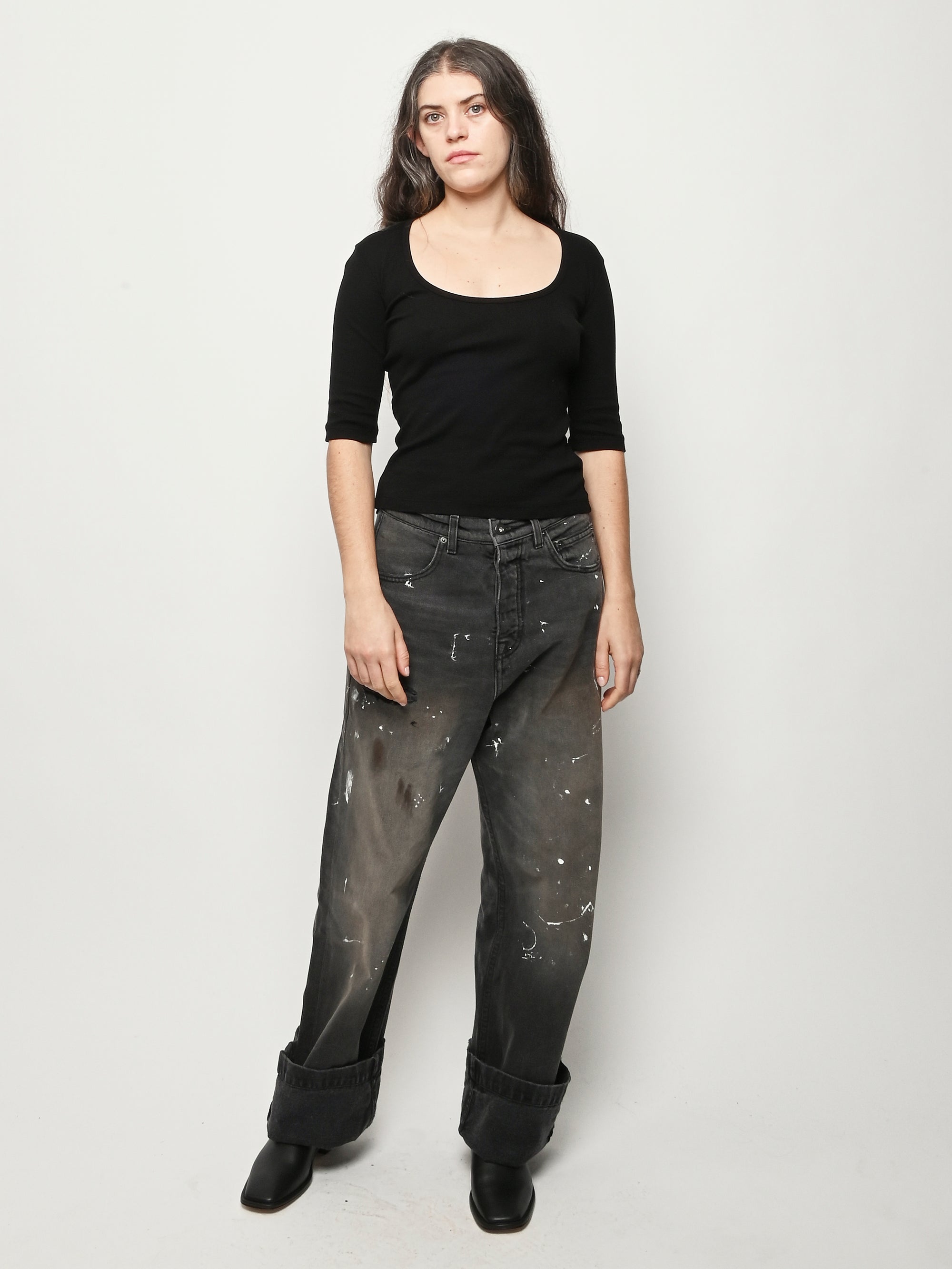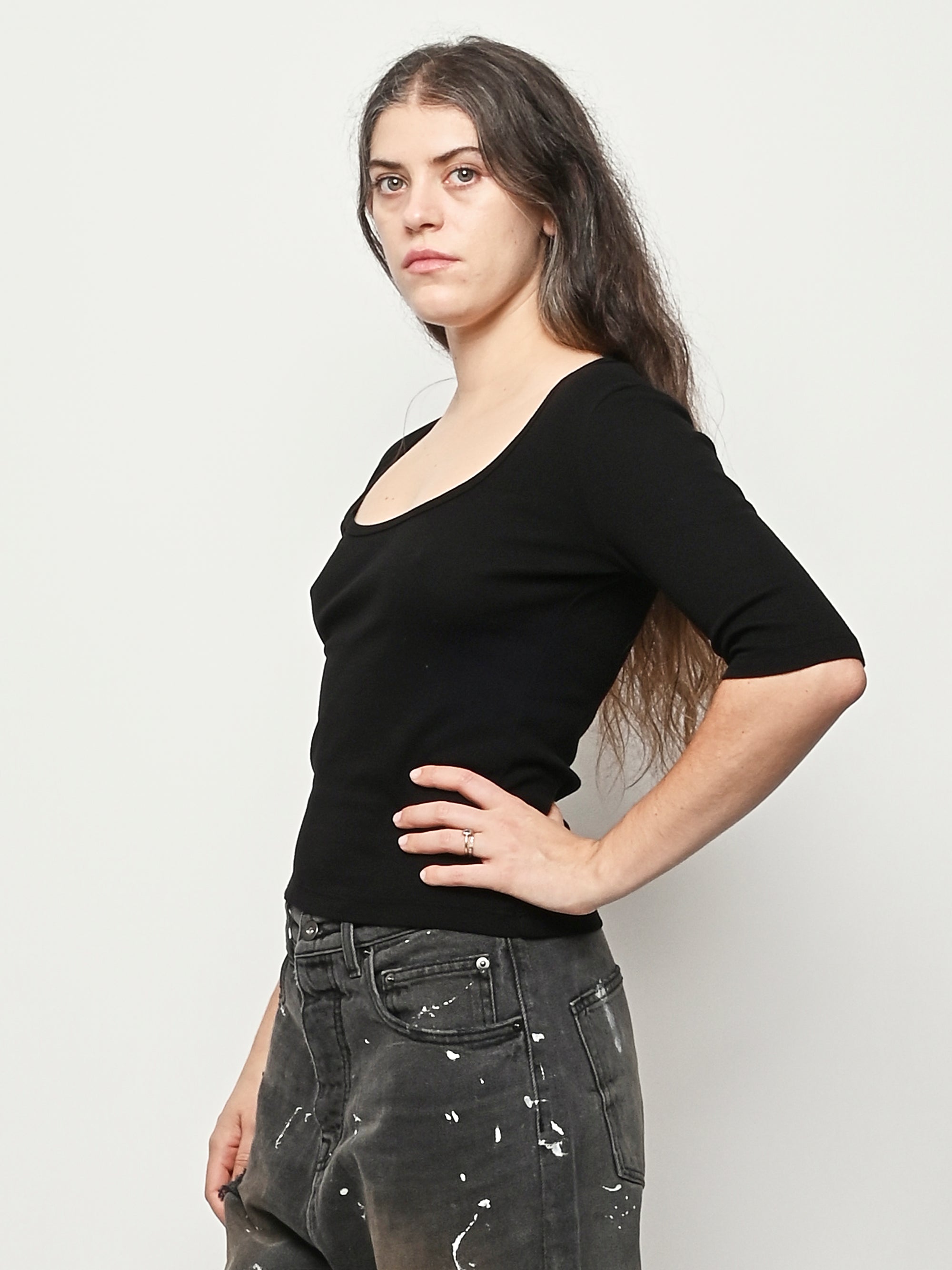 A super soft short-sleeve tee featuring a scooped neckline and mid-length sleeves. Flattering and form-fitting, it’s the perfect length to tuck into a high waist, or not. Made in Los Angeles from ultra-soft, locally-knit cotton baby rib.