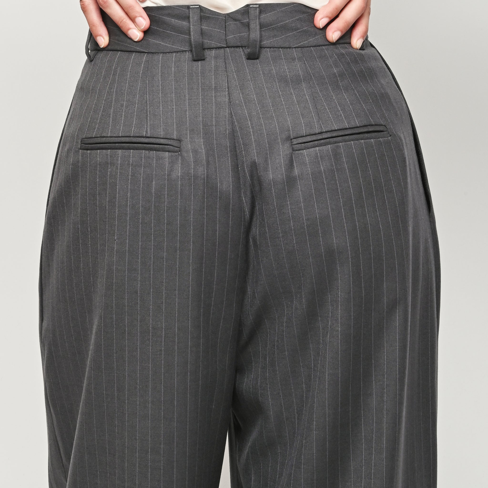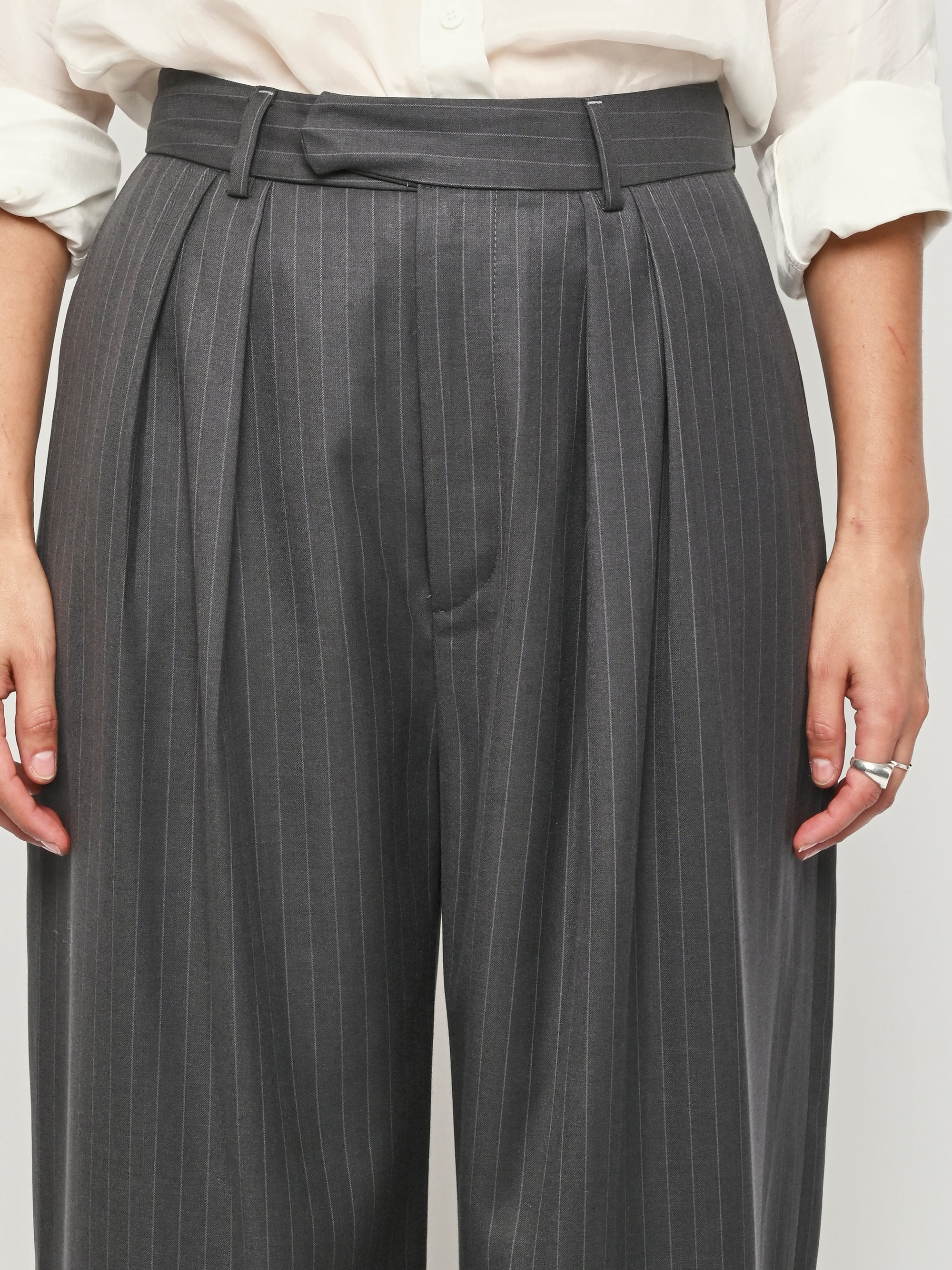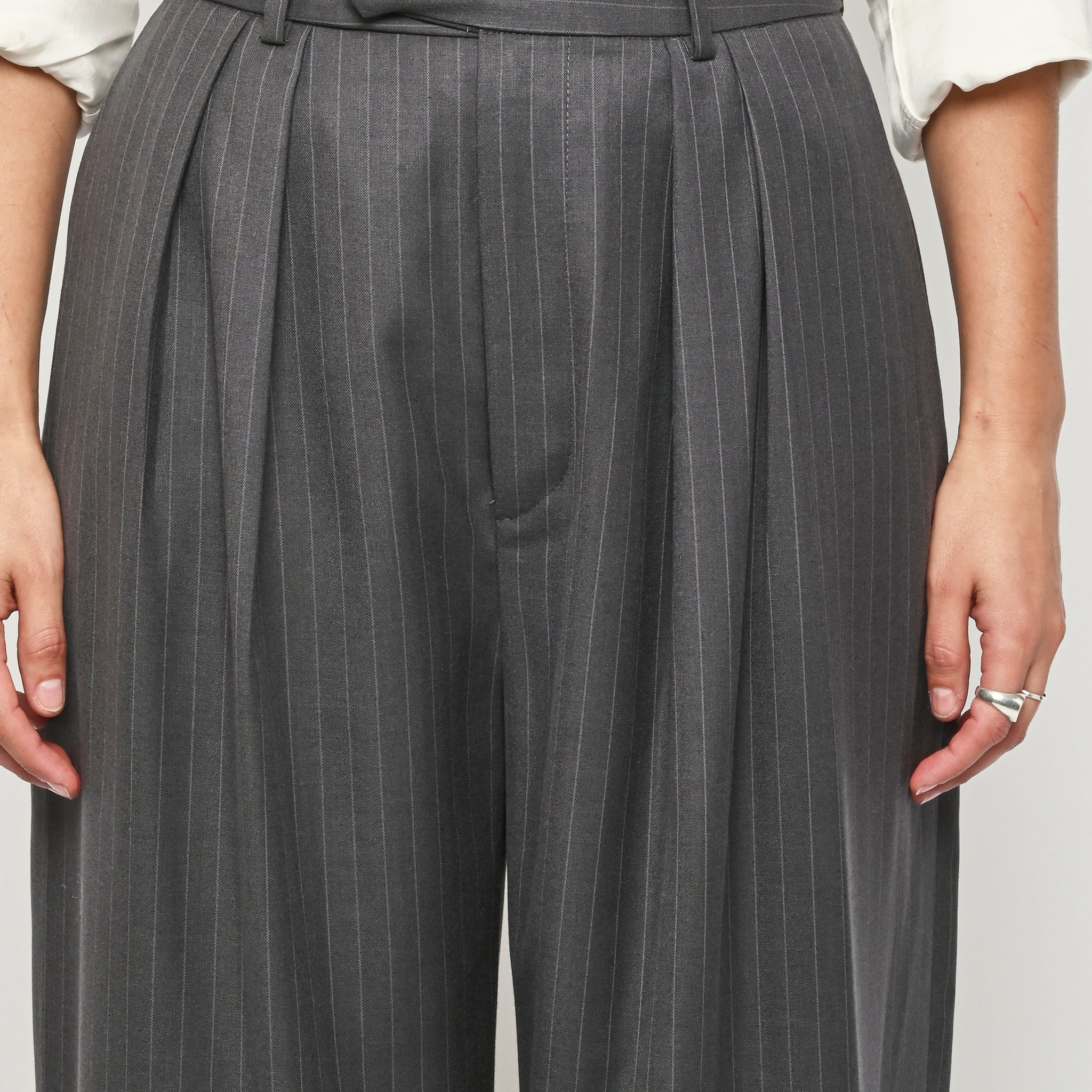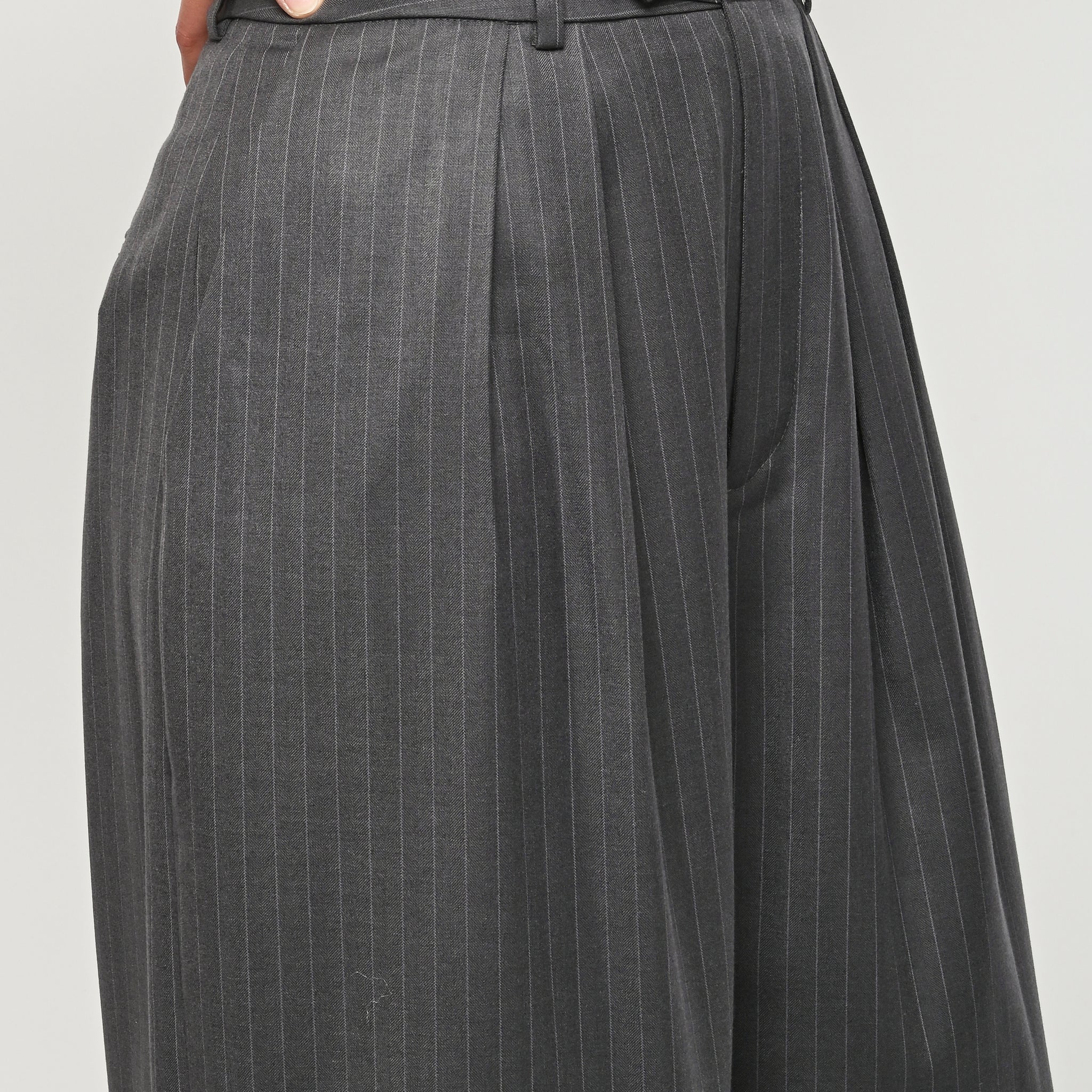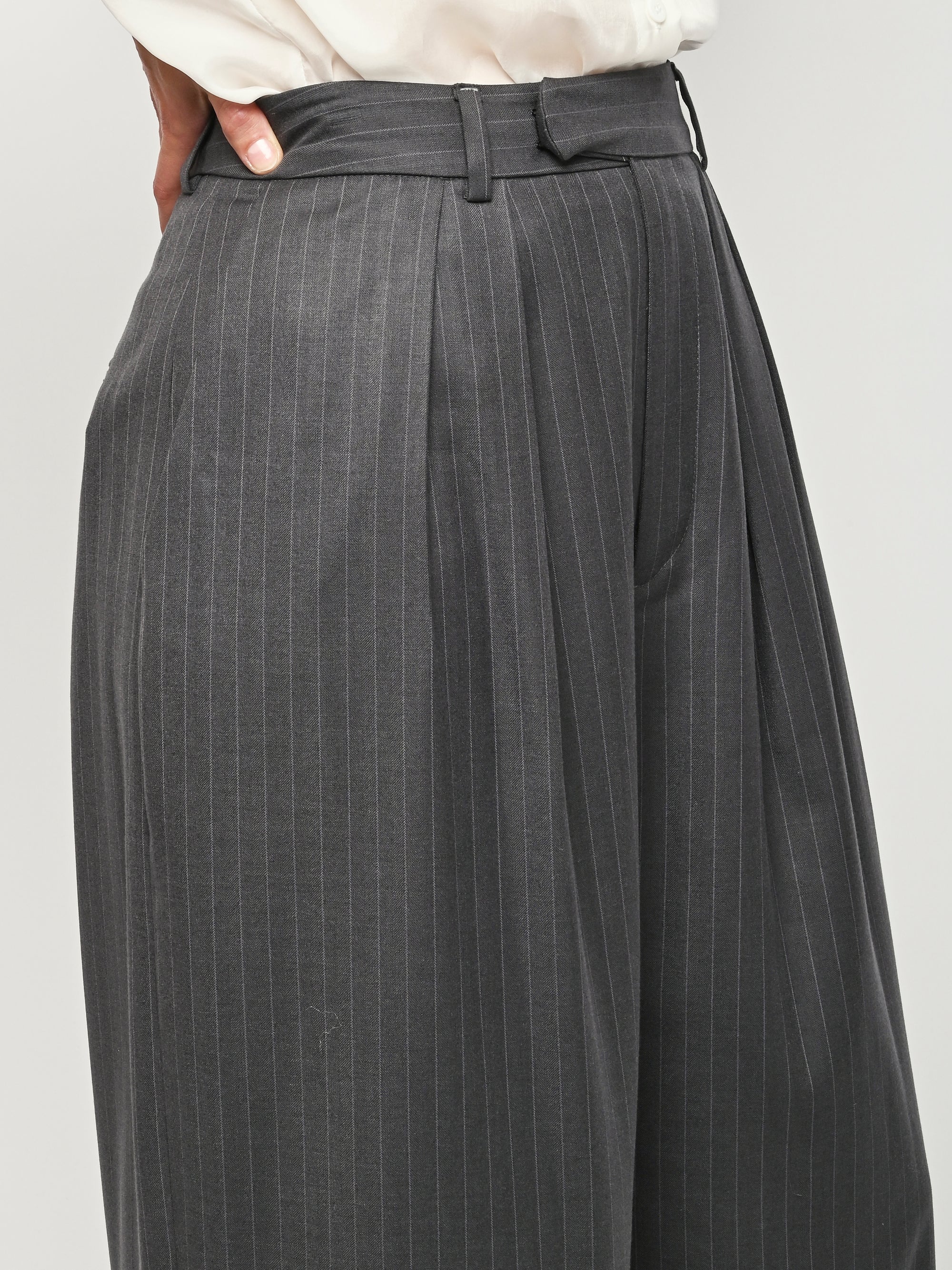 Structured wide leg, pleated pants in pinstripe twill by Nomia.