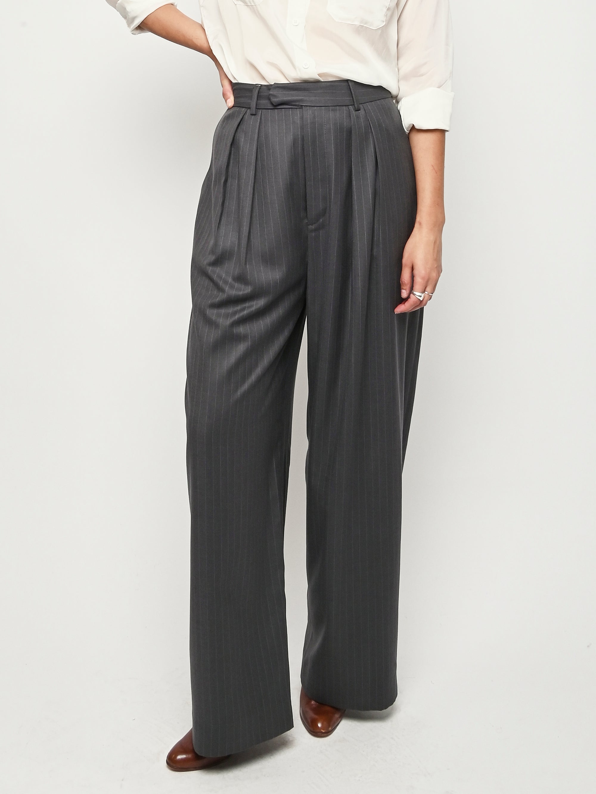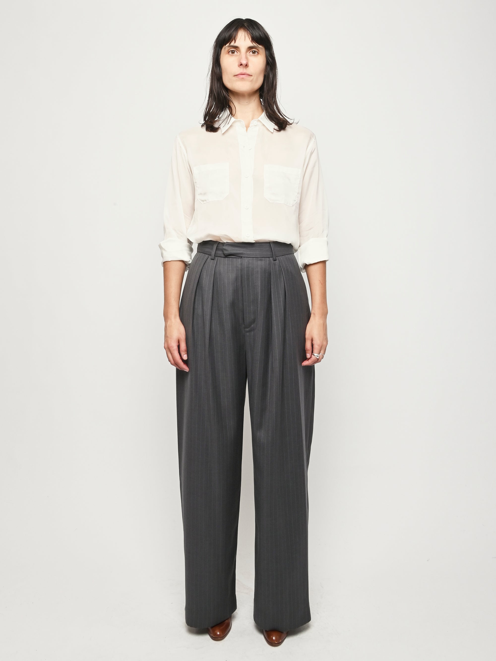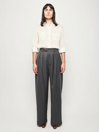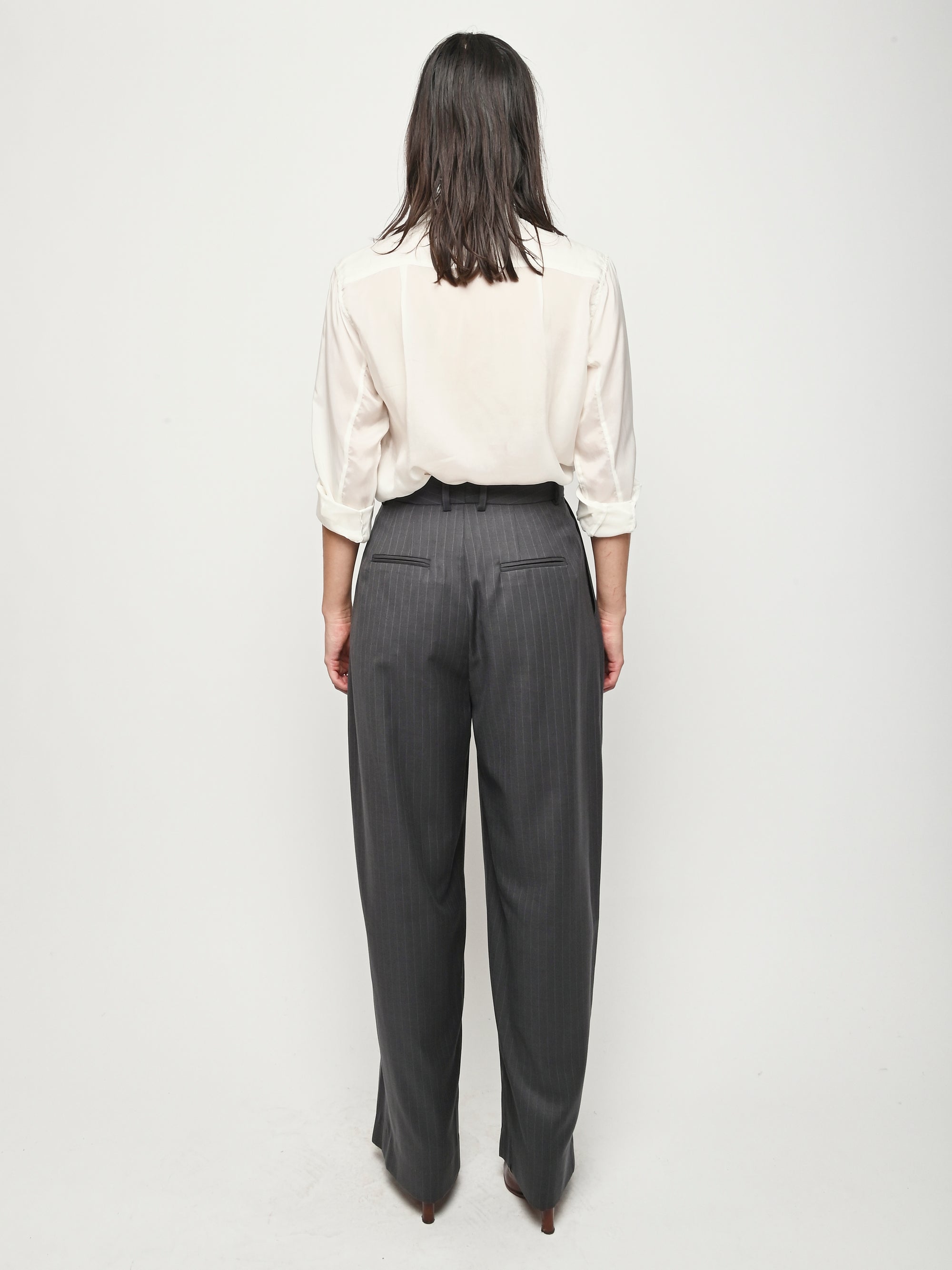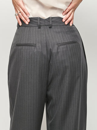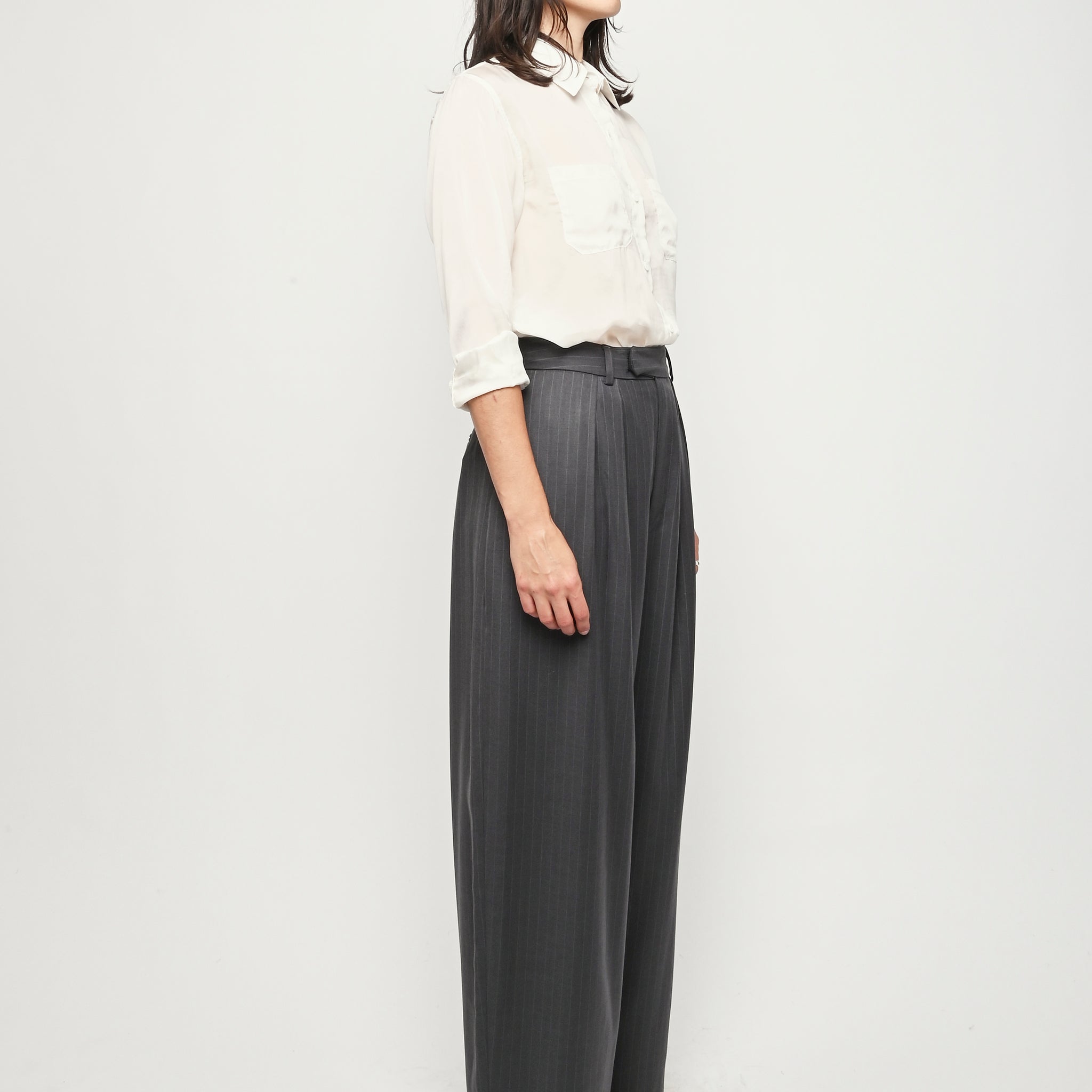 Structured wide leg, pleated pants in pinstripe twill by Nomia.