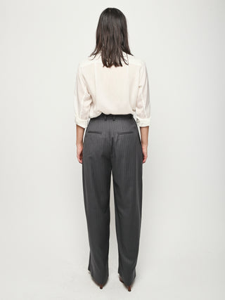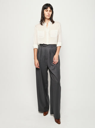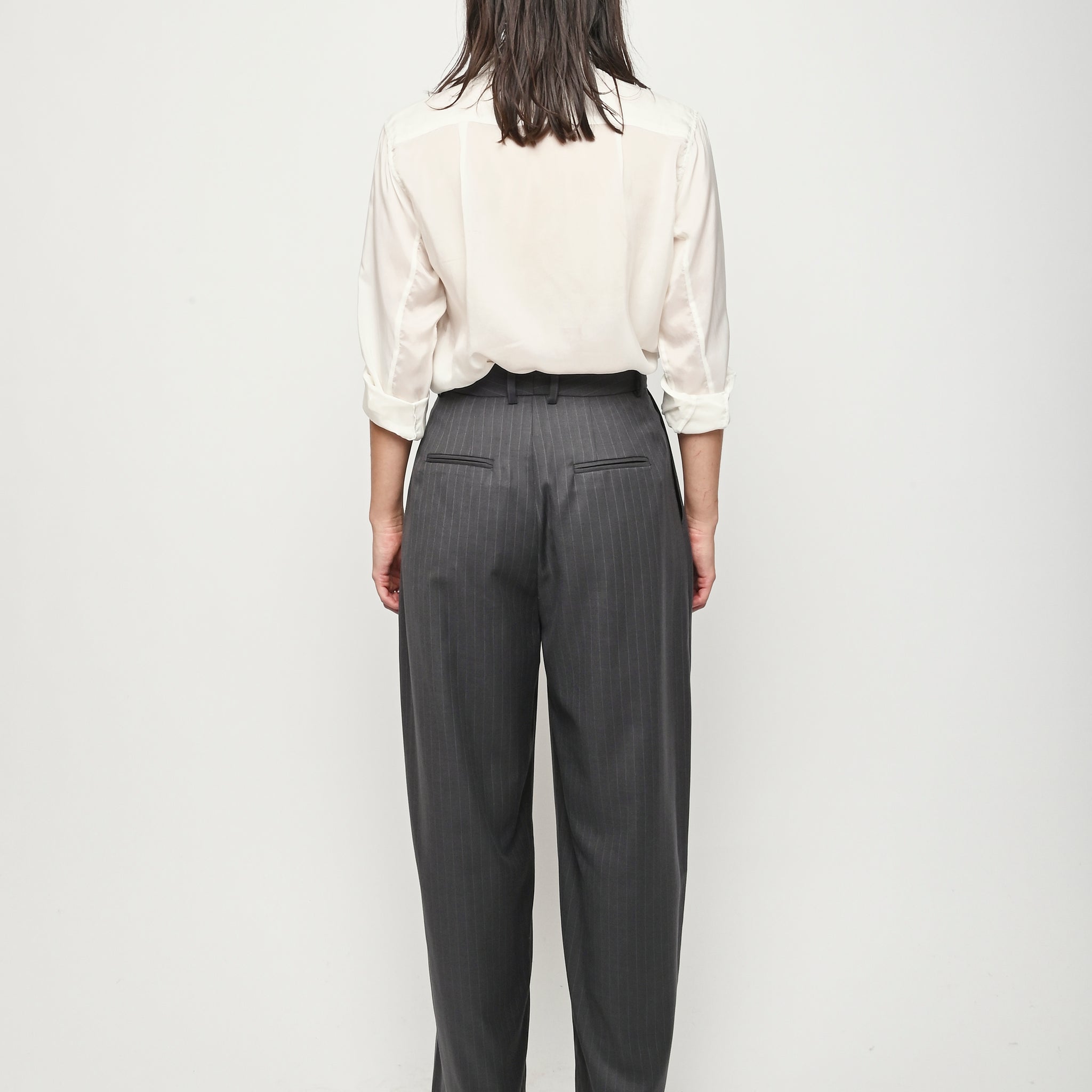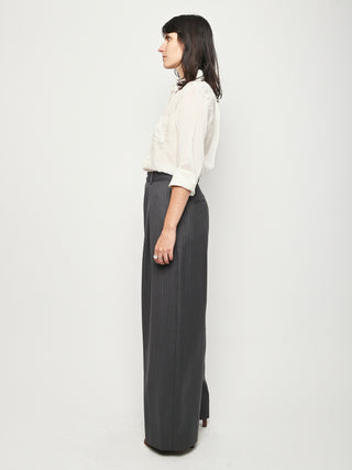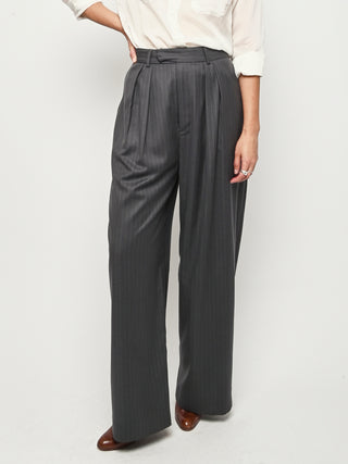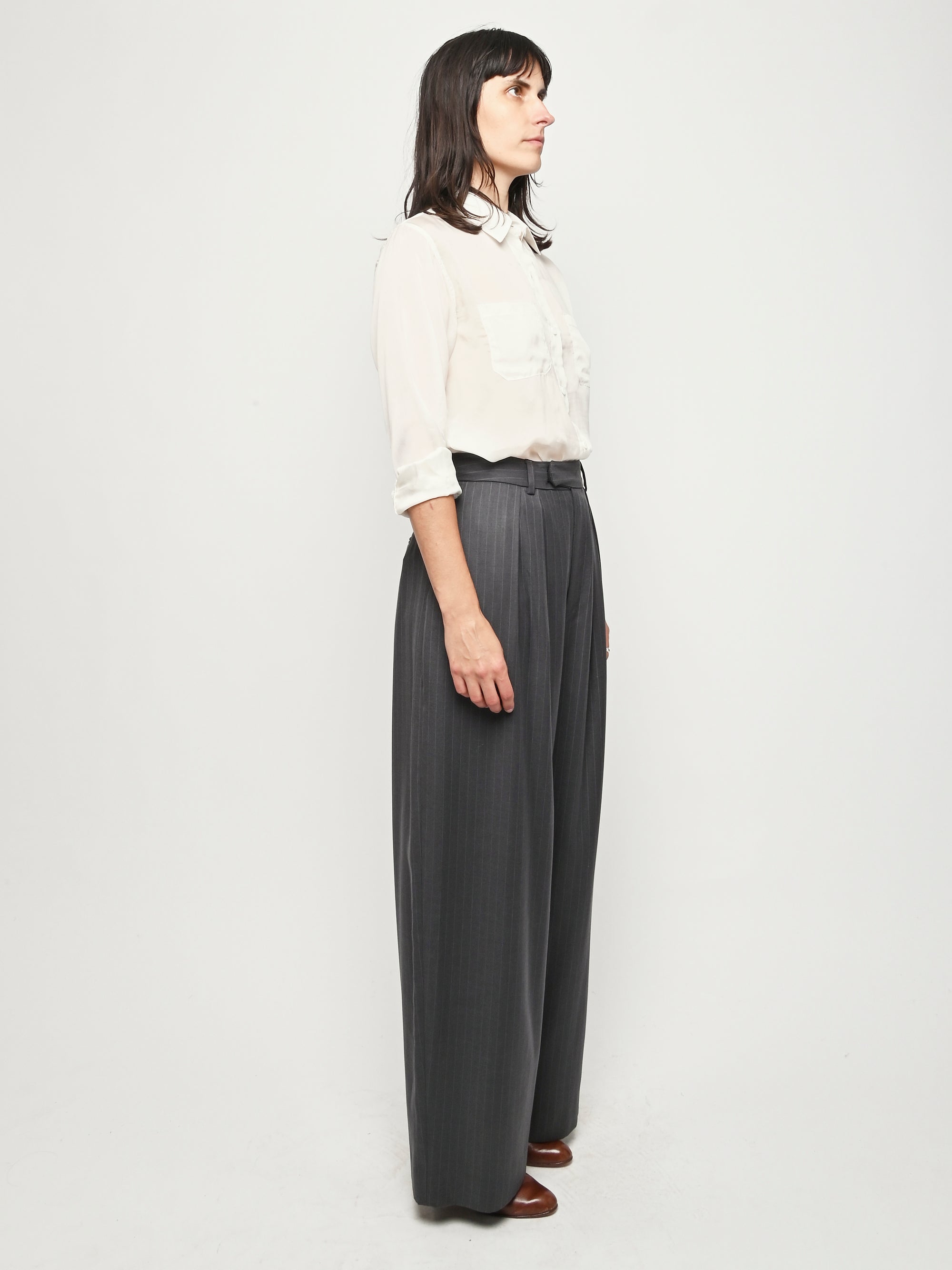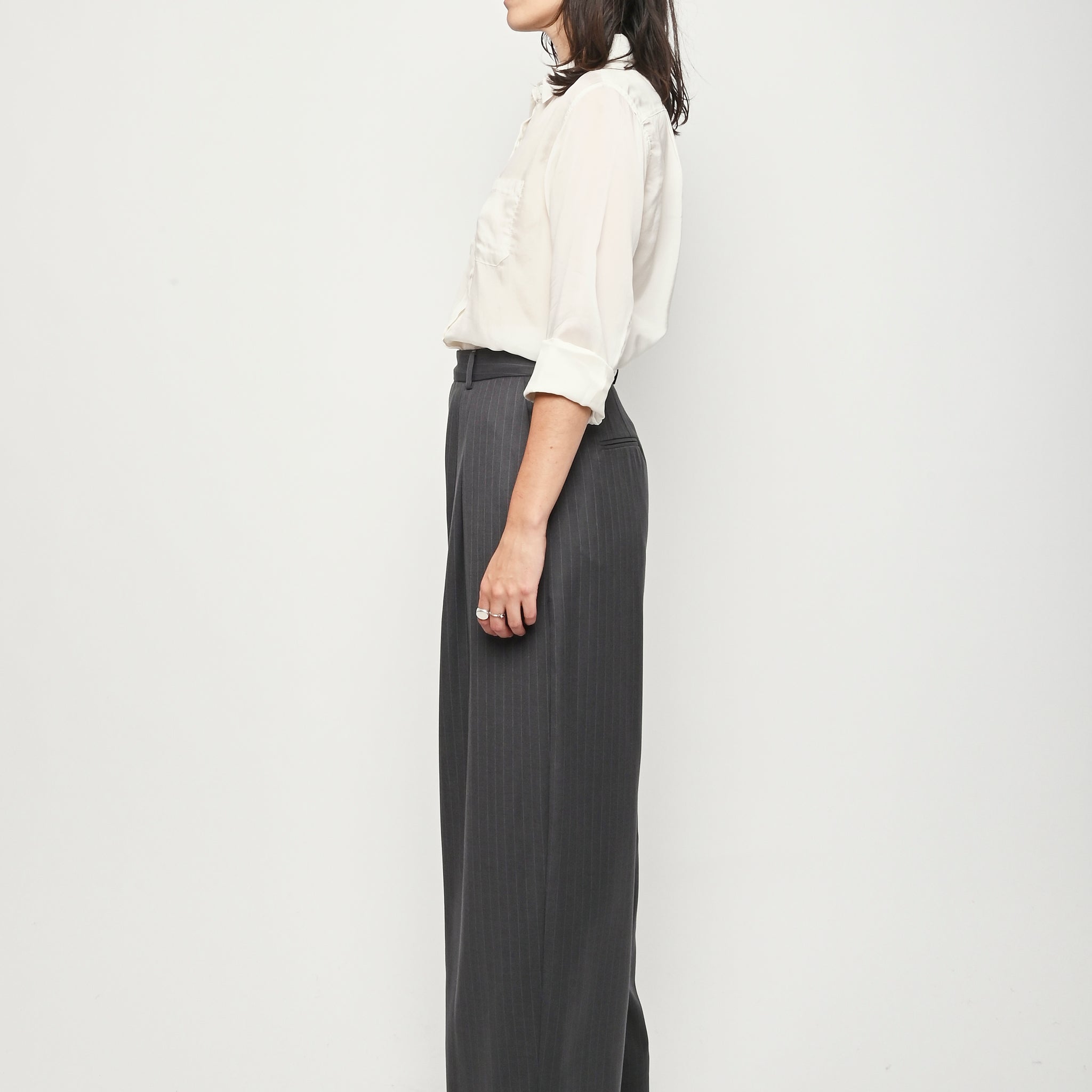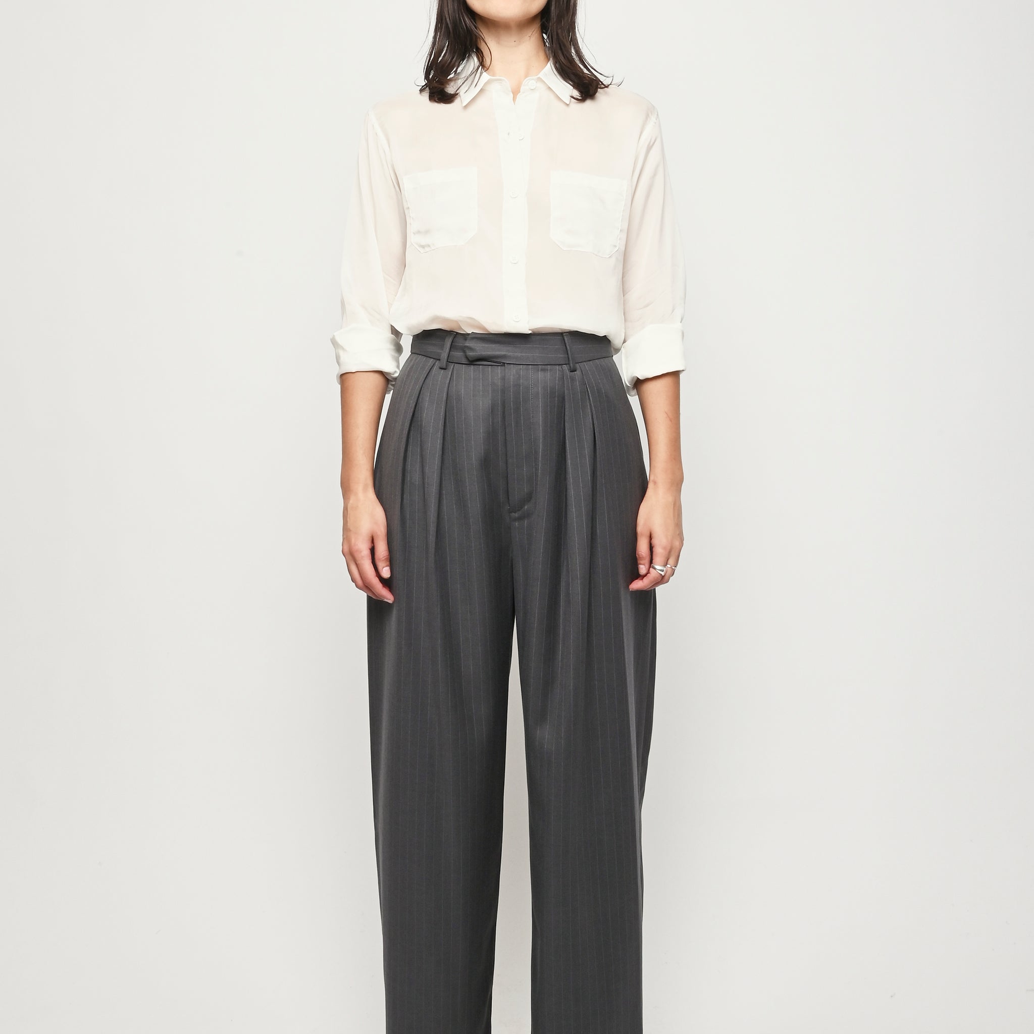 Structured wide leg, pleated pants in pinstripe twill by Nomia.