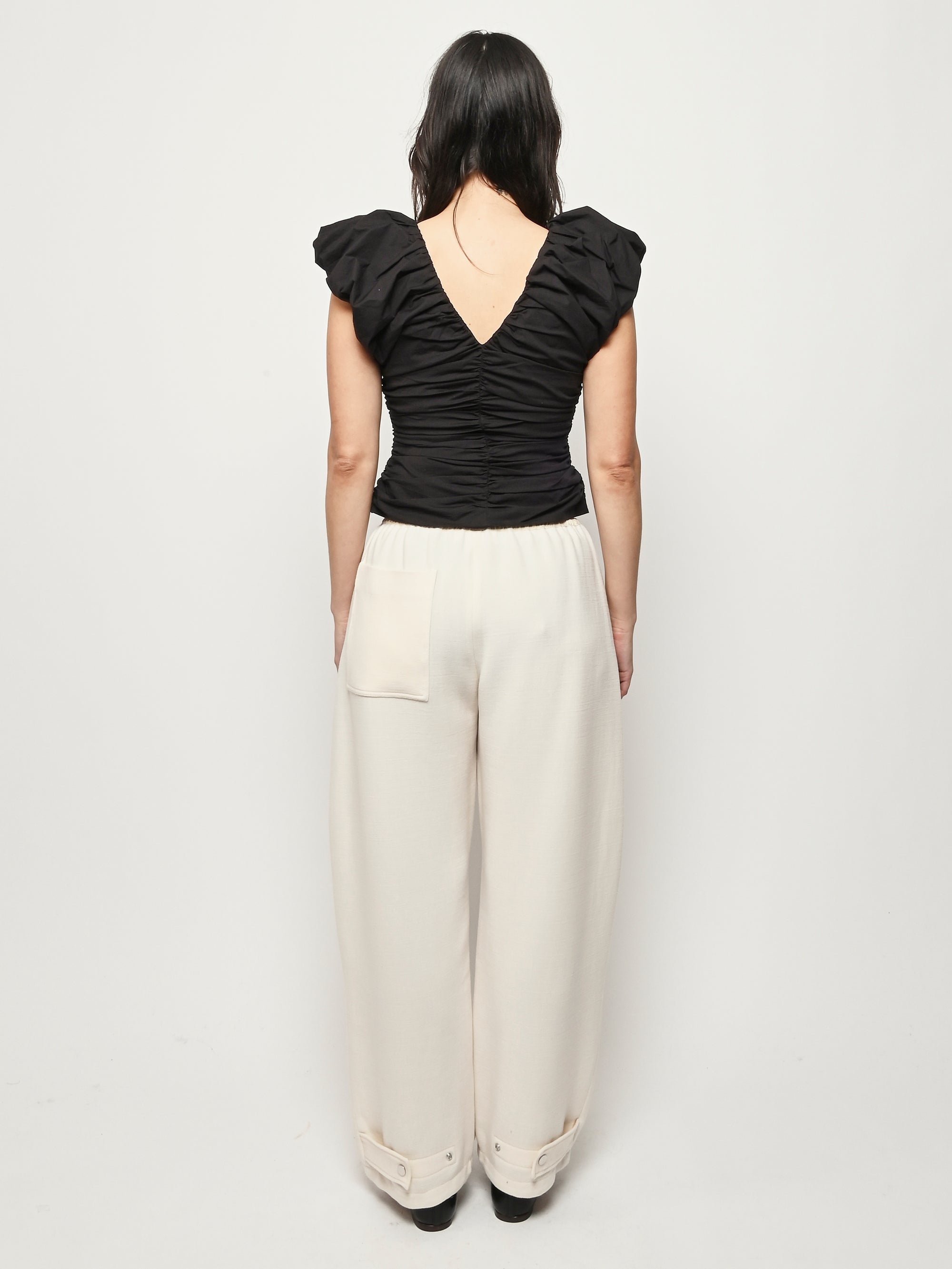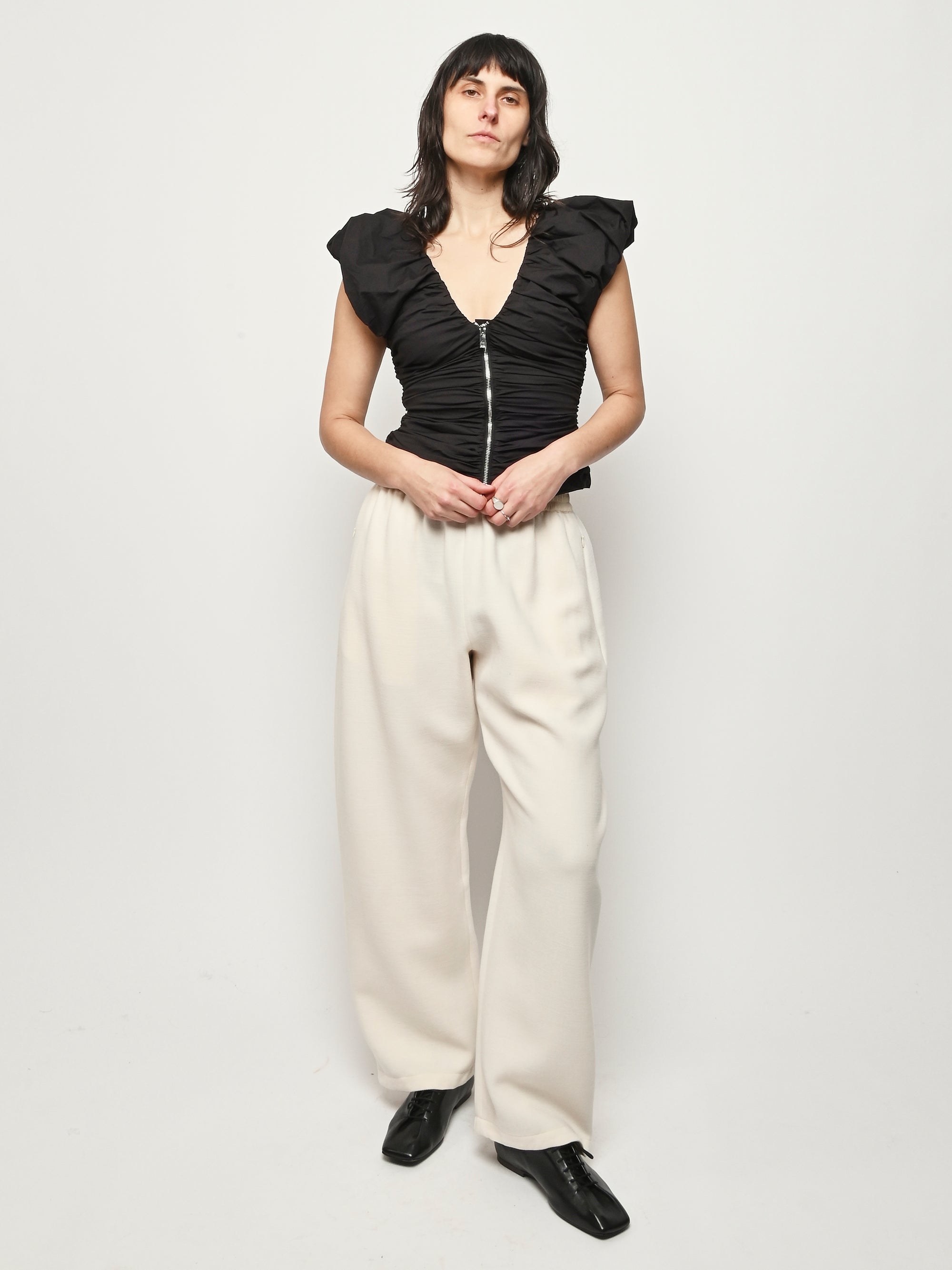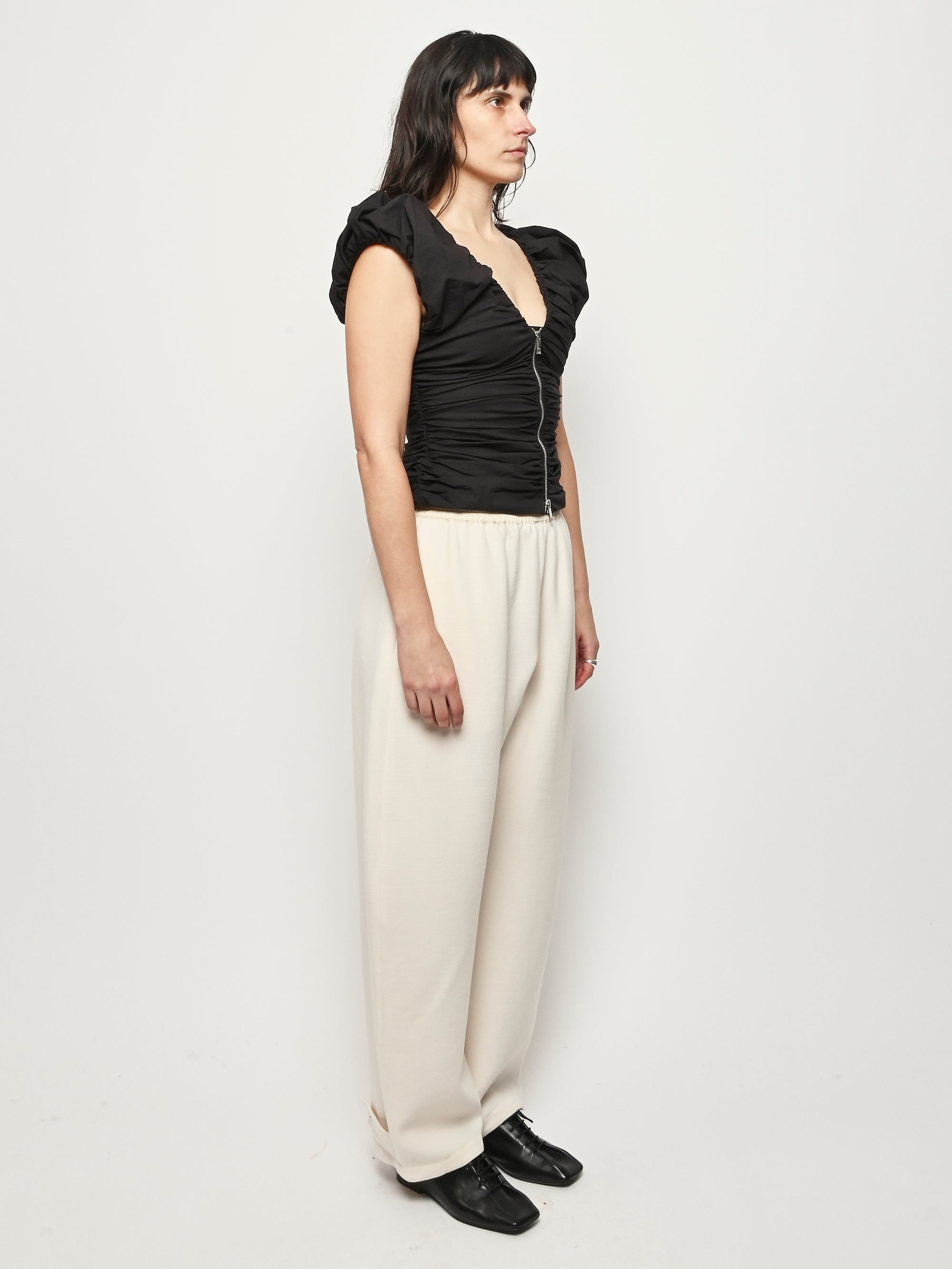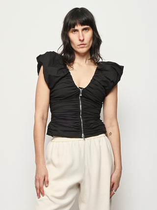 This fitted top from Ganni is made from black stretch cotton and features a zip closure at the center front.
