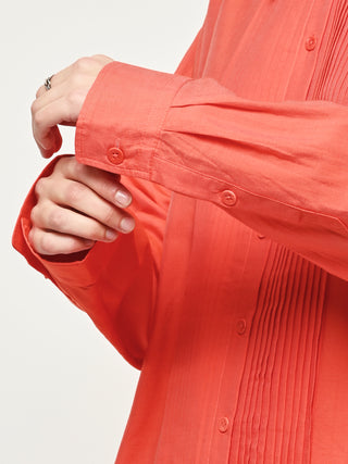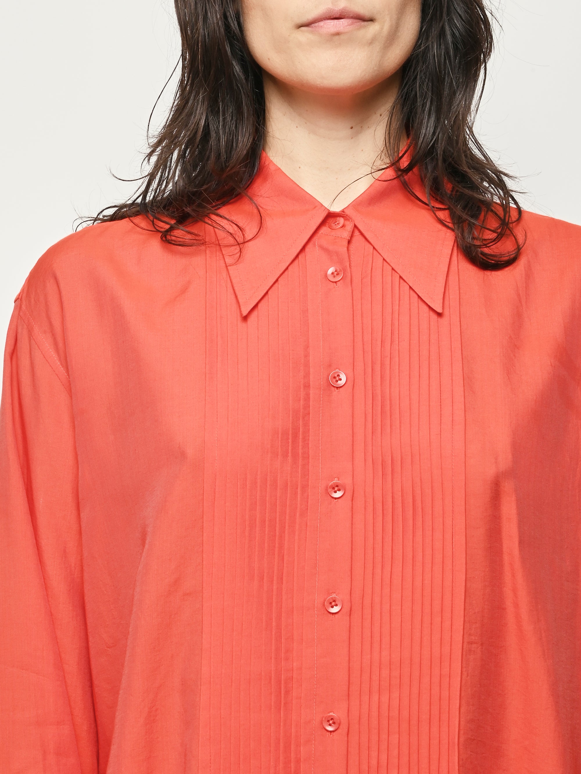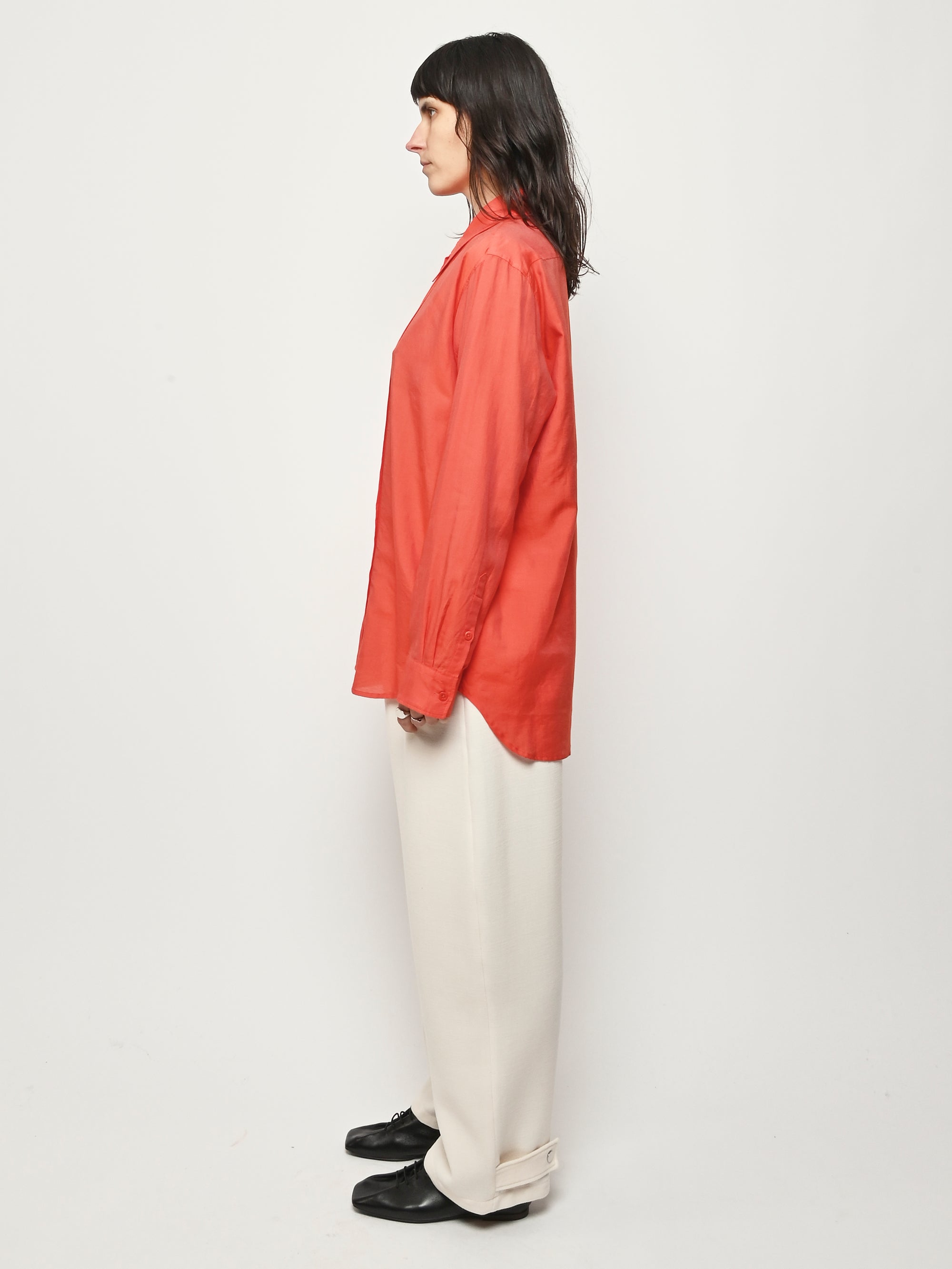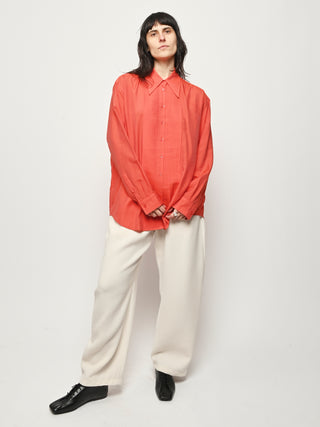 A modern tuxedo shirt through the lens of ease. The Tibi Silk Voile Easy Pintucked Shirt is crafted from Italian silk warp with a Tencel blend weft, finished with a washed hand for softness. The relaxed fit and pintucked front bring refinement with nonchalance. Wear loose for undone attitude, tucked for polish, or layered under suiting for contrast.