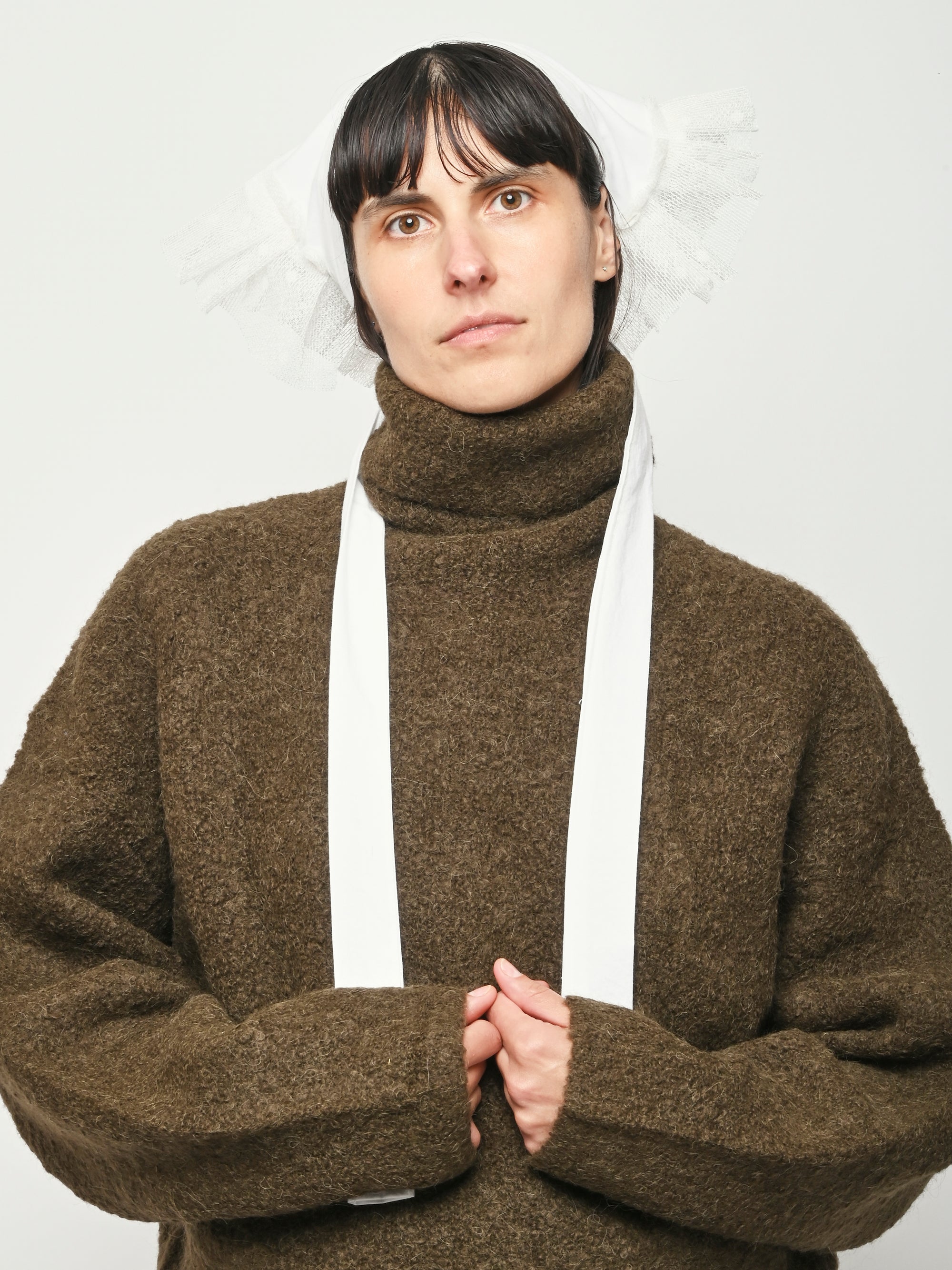 One of a kind White/Lace Bandana handmade from upcycled materials by local Portland, OR designer Makmak.