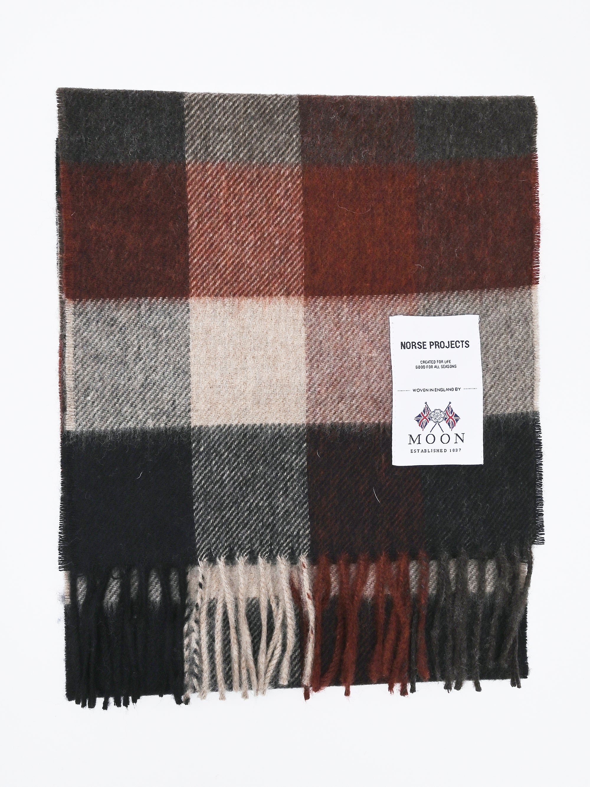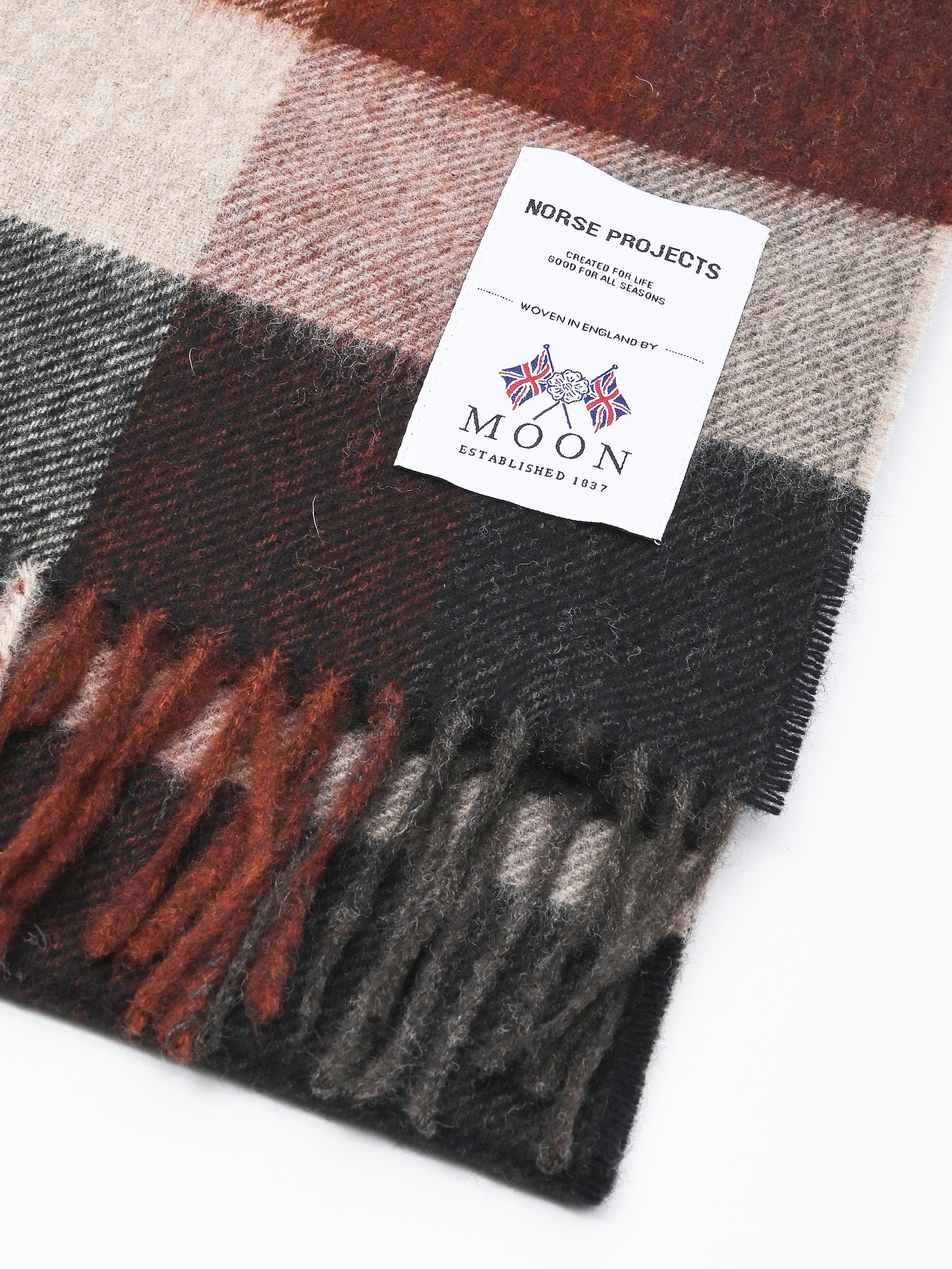 The Moon Lambswool Scarf is developed and woven by Abraham Moon in the UK.