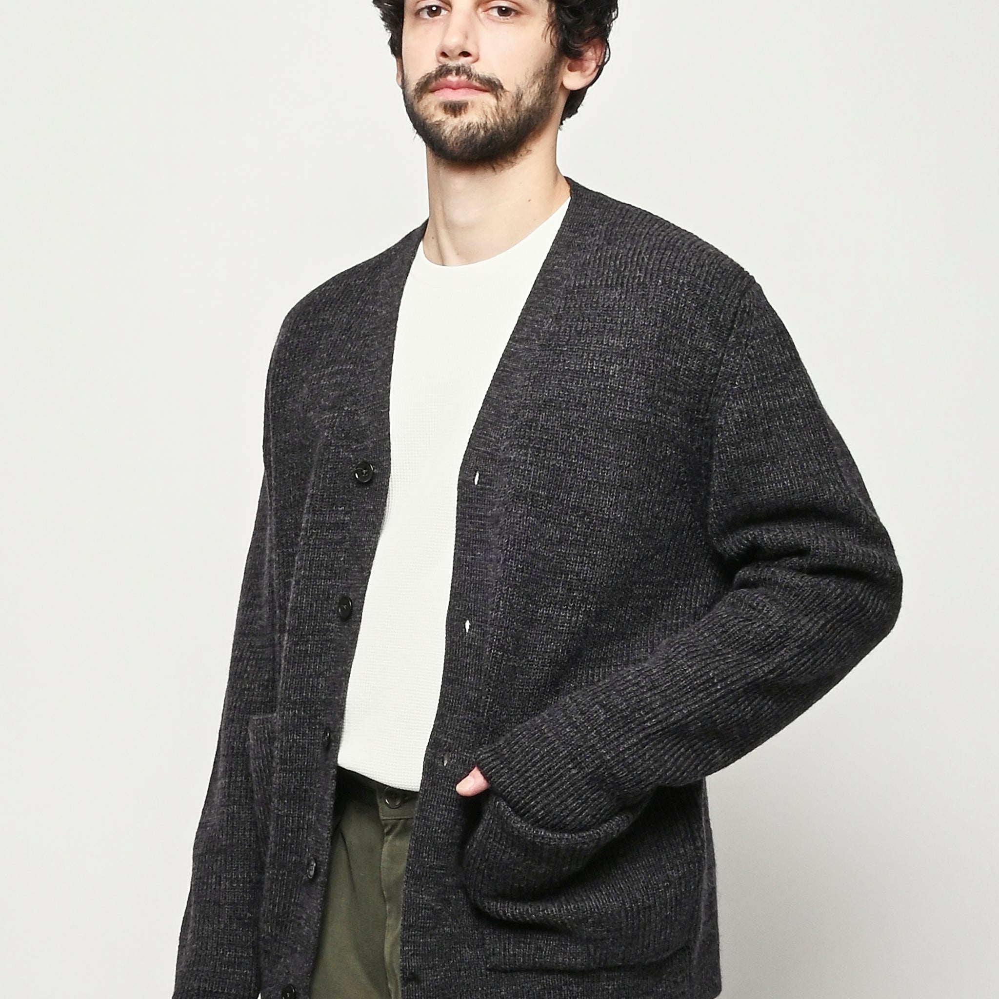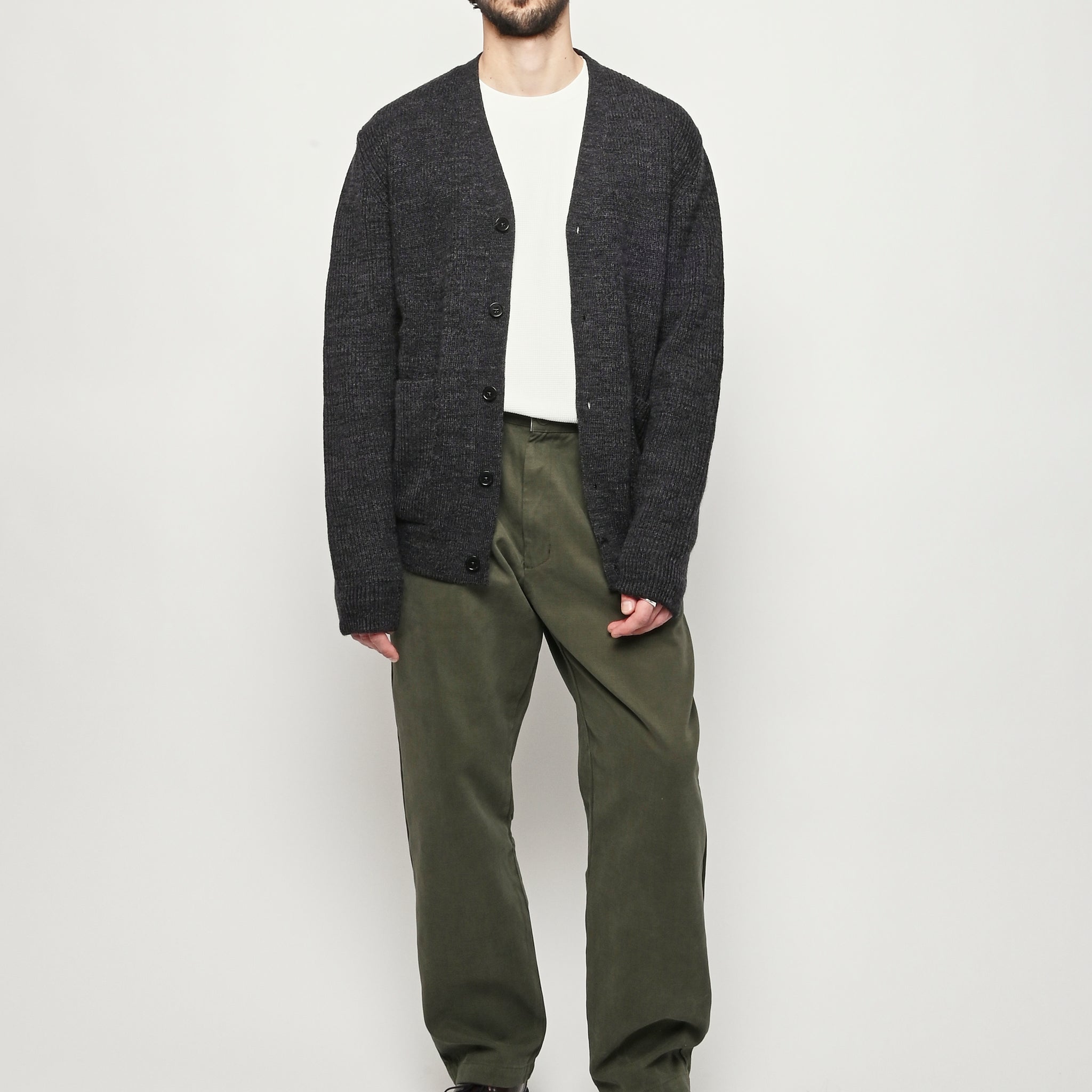 Dark Grey Melange Loki Wool Cotton Rib Cardigan