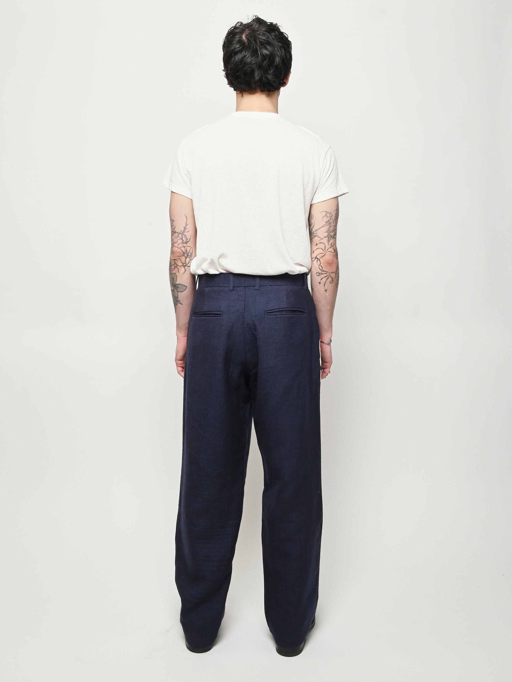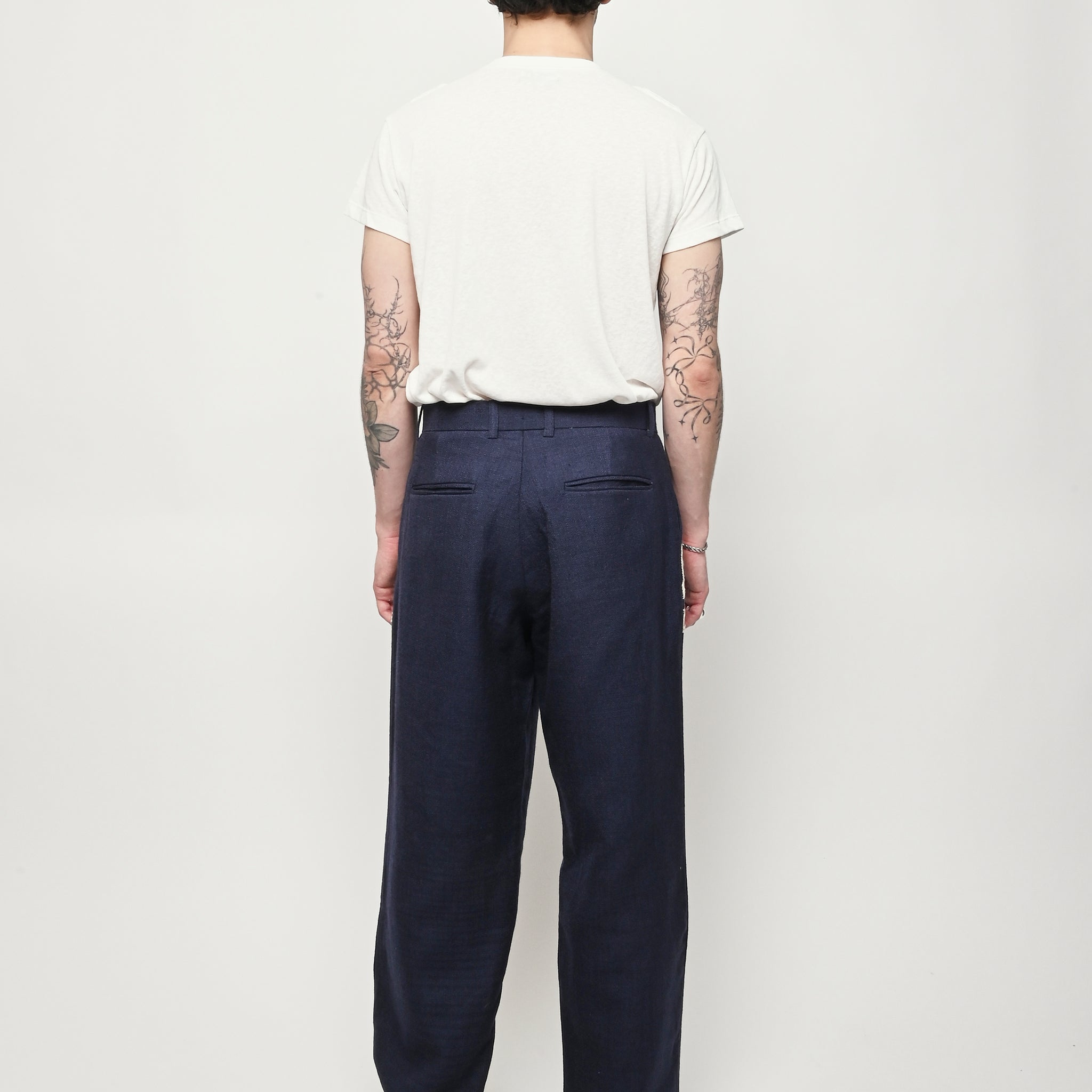 Navy/Ecru Pleated Trousers