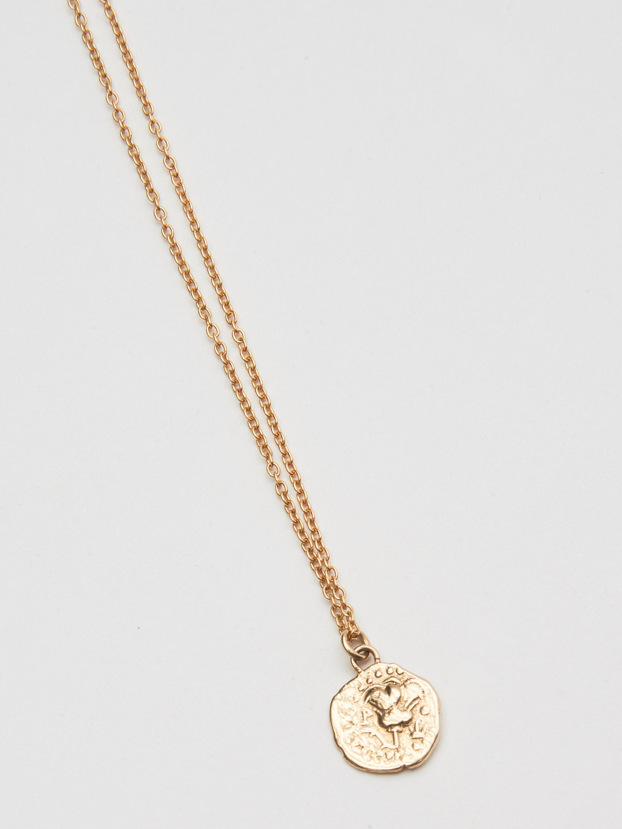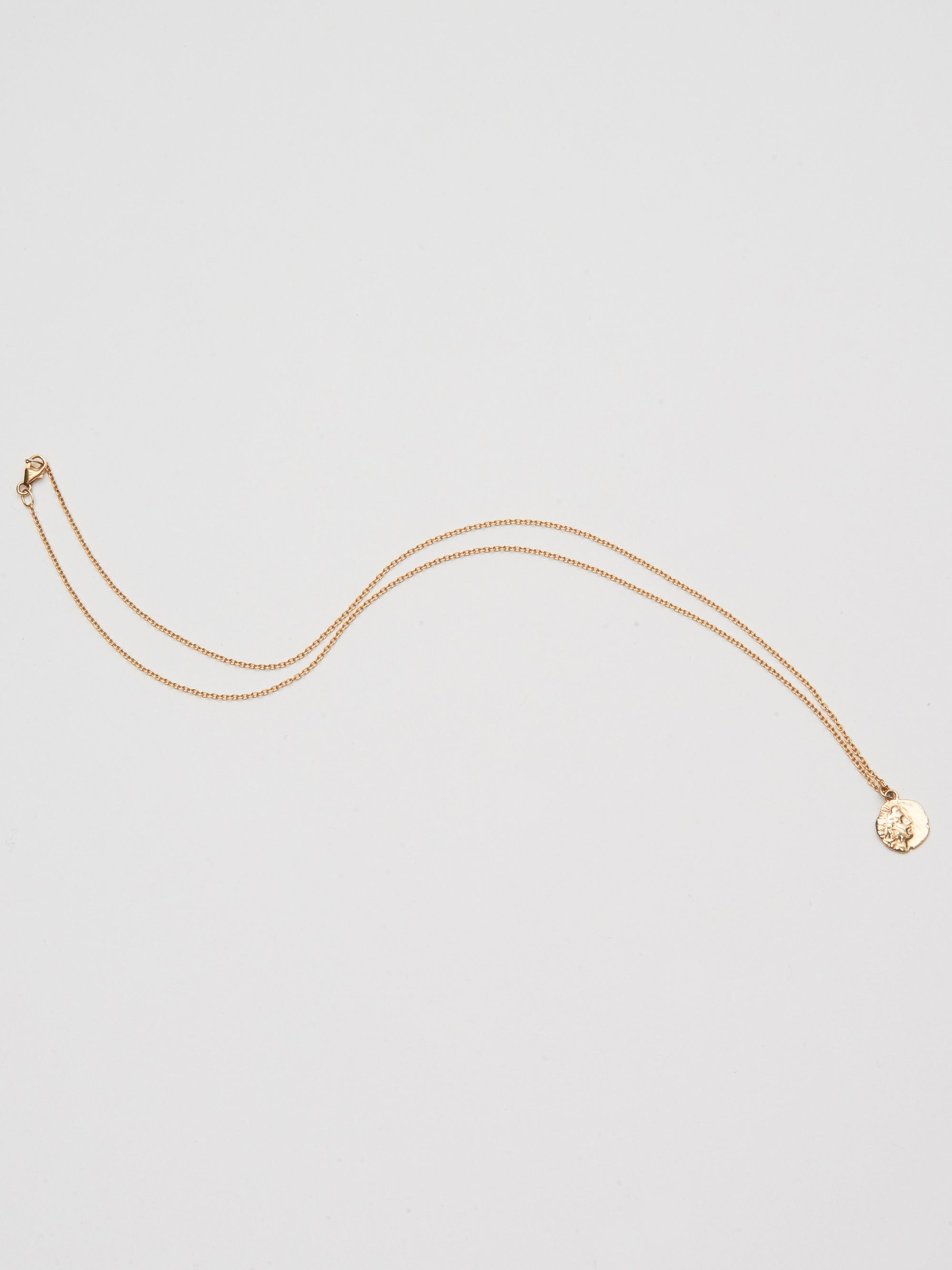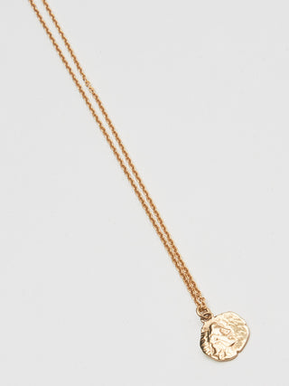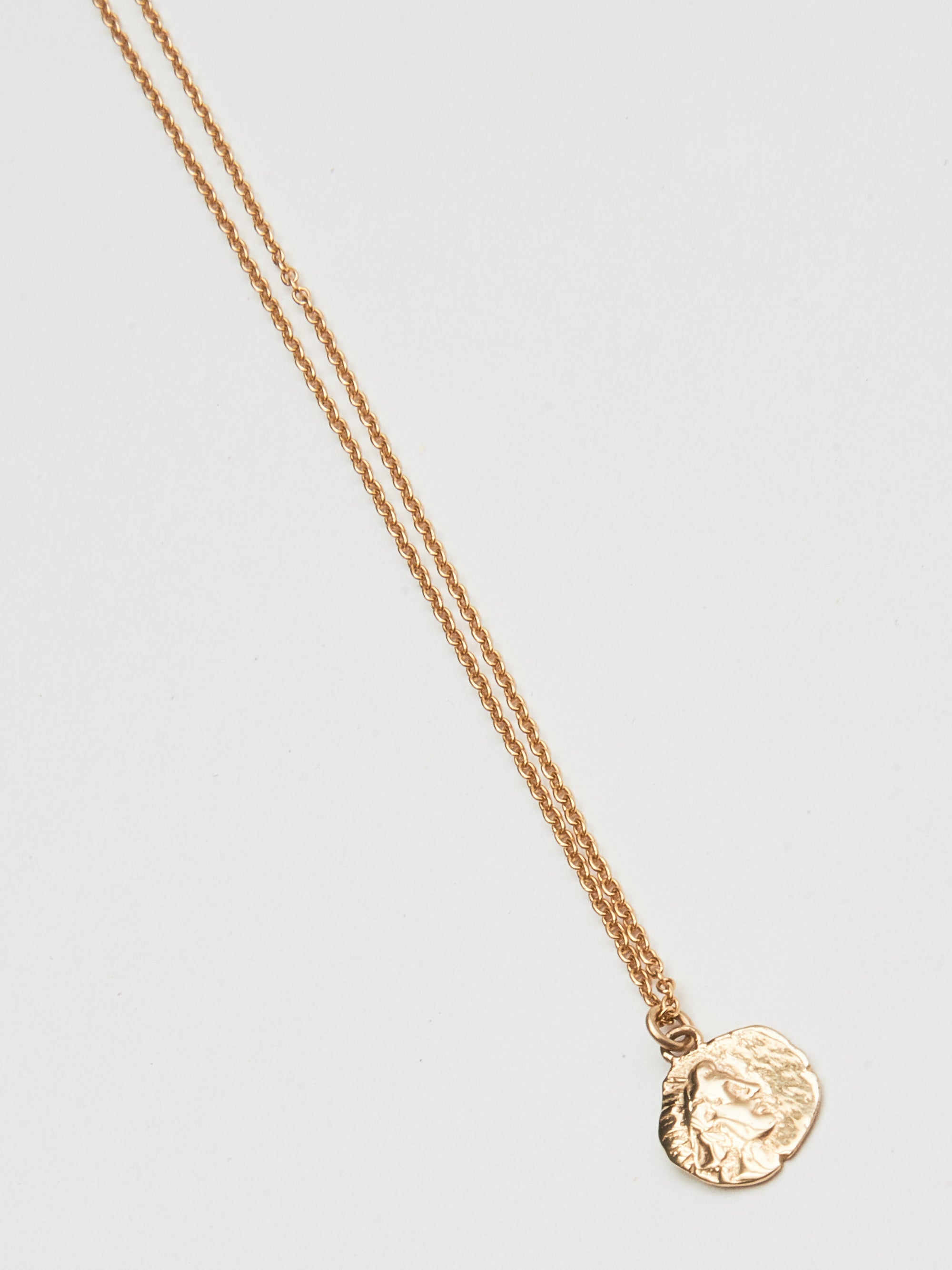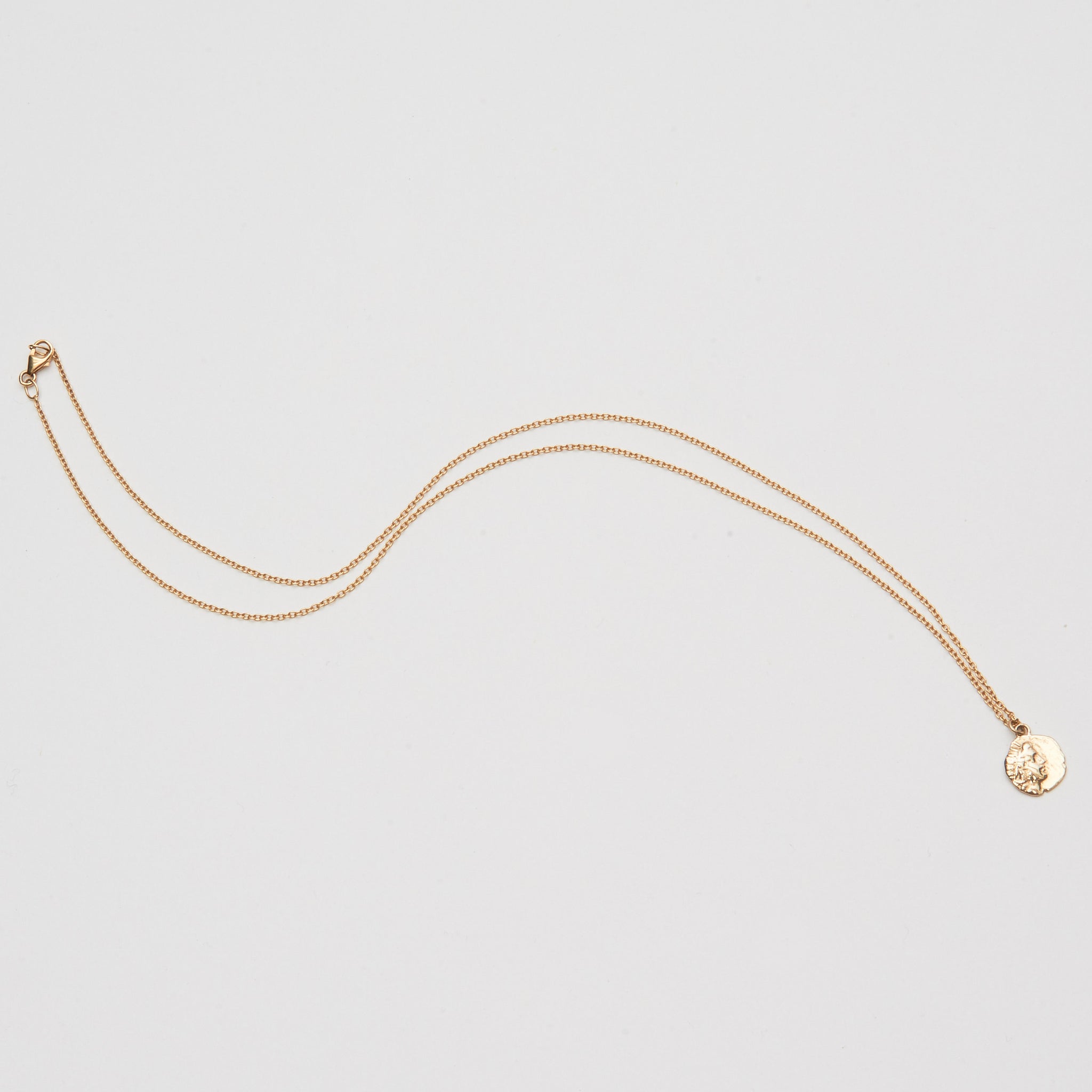 Helios and Rose coin pendant in 14k gold on an elegant 18" chain