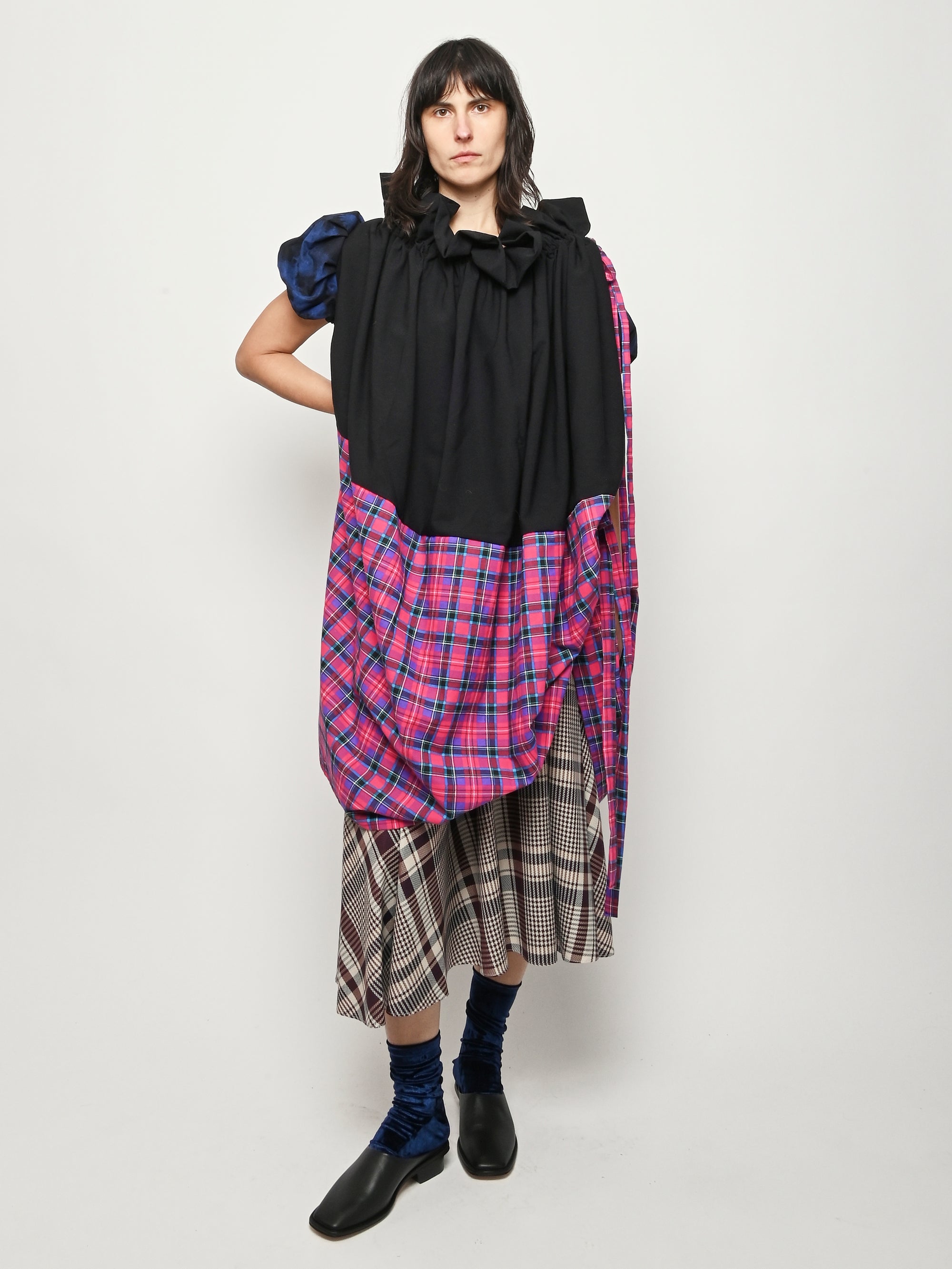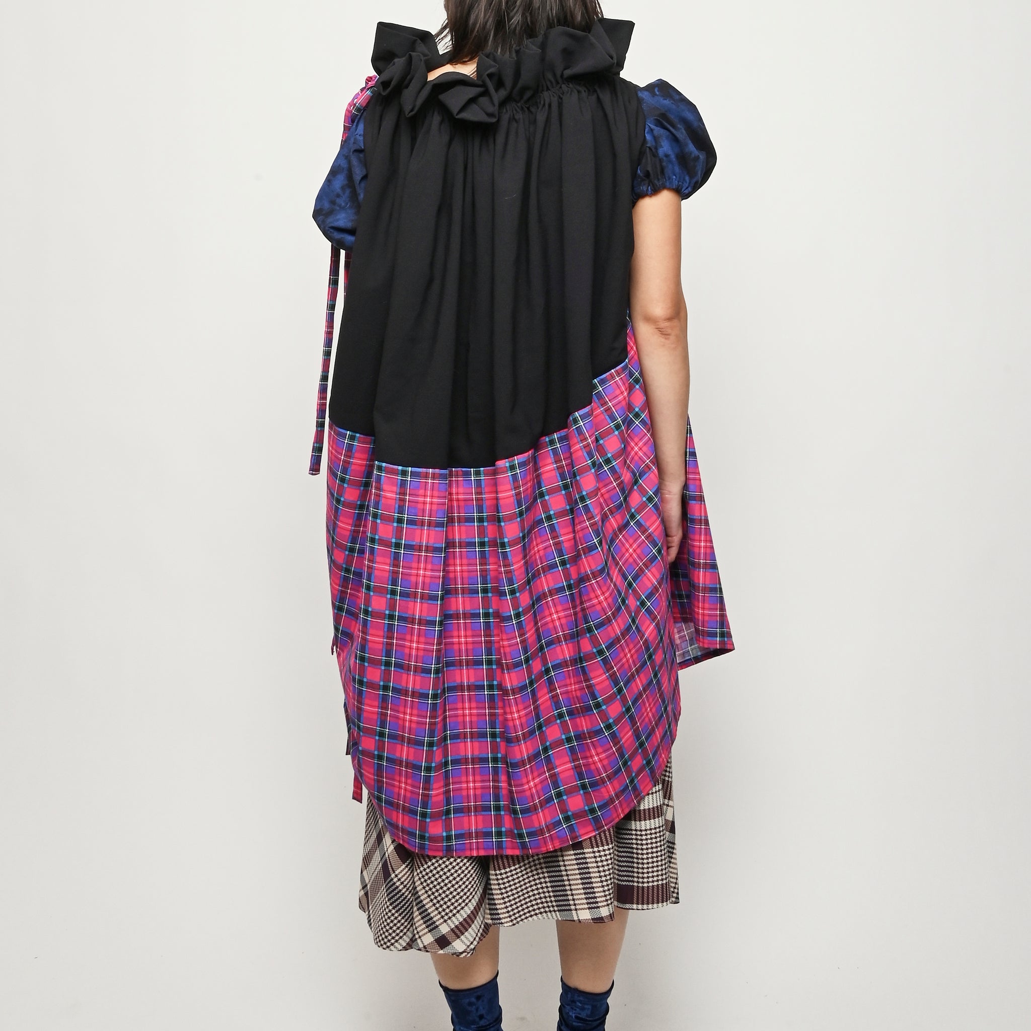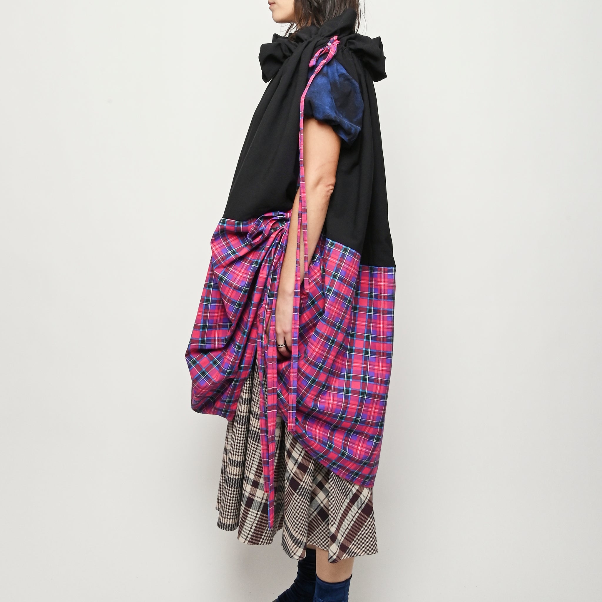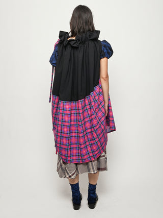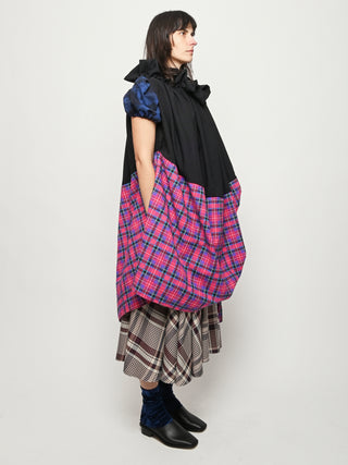 One of a kind Black/Pink Plaid Puff Sleeve Dress handmade from upcycled materials by local Portland, OR designer Makmak.
