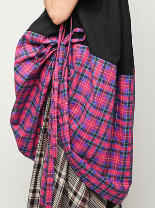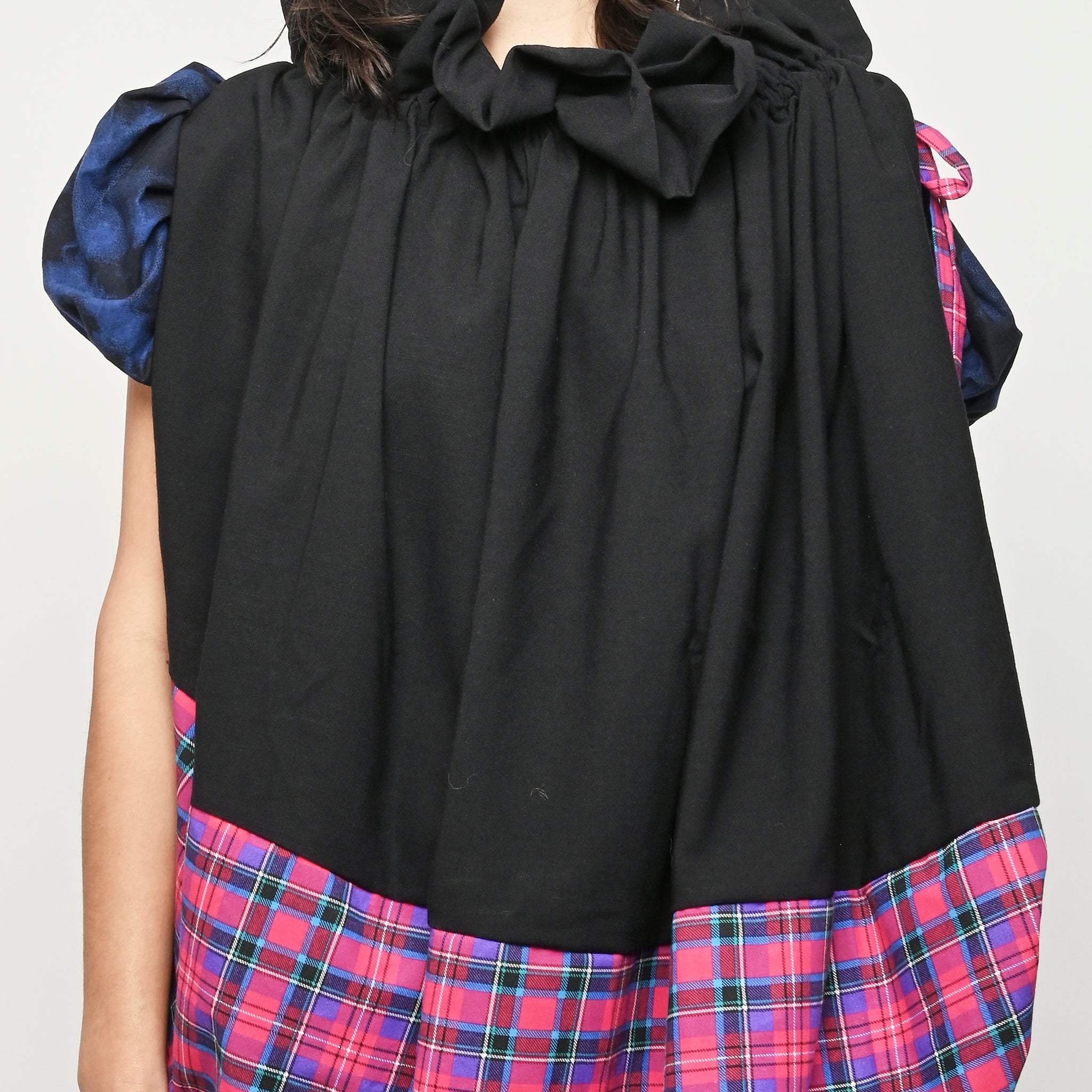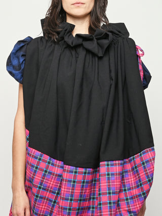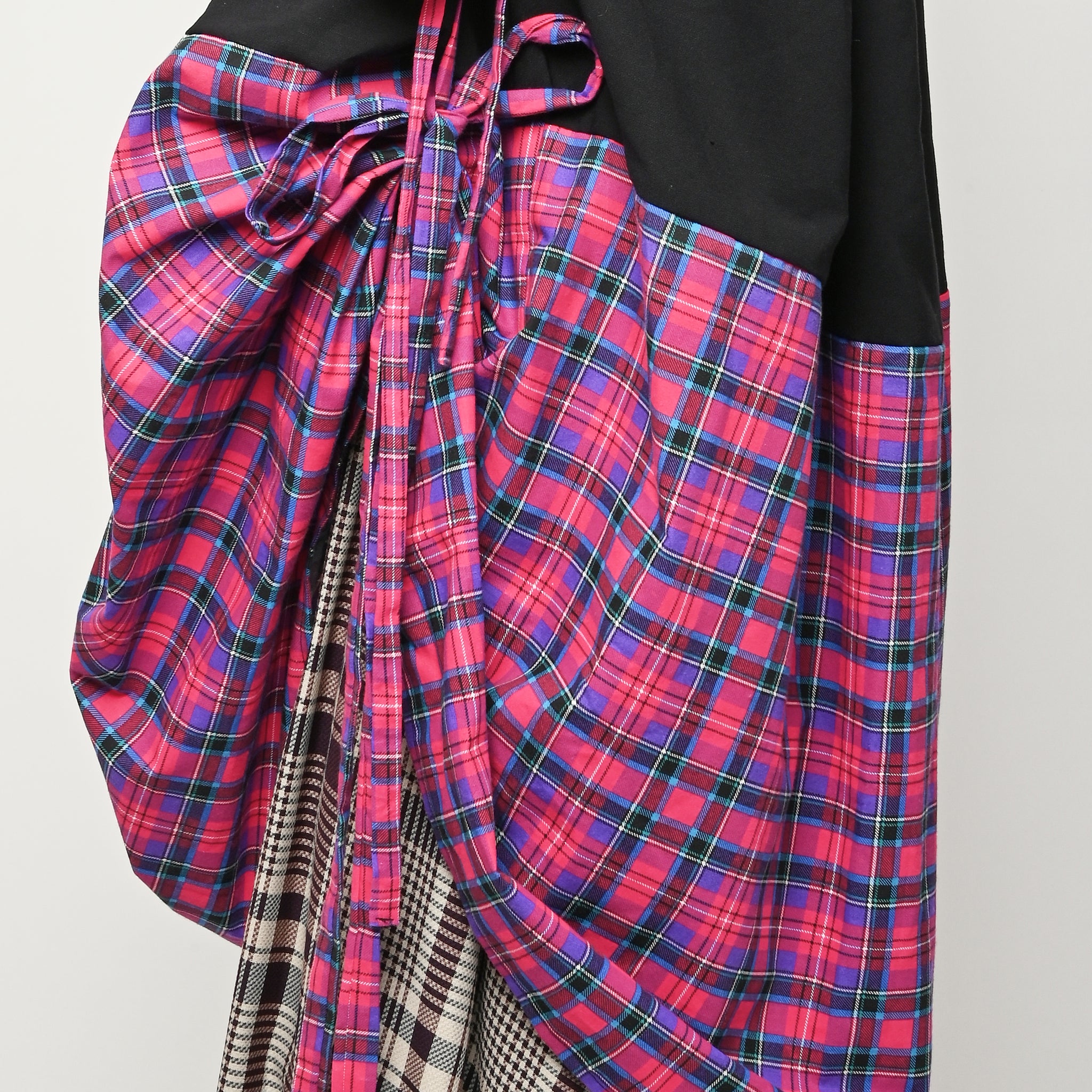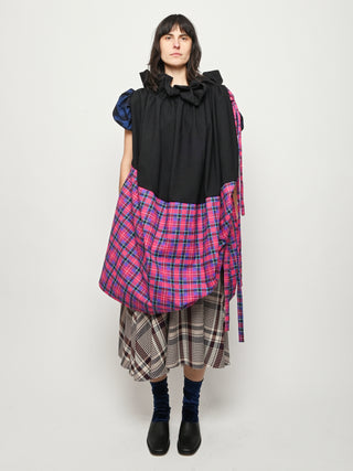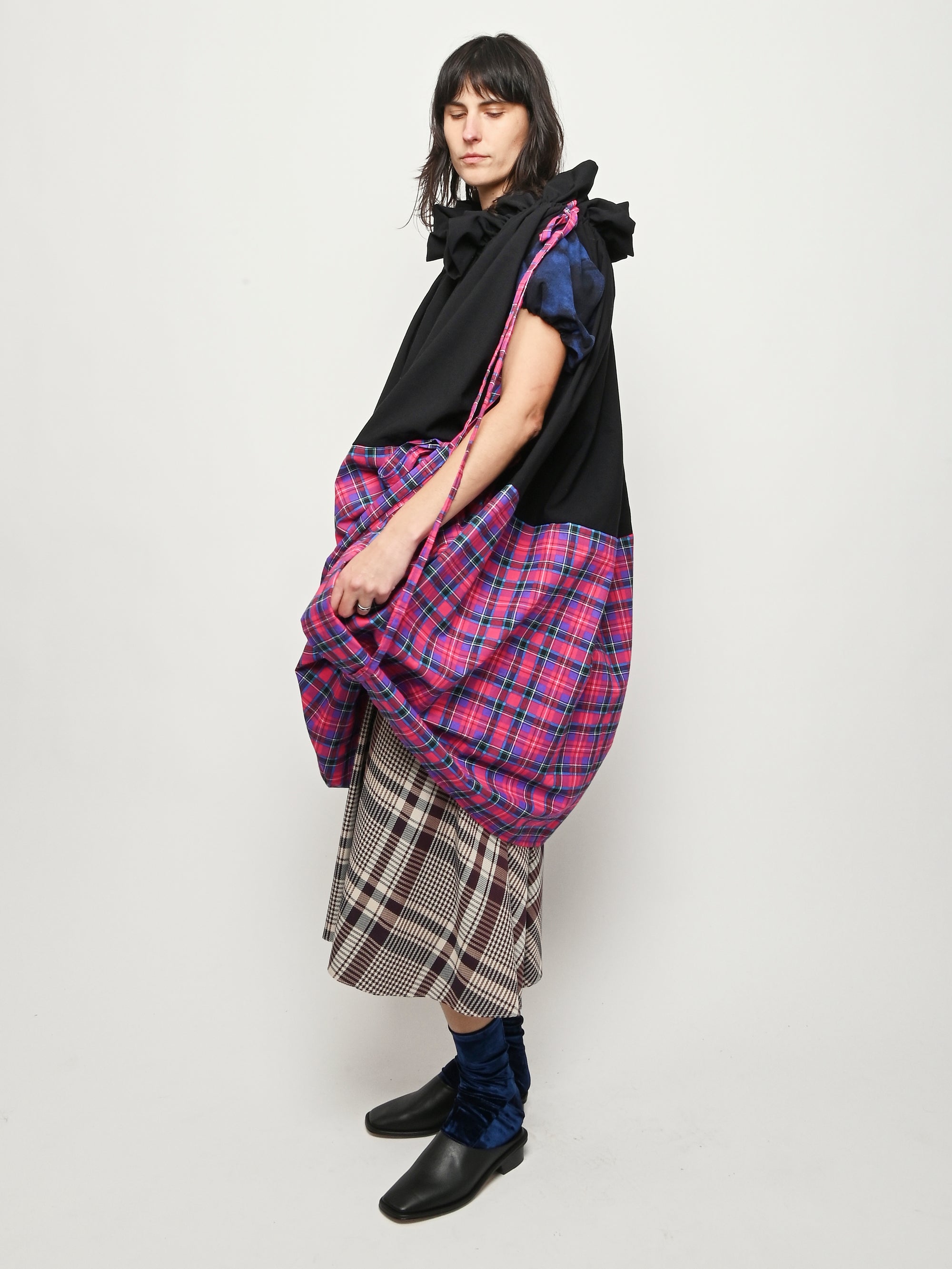 One of a kind Black/Pink Plaid Puff Sleeve Dress handmade from upcycled materials by local Portland, OR designer Makmak.