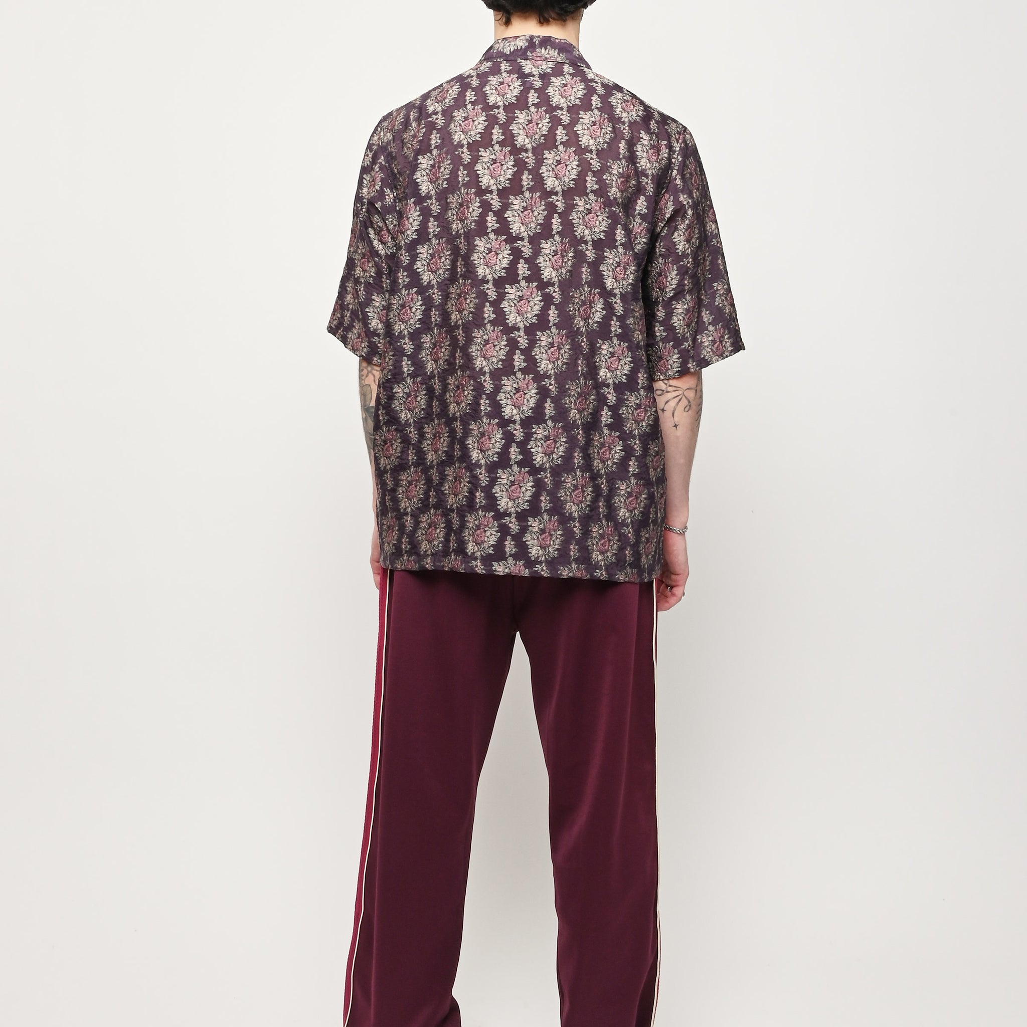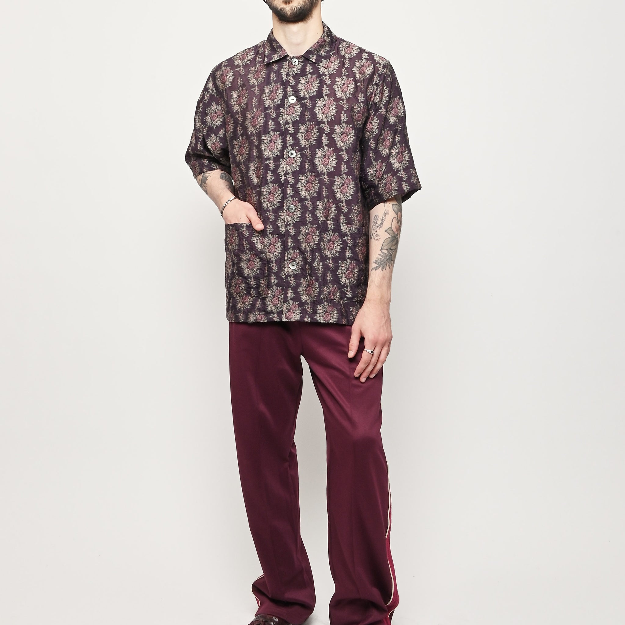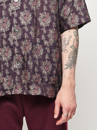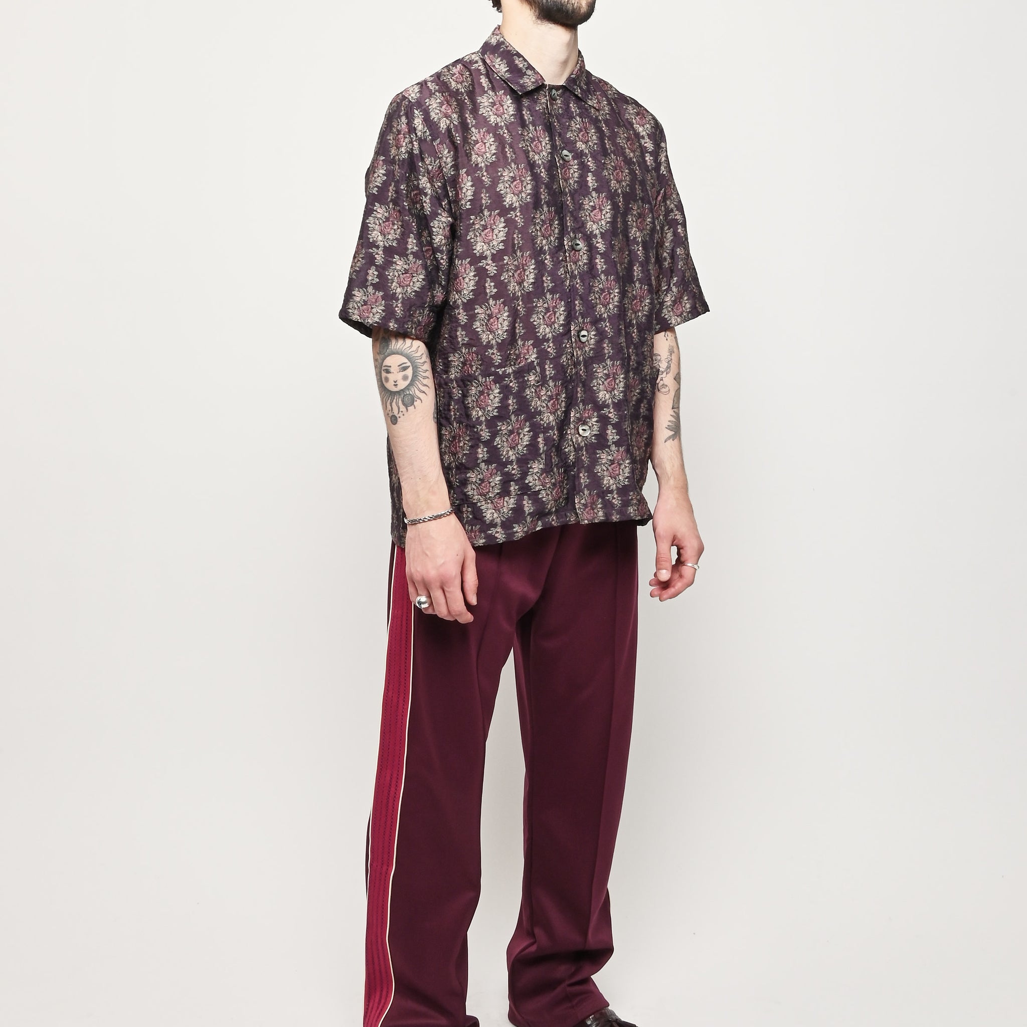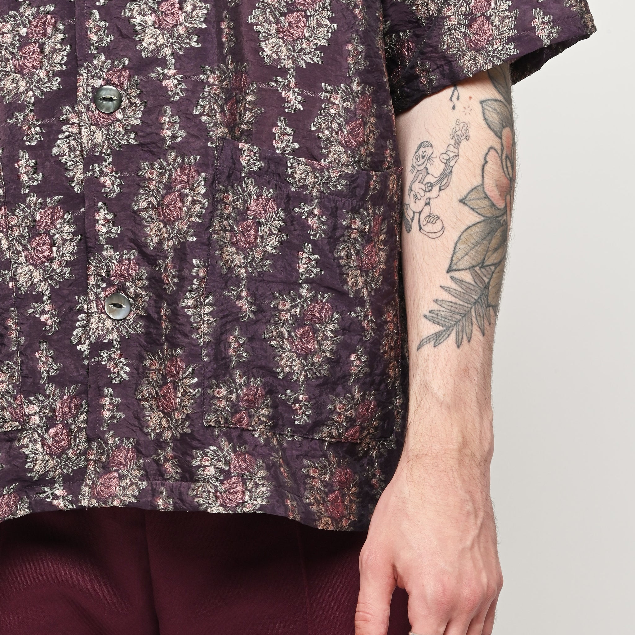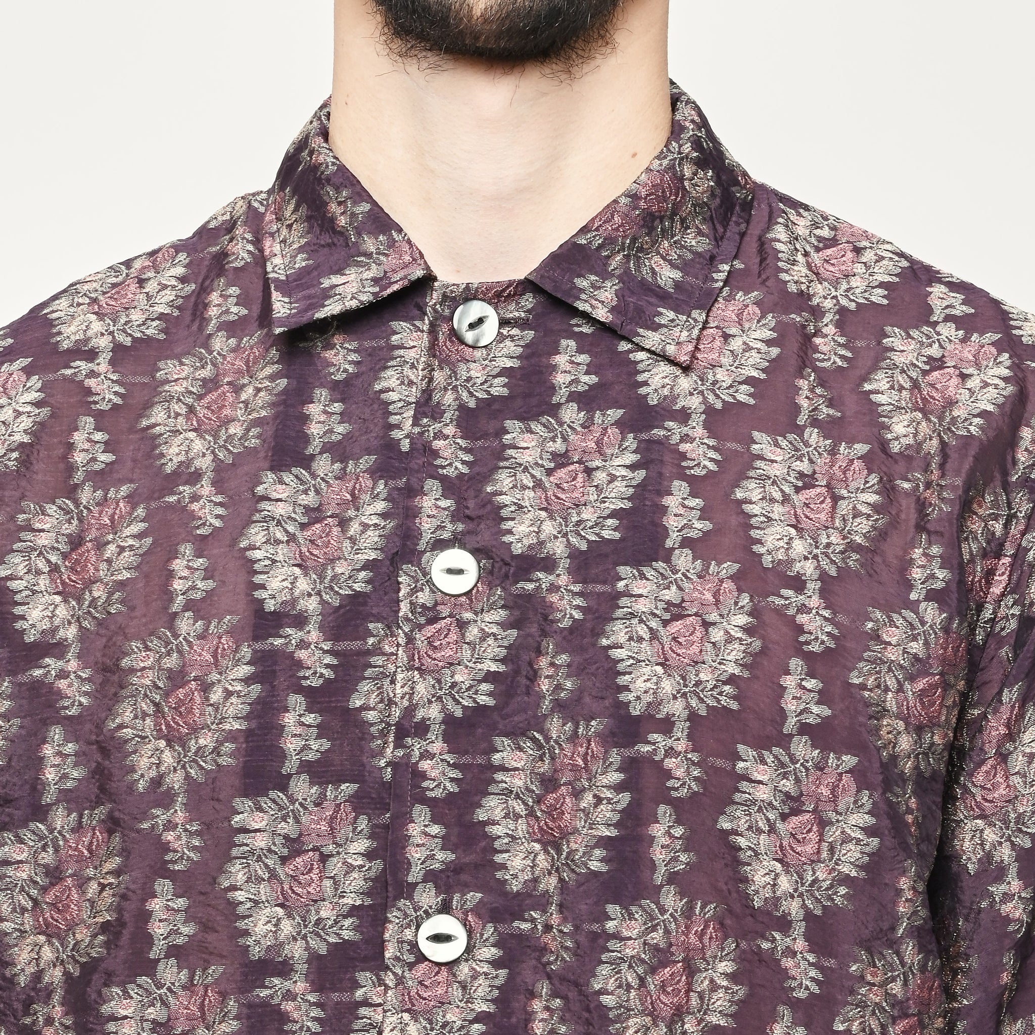 Buttoning, short sleeved shirt by Needles made in a purple floral jacquard fabric.