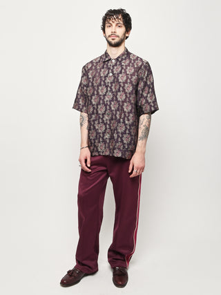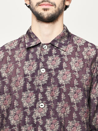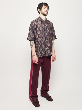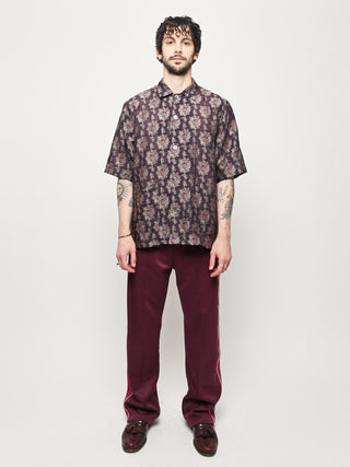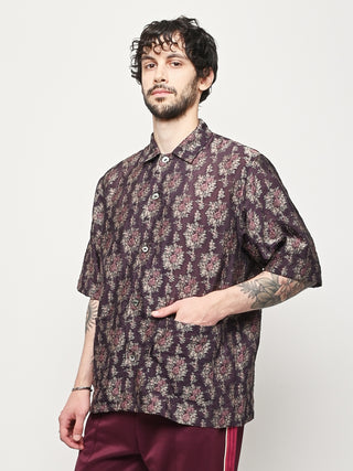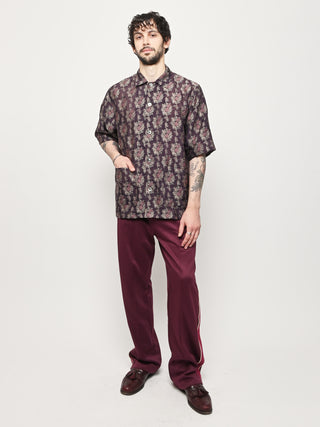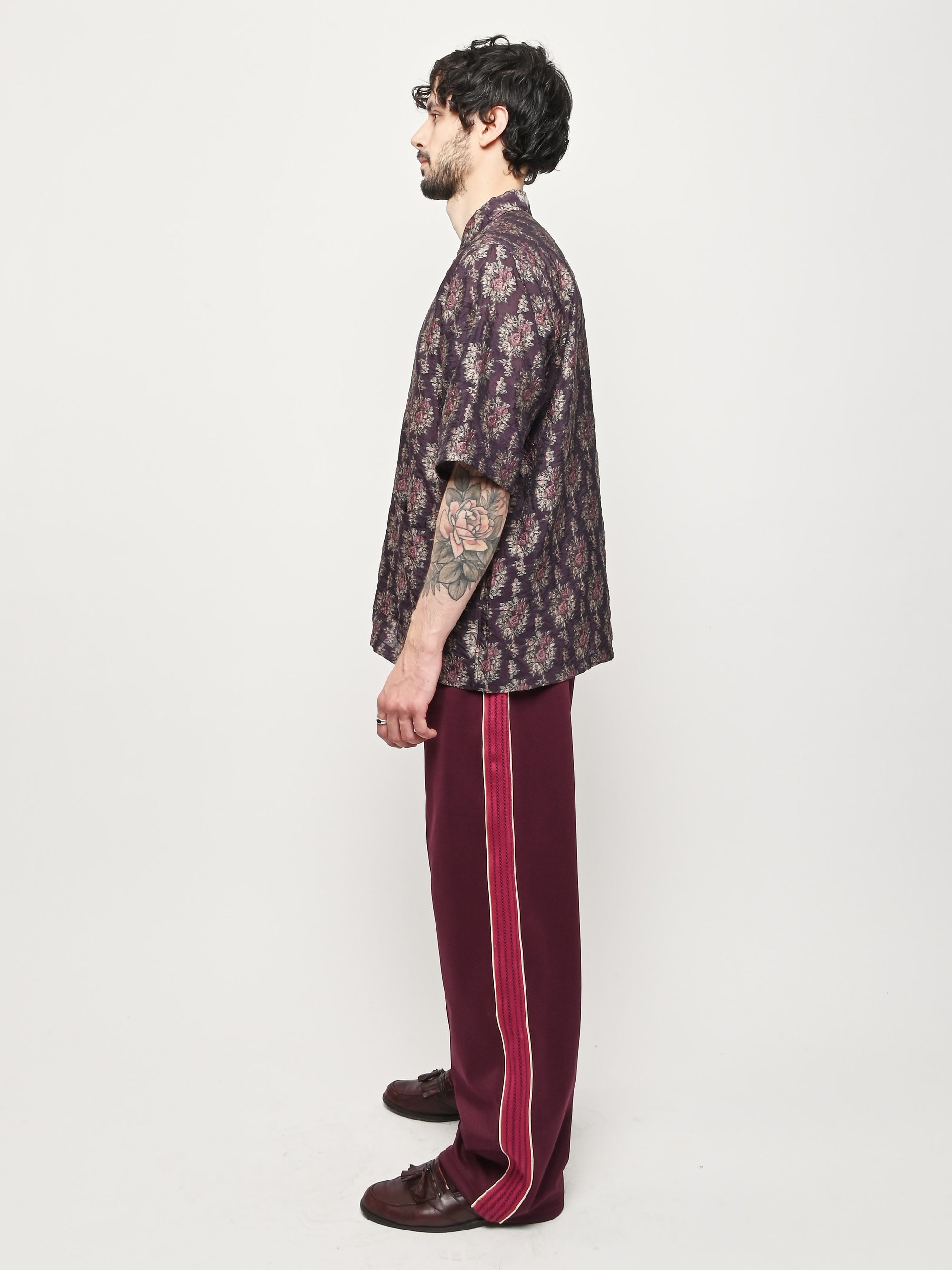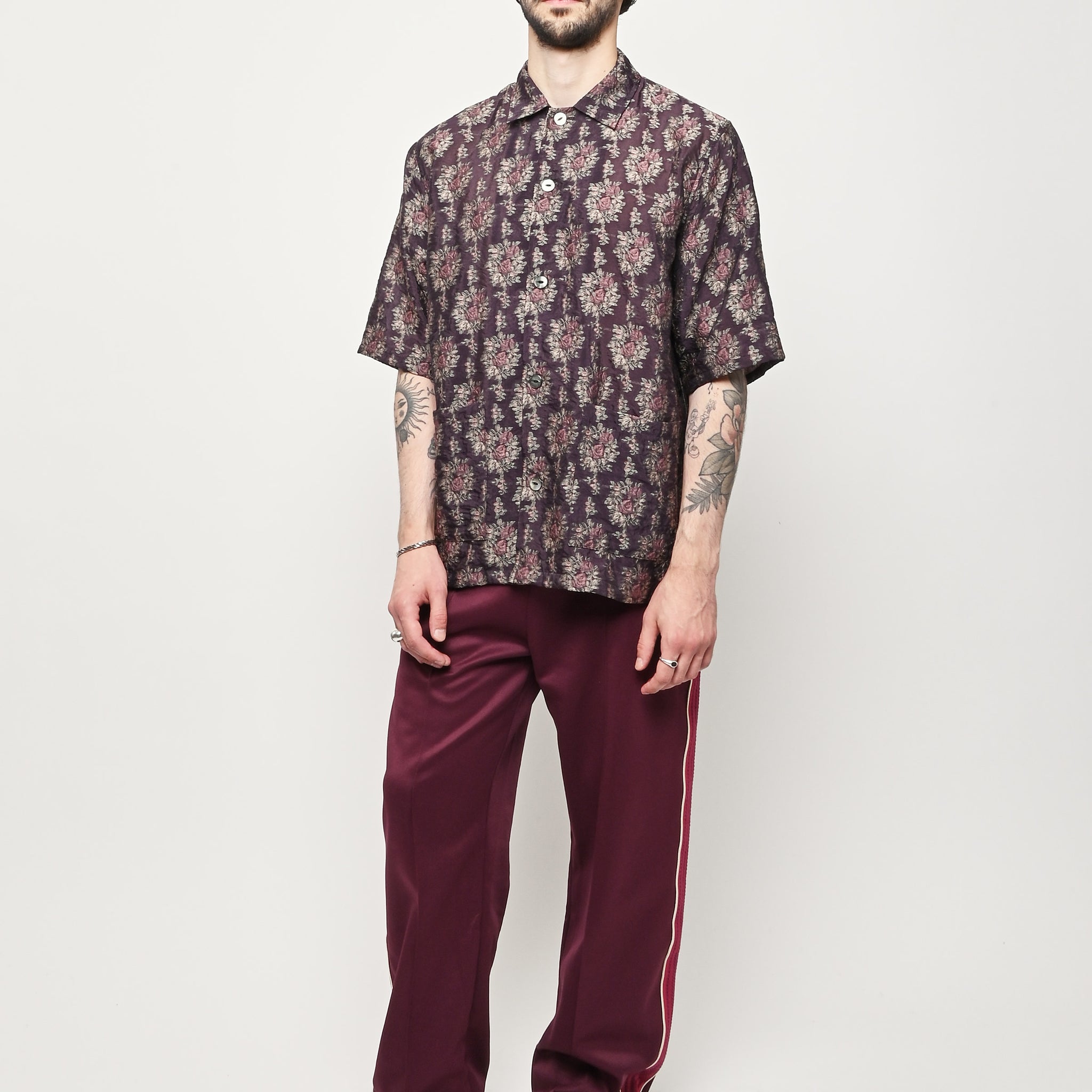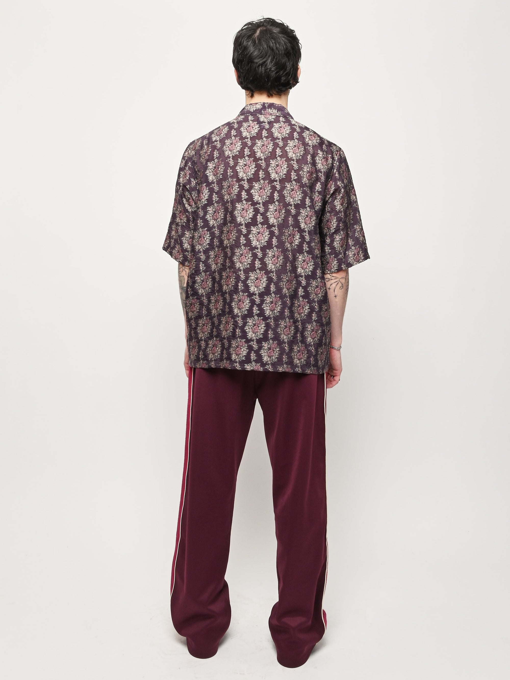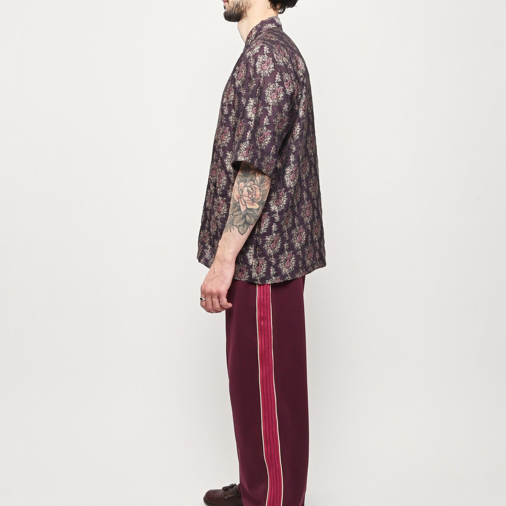 Buttoning, short sleeved shirt by Needles made in a purple floral jacquard fabric.