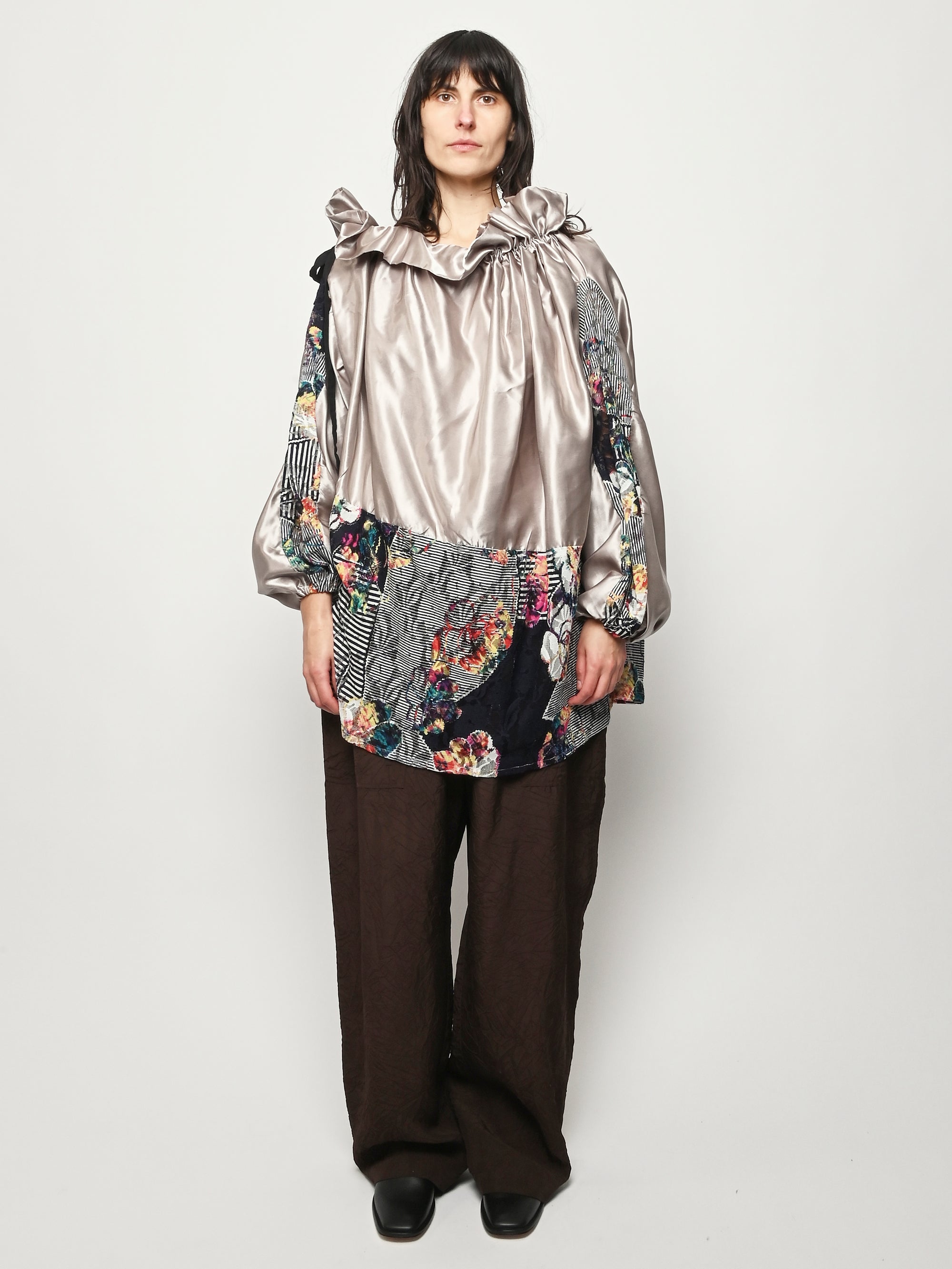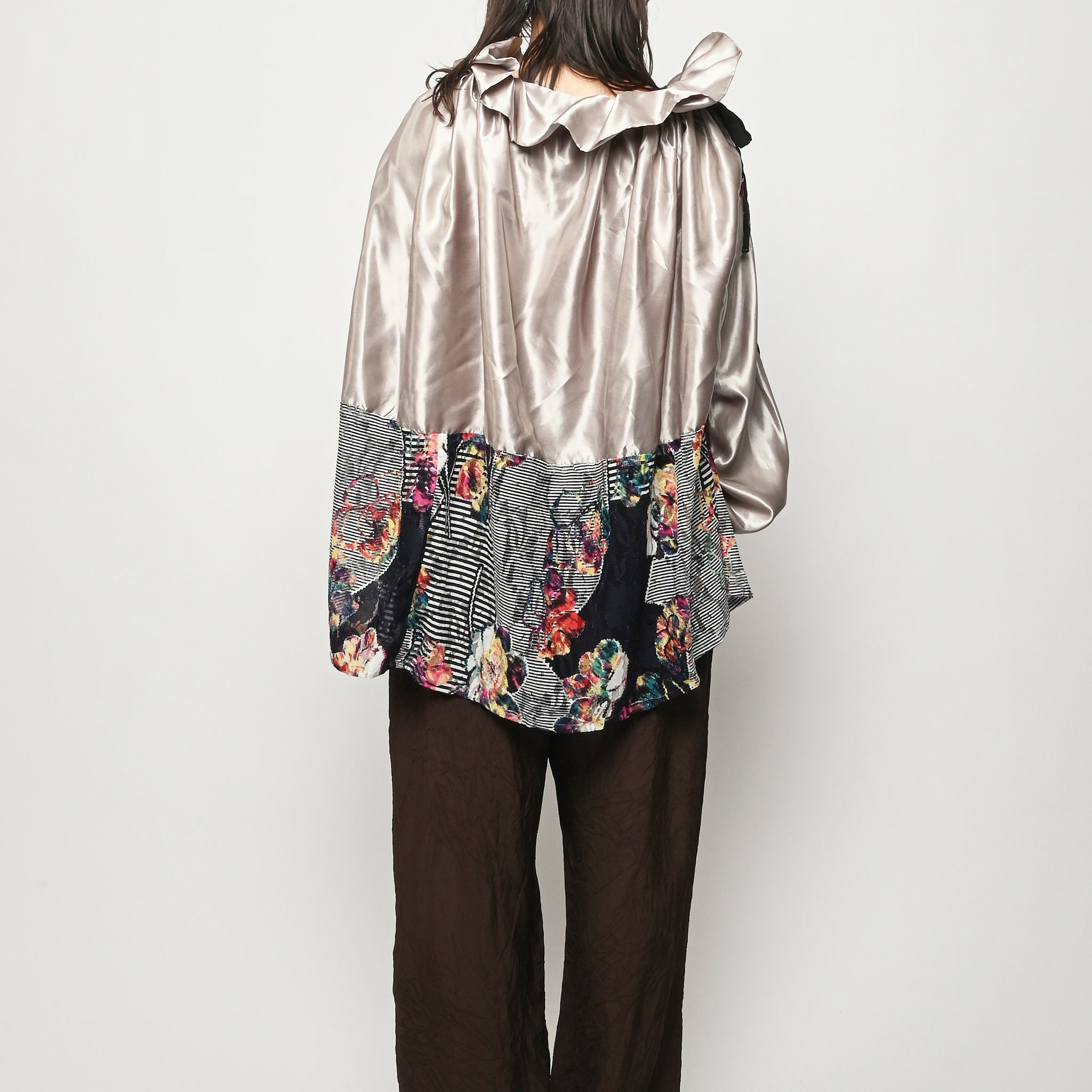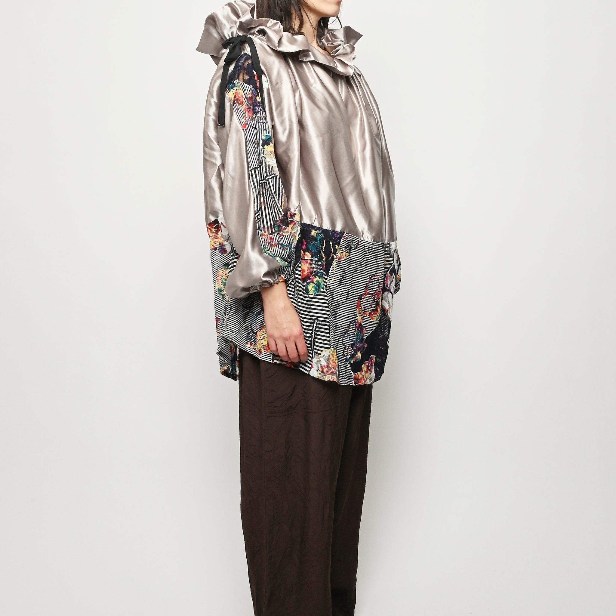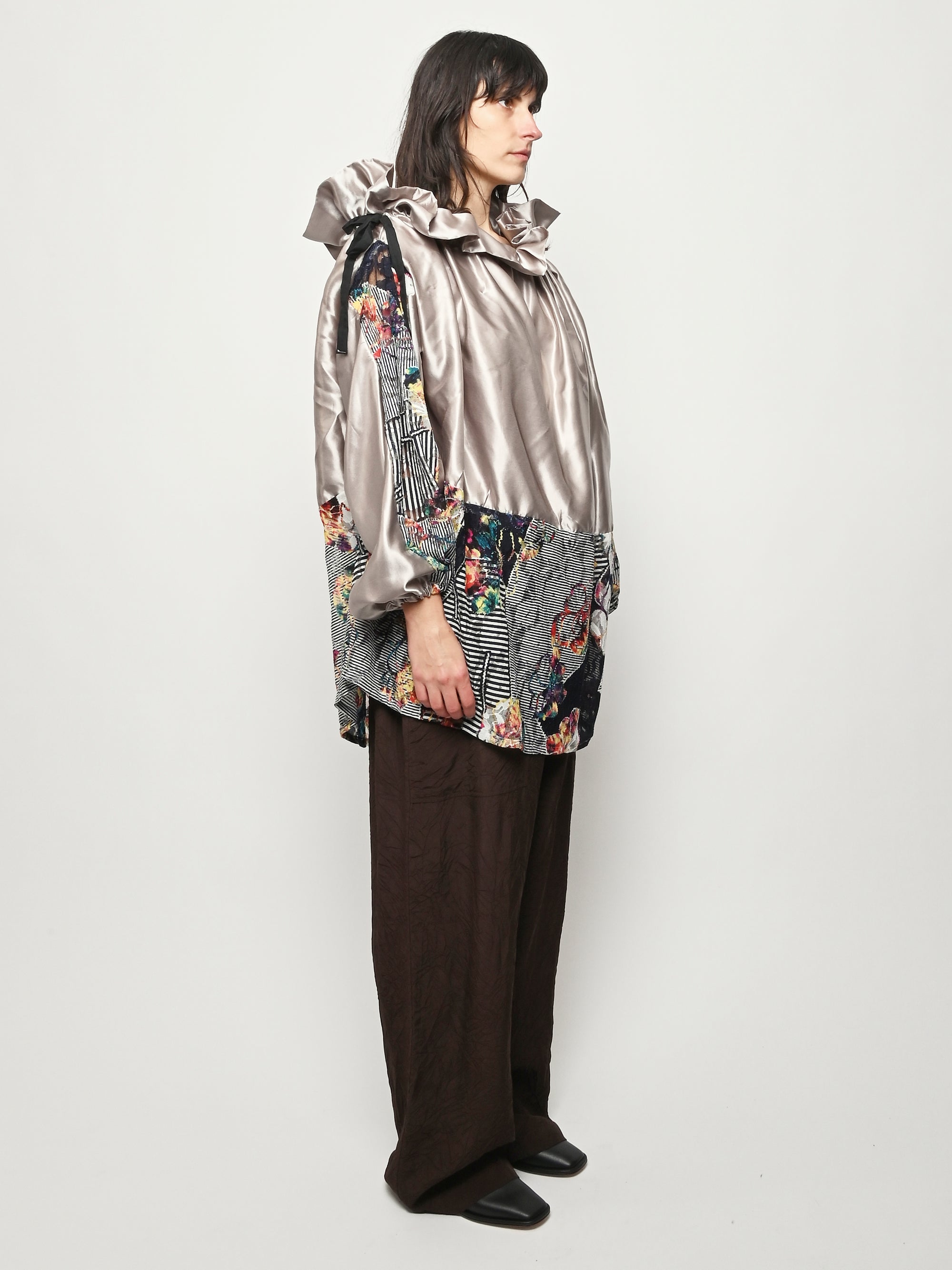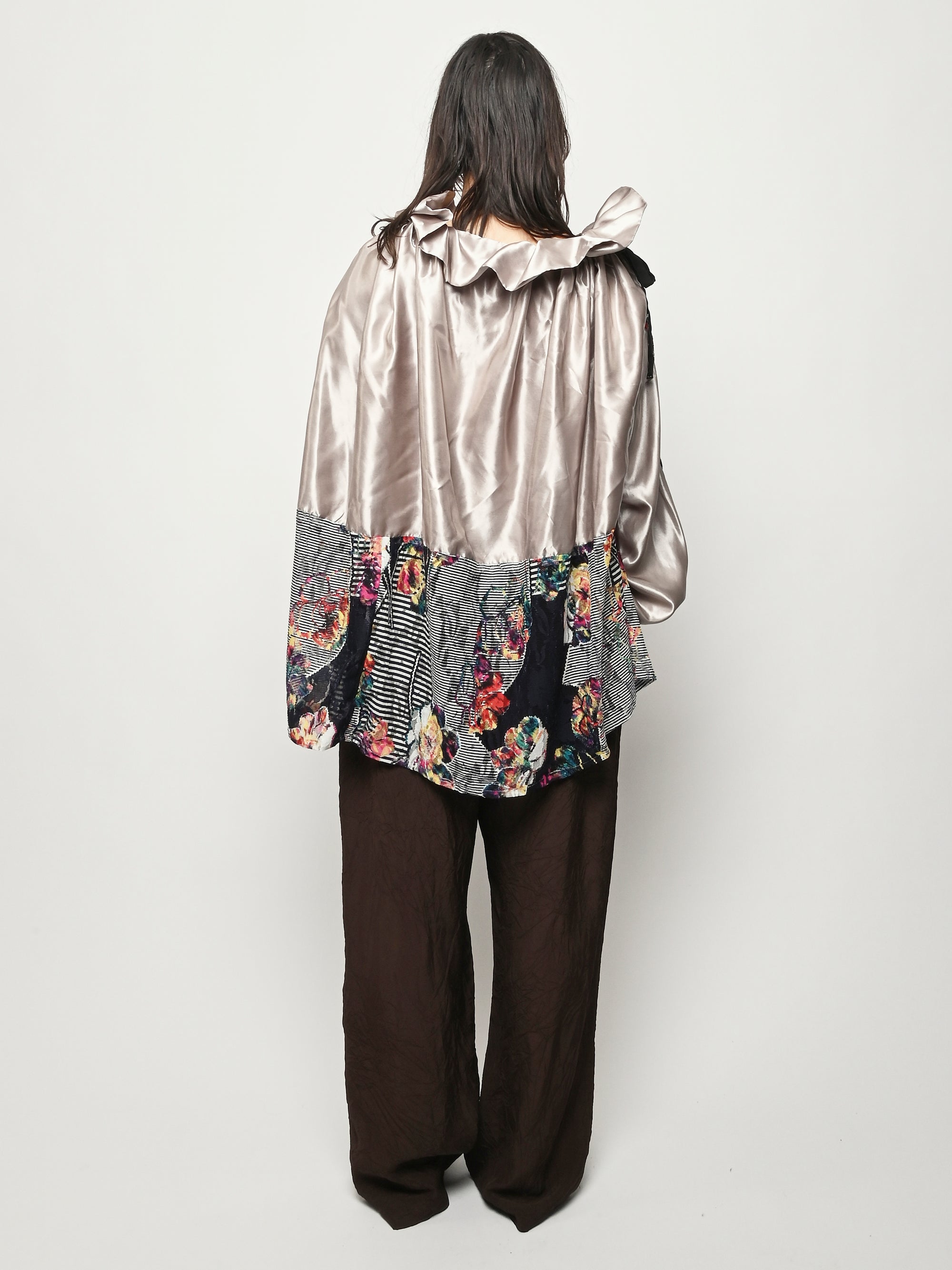 One of a kind Pewter/Floral Ruffle Dress handmade from upcycled materials by local Portland, OR designer Makmak.