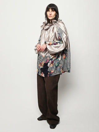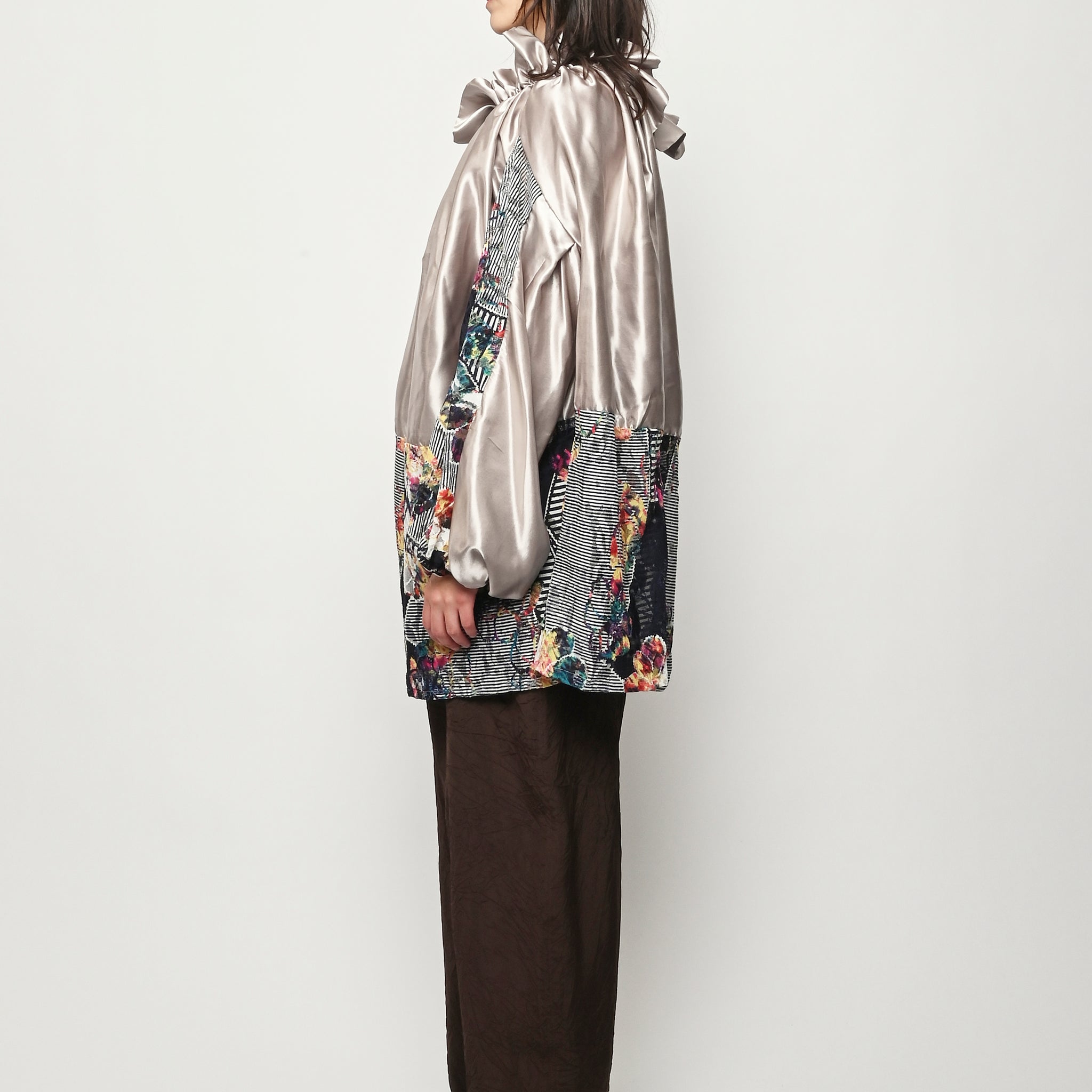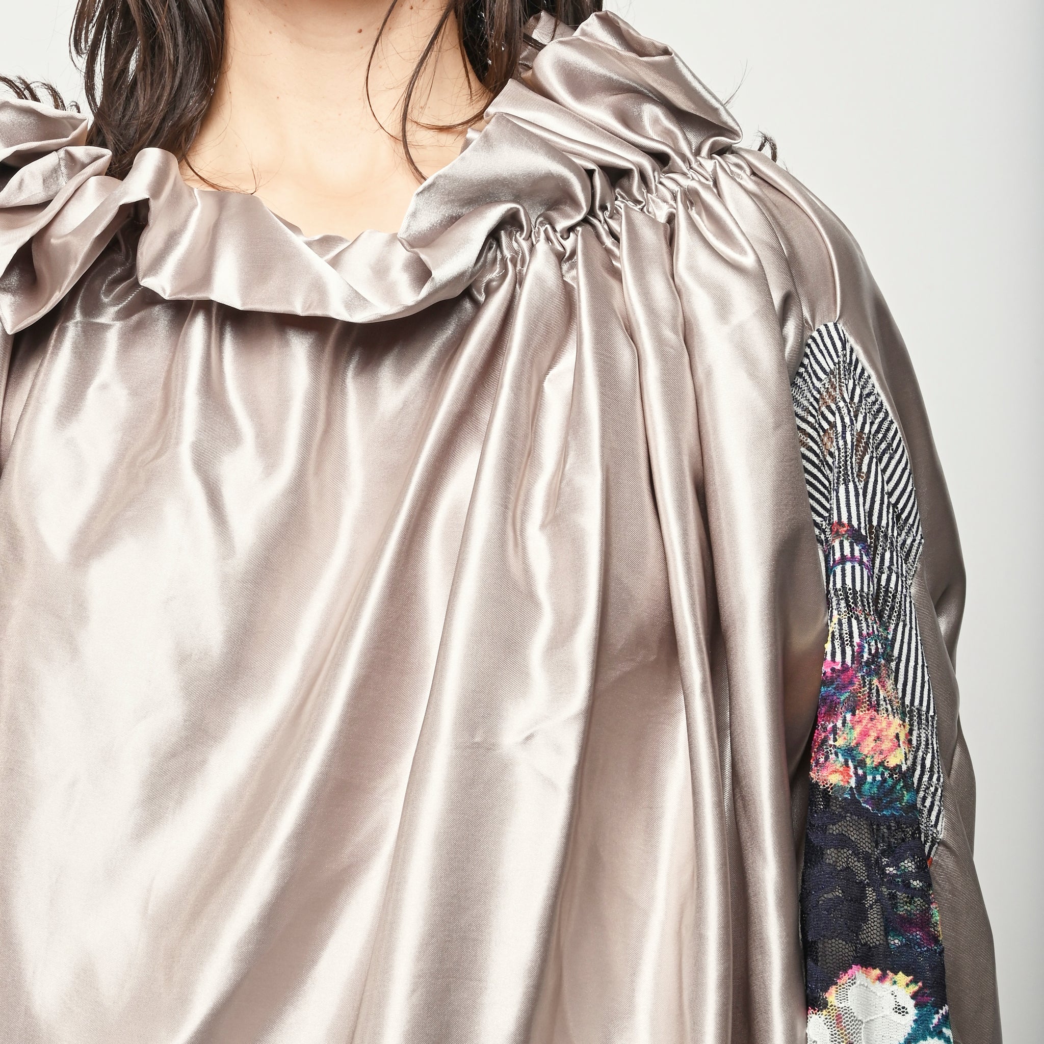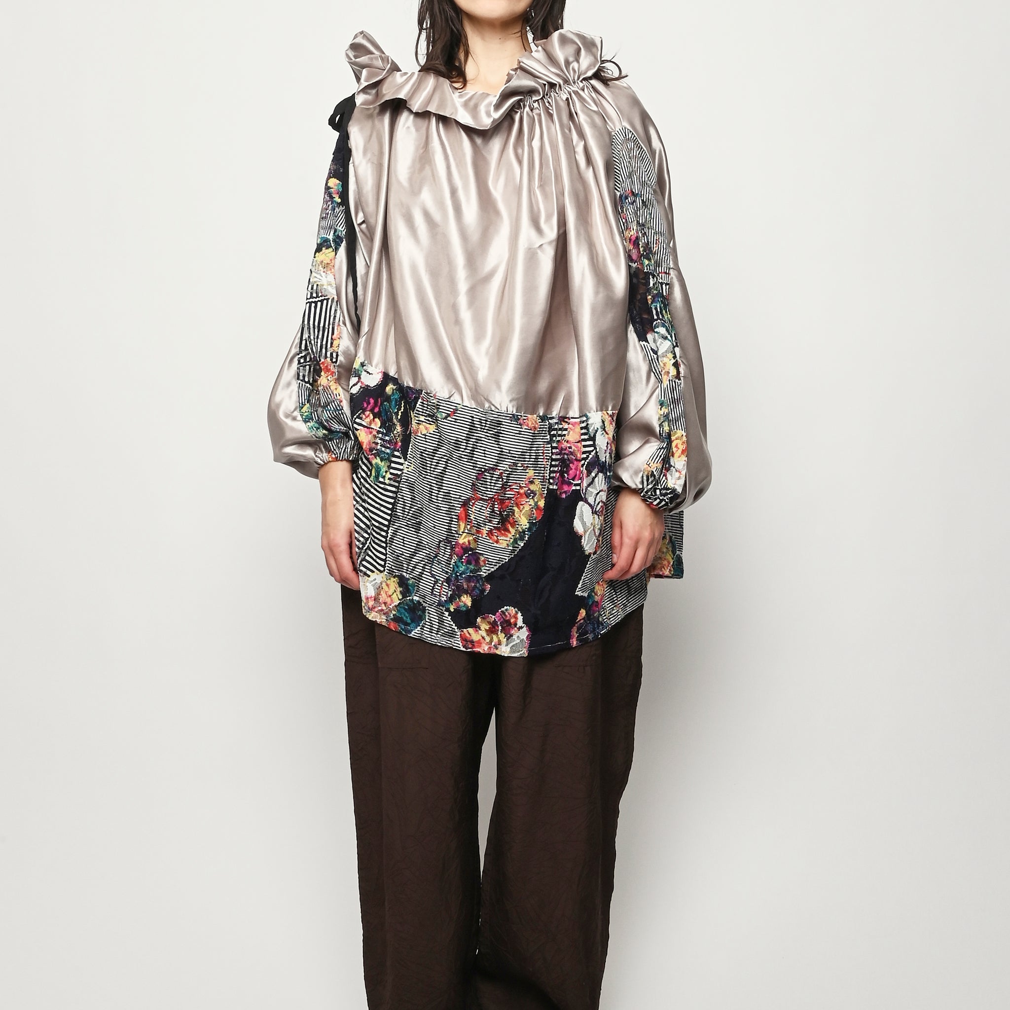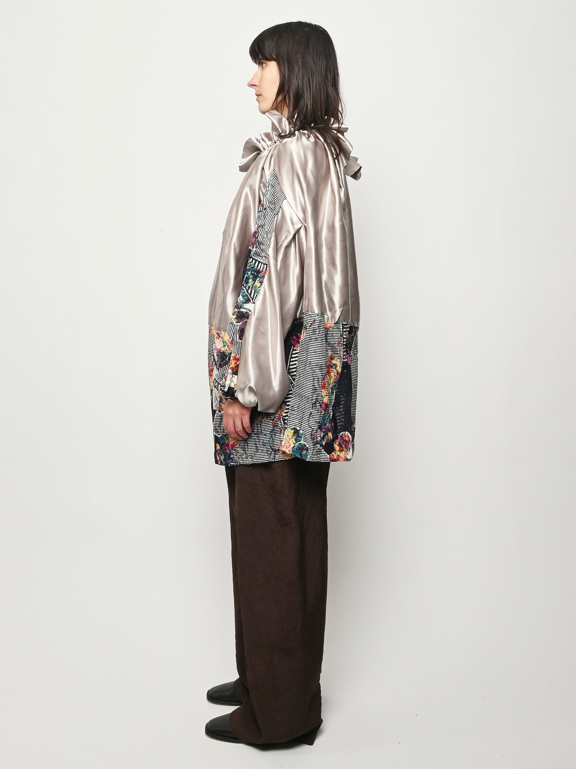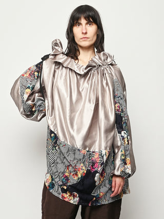 One of a kind Pewter/Floral Ruffle Dress handmade from upcycled materials by local Portland, OR designer Makmak.