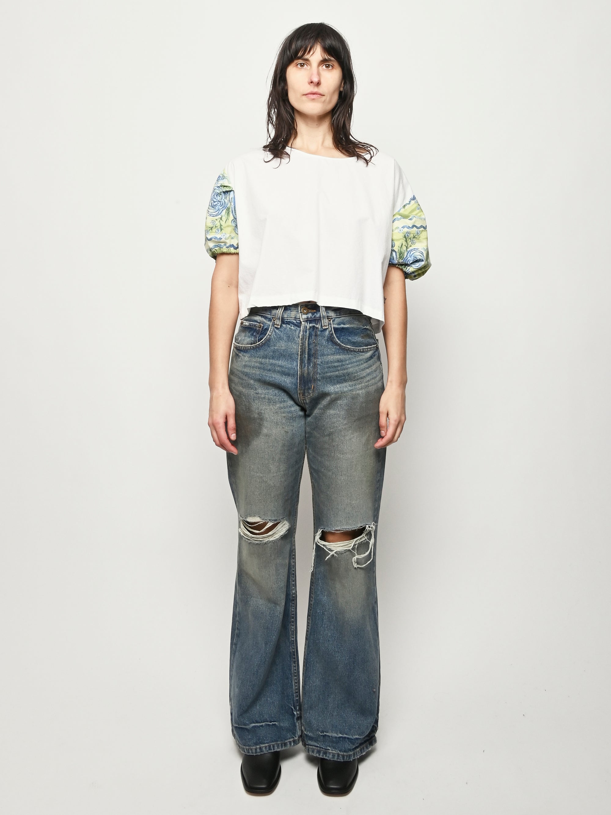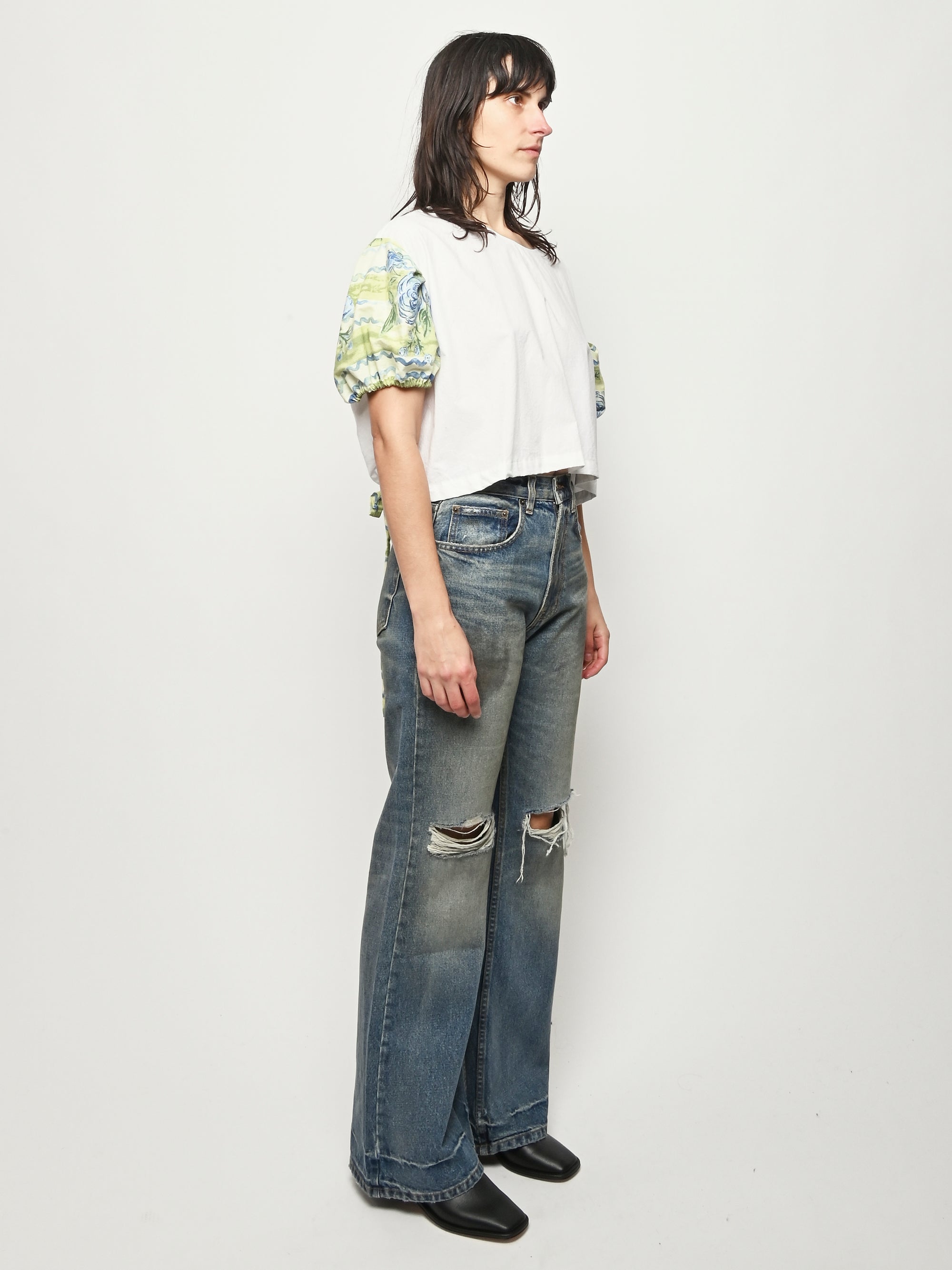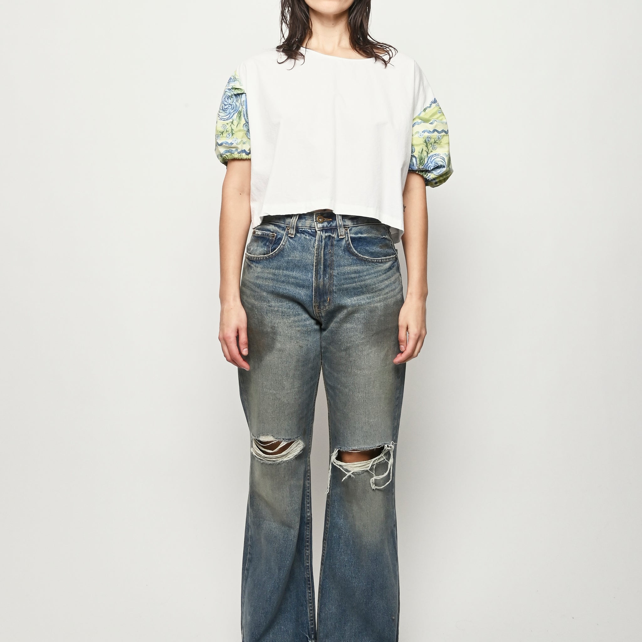 One of a kind Puff Top handmade from upcycled materials by local Portland, OR designer Makmak.