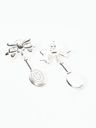 Sandy Liang Mini hairbrush pendant drop earrings in Silver.