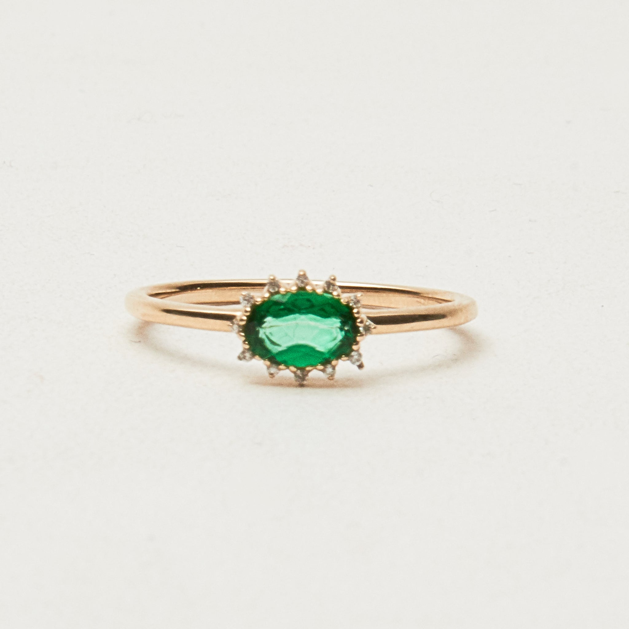 Green topaz surrounded by white diamonds