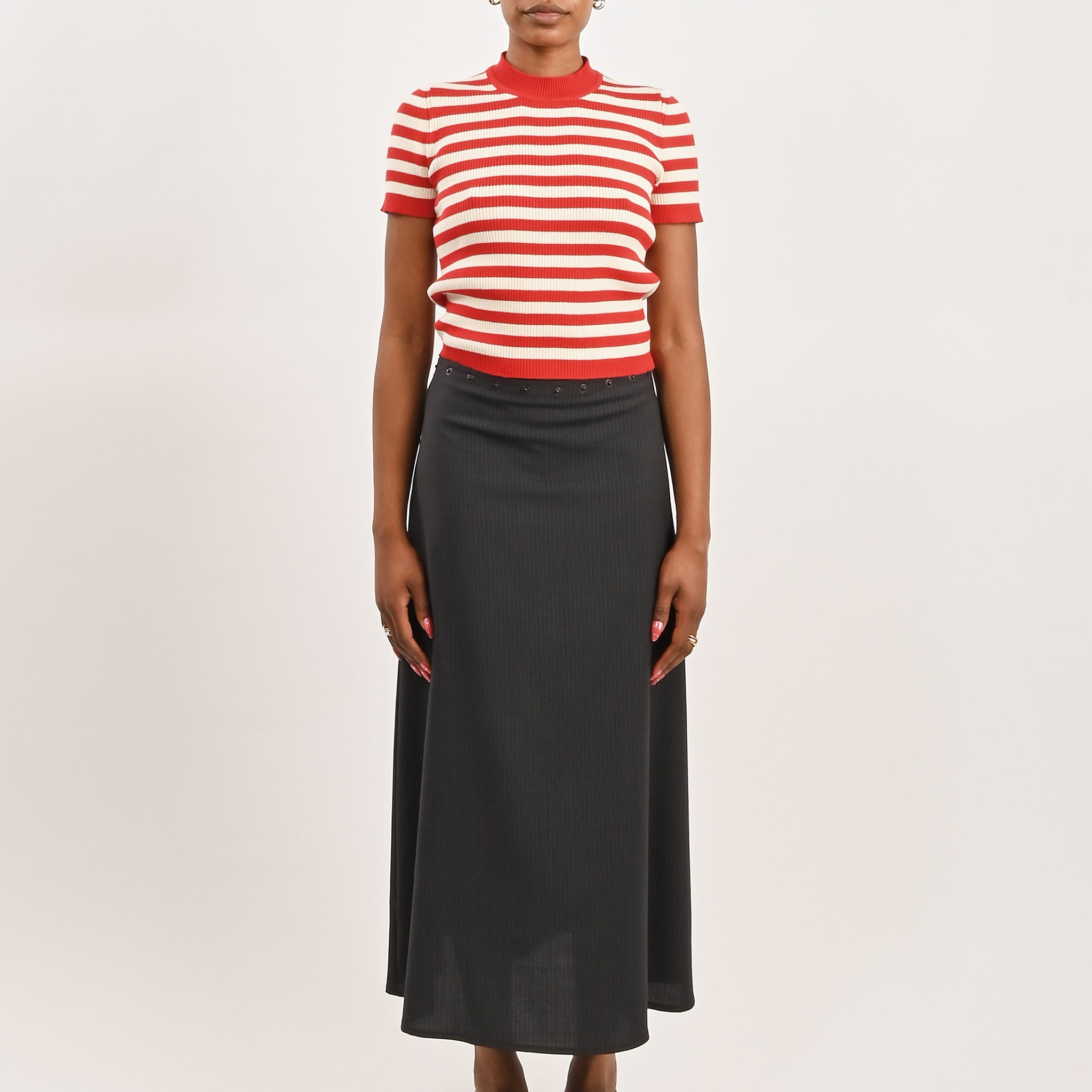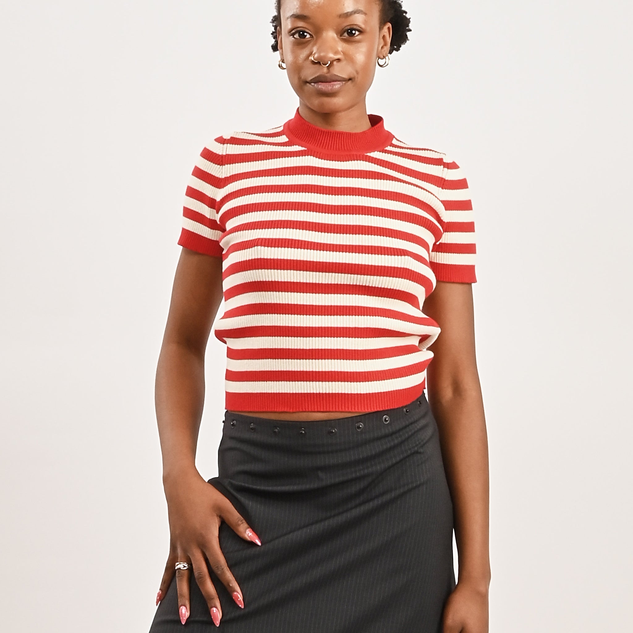 Carbon Grey Relaxed Mock Neck T-Shirt