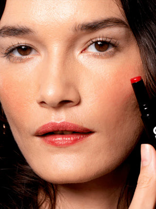 - Apply: Twist up the tint stick and draw on where you’d like a pop of color. You can buff it out with your fingertip or a brush for a more soft flush, or layer on for full opacity. Add a bit of balm for a juicy, sheer finish, or tap off a bit of excess with a tissue for a more stained look