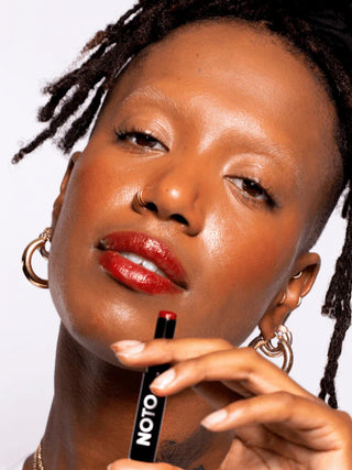 - Multi use: For a natural flush or pop of color, use NOTO's red lip and cheek tint nearly anywhere – even on your nose!