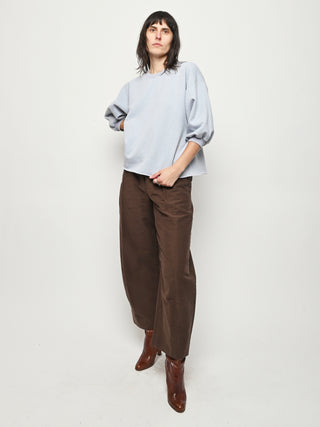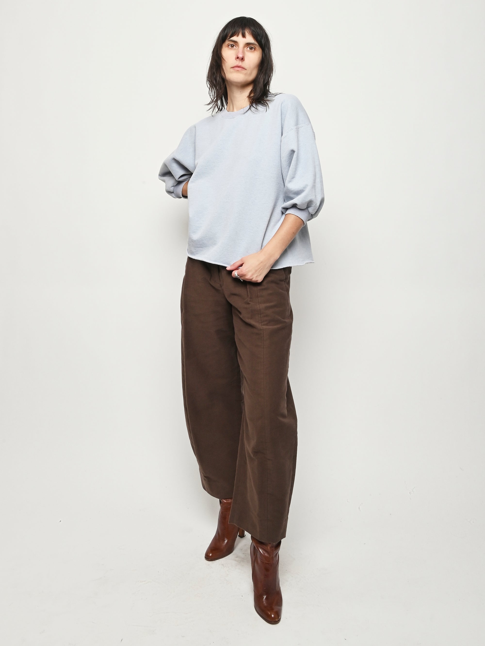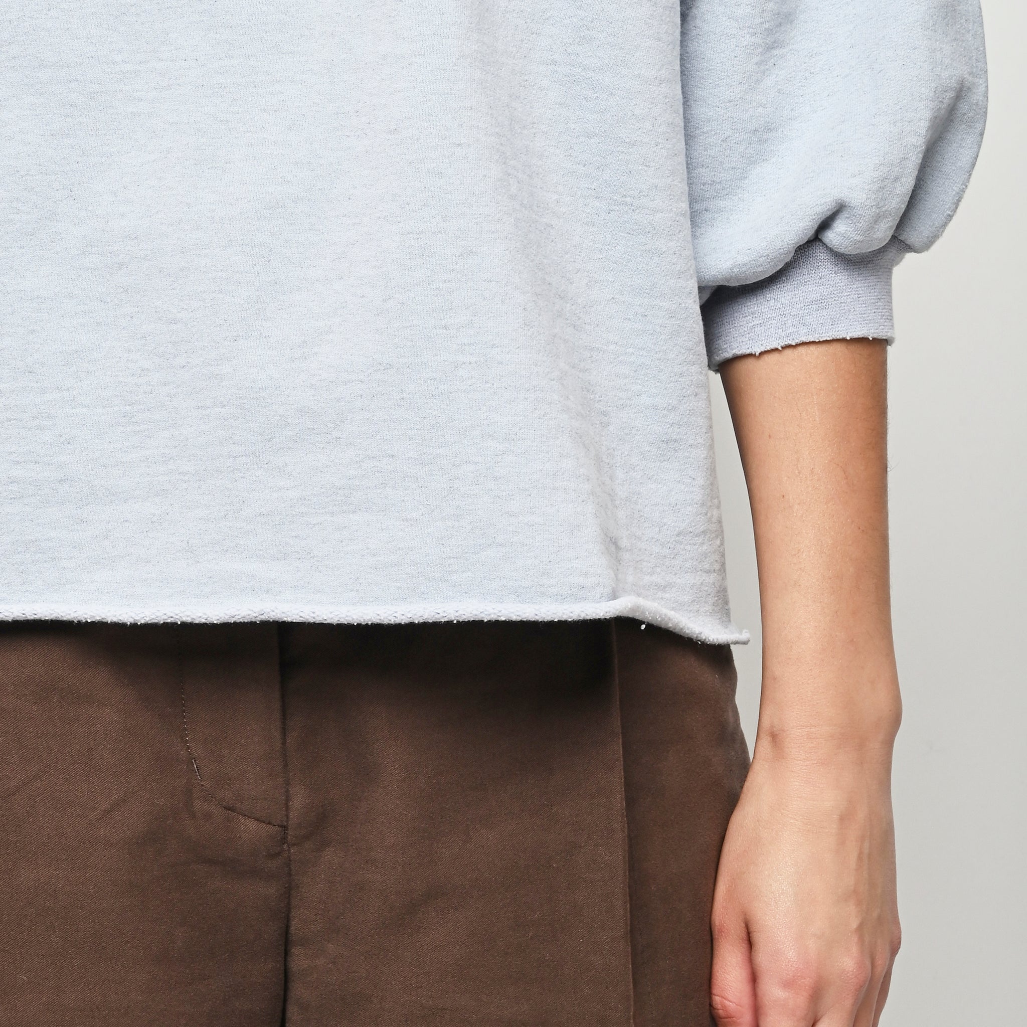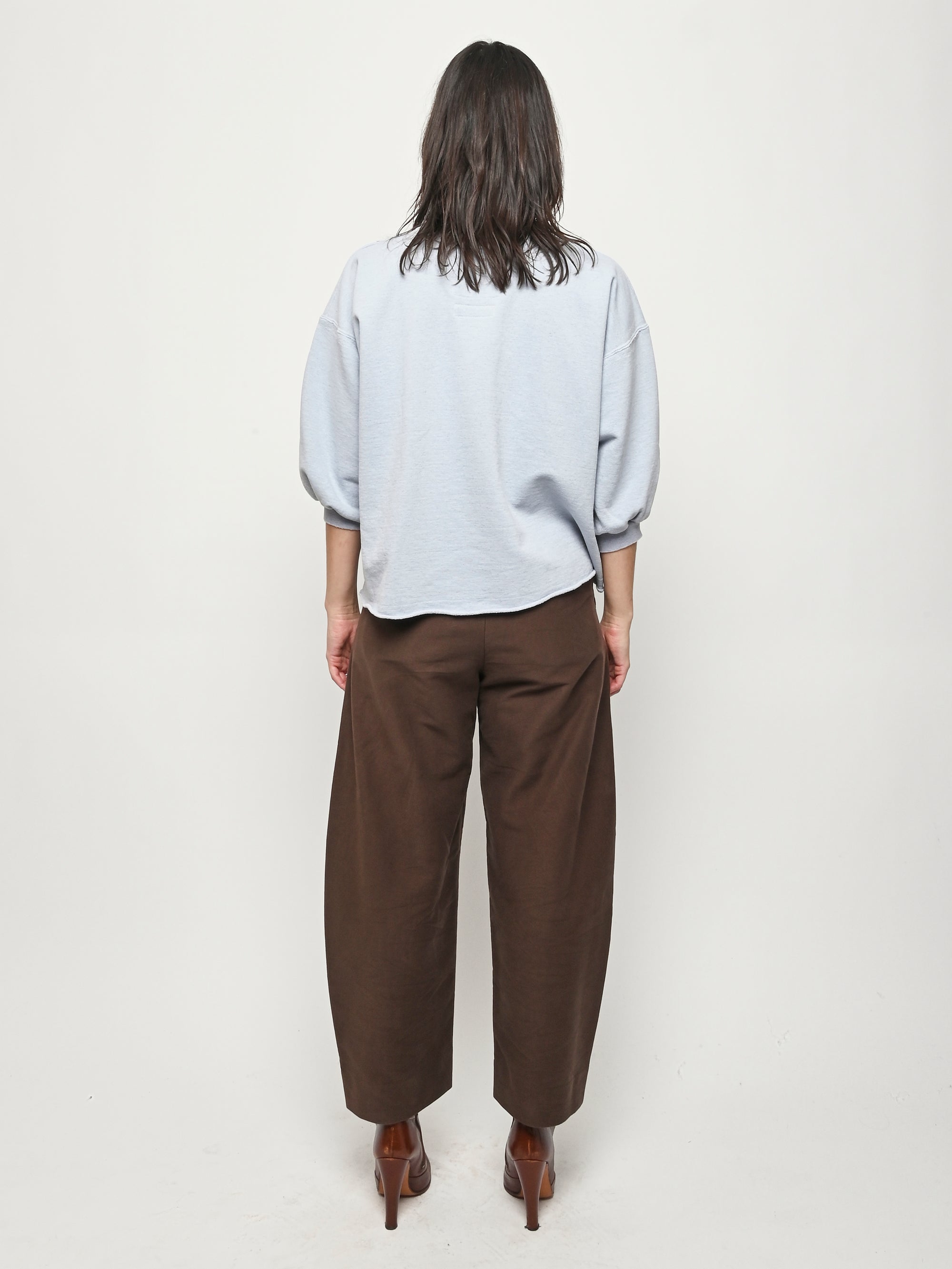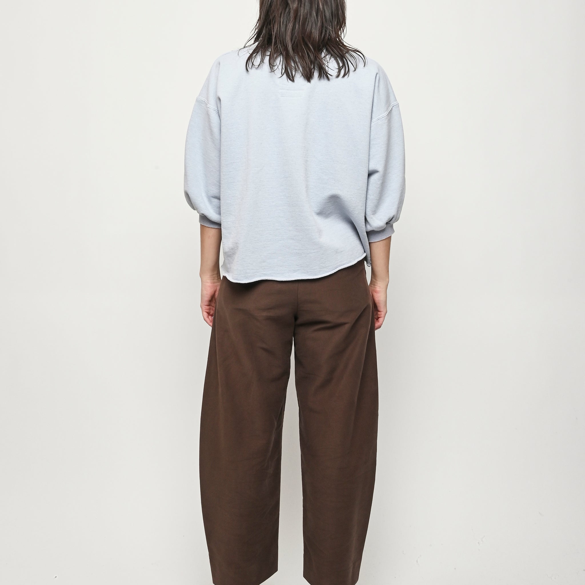 Rachel Comey's classic crewneck sweatshirt with drop shoulders, cropped sleeves, a raw edge hemline, and unique distressing throughout.