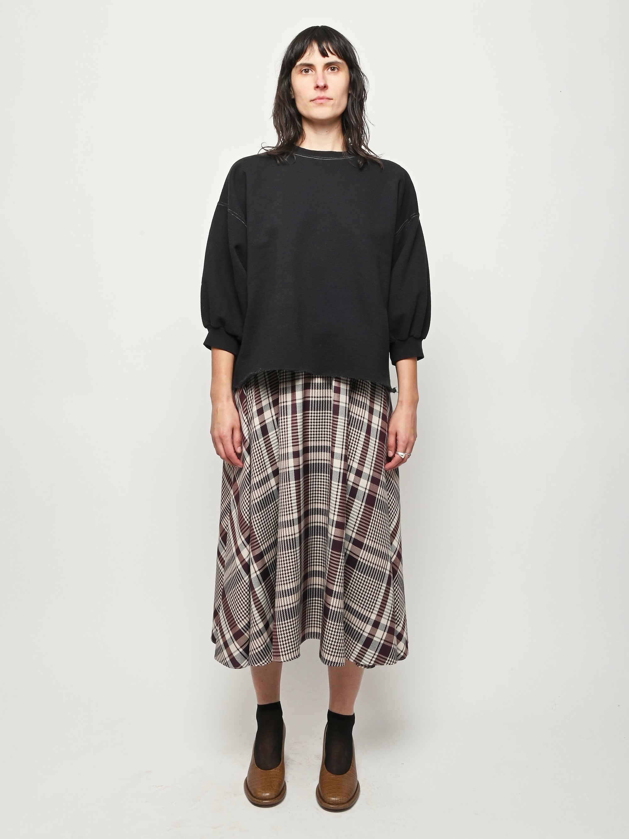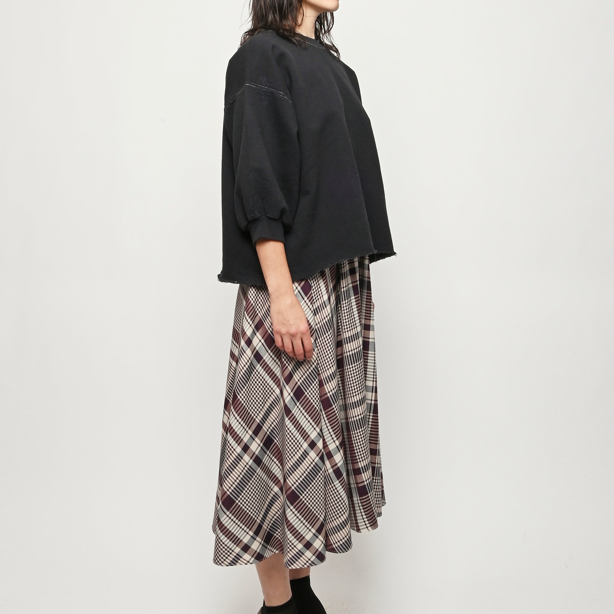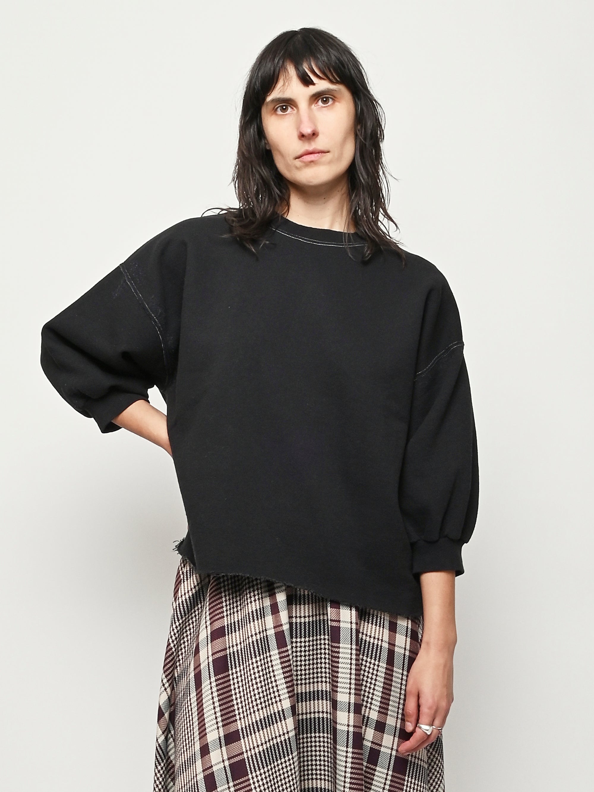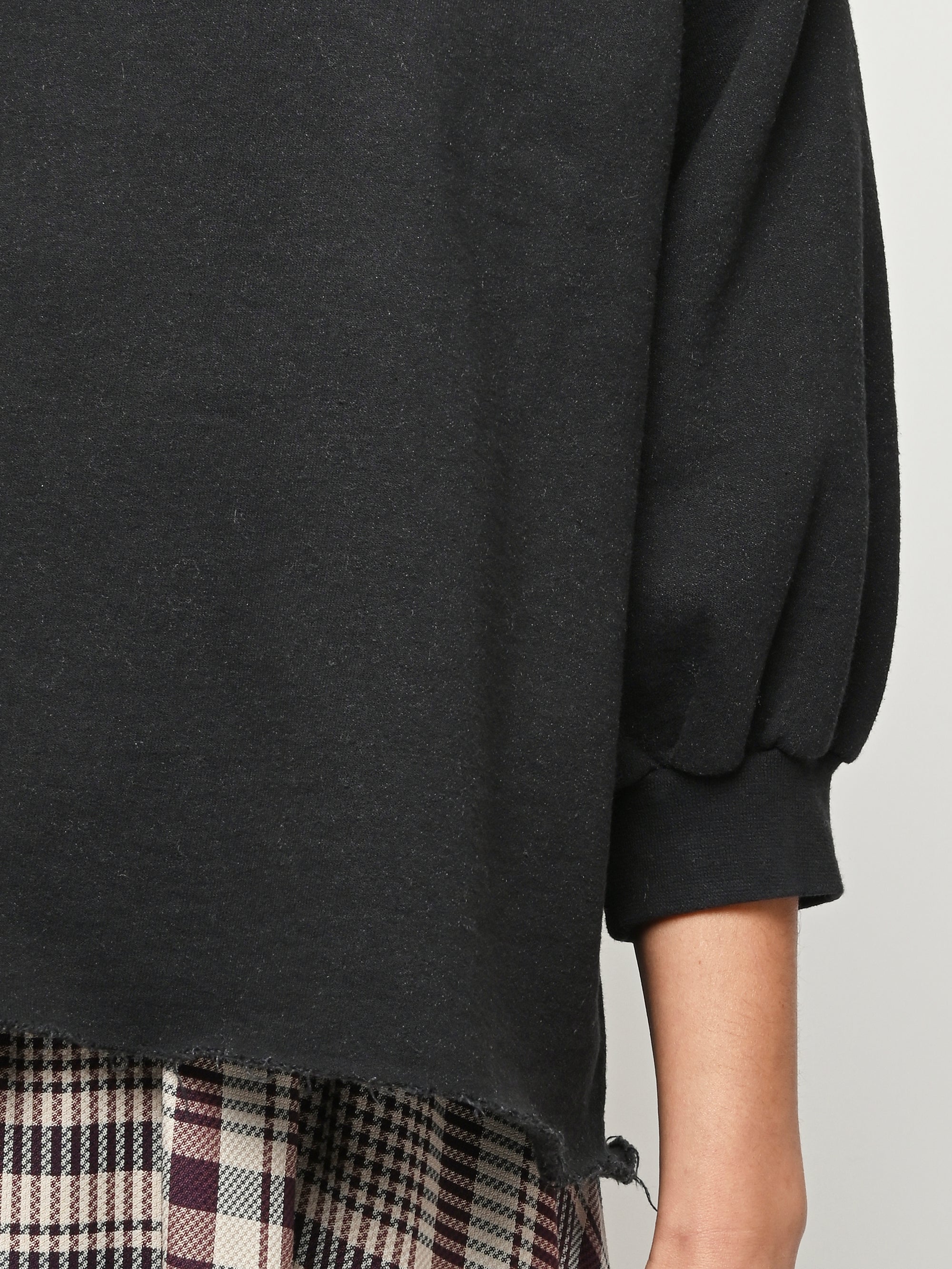 Rachel Comey's classic crewneck sweatshirt with drop shoulders, cropped sleeves, a raw edge hemline, and unique distressing throughout.