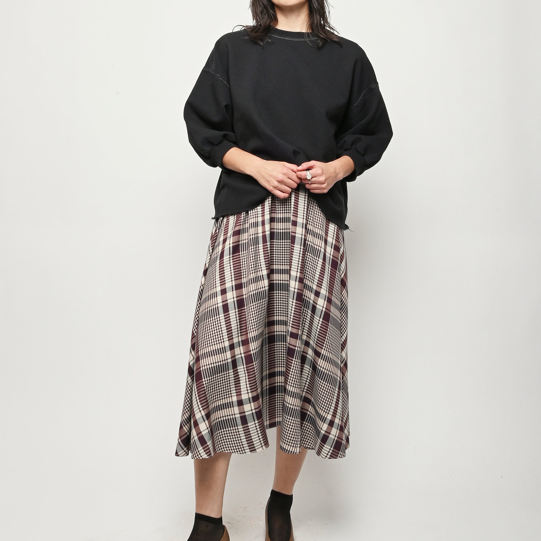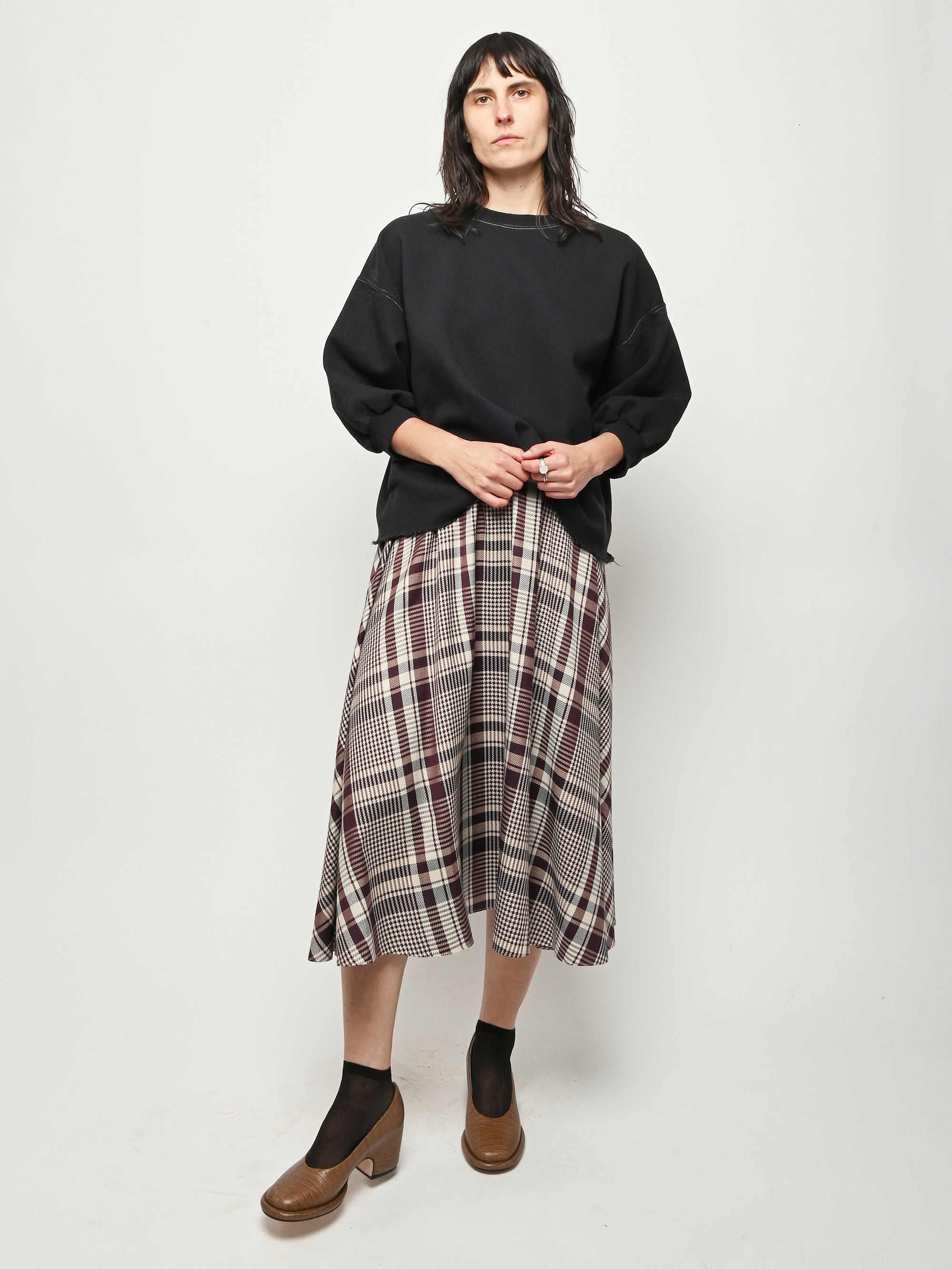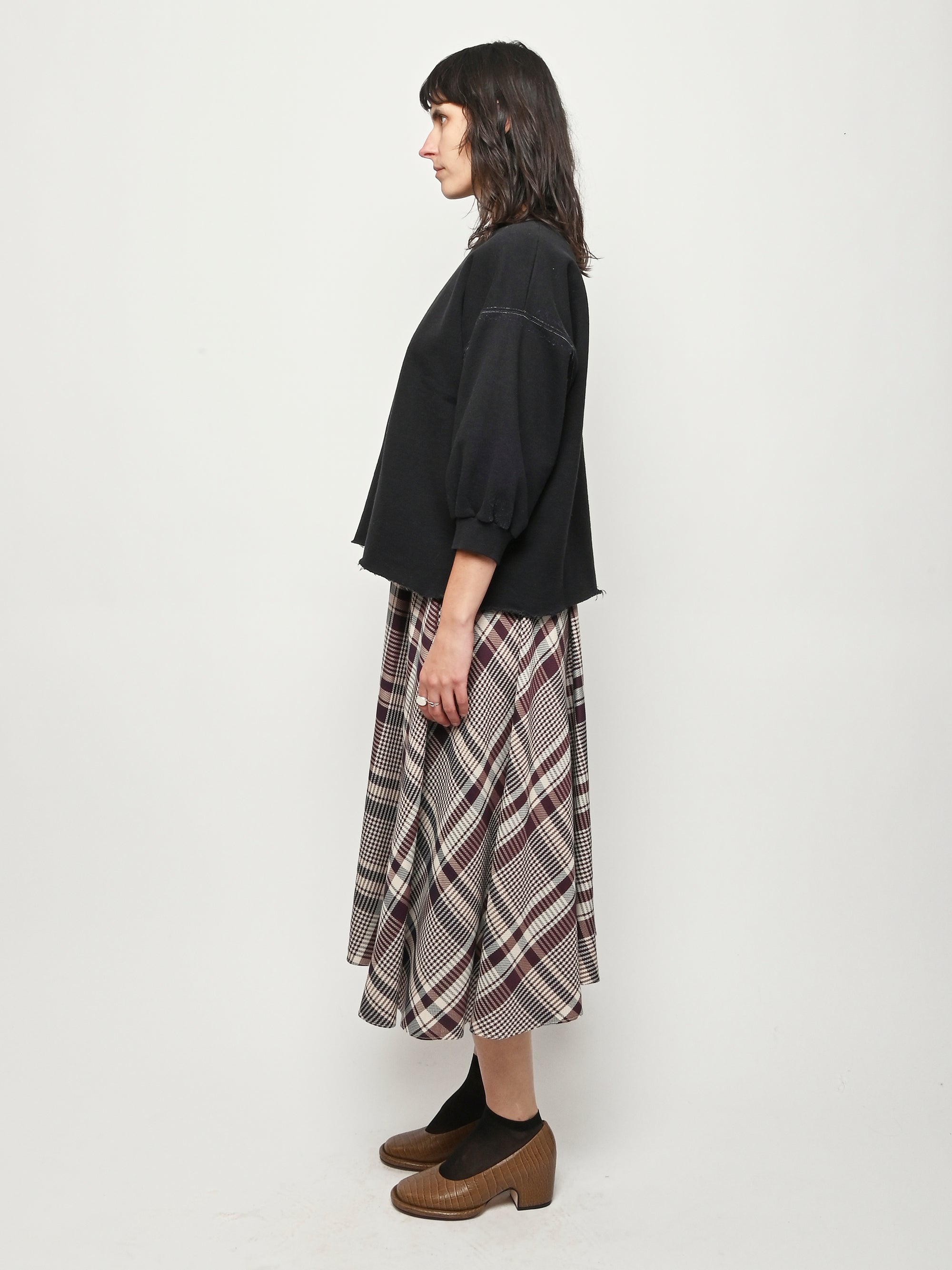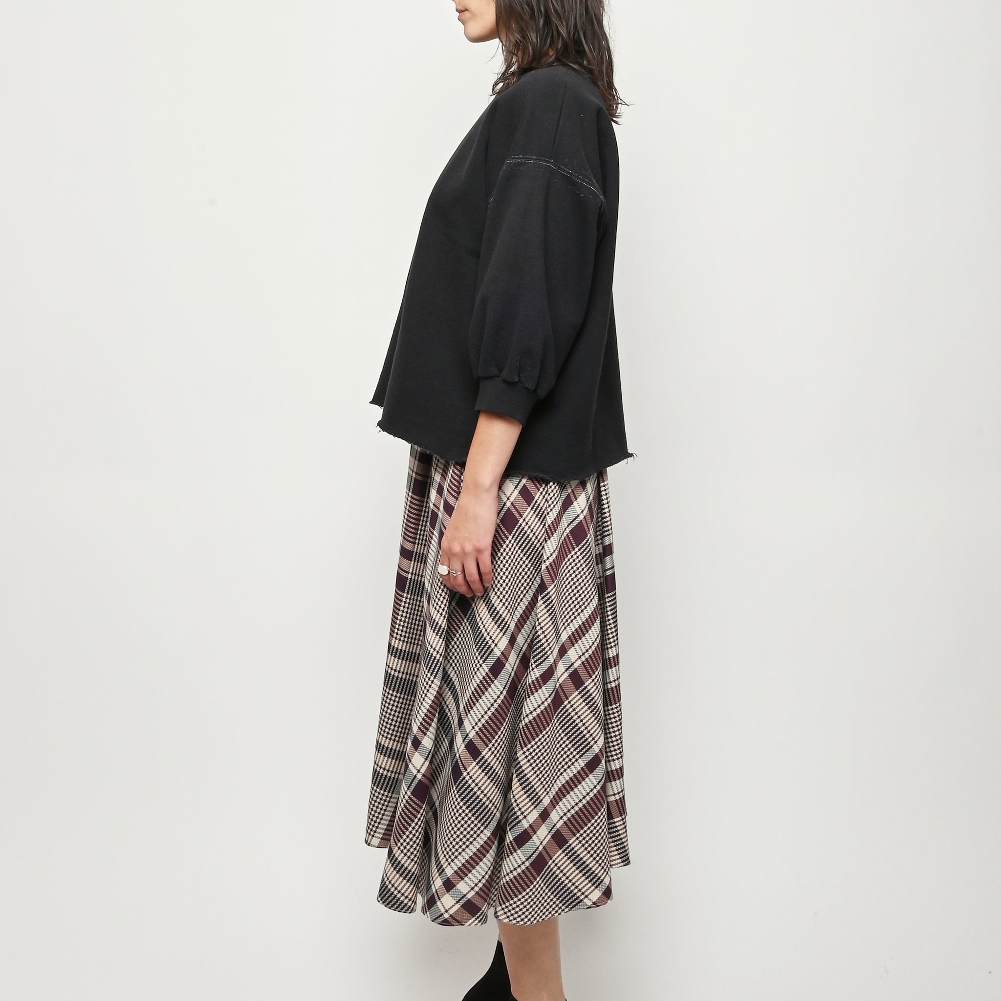 Rachel Comey's classic crewneck sweatshirt with drop shoulders, cropped sleeves, a raw edge hemline, and unique distressing throughout.