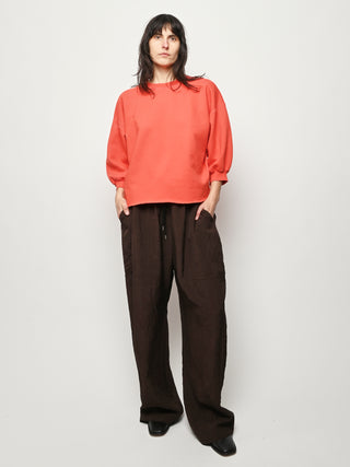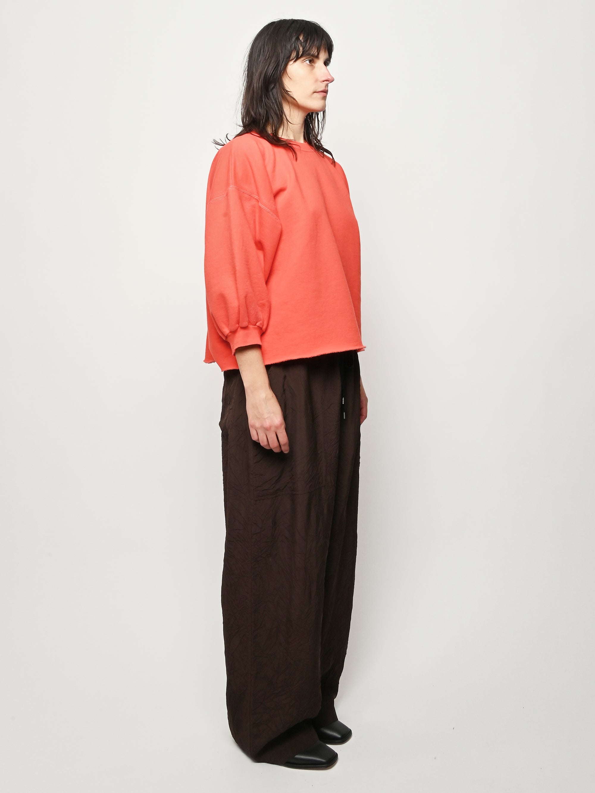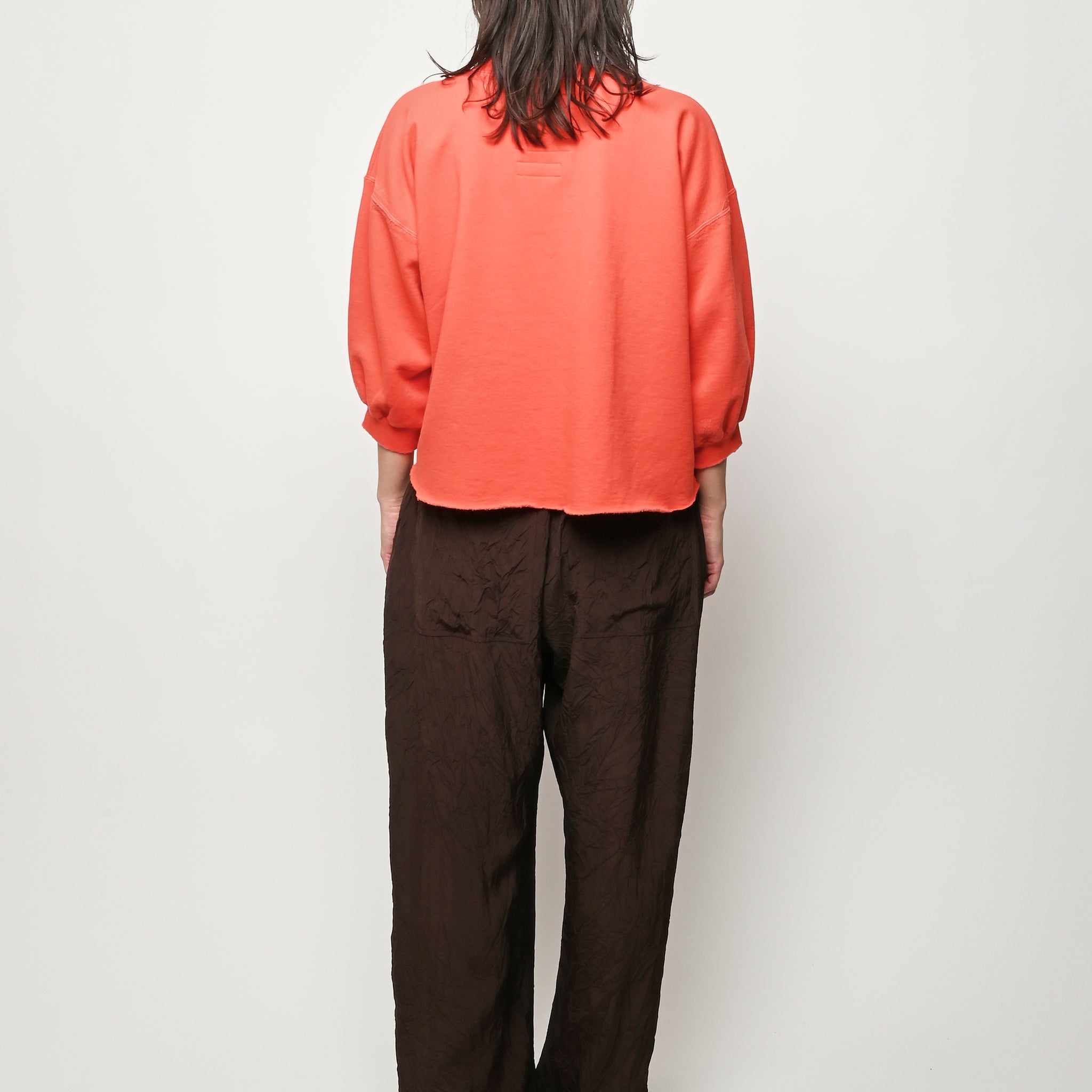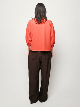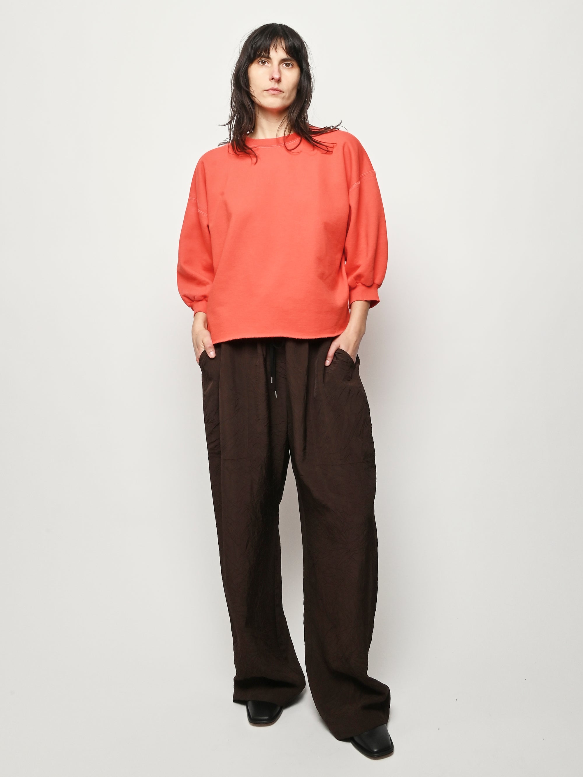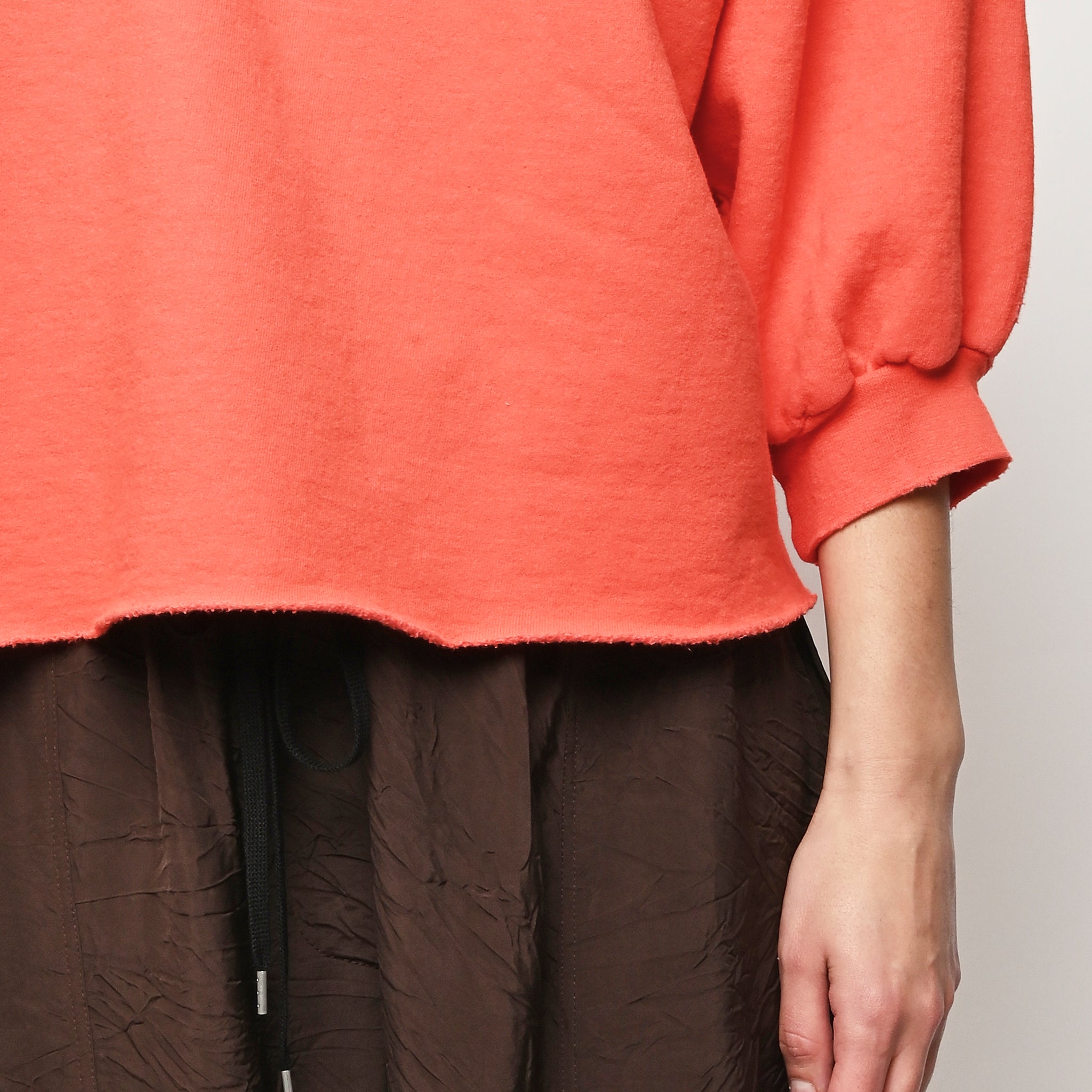 Rachel Comey's classic crewneck sweatshirt with drop shoulders, cropped sleeves, raw edge hemline and unique distressing throughout. Makes a great styling piece for any look.