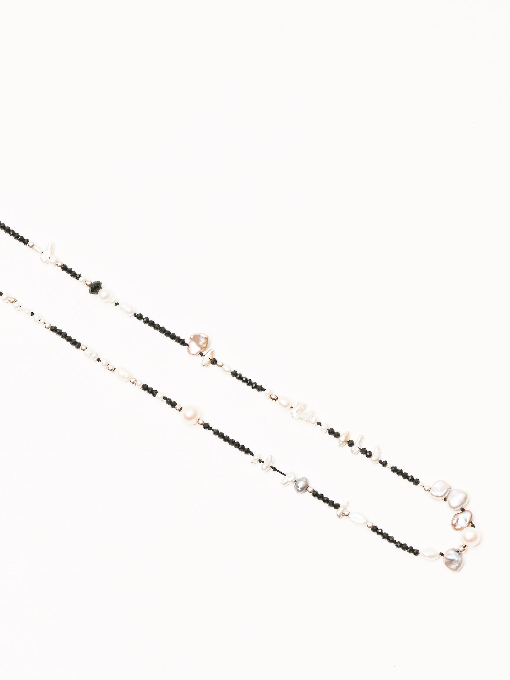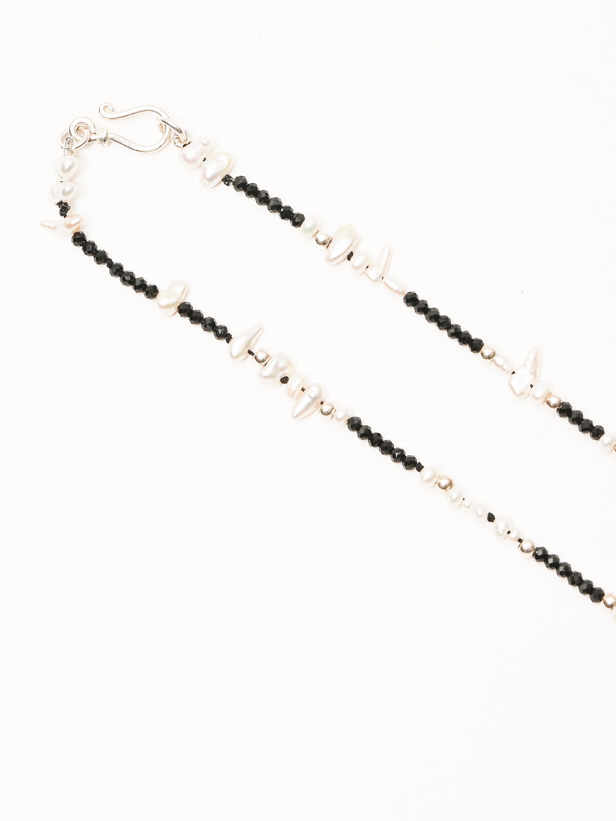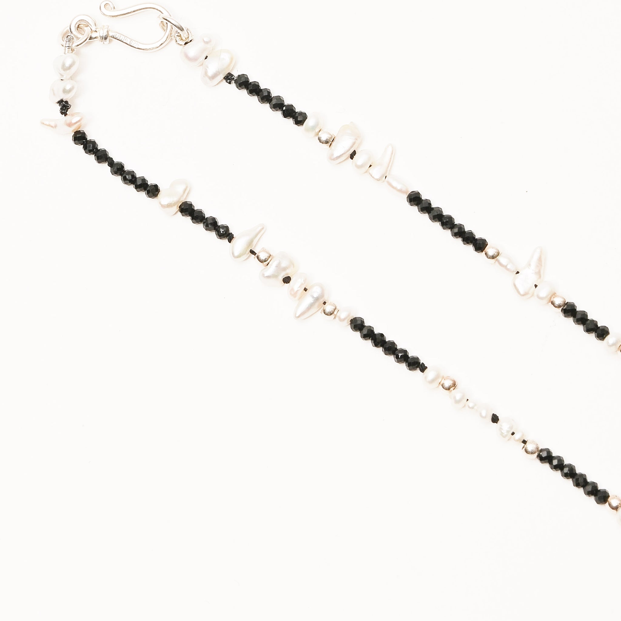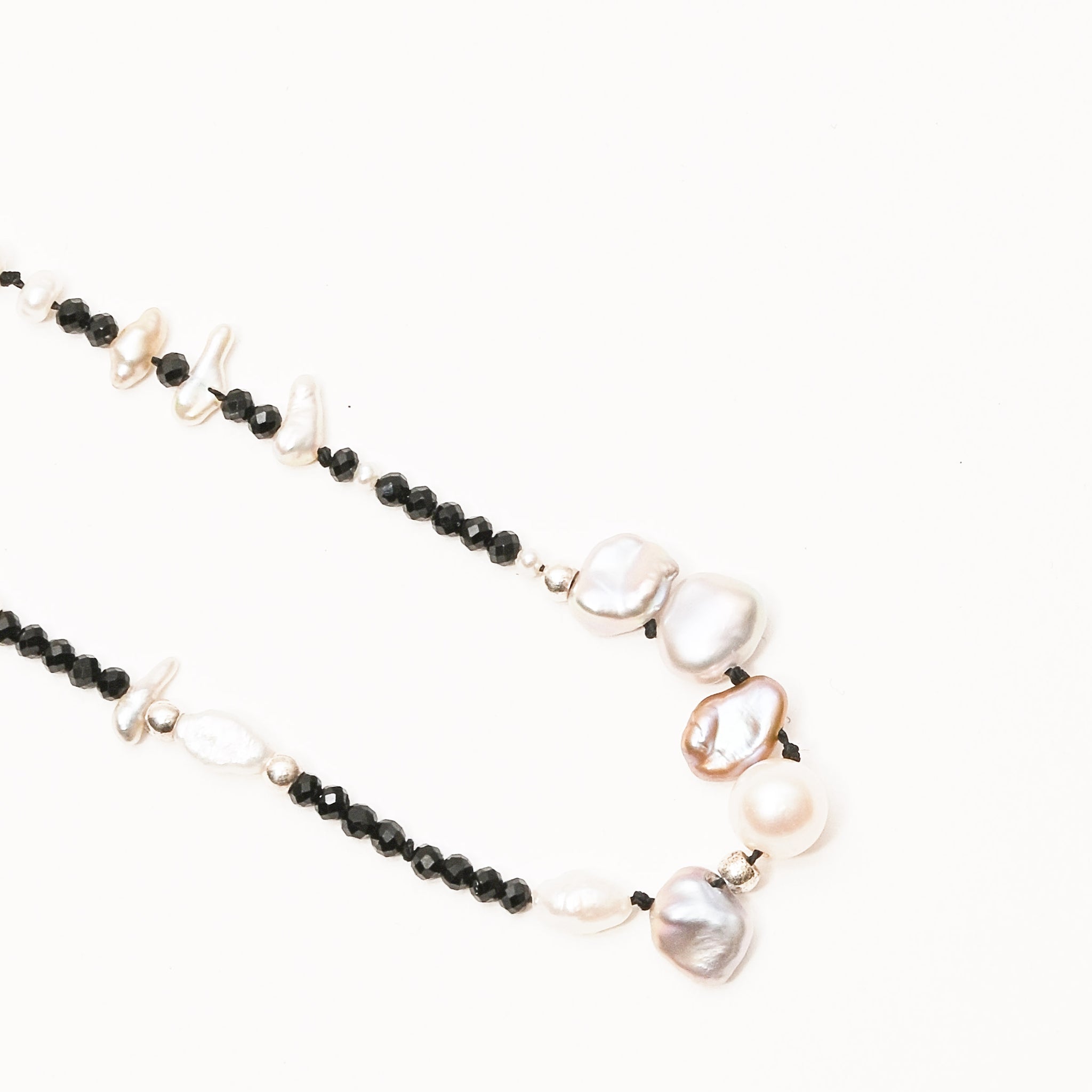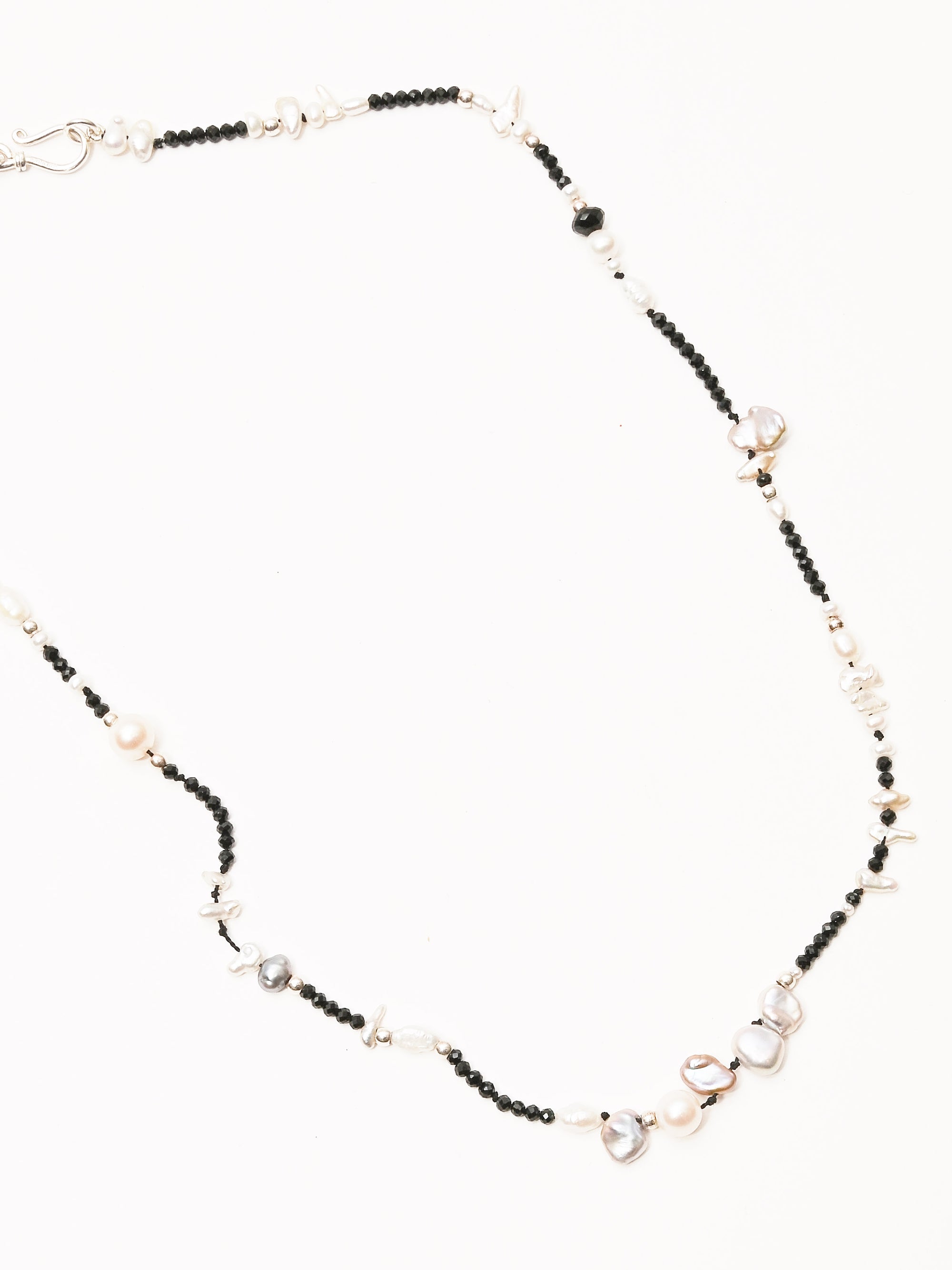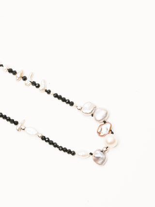 Fresh water pearls, keshi pearls, S/S beads and black spinel beads. Made by Portland-based designer, SayJLay.